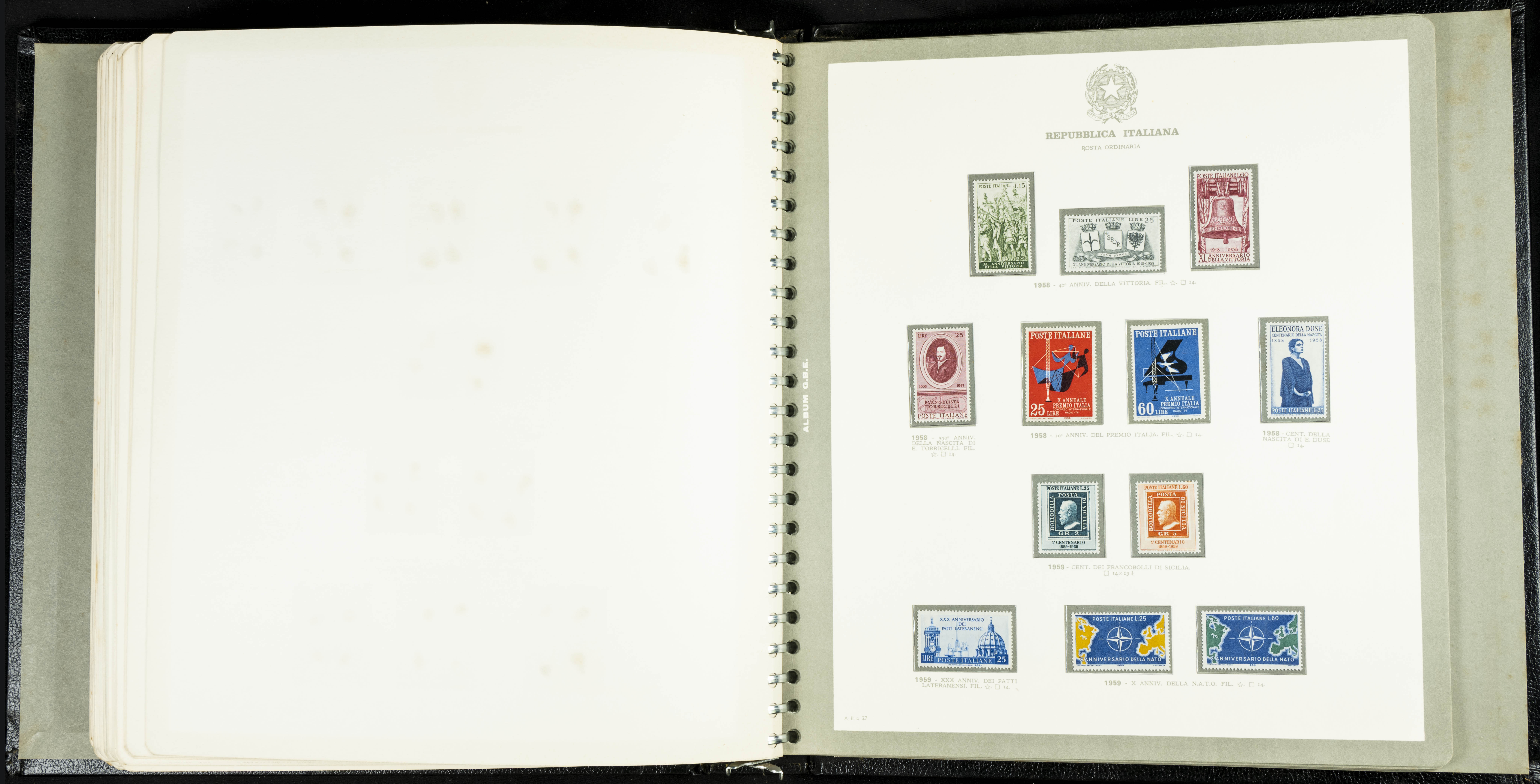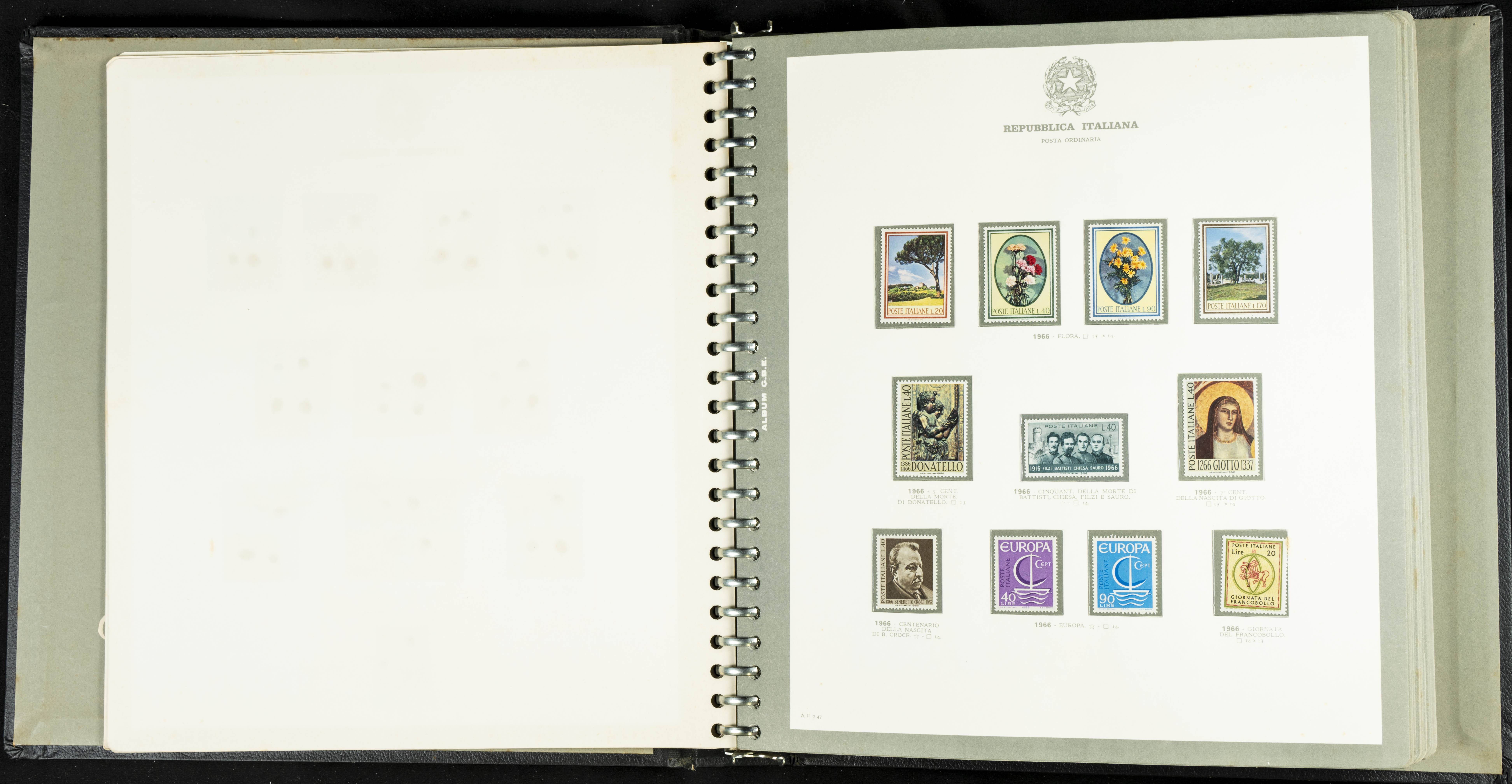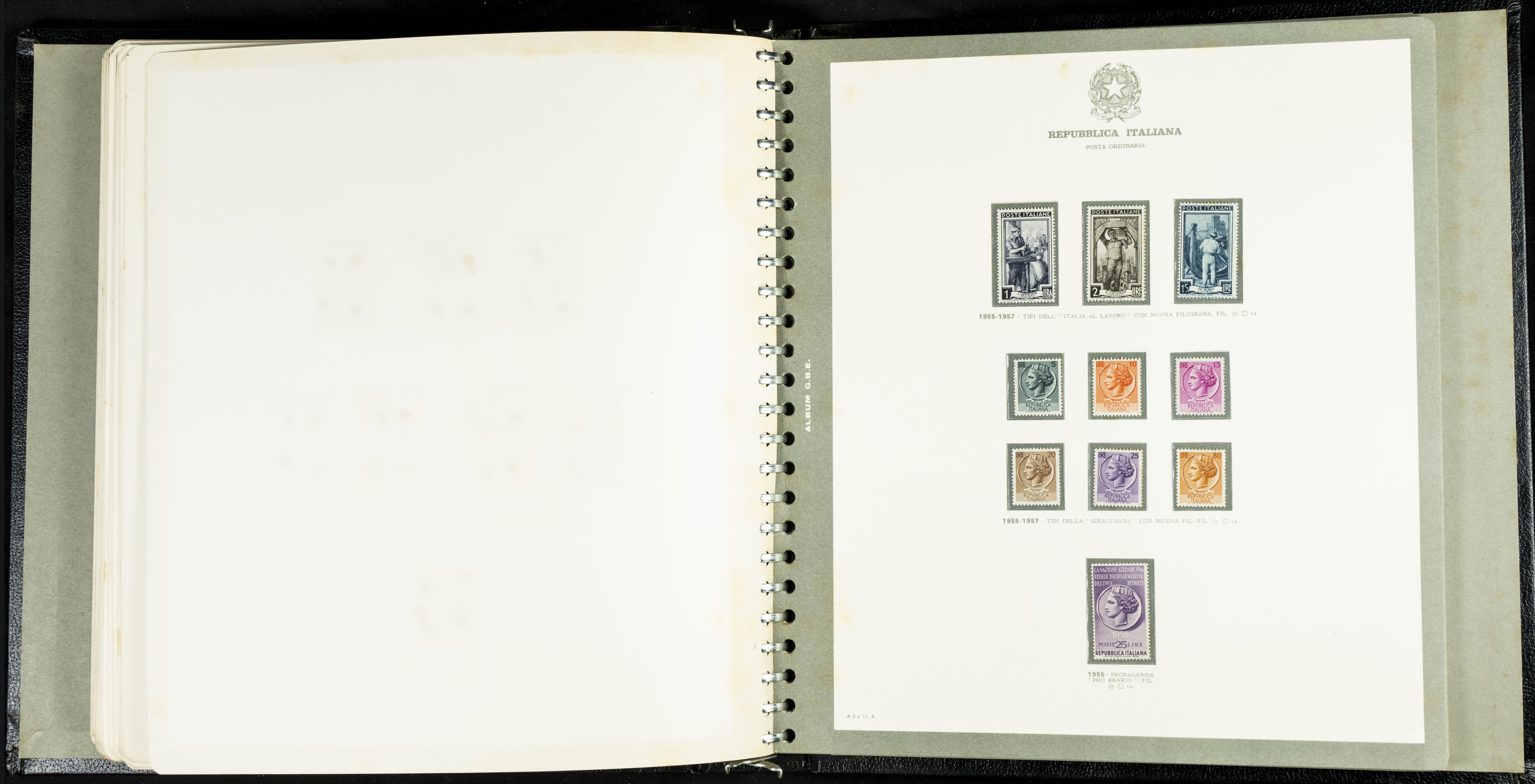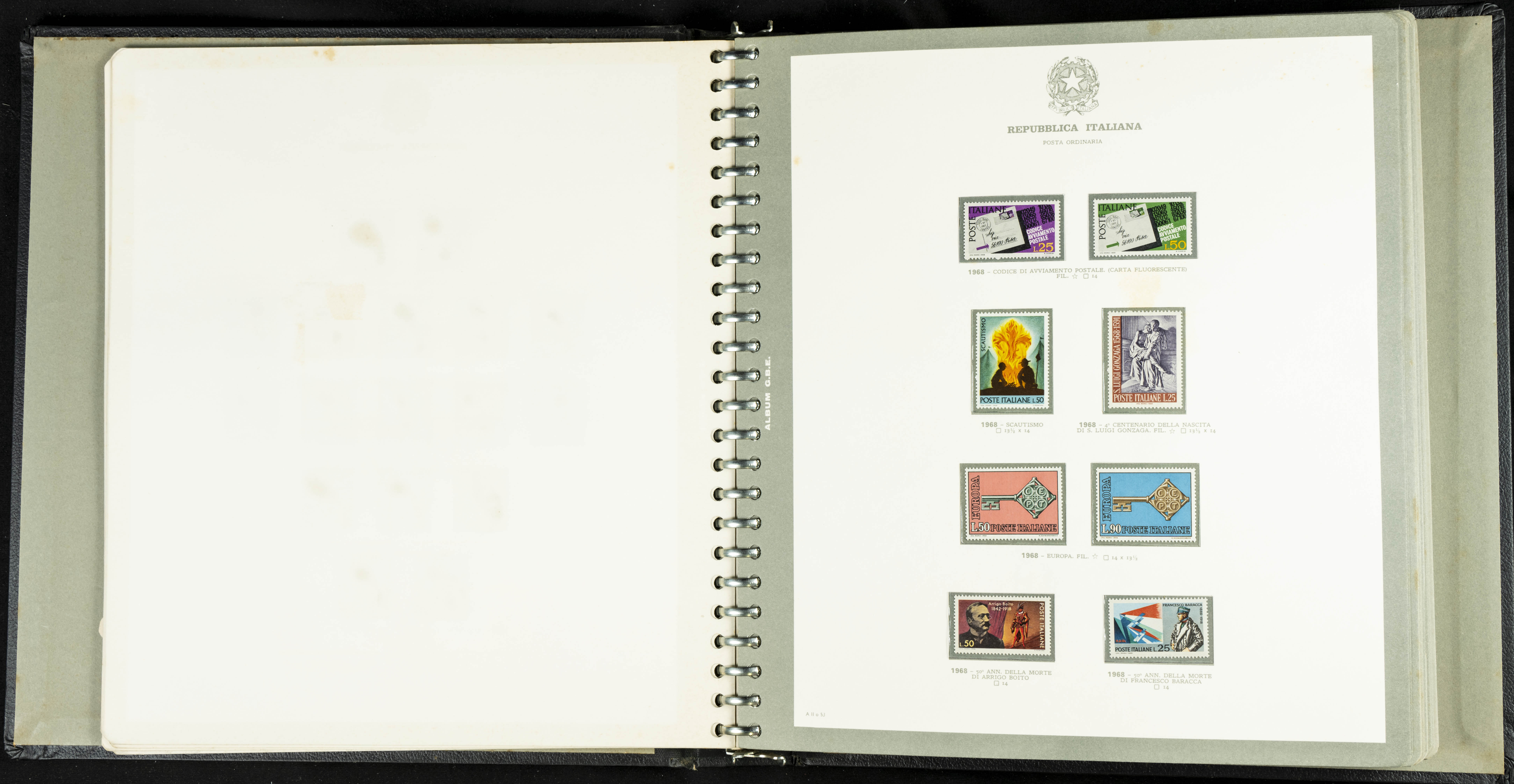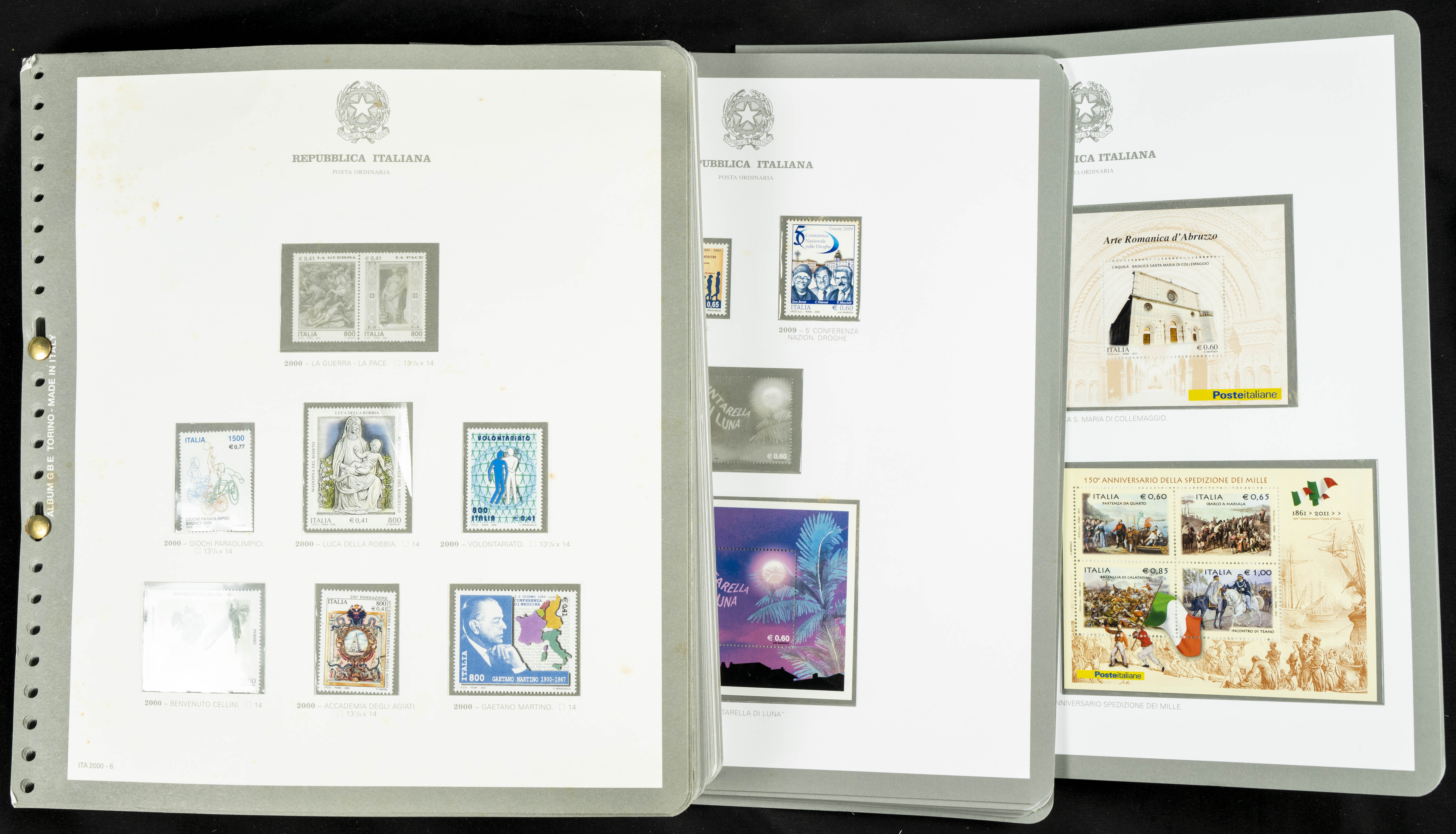 English ★★/(1862ca). Interesting collection from Italy between 1862 and 2010, in mint and used, practically complete from 1951 onwards, and most of that period without hinges, including souvenir sheets and some booklets (minor age spots mainly affecting the album pages). HIGH CATALOGUE AND FACE VALUE. TO BE EXAMINED.