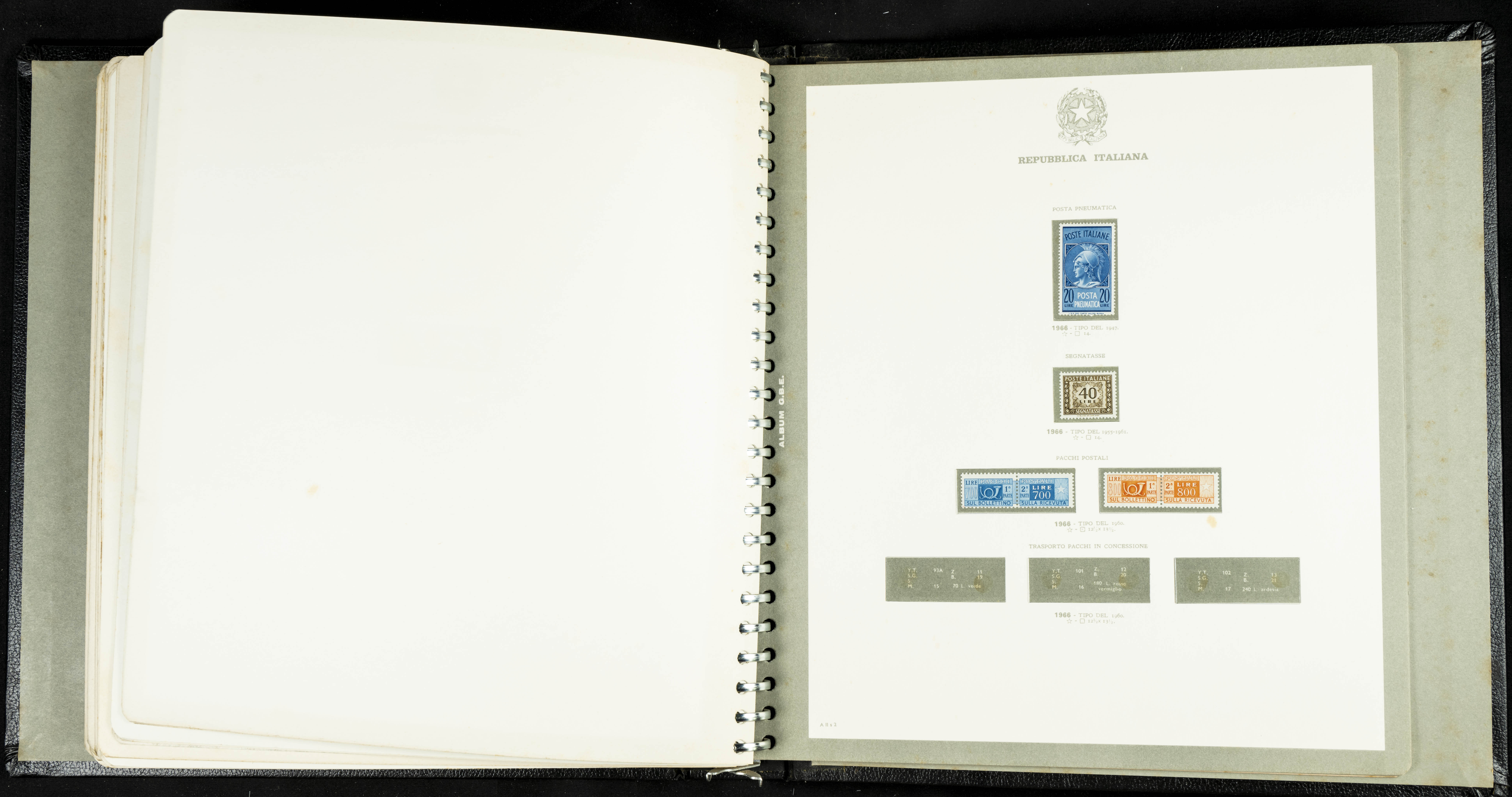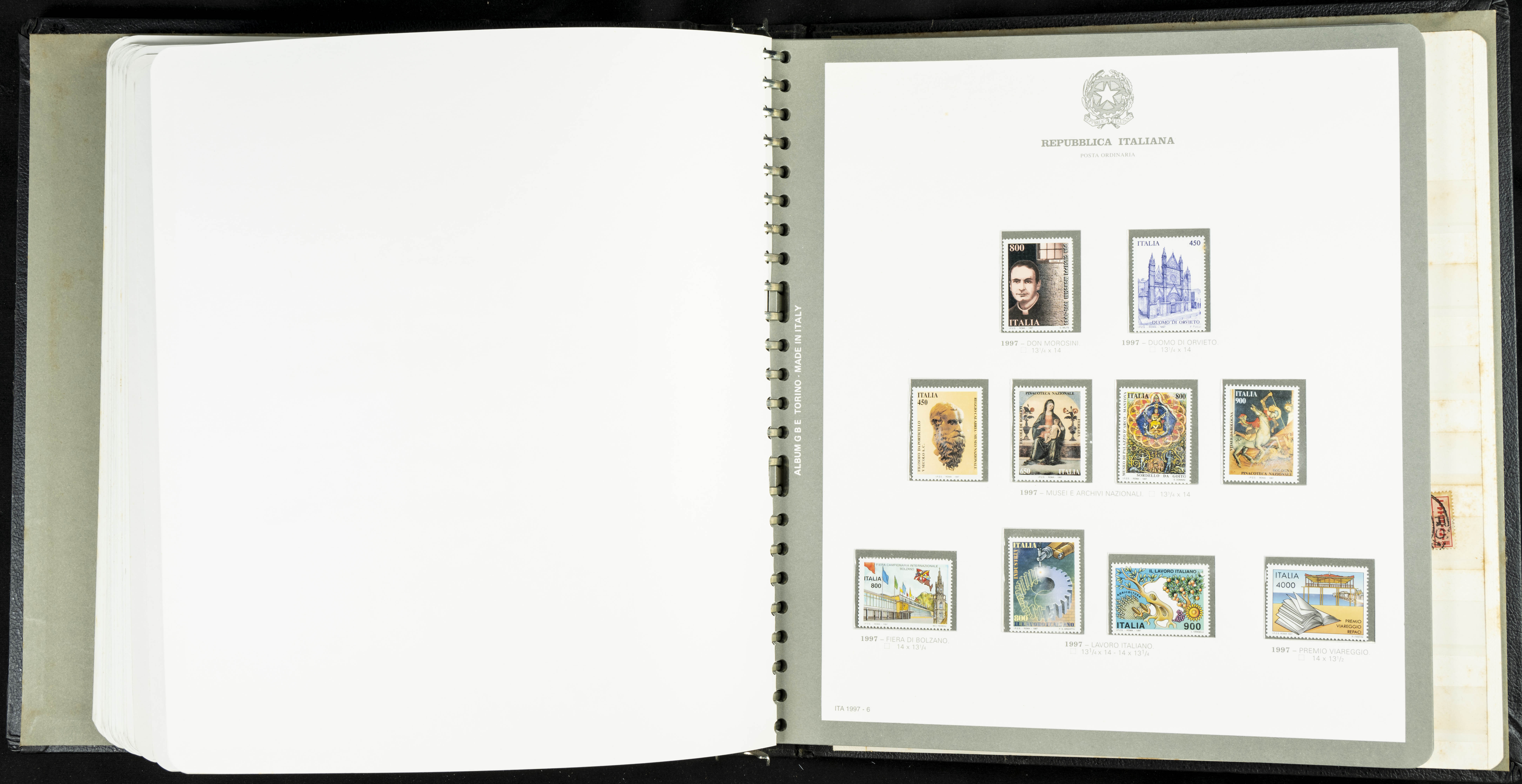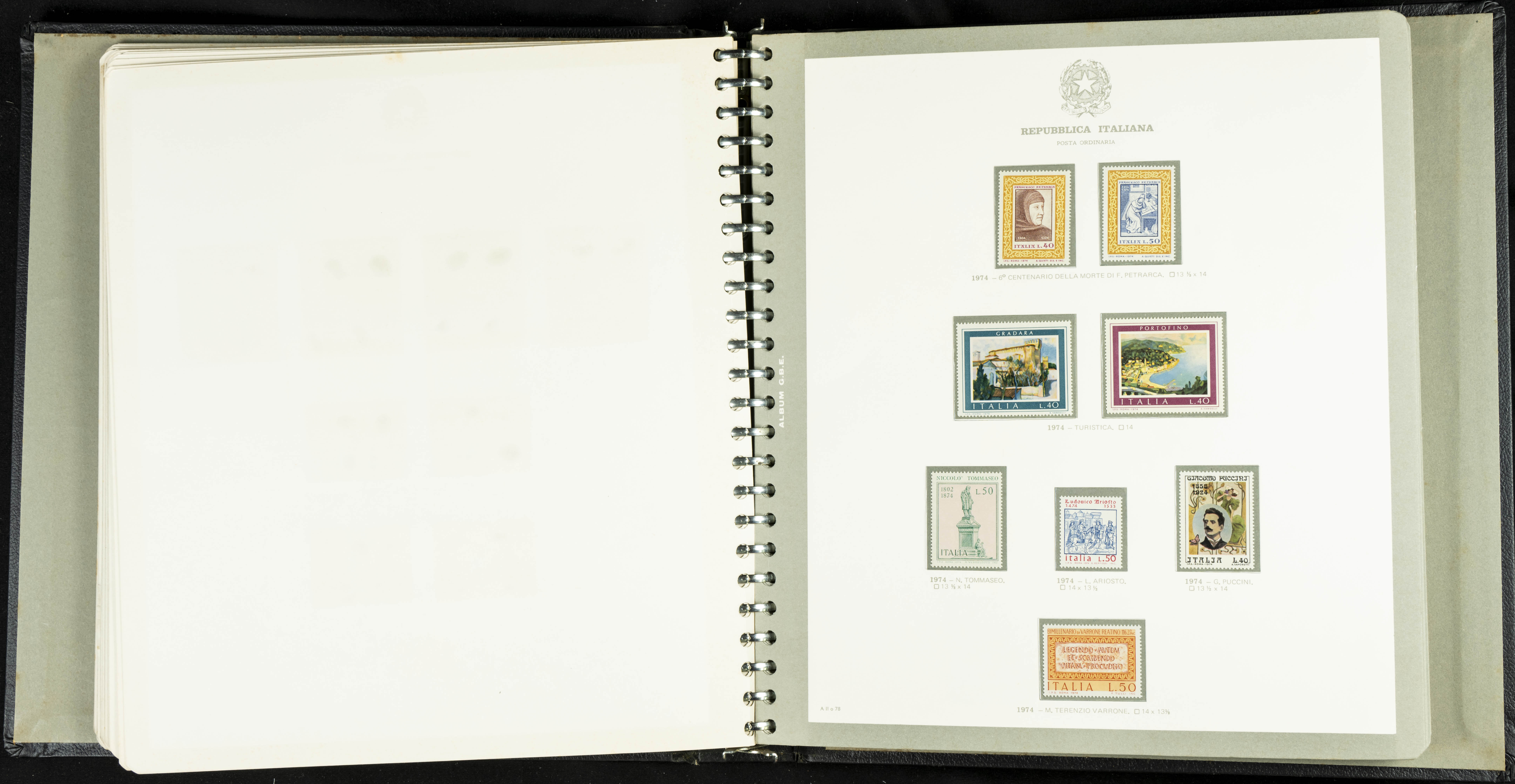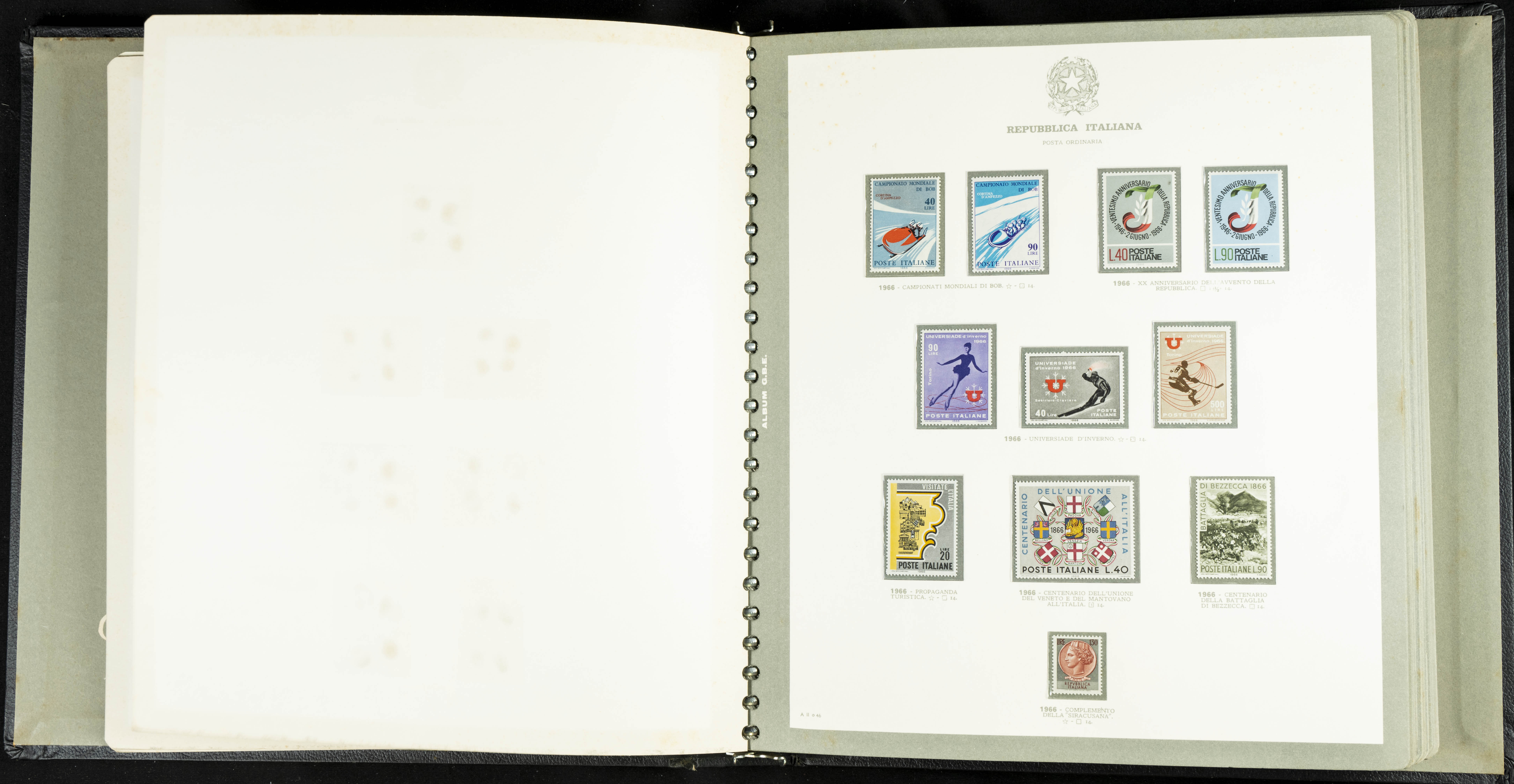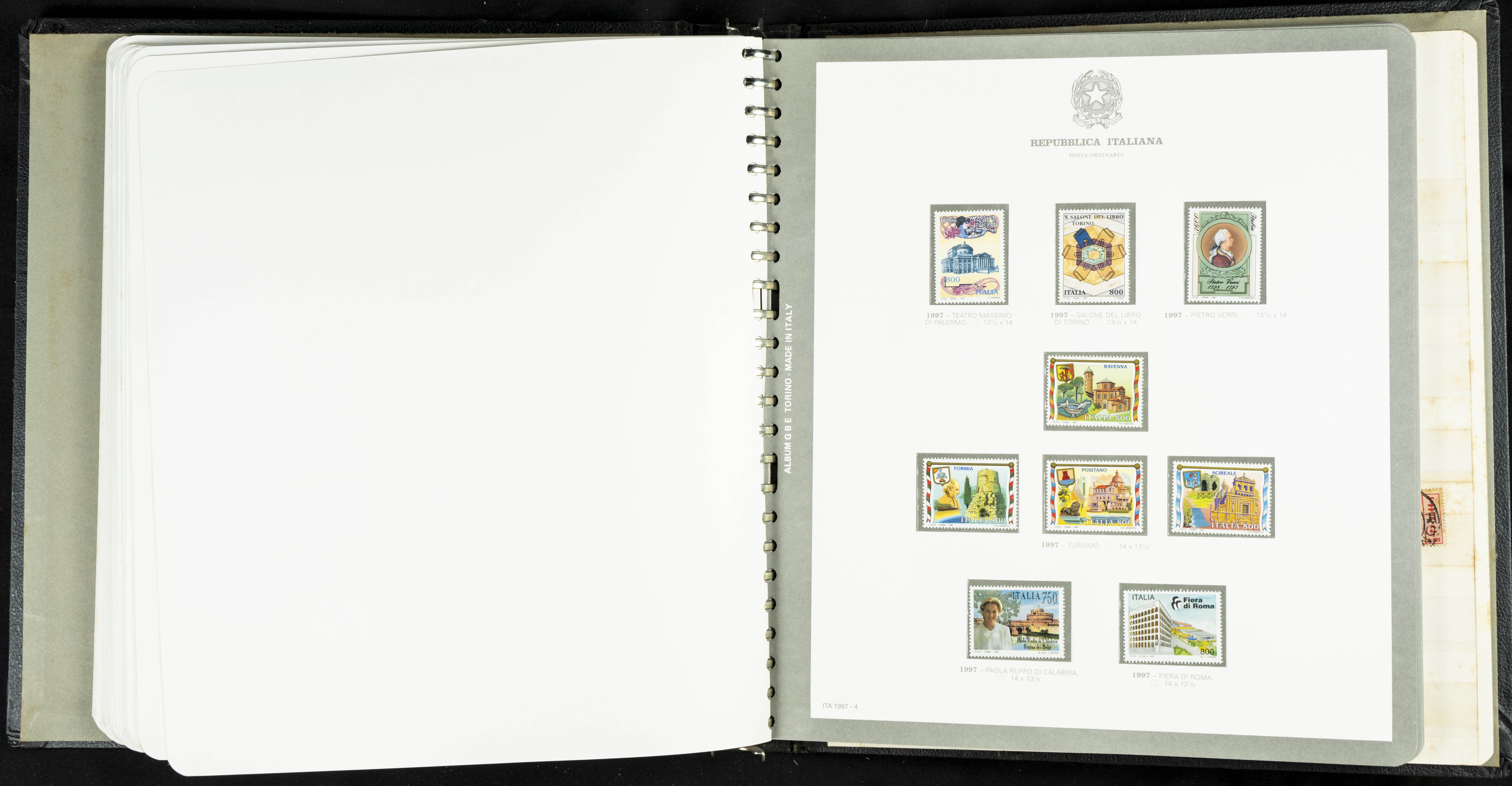English ★★/(1862ca). Interesting collection from Italy between 1862 and 2010, in mint and used, practically complete from 1951 onwards, and most of that period without hinges, including souvenir sheets and some booklets (minor age spots mainly affecting the album pages). HIGH CATALOGUE AND FACE VALUE. TO BE EXAMINED.
