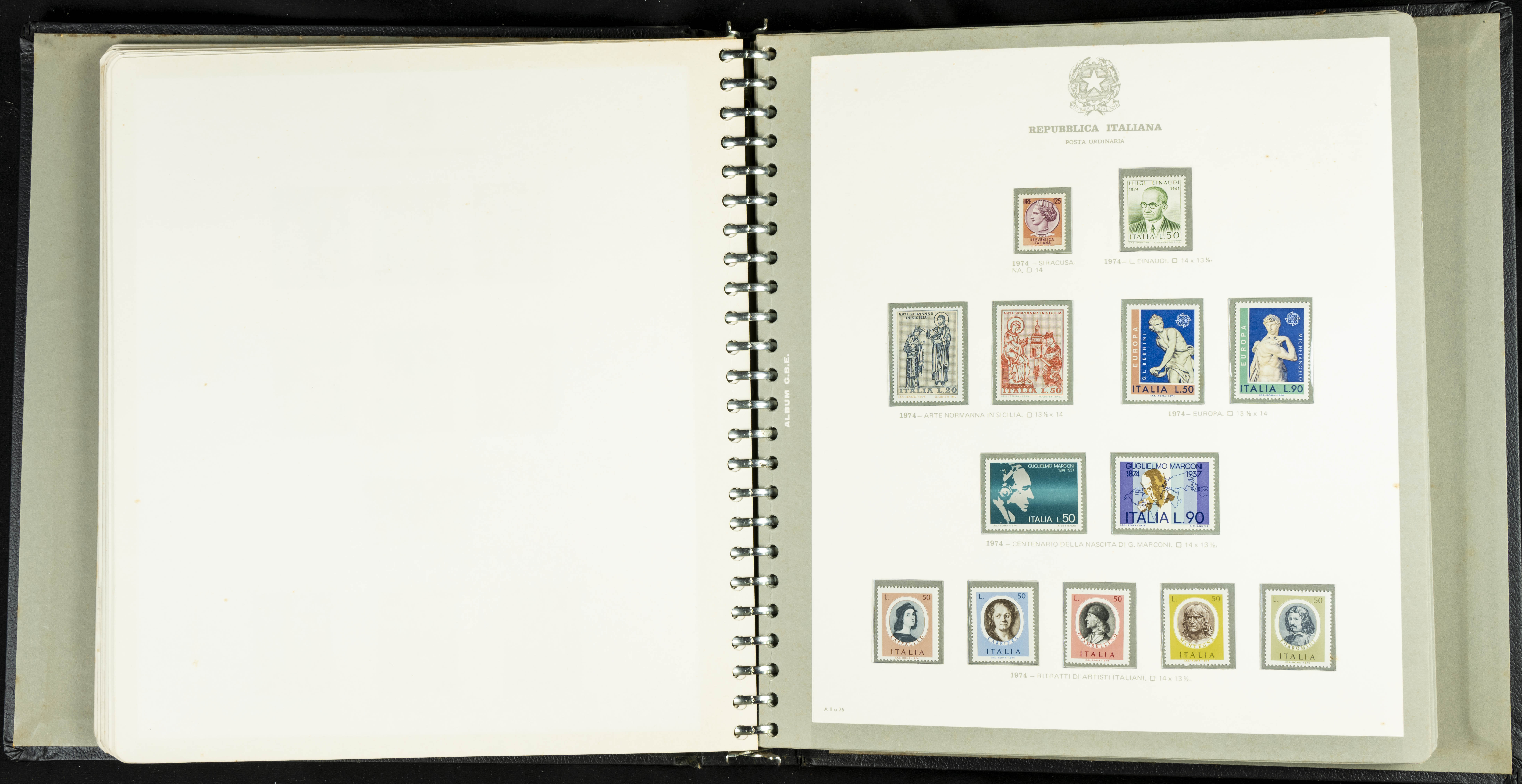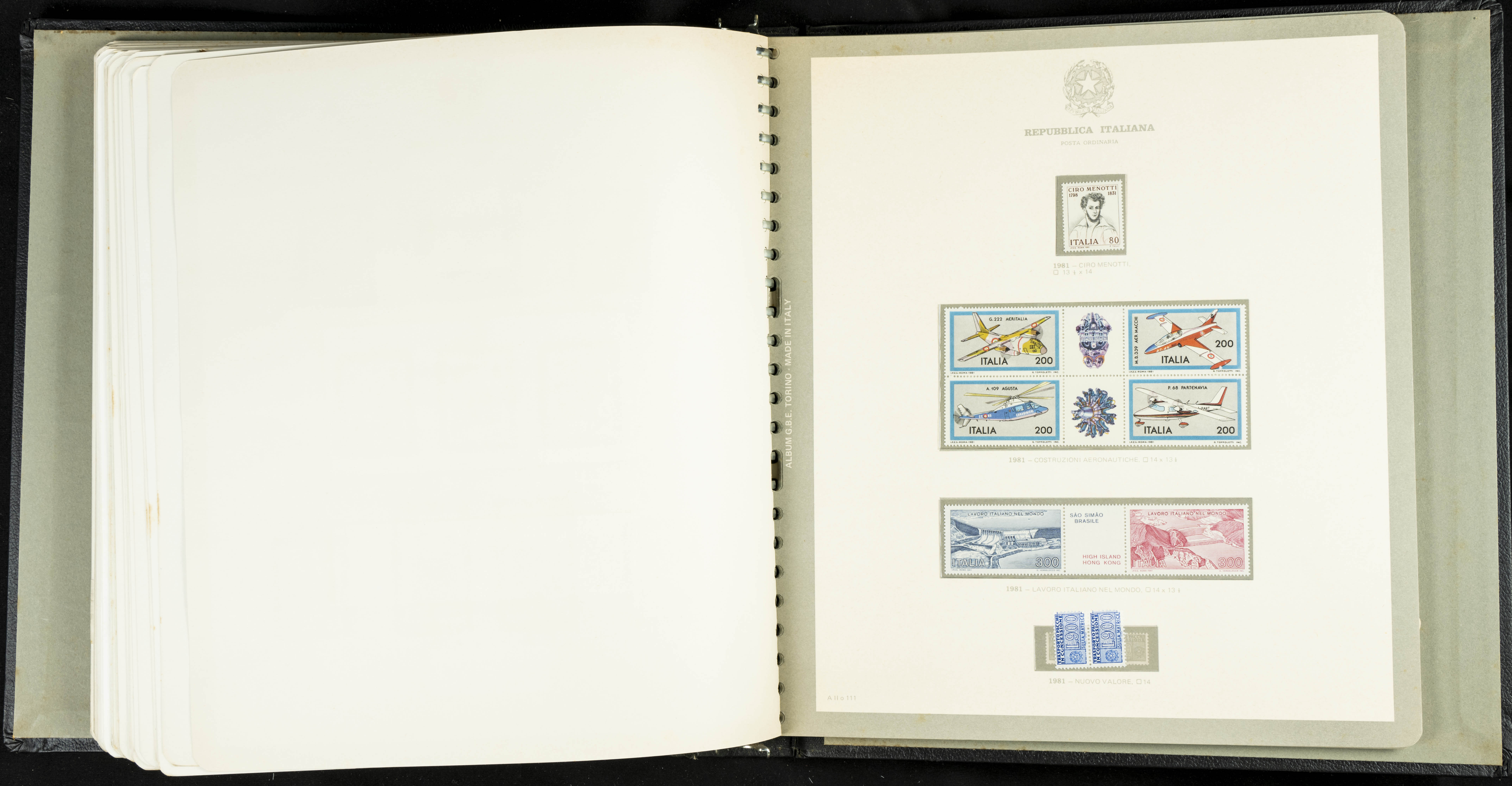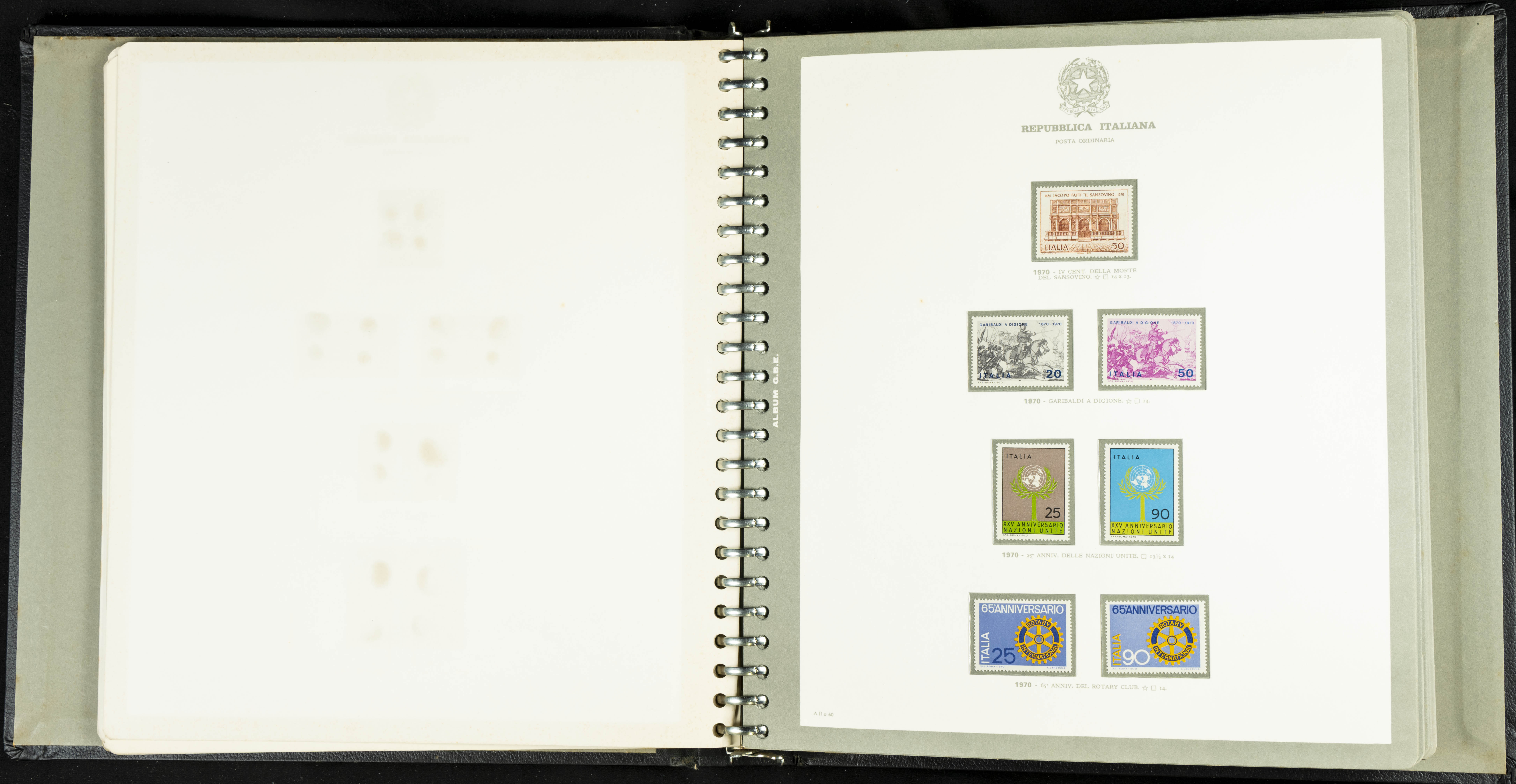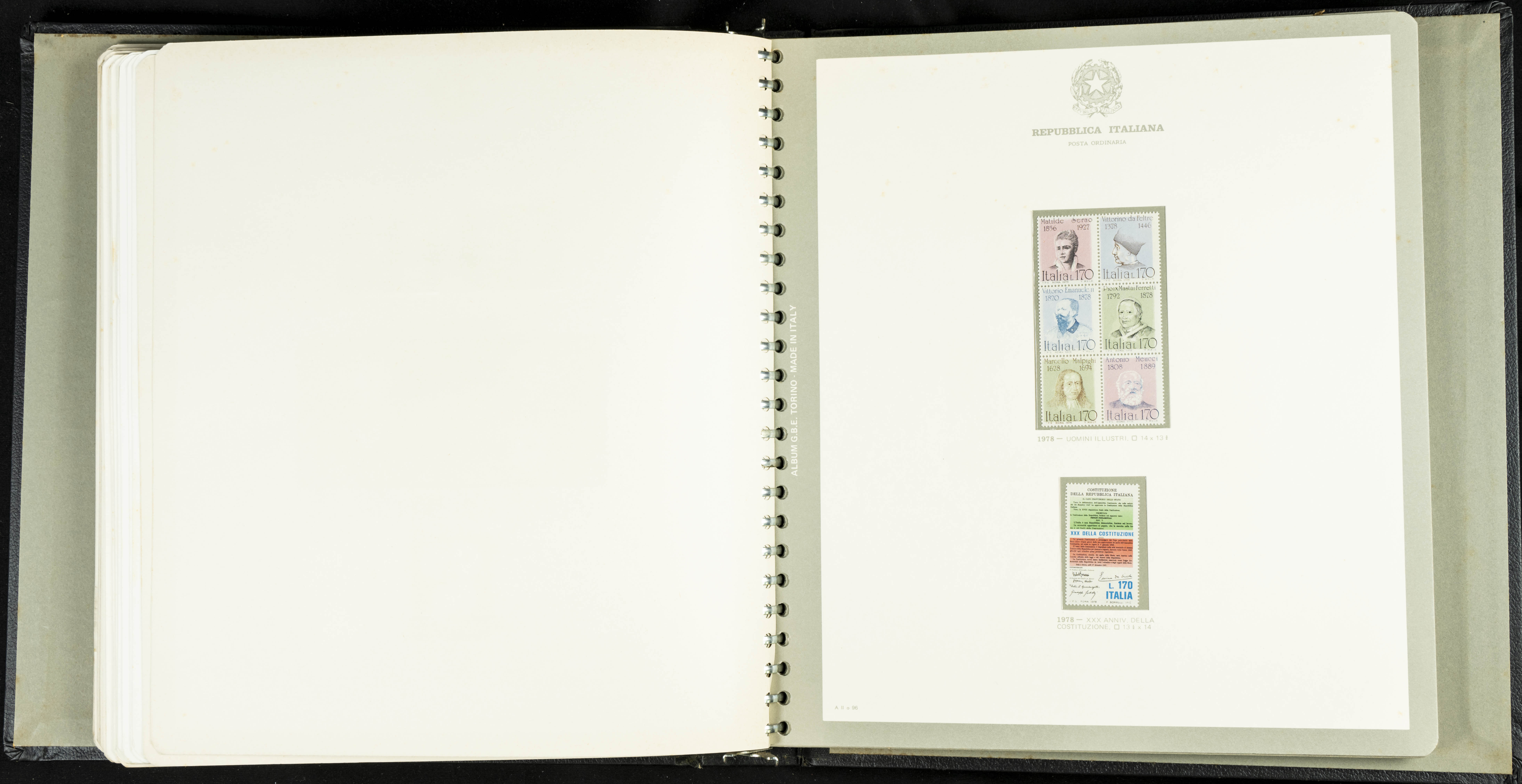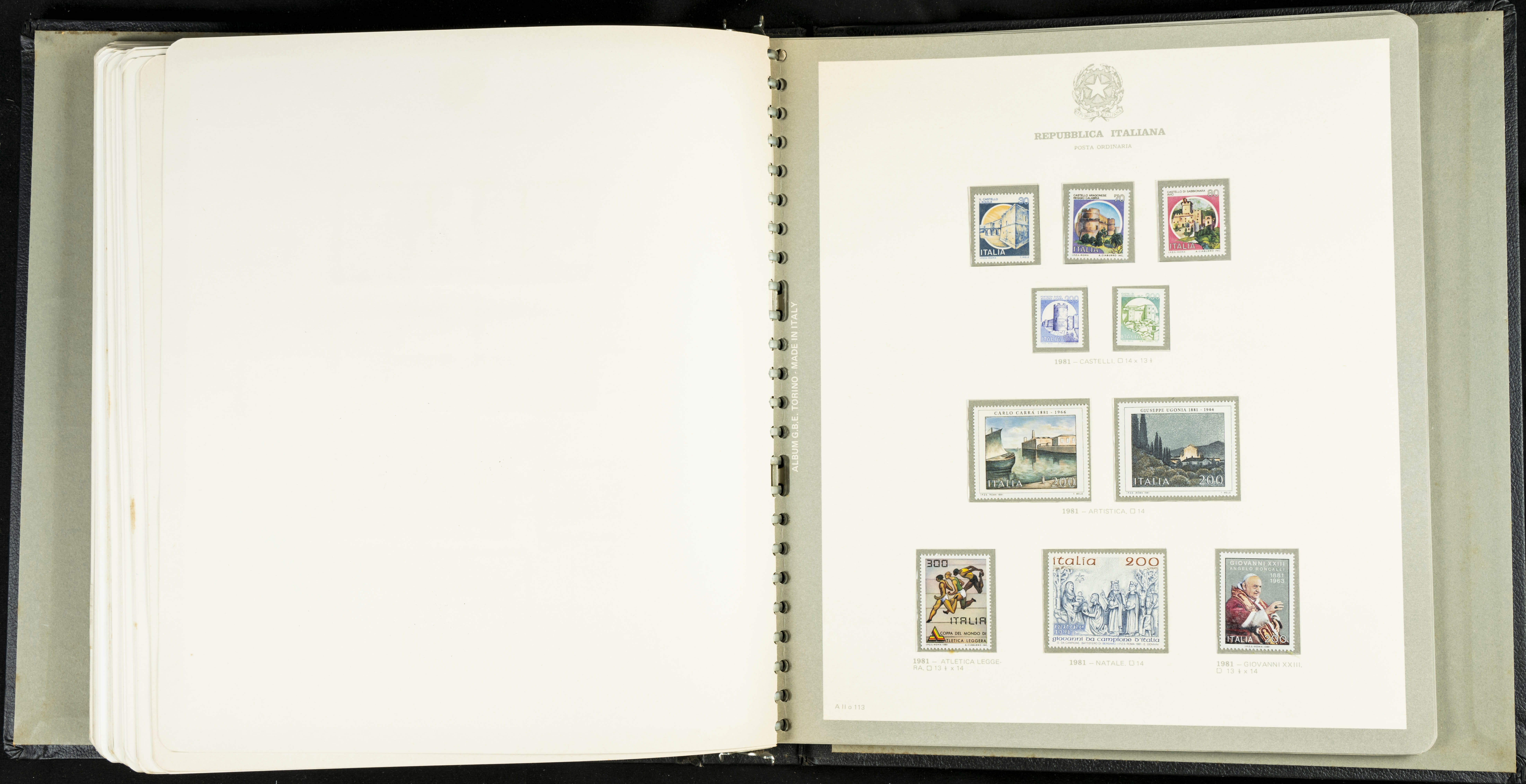 English ★★/(1862ca). Interesting collection from Italy between 1862 and 2010, in mint and used, practically complete from 1951 onwards, and most of that period without hinges, including souvenir sheets and some booklets (minor age spots mainly affecting the album pages). HIGH CATALOGUE AND FACE VALUE. TO BE EXAMINED.