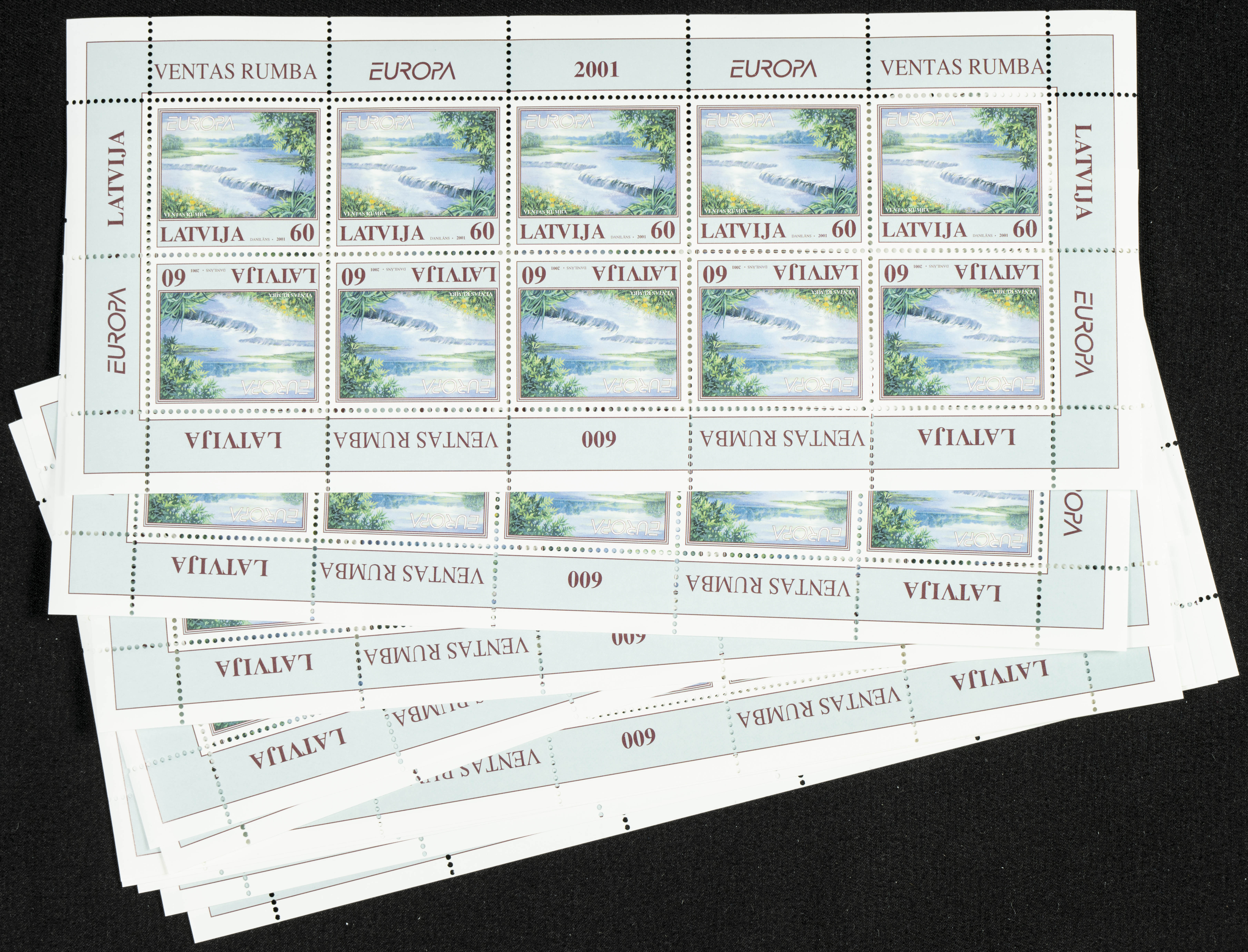English Yvert 514(100). 2001. Set of one hundred Latvian stamps, EUROPE 2001, in mint condition and in miniature sheets. TO BE EXAMINED. Yvert 2024: 400 Euros