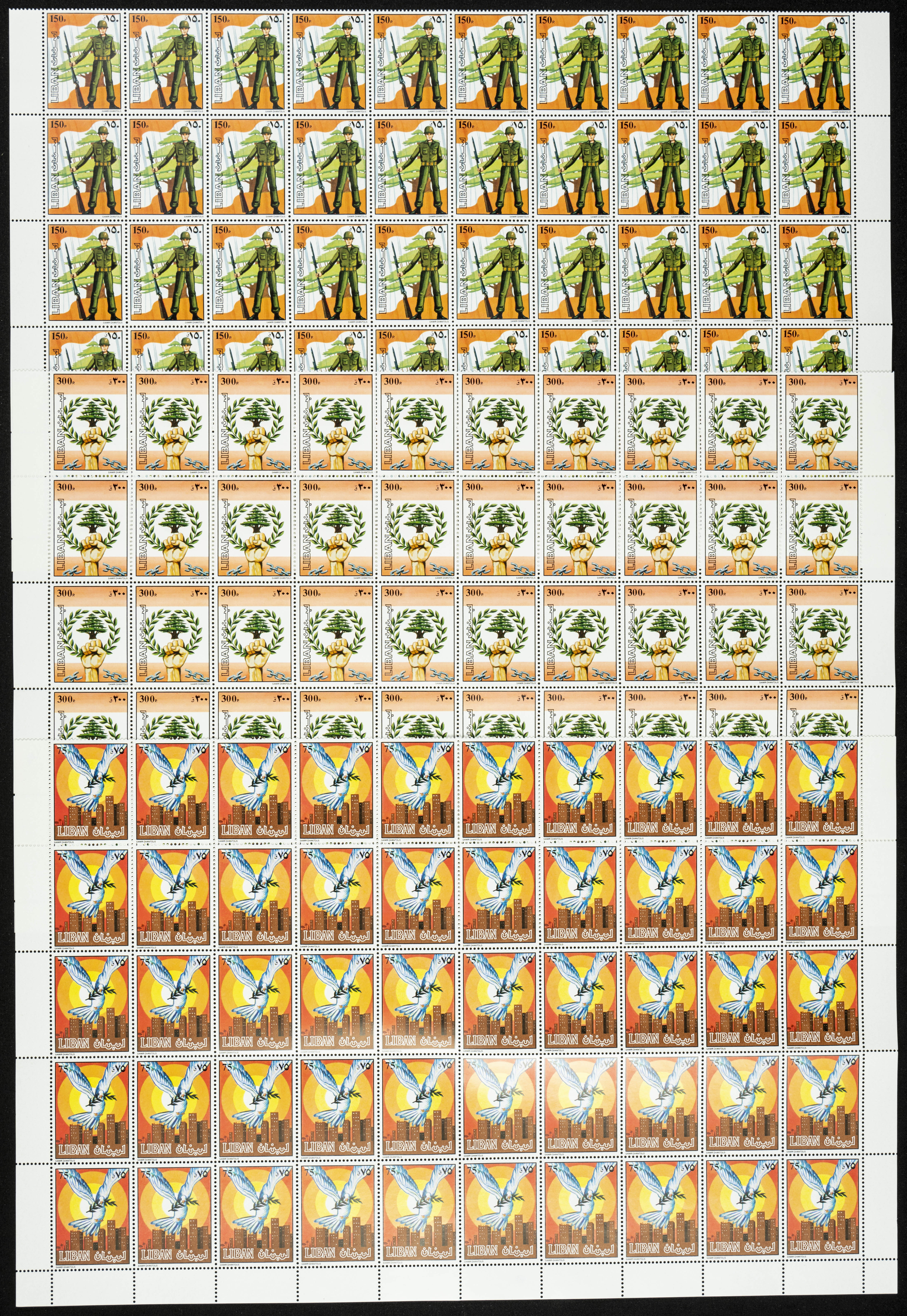 English Yvert 292/94(50). 1984. Set of fifty complete Lebanon Army Day 1984 stamps, in mint condition. TO BE EXAMINED. Yvert 2021: 600 Euros
