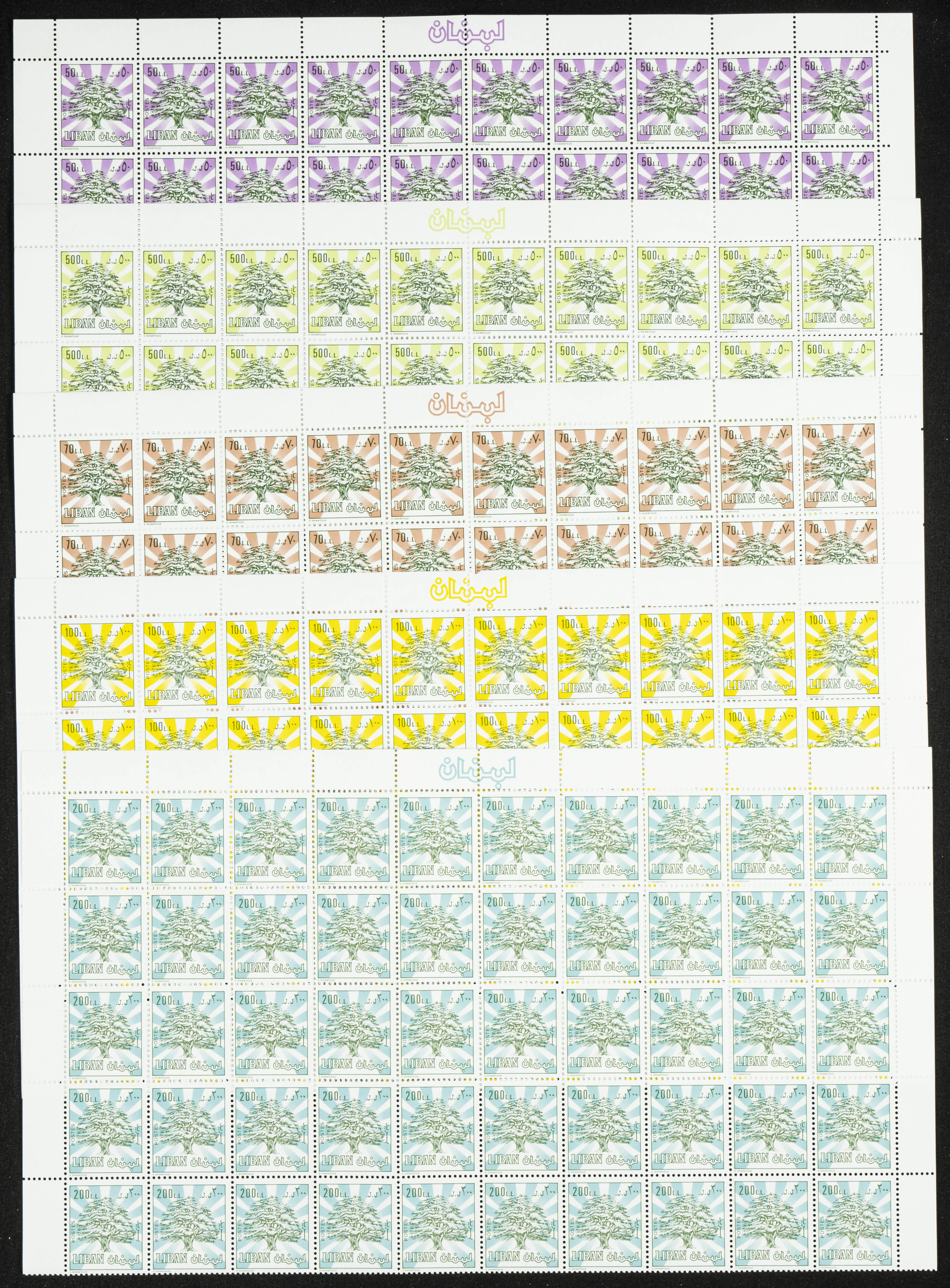 Yvert 310/14(50). 1989. Set of fifty complete series of Lebanon BASIC (Cedar) 1989, in mint condition. TO BE EXAMINED. Yvert 2021: 1,100 Euros