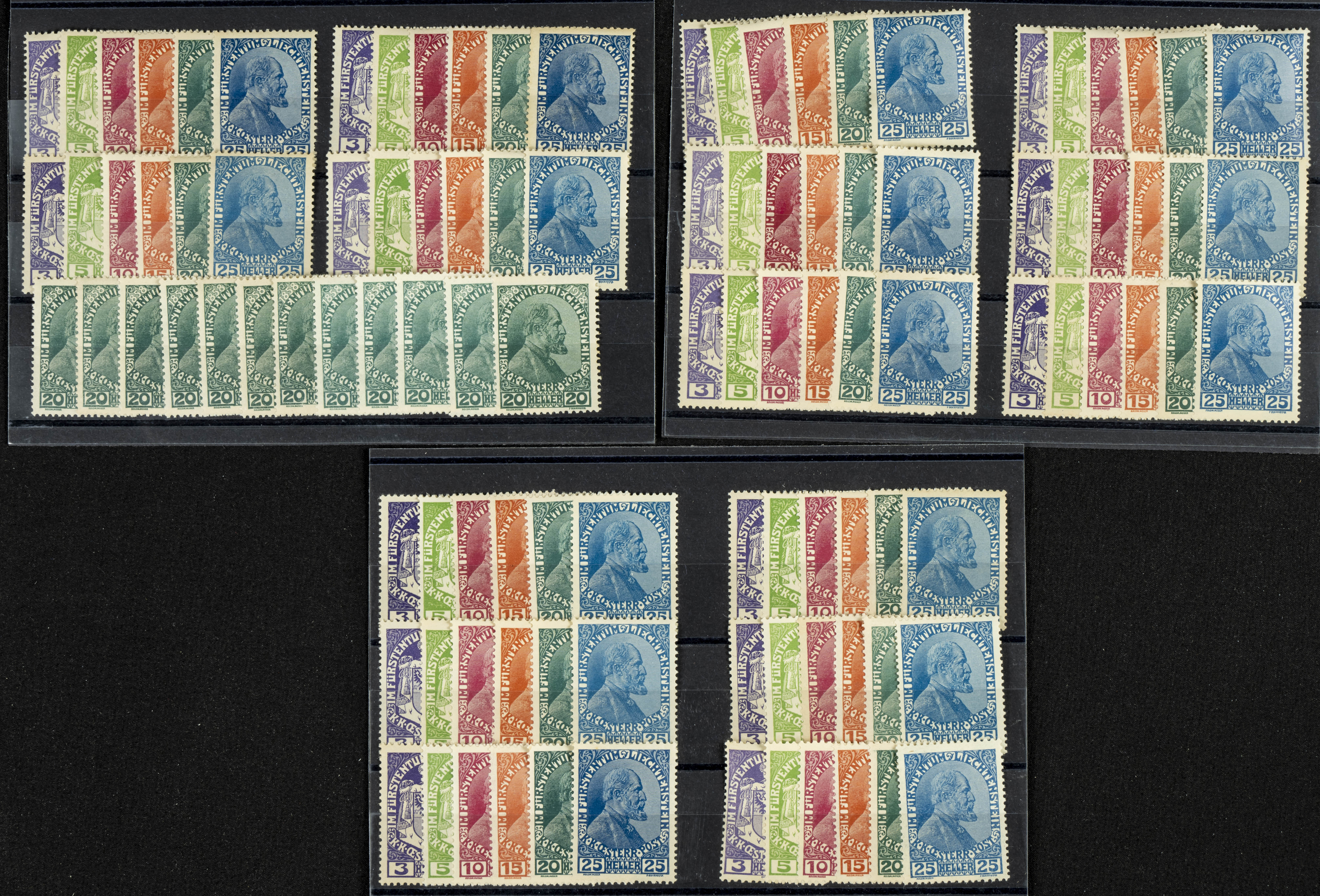 Yvert 4/9(16), 10(12). 1917. Set of sixteen complete series of Liechtenstein JOHN II stamps from 1917, in mint condition and including twelve 20-cent green-blue stamps from 1918. TO BE EXAMINED. Yvert 2024: 840 Euros