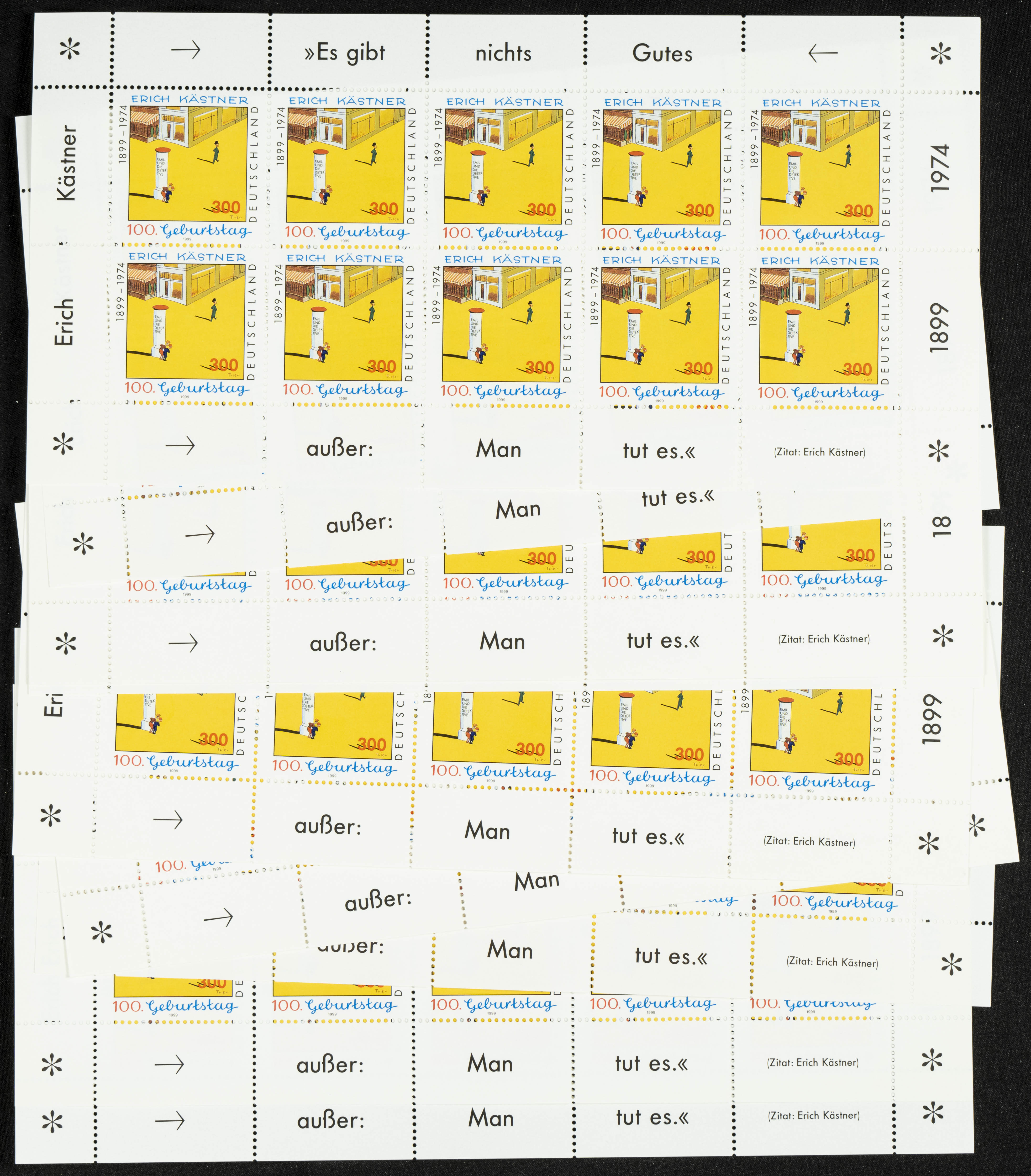English Yvert 1867 (150). 1999. Set of one hundred and fifty Erich Kastner miniature stamps from 1999, West Germany, mint condition. TO BE EXAMINED. Yvert 2022: 675 Euros