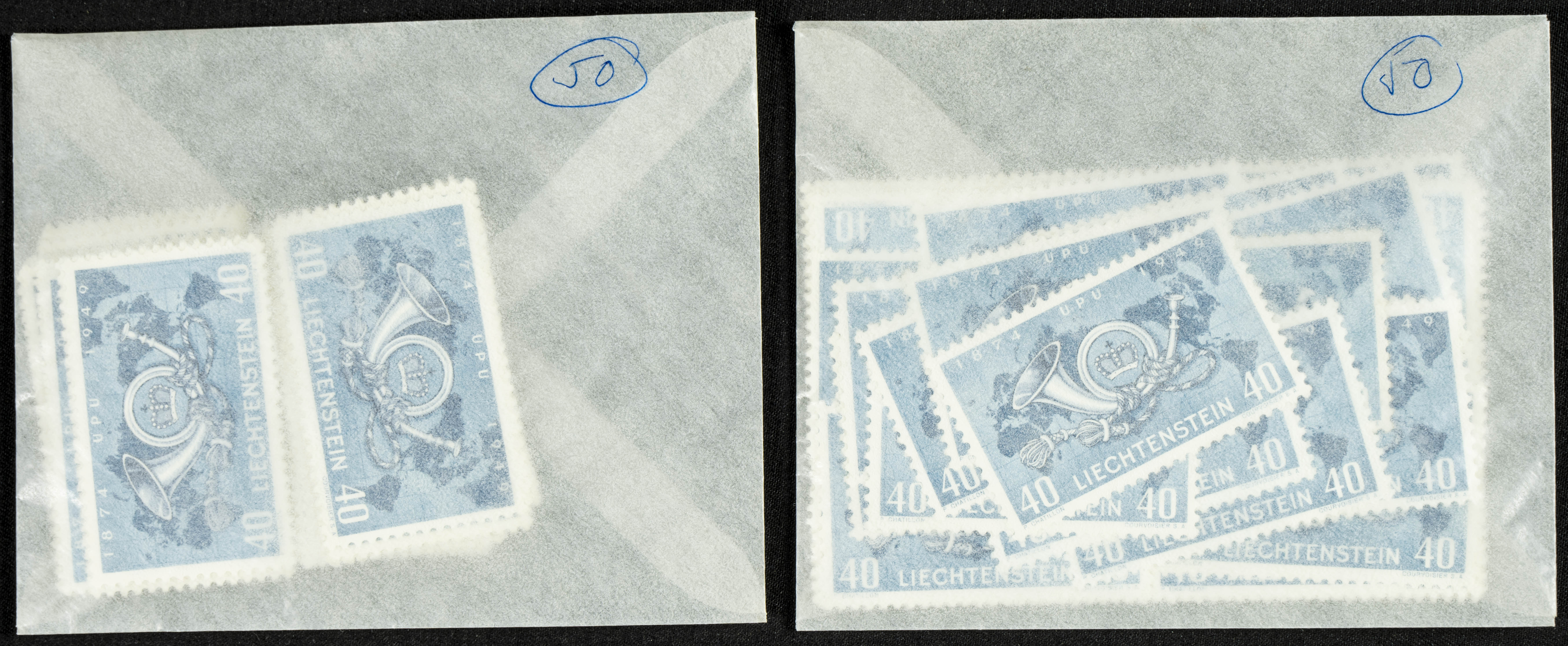 English Yvert 242(100). 1949. Set of one hundred Liechtenstein stamps commemorating the 75th Anniversary of the UPU, 1949, in mint condition. Please examine. Yvert 2024: 600 Euros