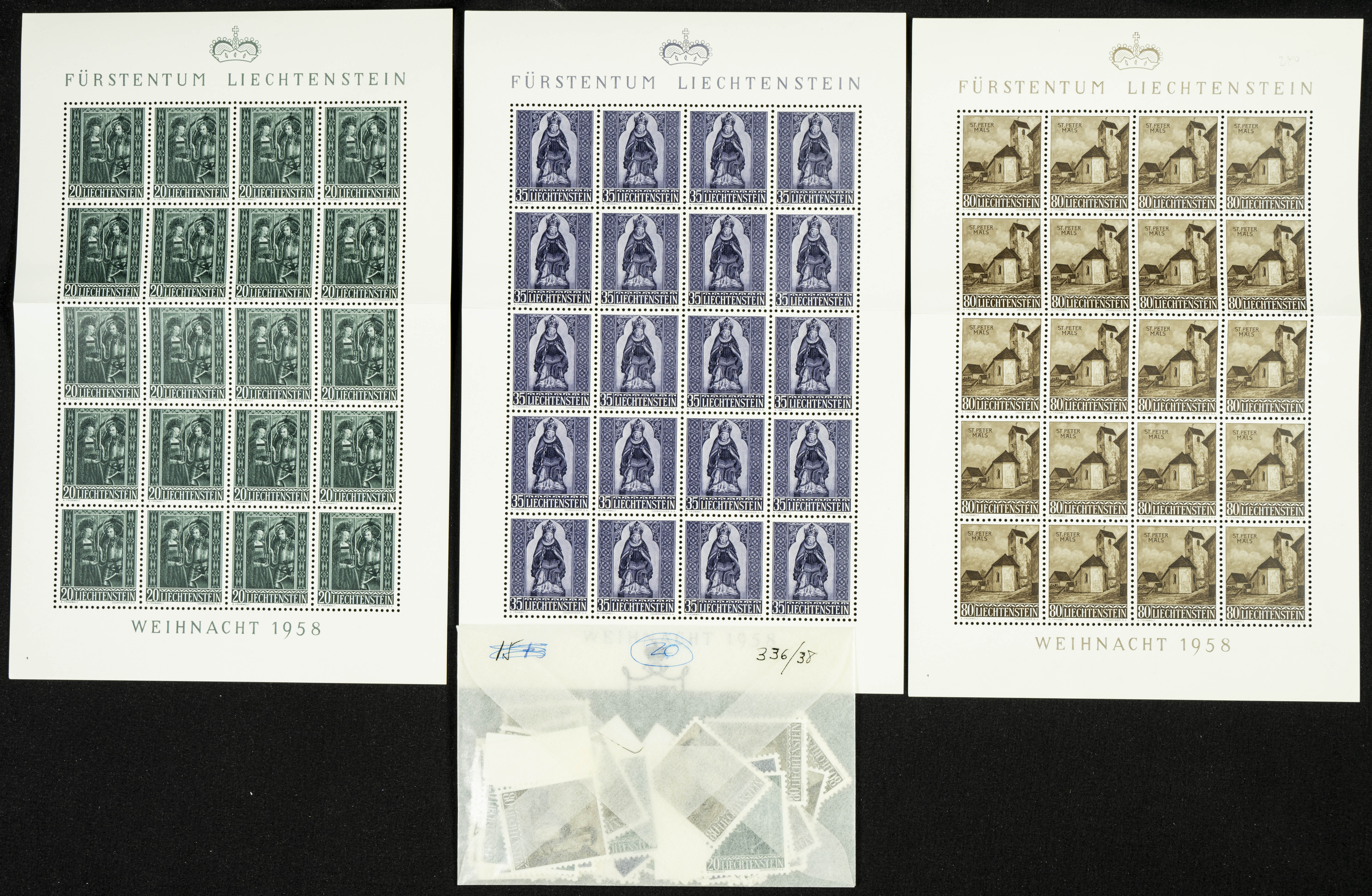 English Yvert 336/38(40). 1958. Set of forty complete Liechtenstein Christmas 1958 cards, in mint condition. Needs examination. Yvert 2024: 520 Euros