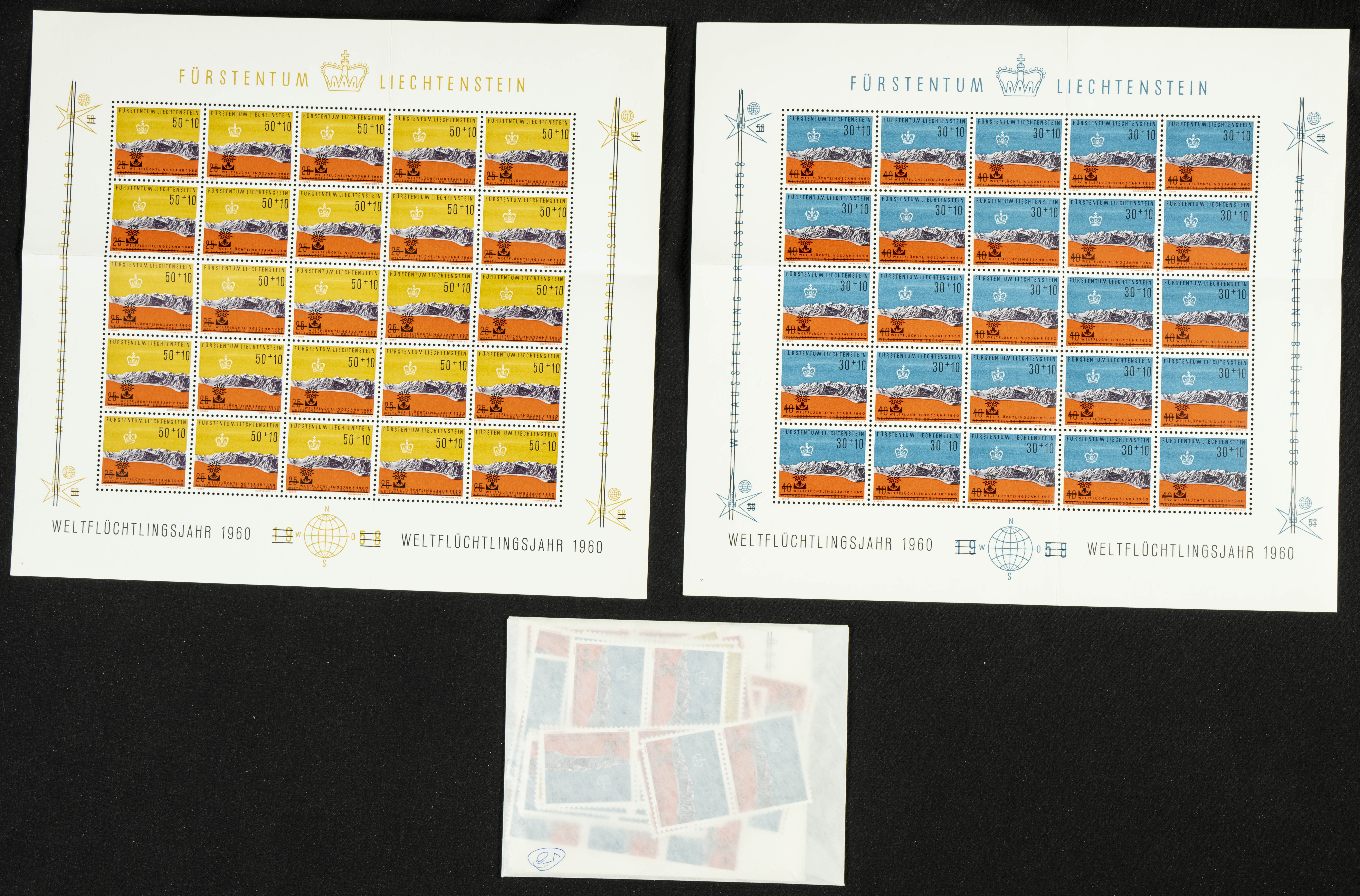 Yvert 353/54(125). 1960. Set of one hundred and twenty-five complete series of Liechtenstein REFUGEES 1960, in mint condition. TO BE EXAMINED. Yvert 2024: 500 Euros