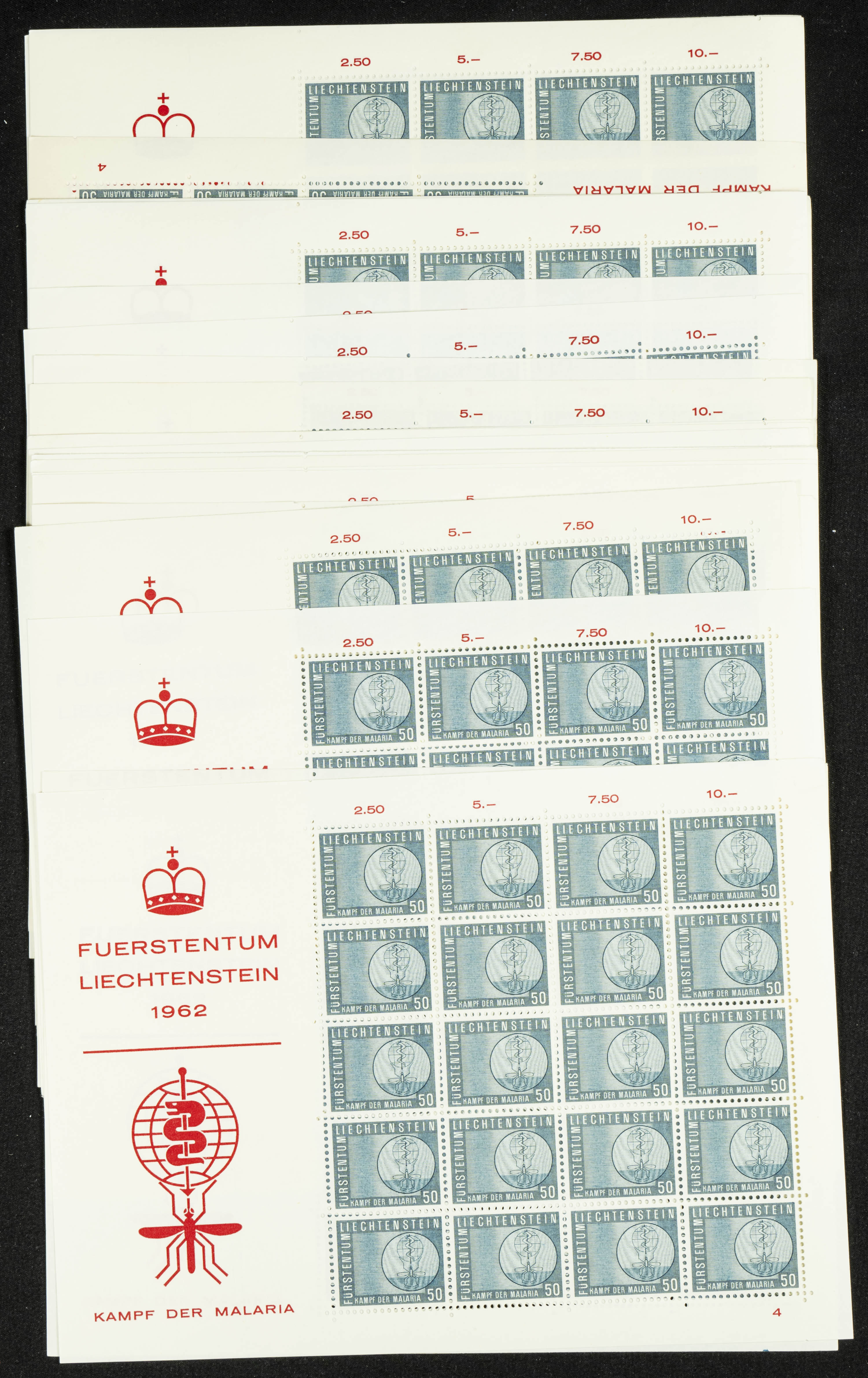 English Yvert 365(540). 1962. Set of five hundred and forty Liechtenstein Malaria 1962 miniature stamps in mint condition. TO BE EXAMINED. Yvert 2024: 405 Euros