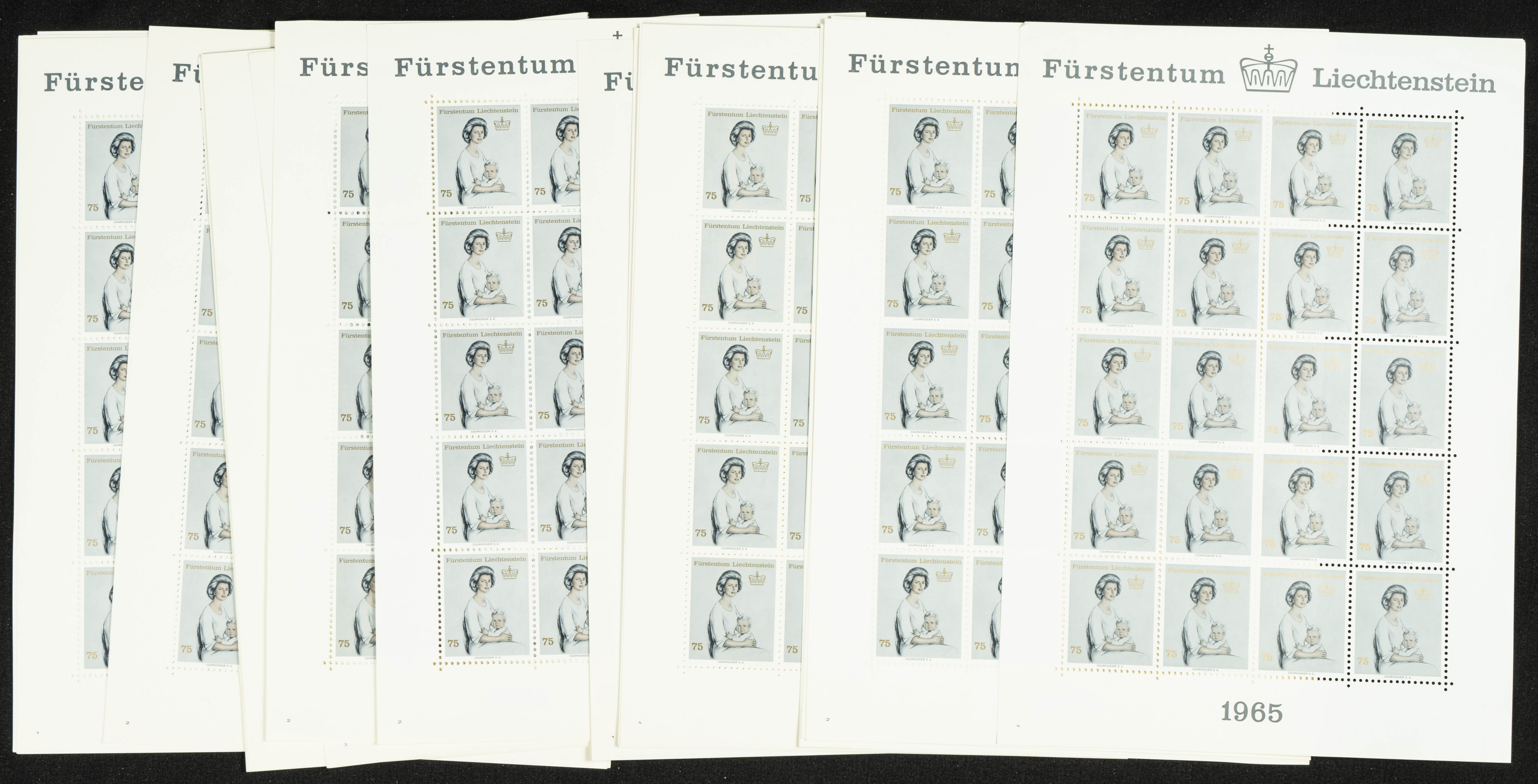 Yvert 403(500). 1965. Set of five hundred Liechtenstein Christmas 1965 stamps on miniature sheets, mint condition. TO BE EXAMINED. Yvert 2024: 500 Euros
