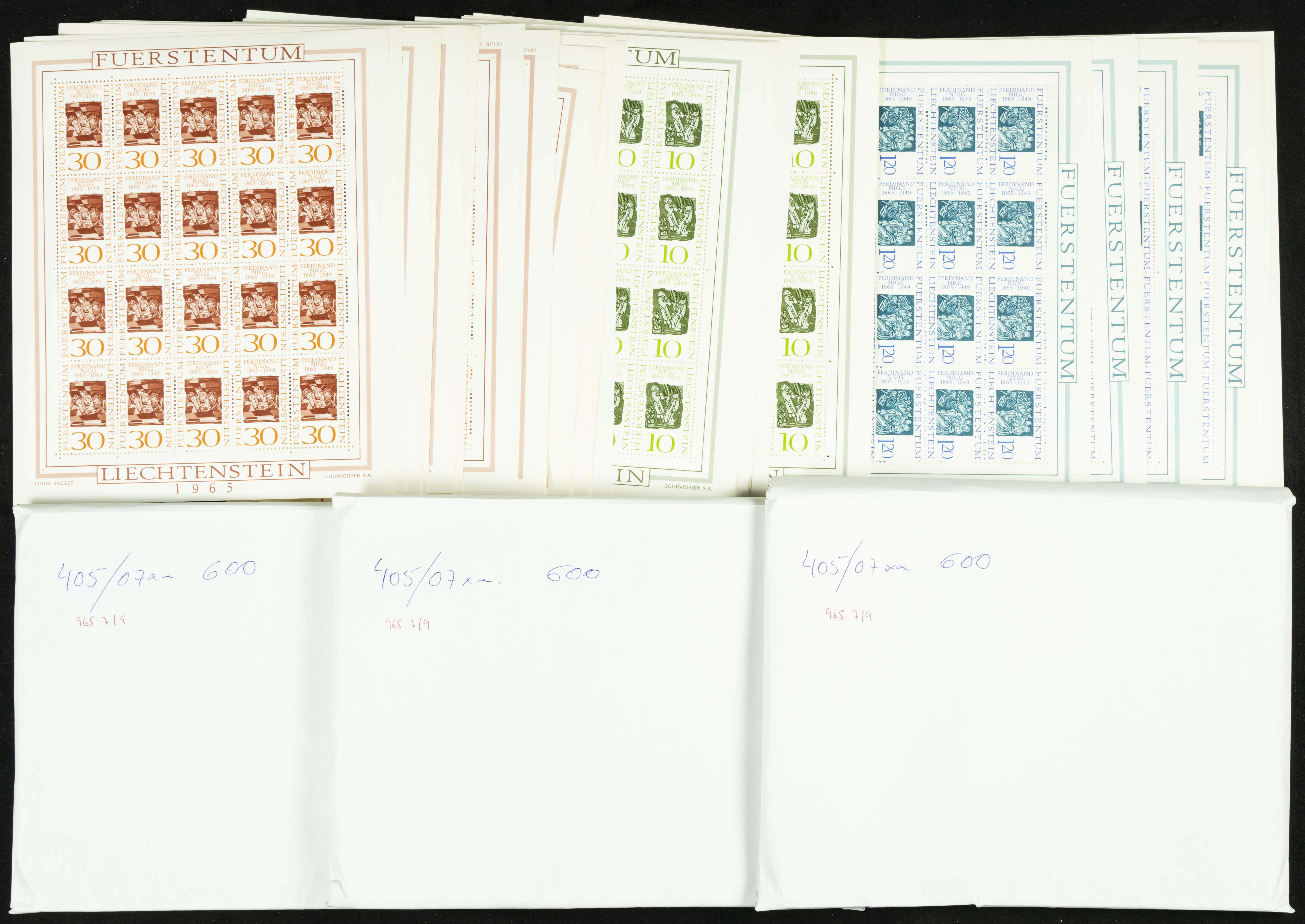 Yvert 405/07(2400). 1965. Set of two thousand four hundred complete series in miniature sheets from Liechtenstein by Ferdinand Nigg. 1965, in mint condition. To be examined. Yvert 2024: 4,800 Euros