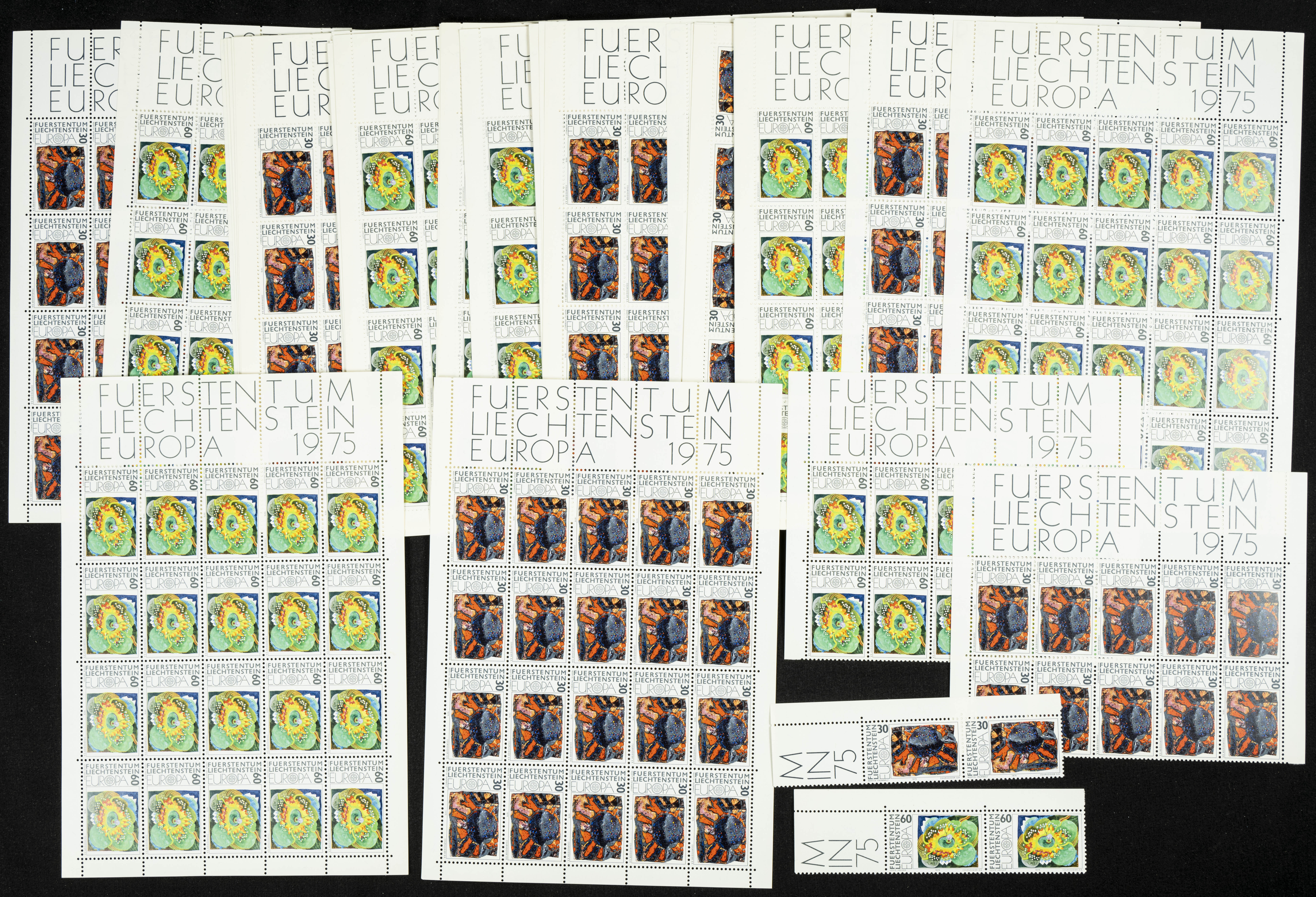 English Yvert 566/67(492). 1975. Set of four hundred and ninety-two complete series, mostly on miniature sheets, from Liechtenstein EUROPE 1975, in mint condition. TO BE EXAMINED. Yvert 2024: 738 Euros