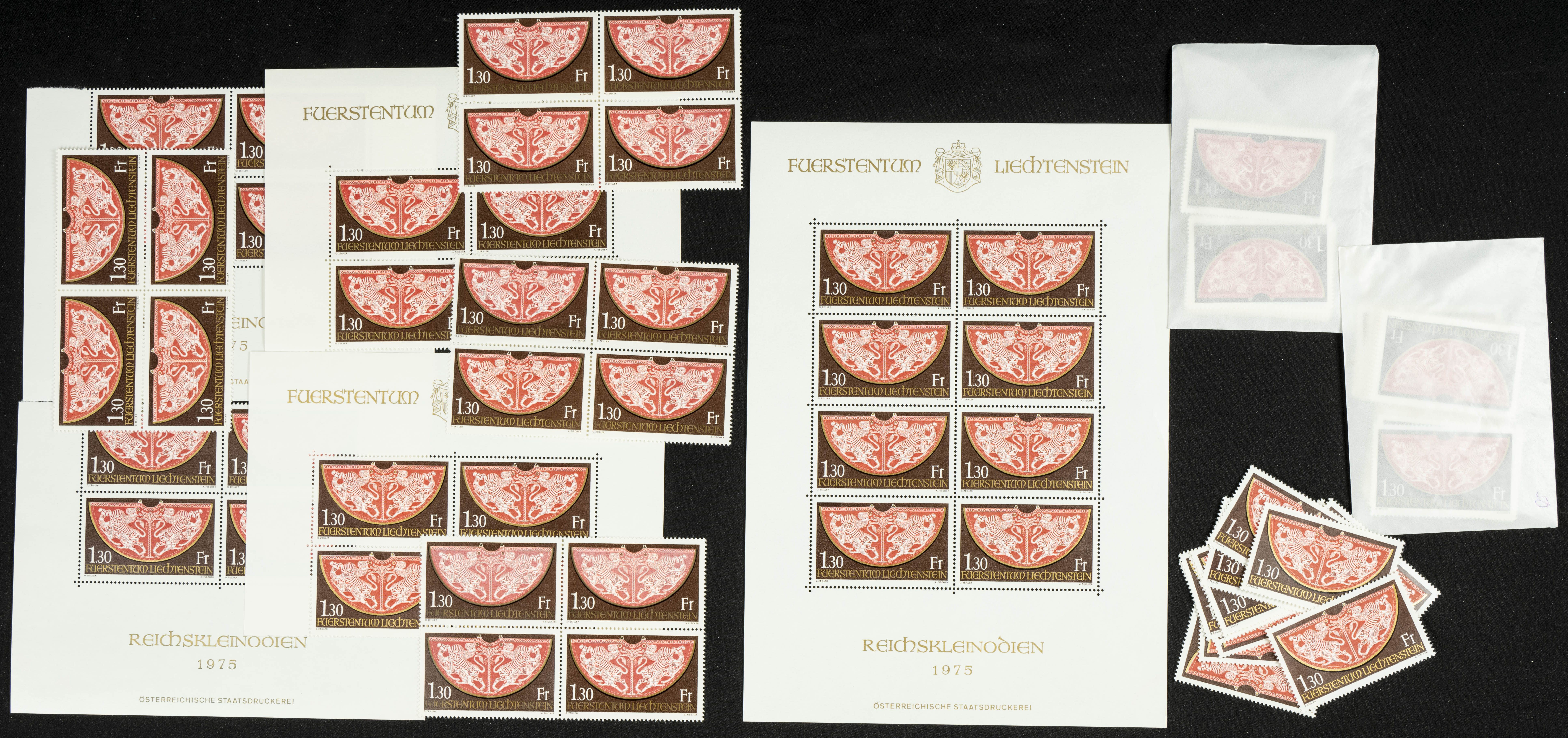 English Yvert 577(154). 1975. Set of one hundred and fifty-four stamps, mostly on miniature sheets, from Liechtenstein IMPERIAL JEWELS 1975, in mint condition. TO BE EXAMINED. Yvert 2024: 616 Euros