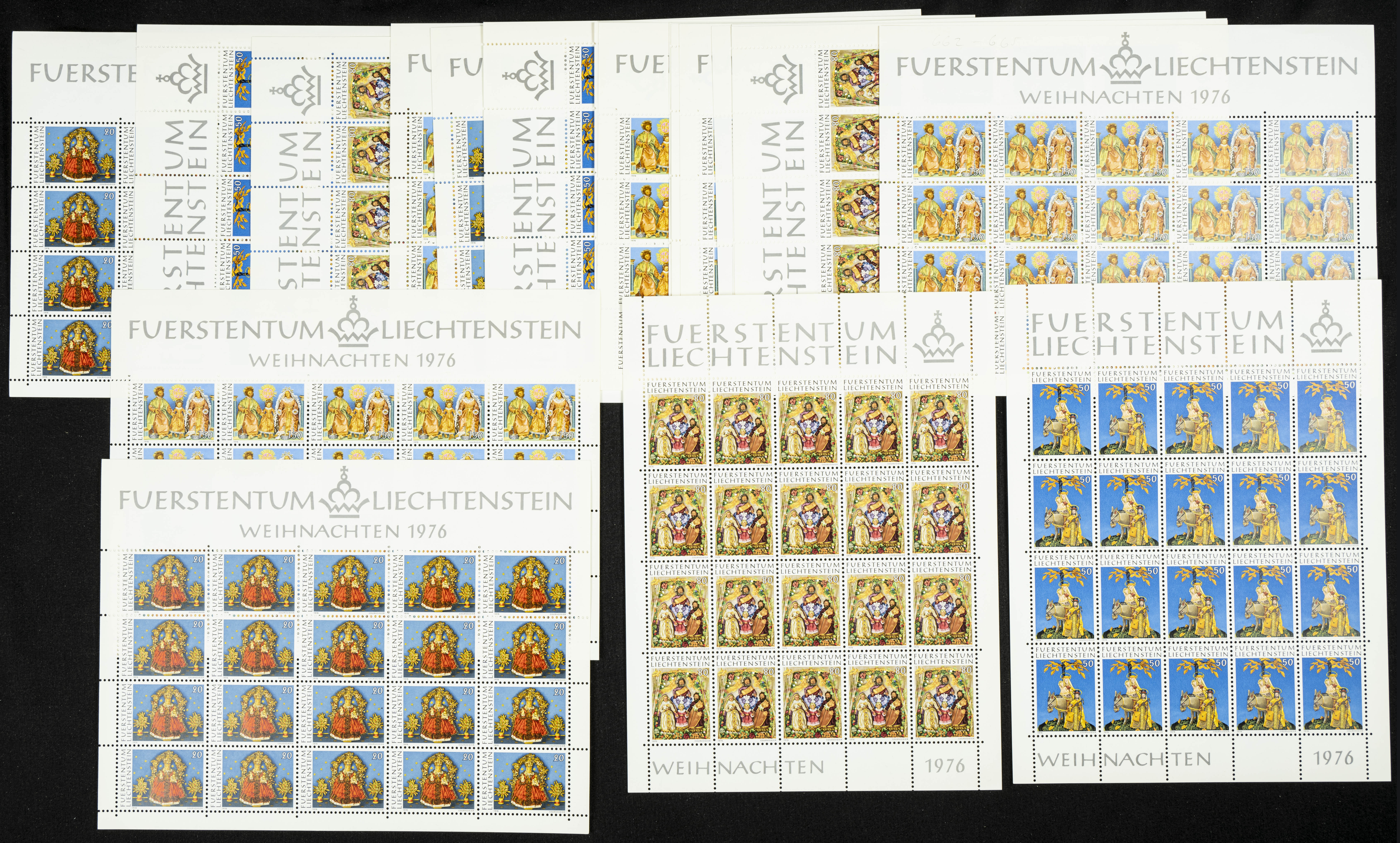 English Yvert 603/06(100). 1976. Set of one hundred complete Liechtenstein Christmas 1976 miniature postcards, in mint condition. Needs examination. Yvert 2024: 450 Euros