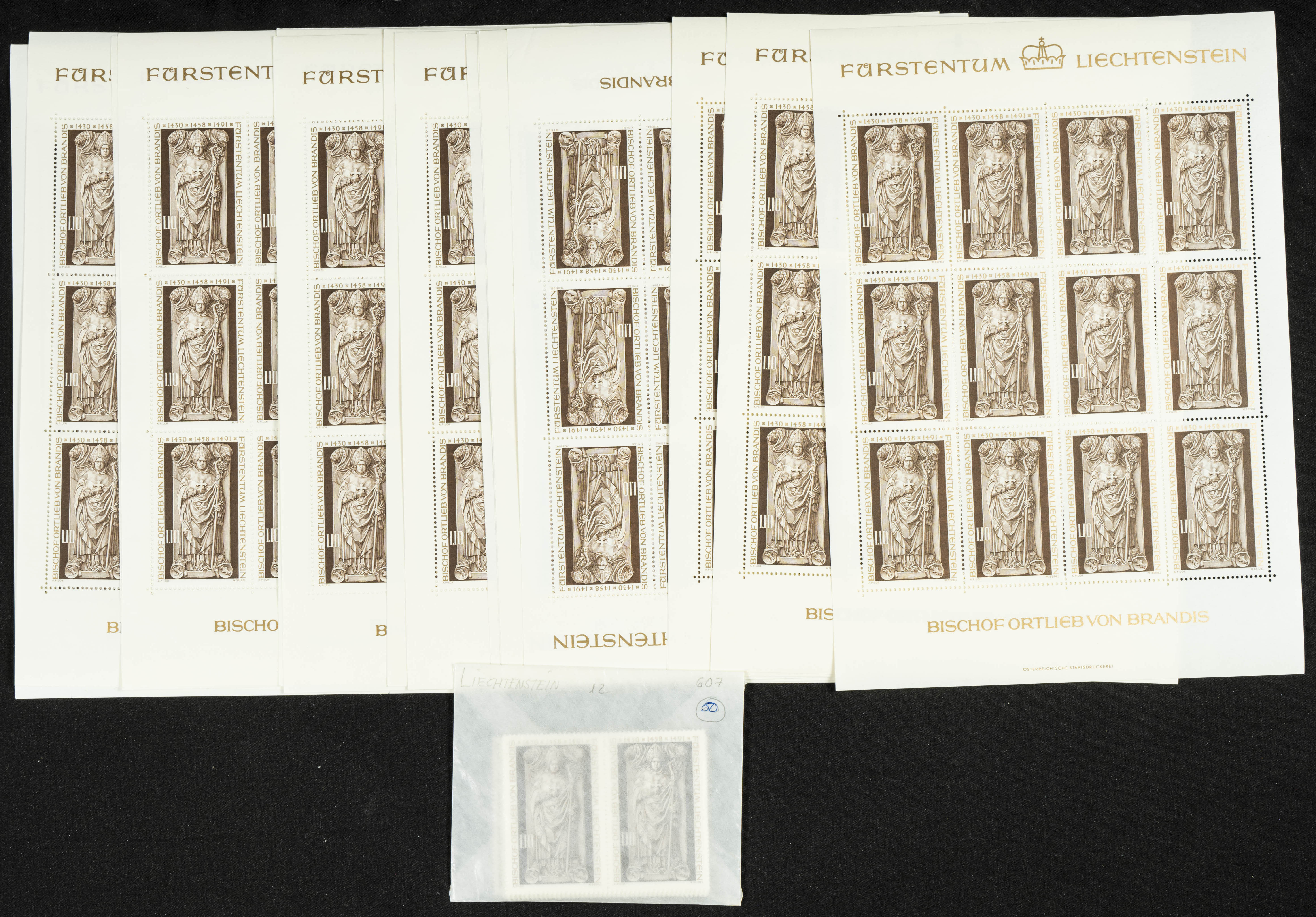 English Yvert 607(290). 1976. Set of two hundred and ninety stamps, mostly in miniature sheets, from Liechtenstein, ORTLEB VON BRANDTS 1976, in mint condition. TO BE EXAMINED. Yvert 2024: 507 Euros