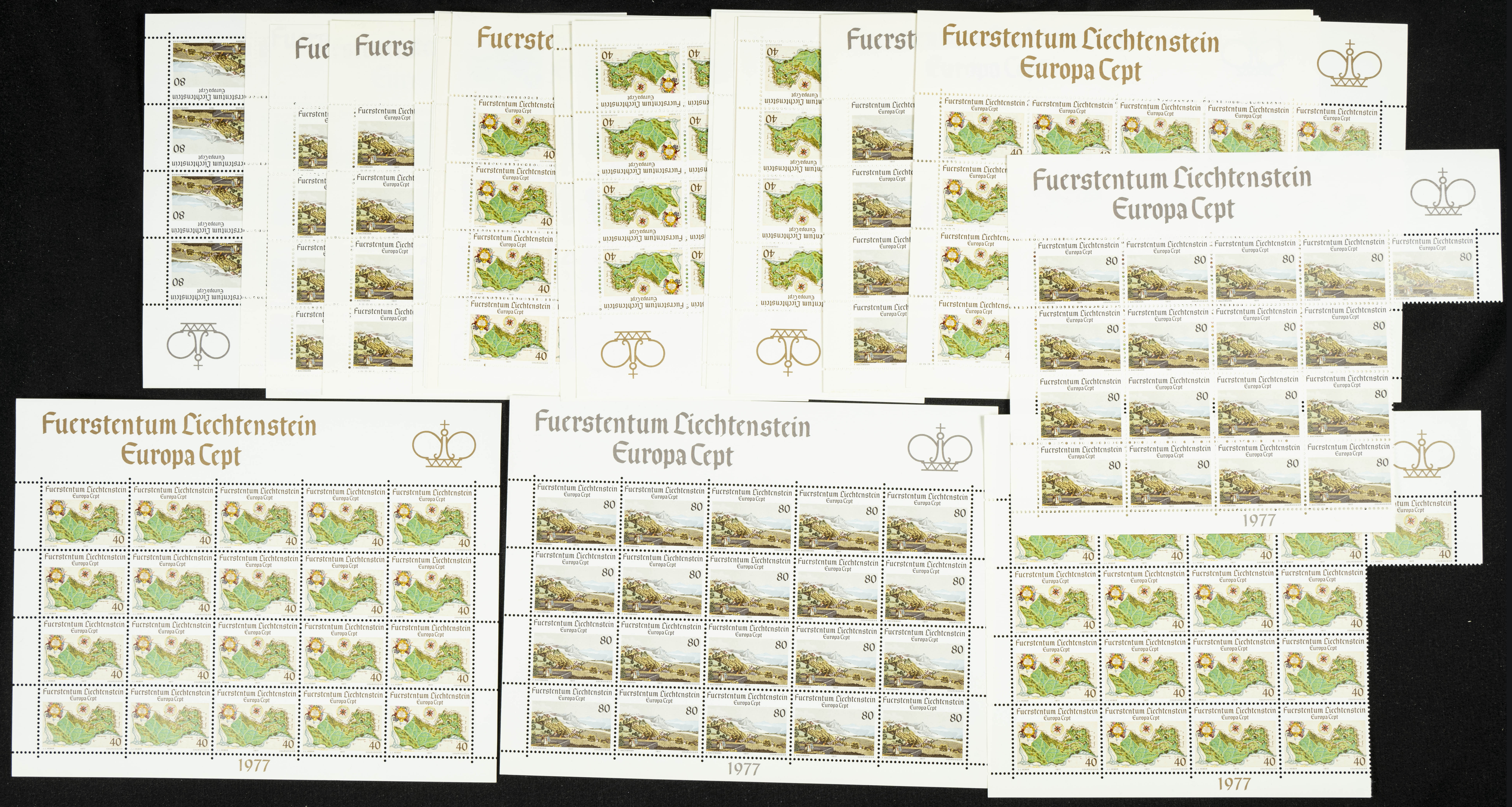 English Yvert 612/13(257). 1977. Set of two hundred and fifty-seven complete series, mostly miniature sheets, from Liechtenstein EUROPE 1977, in mint condition. TO BE EXAMINED. Yvert 2024: 514 Euros