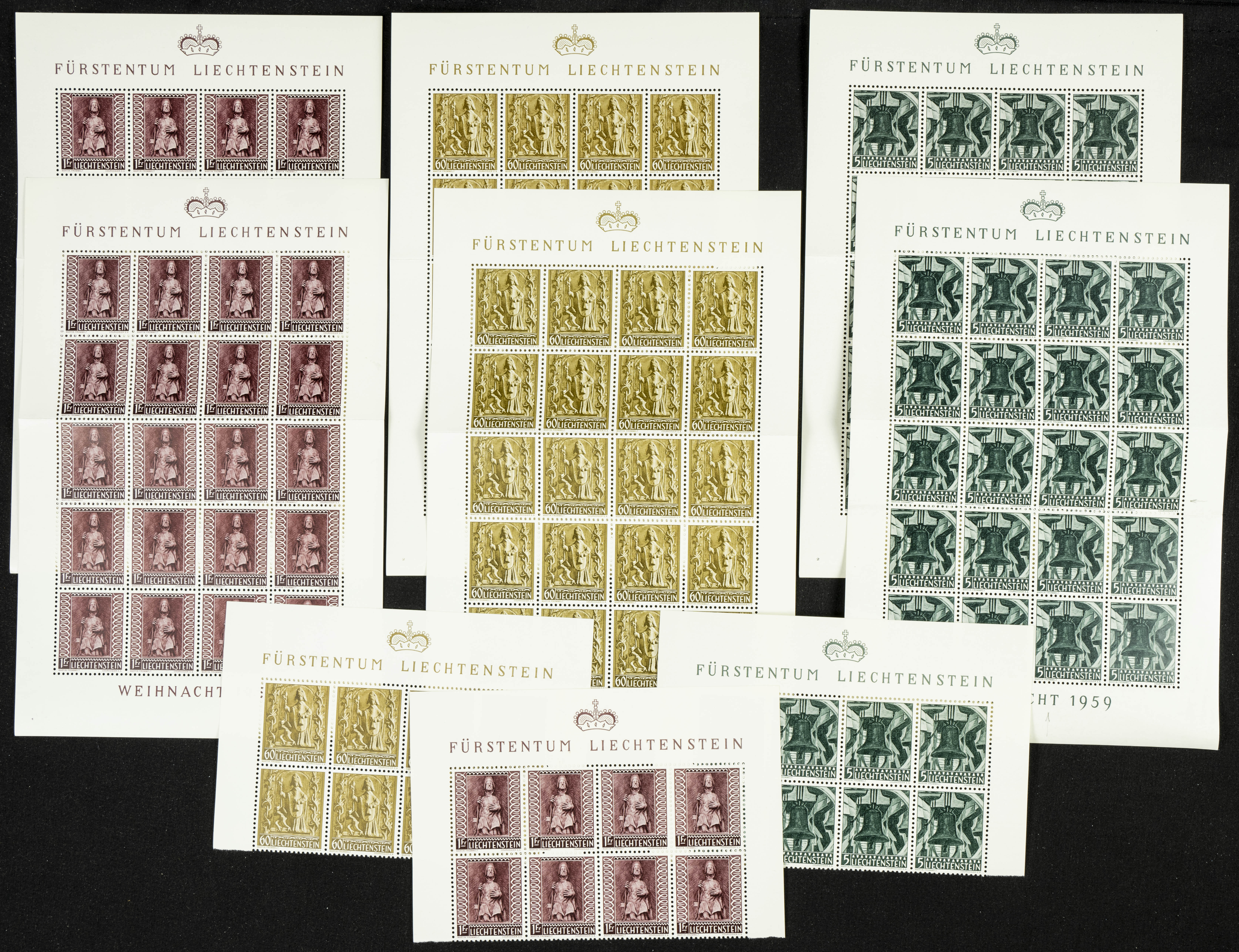 Yvert 650/52(48). 1959. Set of forty-eight complete Liechtenstein Christmas 1959 cards, in mint condition. Needs examination. Yvert 2024: 840 Euros