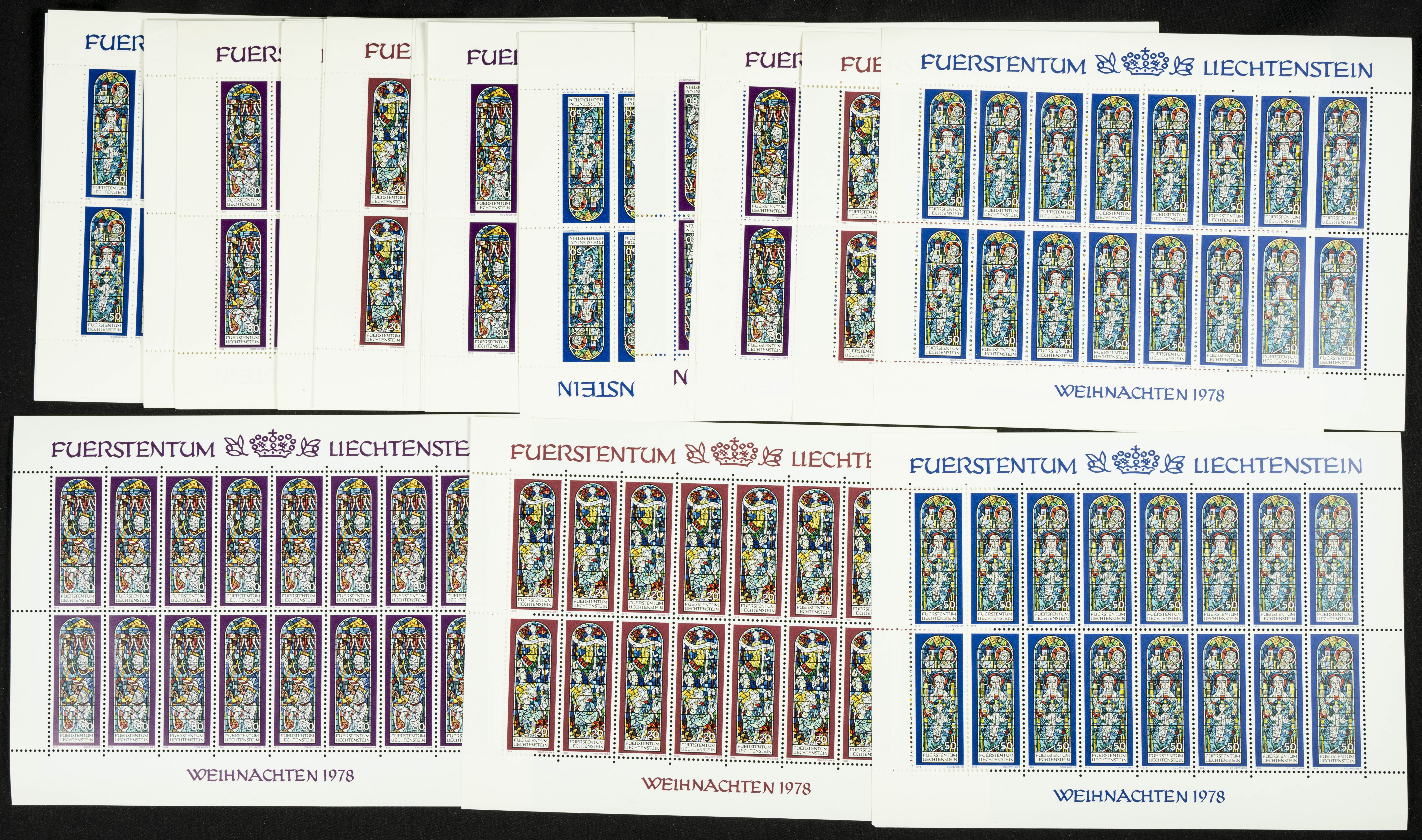 Yvert 661/63(256). 1978. Set of two hundred and fifty-six complete Liechtenstein Christmas 1978 miniature series, in mint condition. Needs examination. Yvert 2024: 576 Euros