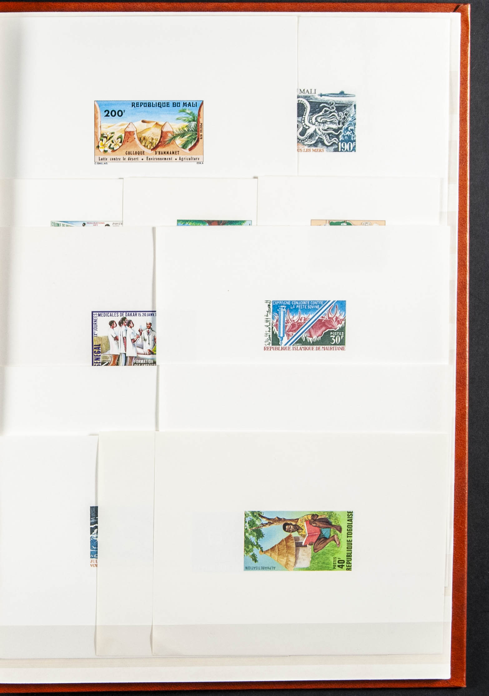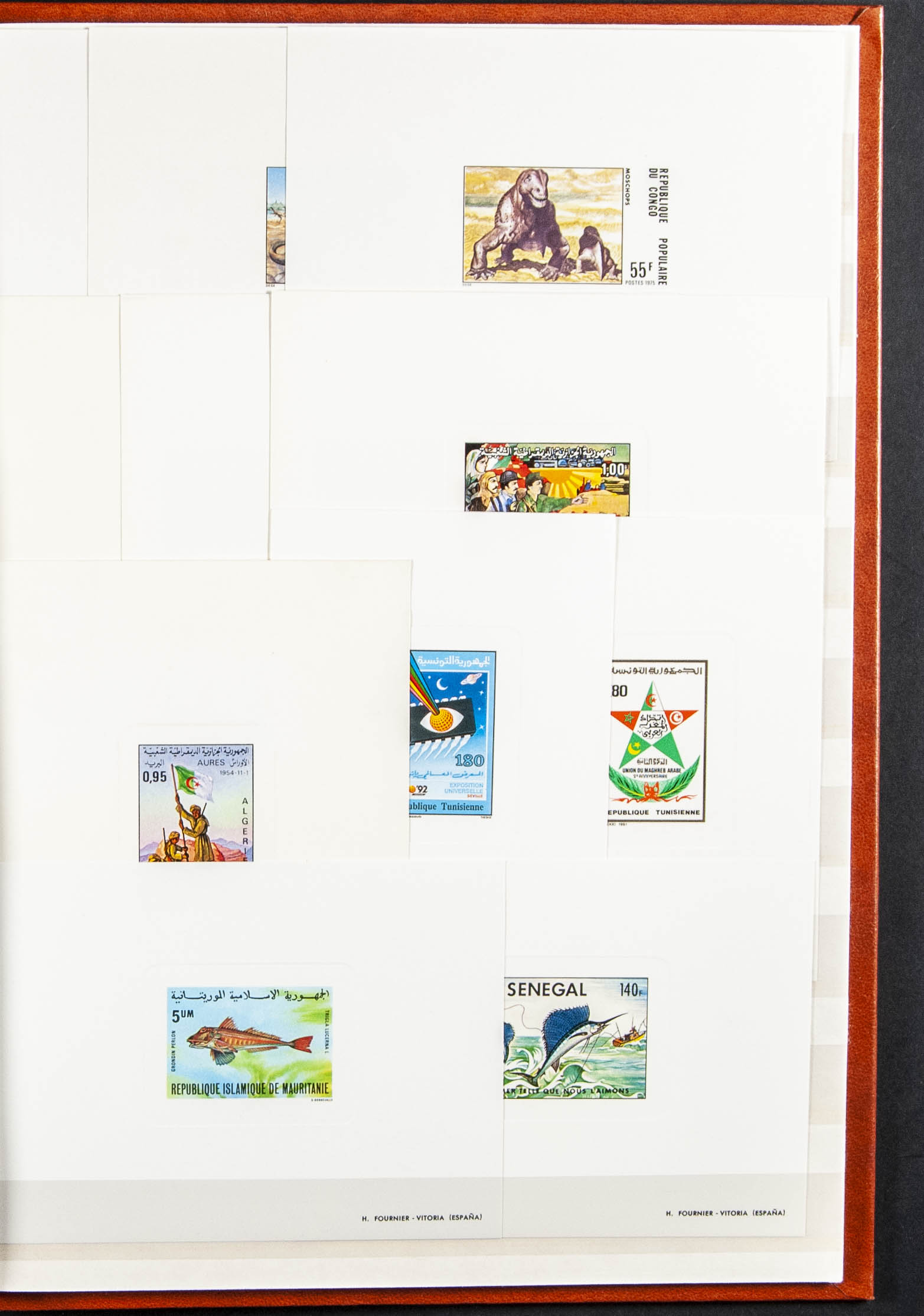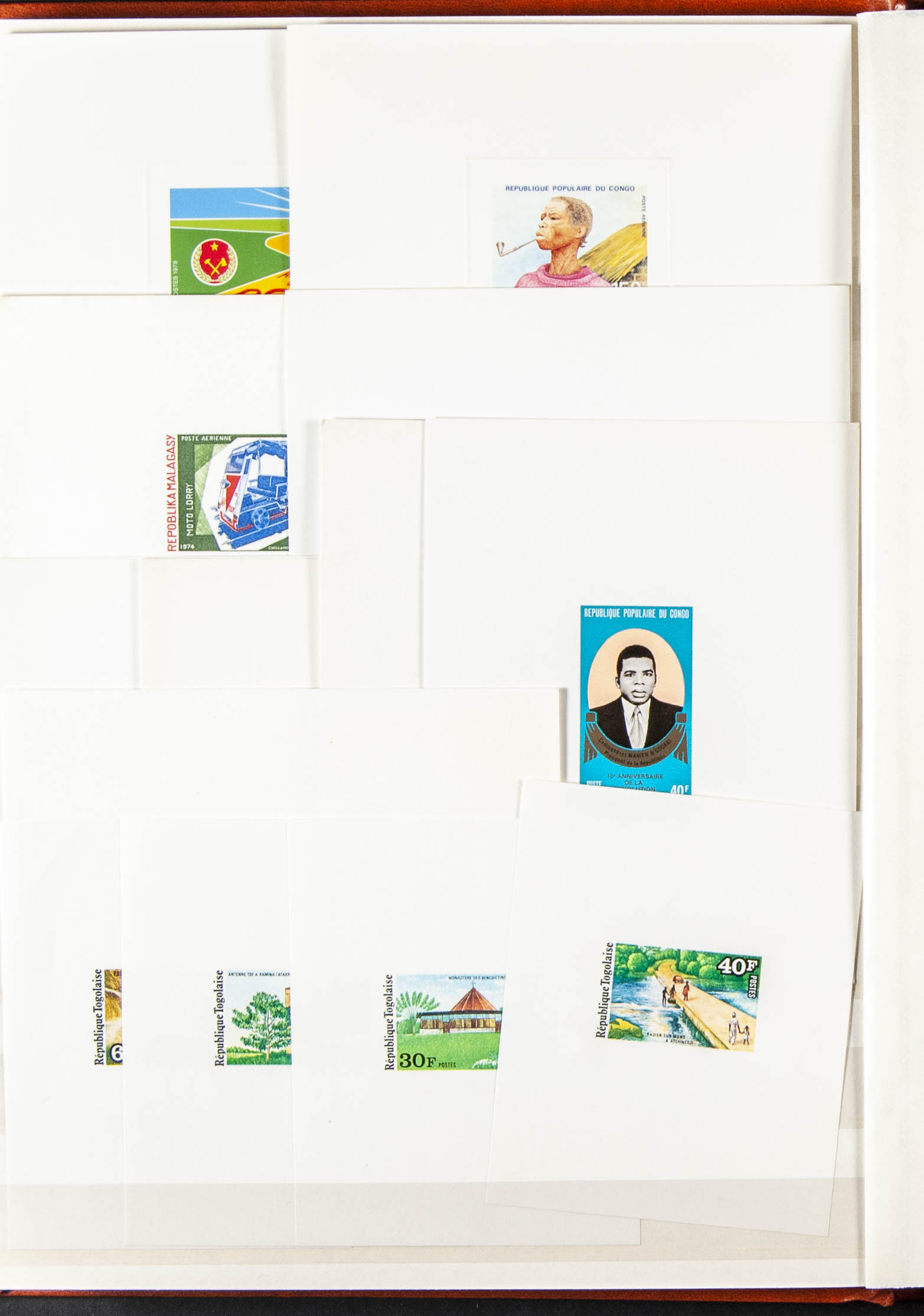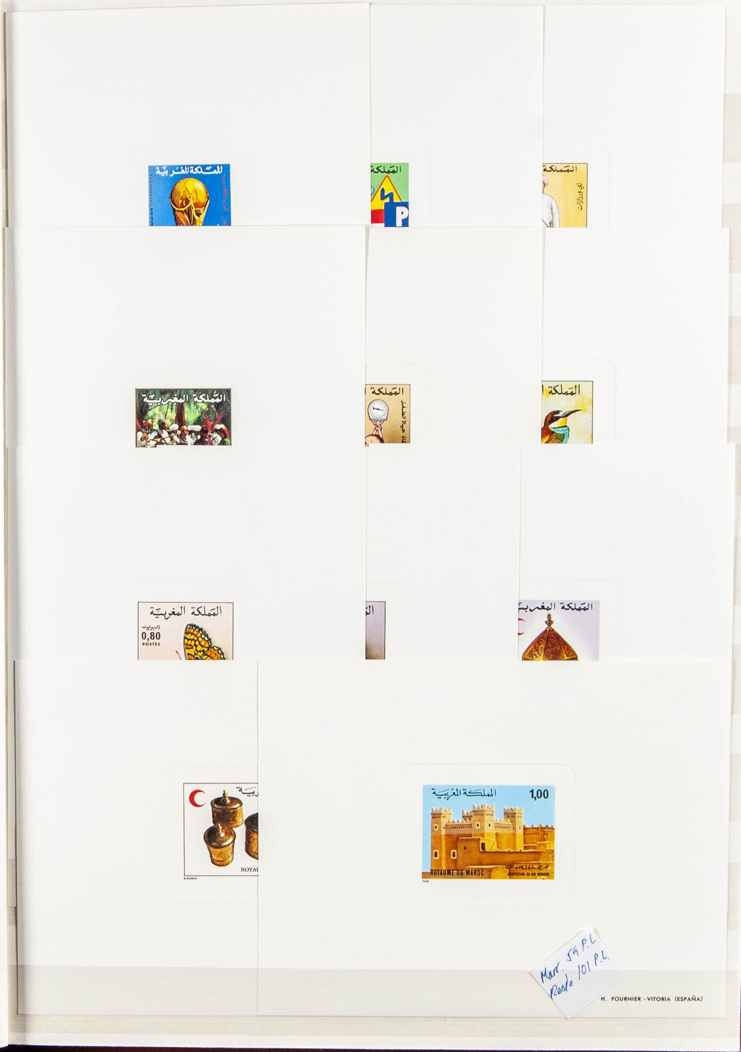 English ★★(1965ca). Interesting collection of fifty-nine Luxury Proofs from Independent Morocco and one hundred and one from Ex-French Colonies (total 160 proofs), most of them between 1965 and 1985. TO BE EXAMINED.