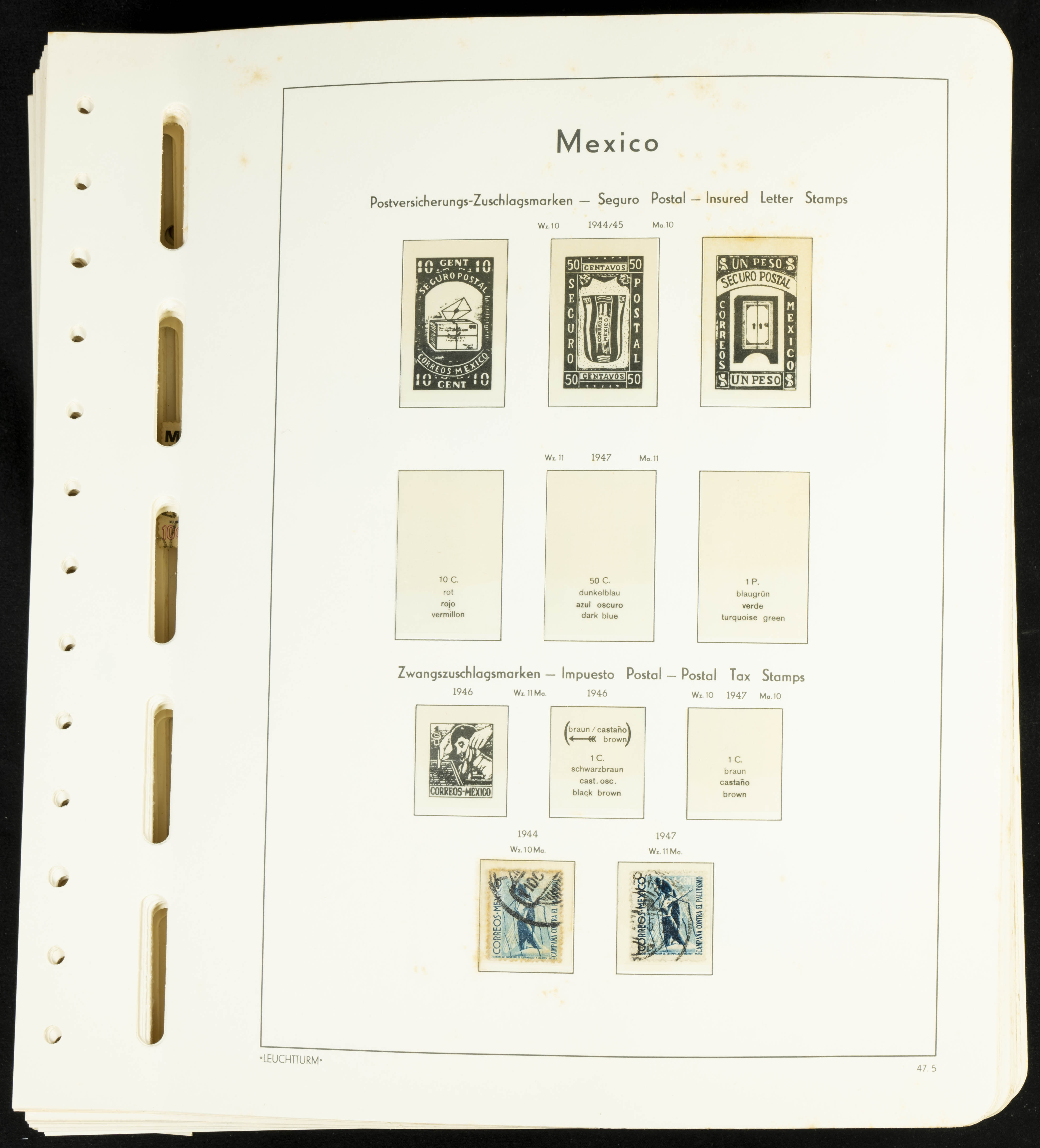 ★★/(1944ca). Collection from Mexico between 1944 and 1991, in mint condition (mostly without hinges) and used (mounted on Faro sheets, age spots mainly affecting album pages). HIGH CATALOG VALUE. TO BE EXAMINED.