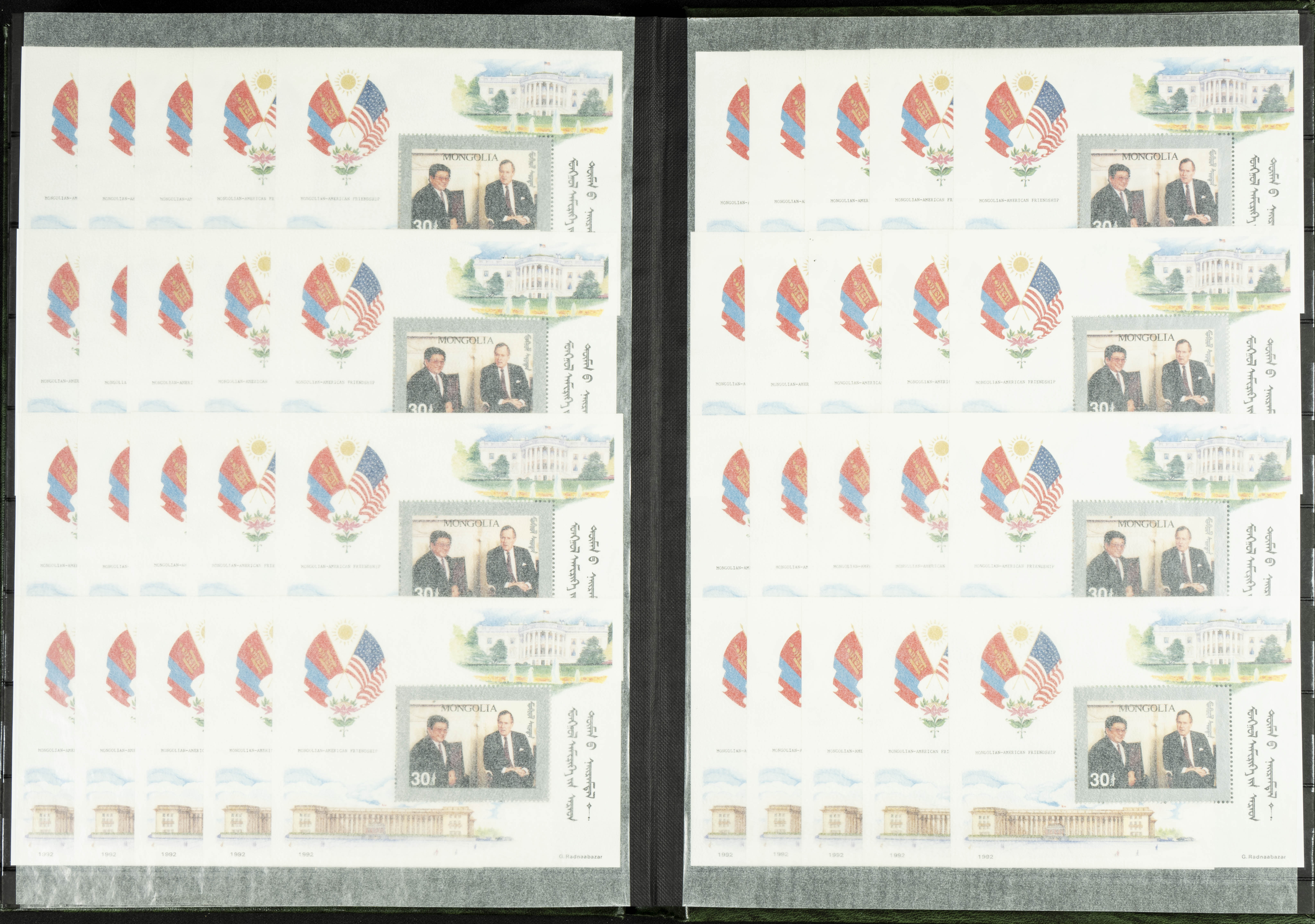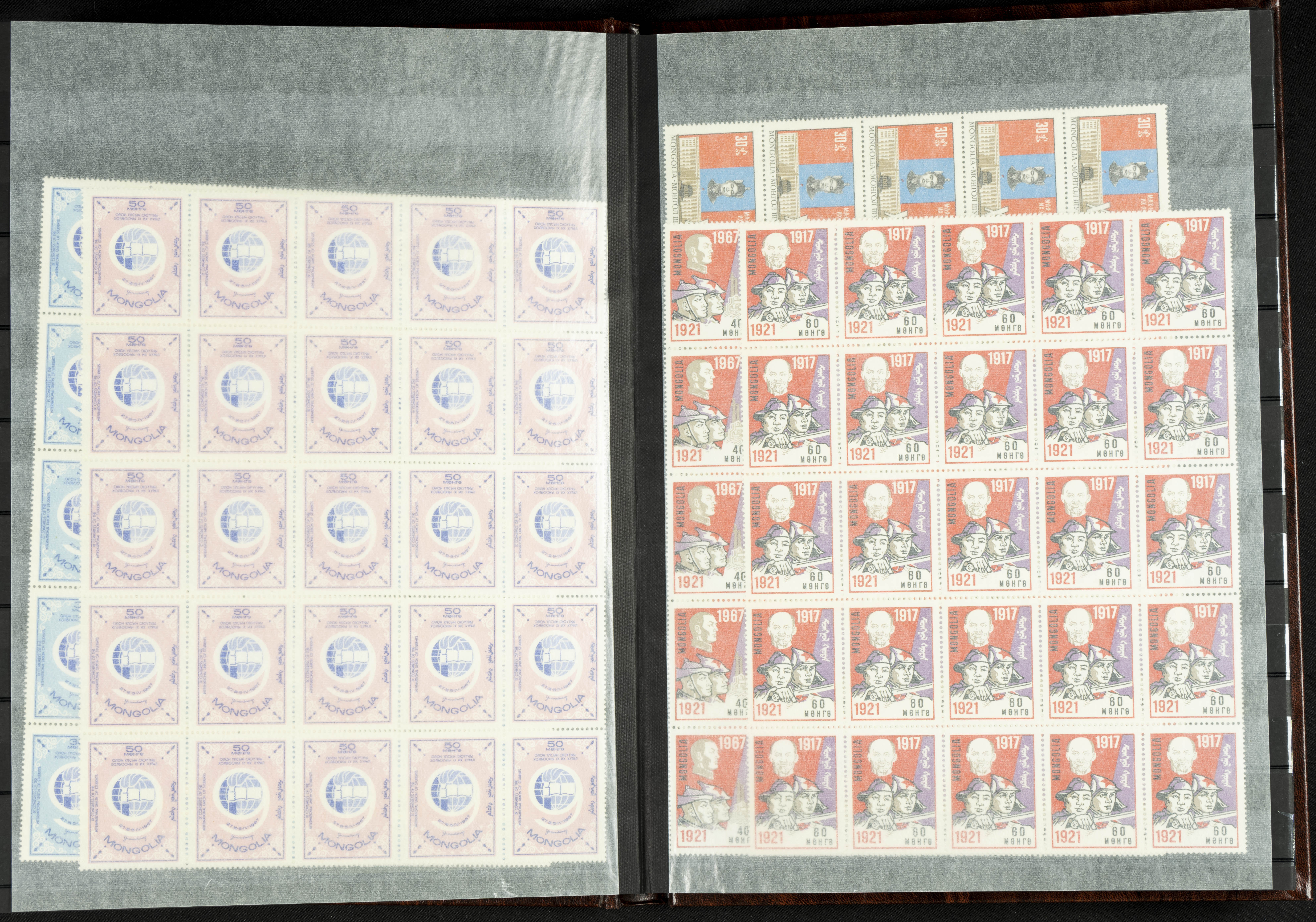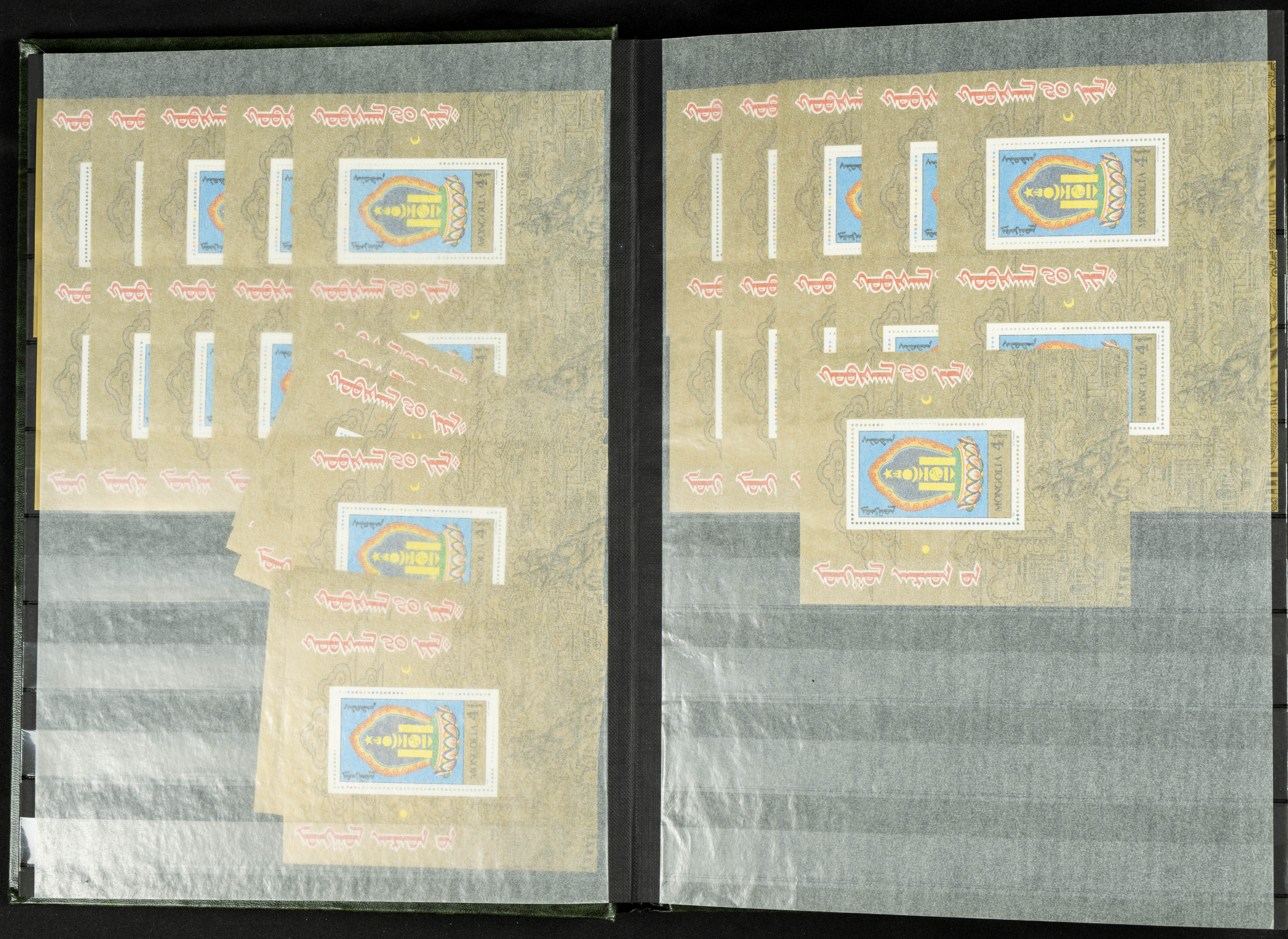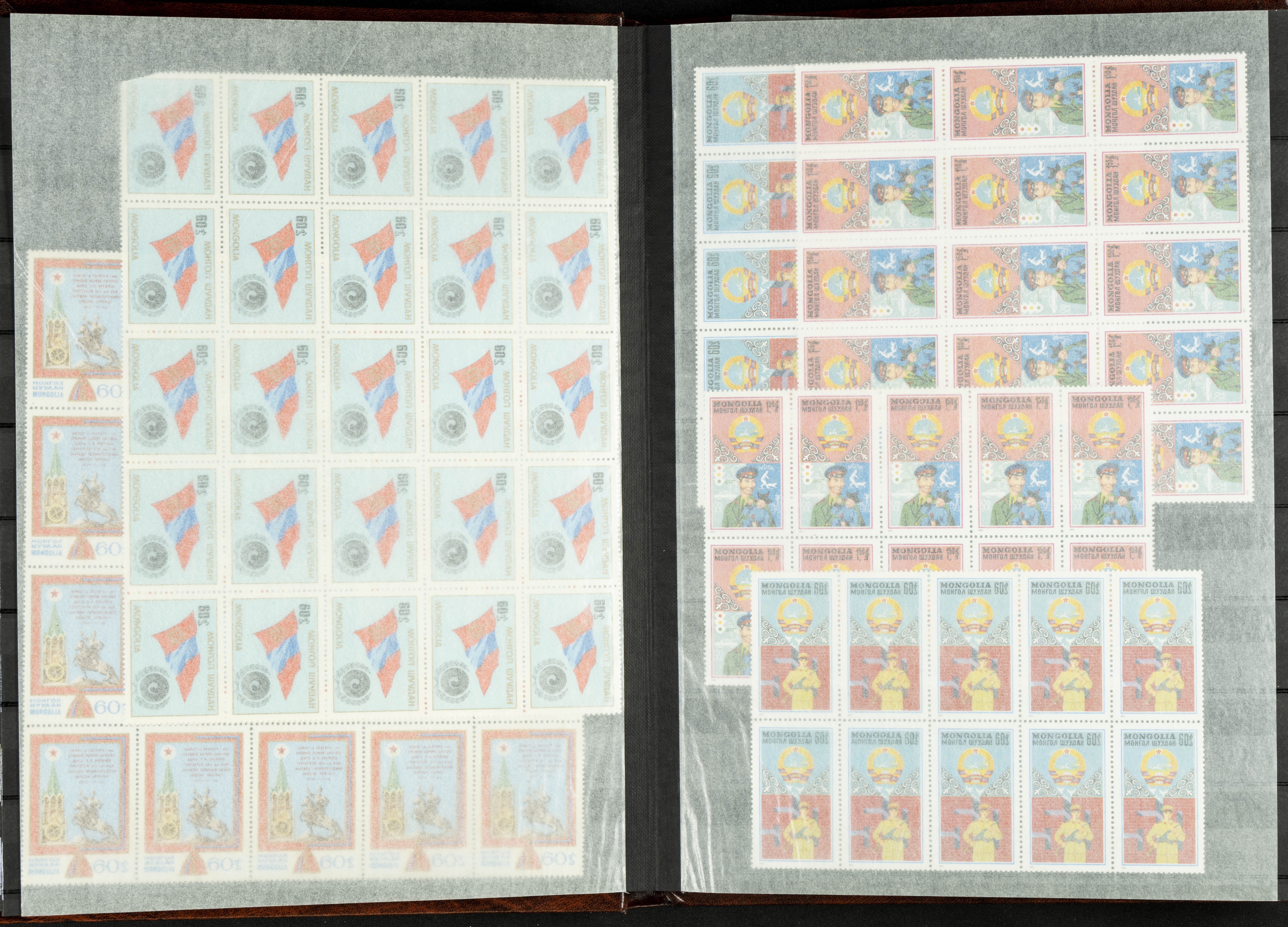 English ★★(1960ca). Spectacular collection of thousands of stamps, complete series and souvenir sheets from Mongolia between 1960 and 1990, in mint condition, some in sheets and exceeding one hundred units in some cases. EXTREMELY HIGH CATALOG VALUE. TO BE EXAMINED.