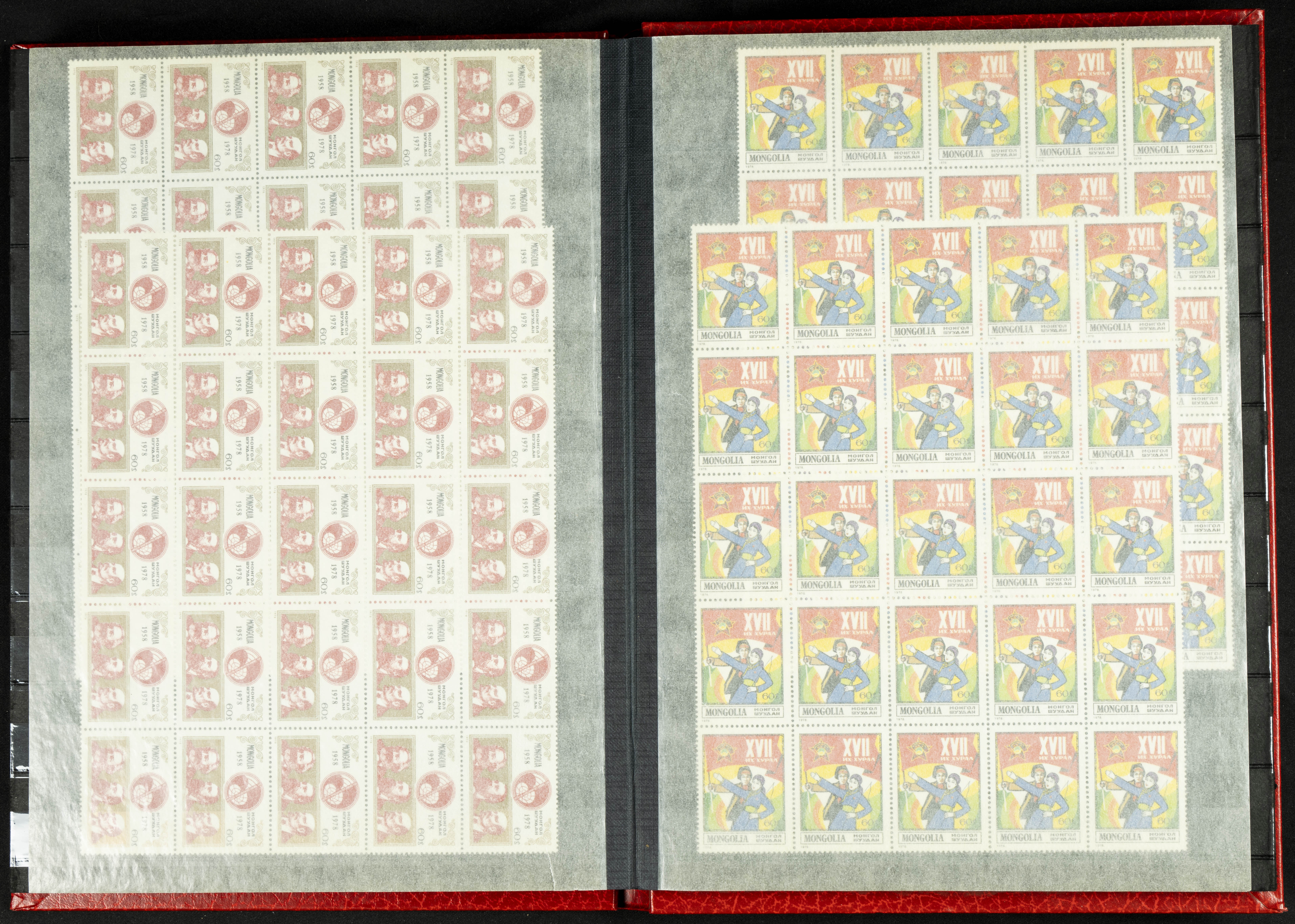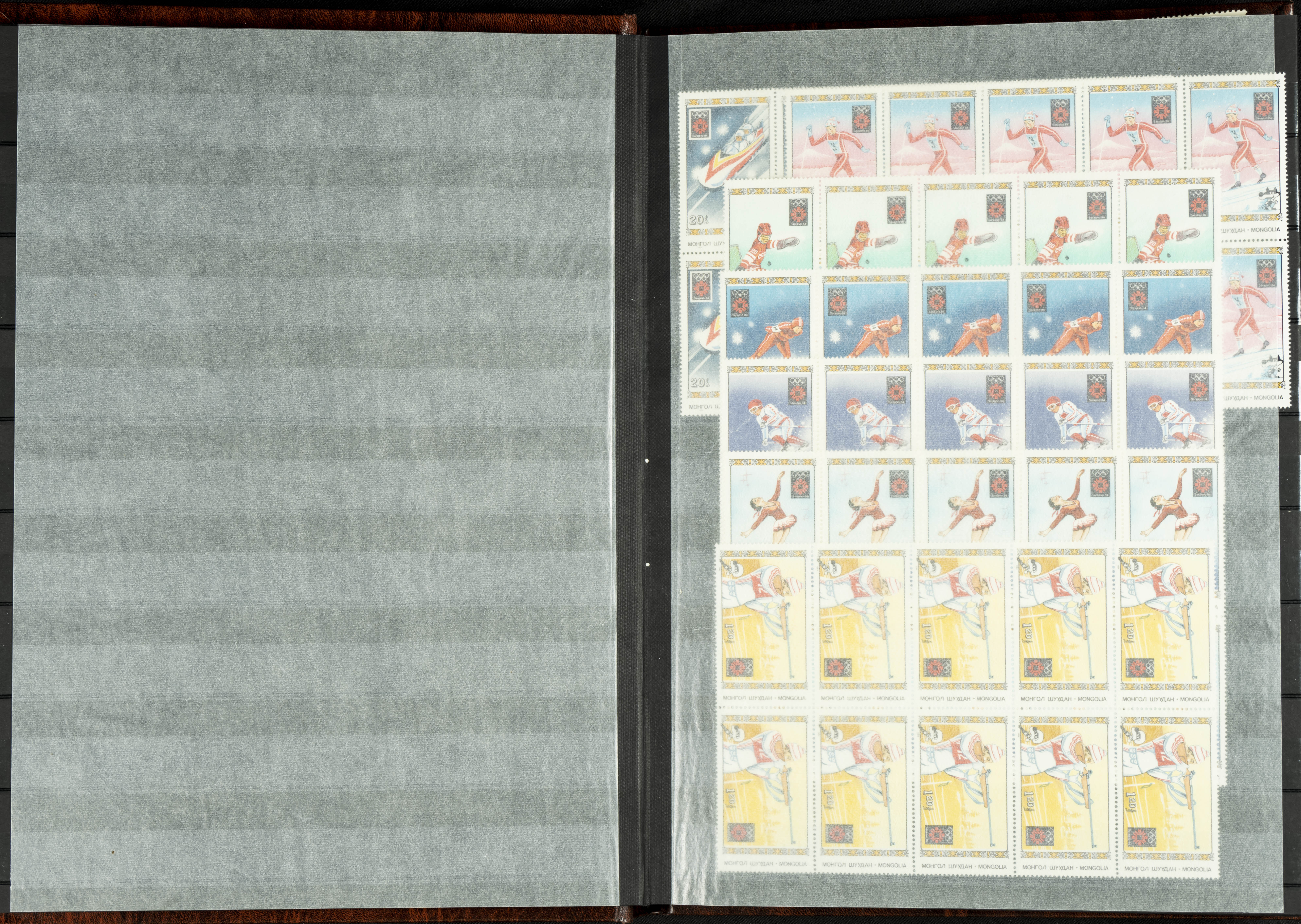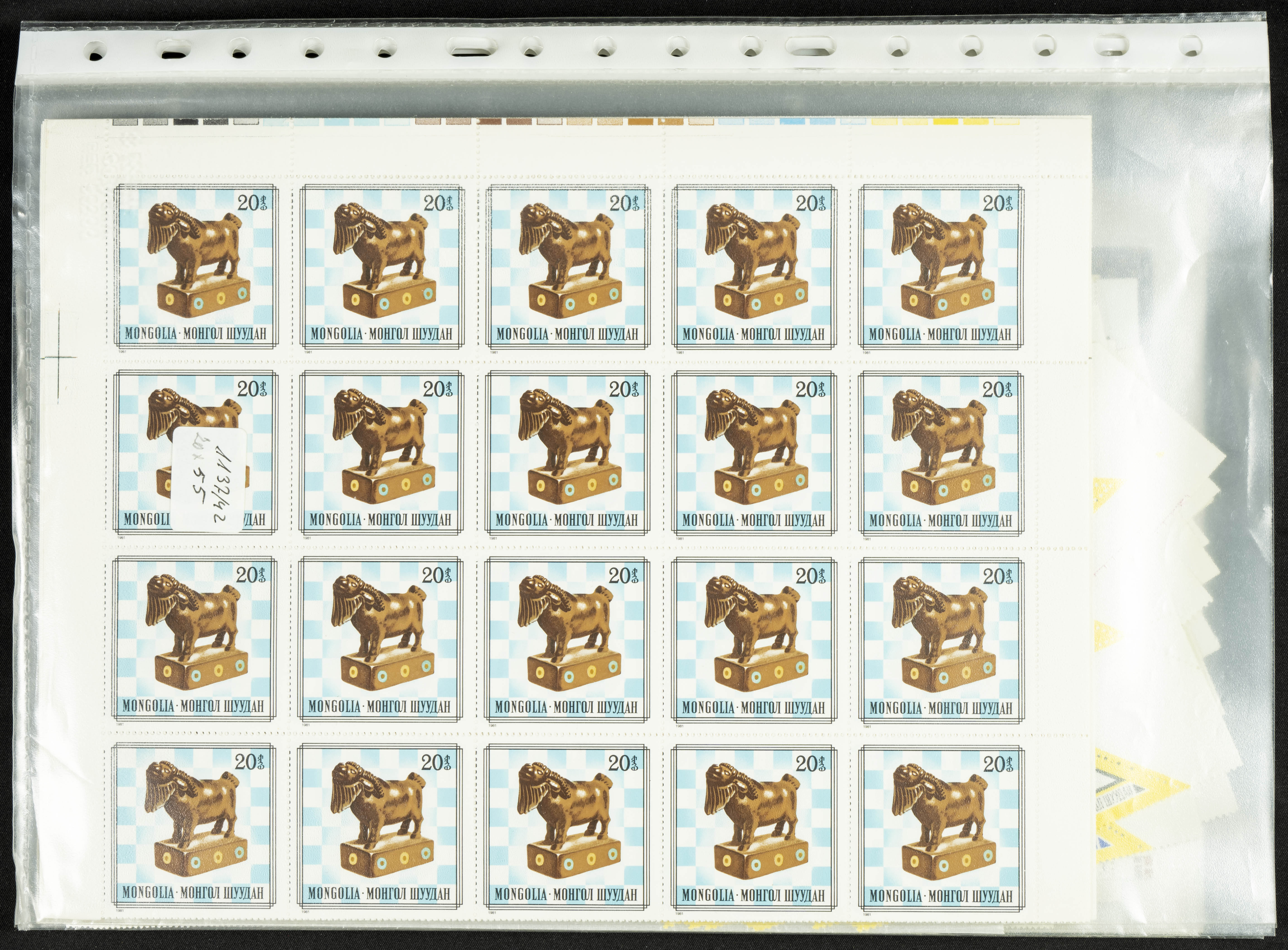 English ★★(1960ca). Spectacular collection of thousands of stamps, complete series and souvenir sheets from Mongolia between 1960 and 1990, in mint condition, some in sheets and exceeding one hundred units in some cases. EXTREMELY HIGH CATALOG VALUE. TO BE EXAMINED.