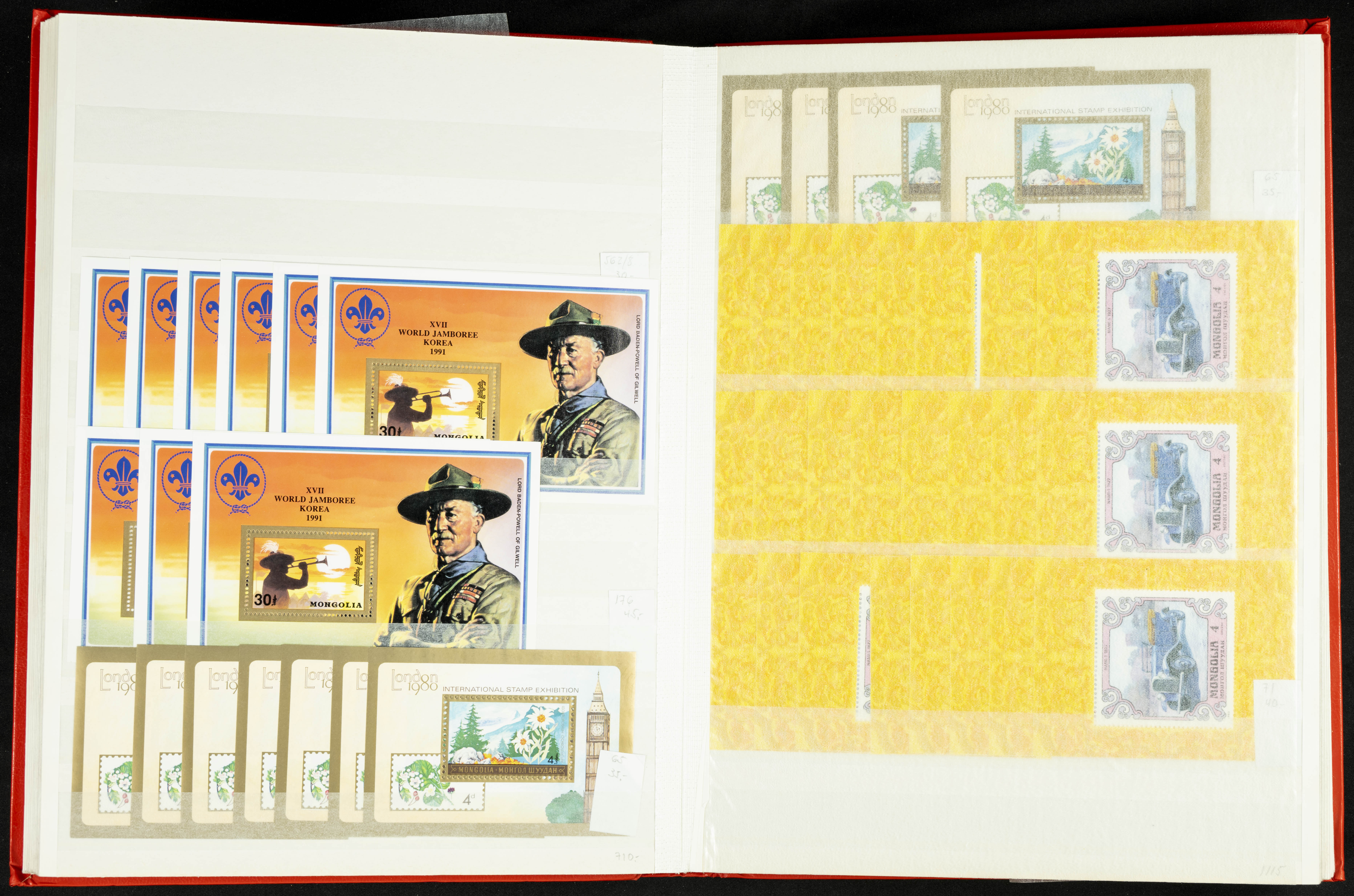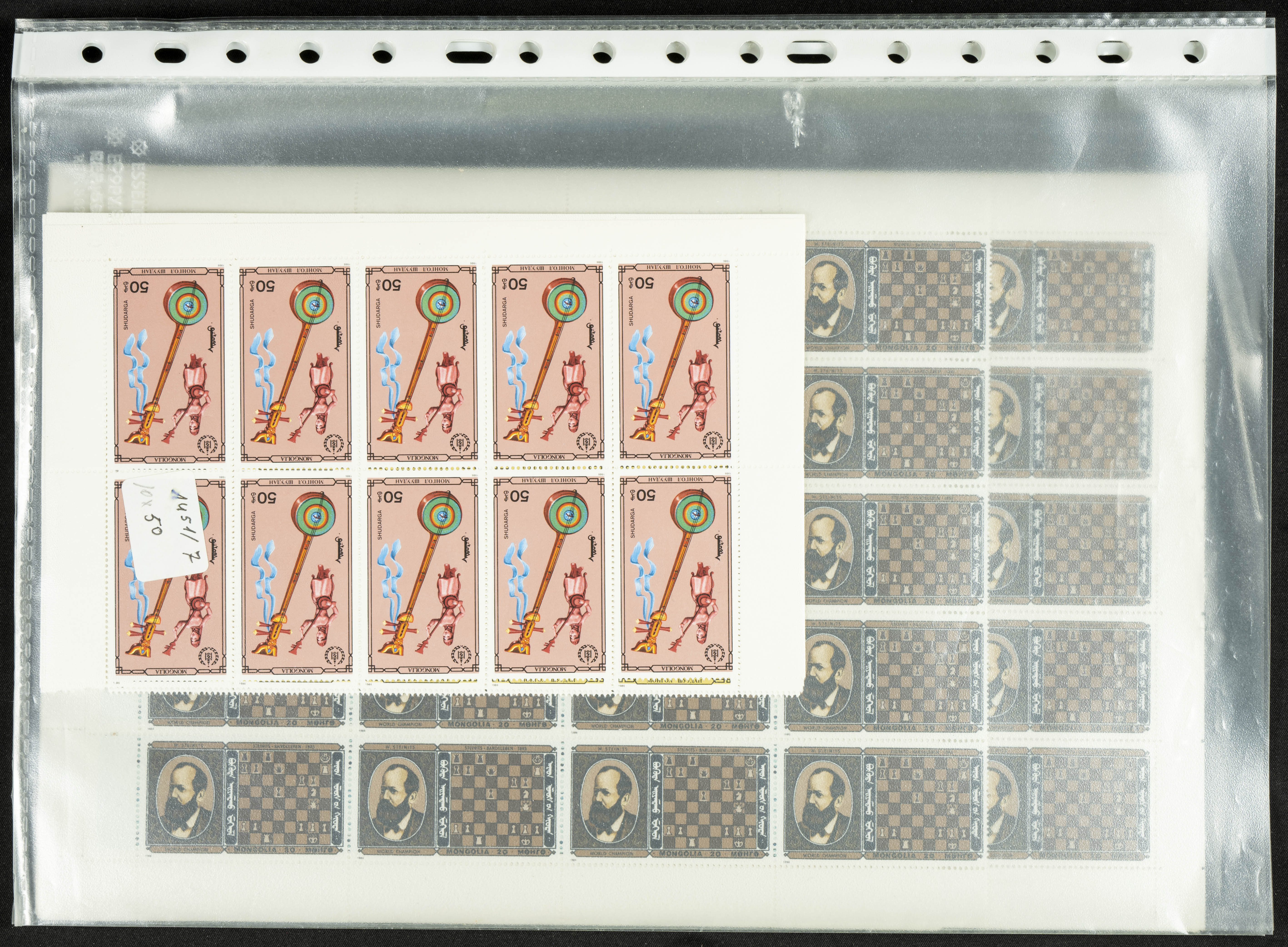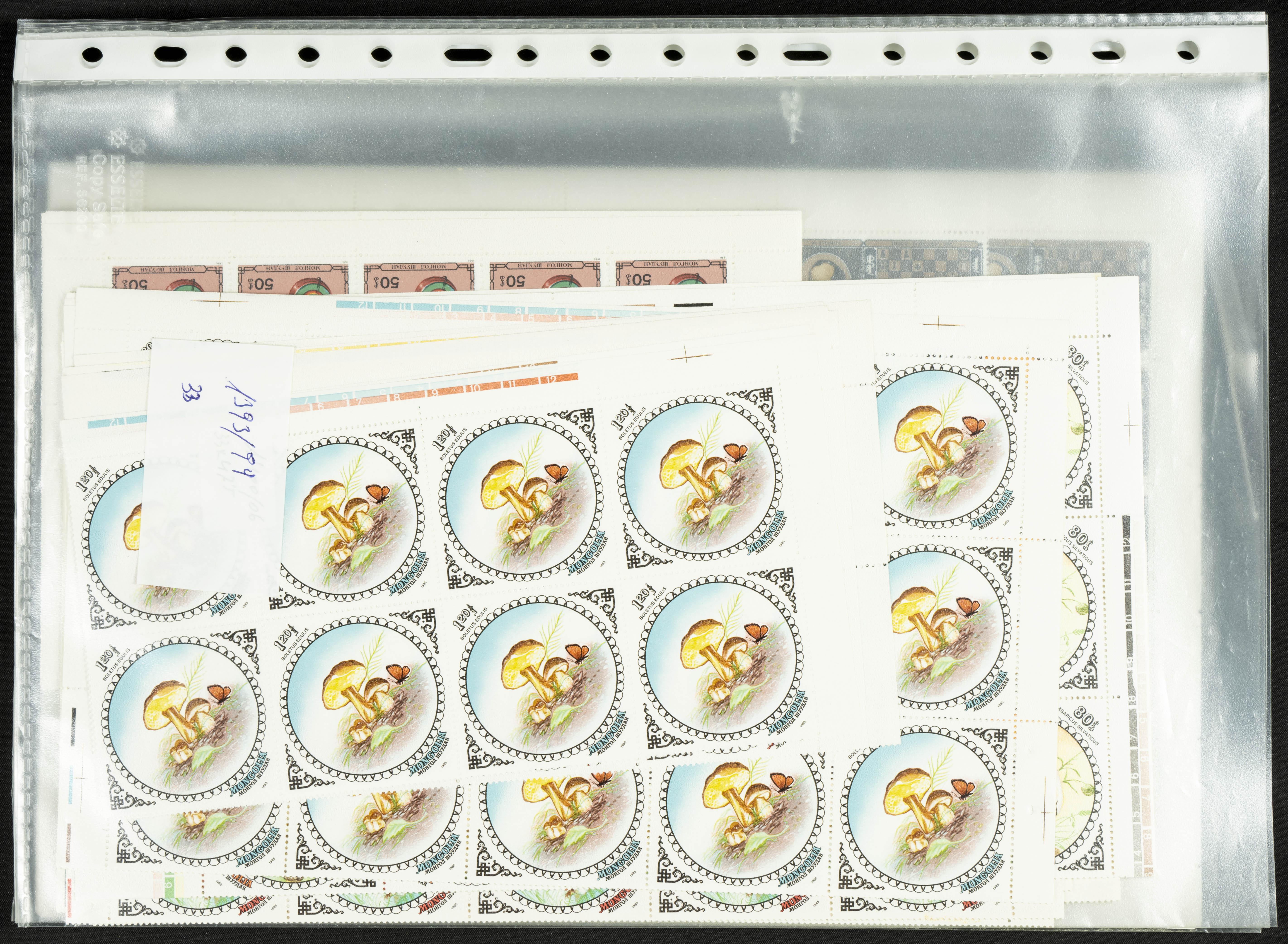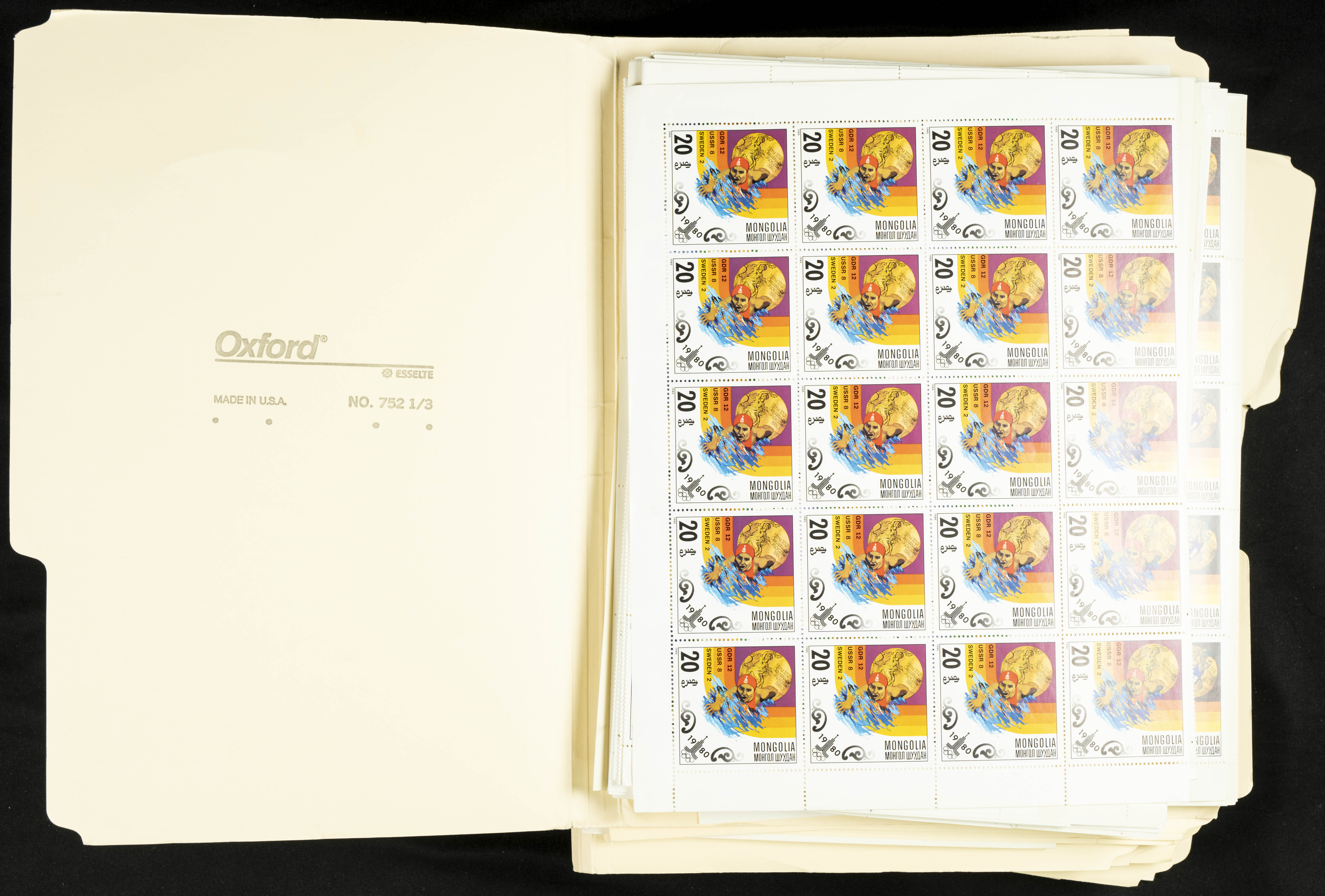 English ★★(1960ca). Spectacular collection of thousands of stamps, complete series and souvenir sheets from Mongolia between 1960 and 1990, in mint condition, some in sheets and exceeding one hundred units in some cases. EXTREMELY HIGH CATALOG VALUE. TO BE EXAMINED.