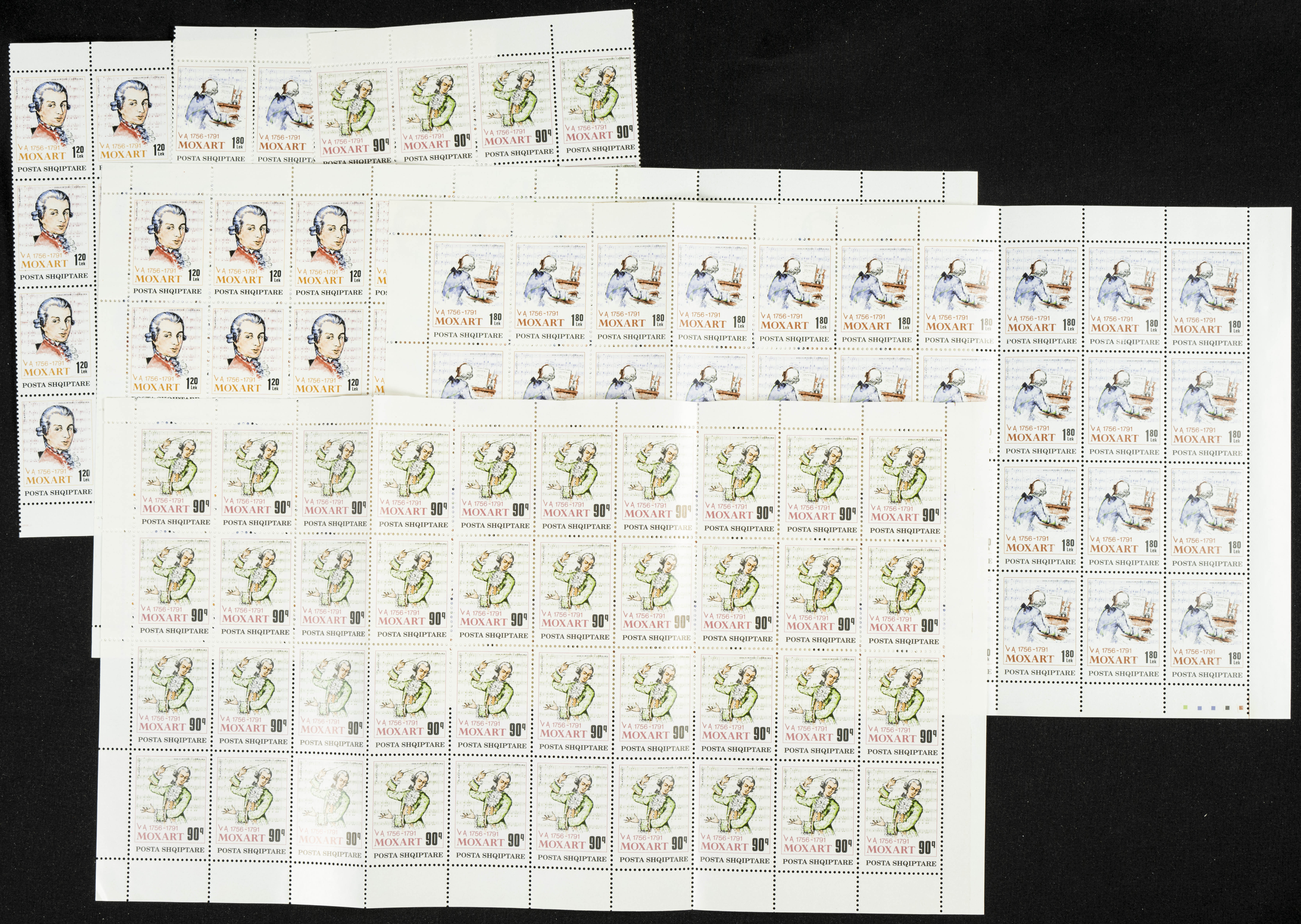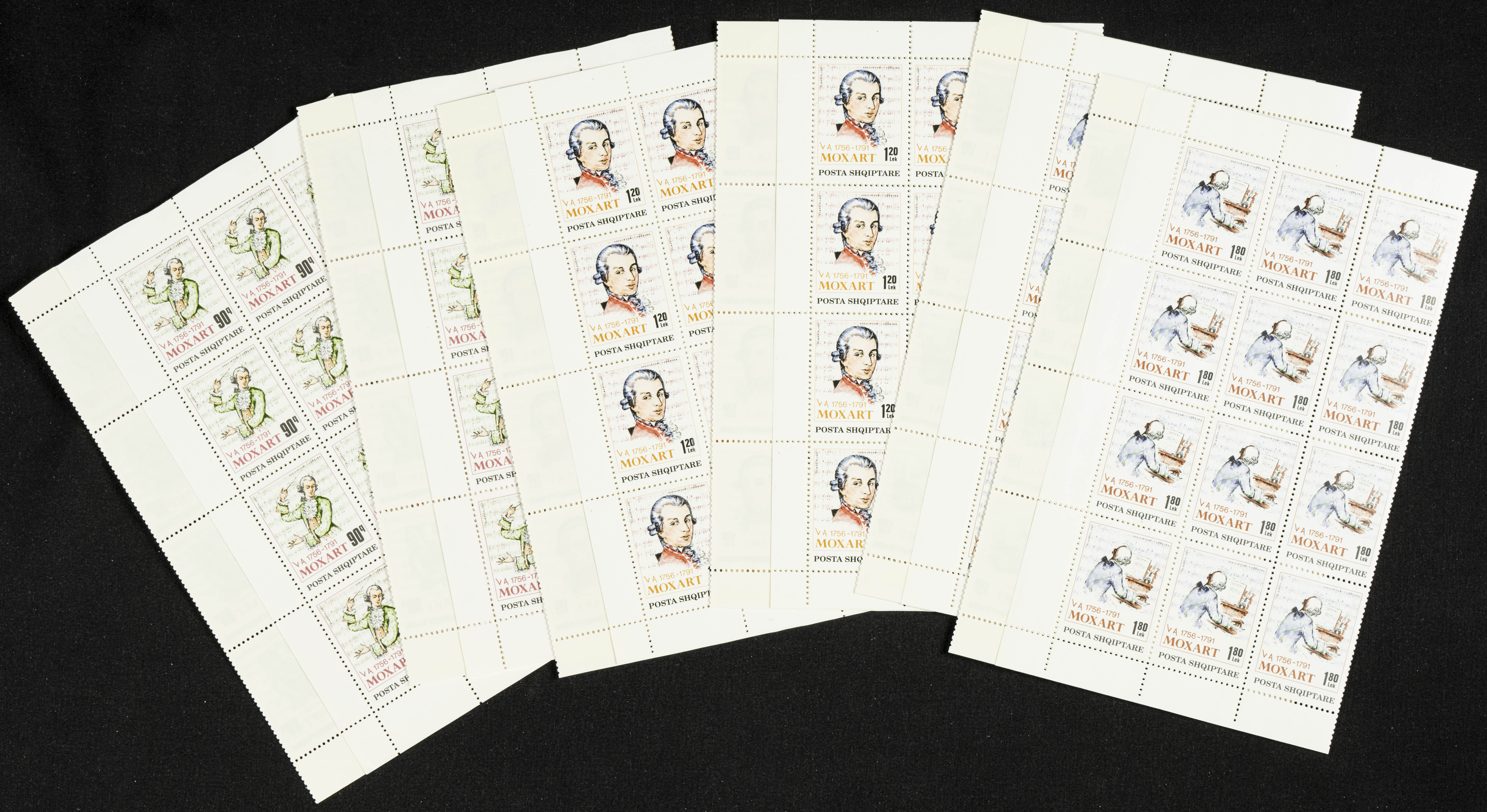 Yvert 2264/66(136). 1991. Set of one hundred and thirty-six complete series of Albanian MOZART 1991, in mint condition. TO BE EXAMINED. Yvert 2022: 544 Euros