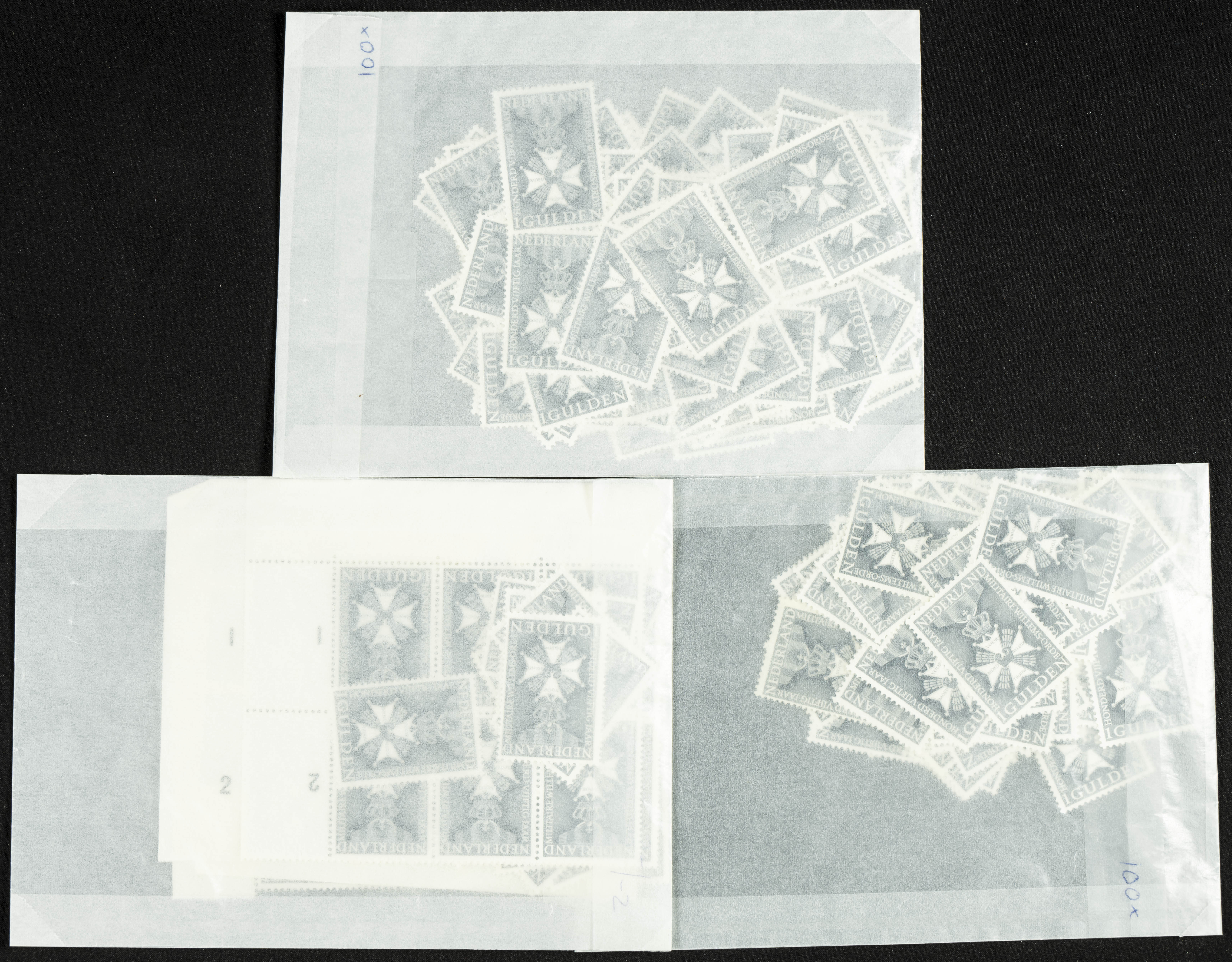 English Yvert 813(300). 1965. Set of three hundred stamps of the MILITARY ORDER OF WILLIAM, mint condition, Netherlands, 1965. TO BE EXAMINED. Yvert 2024: 600 Euros