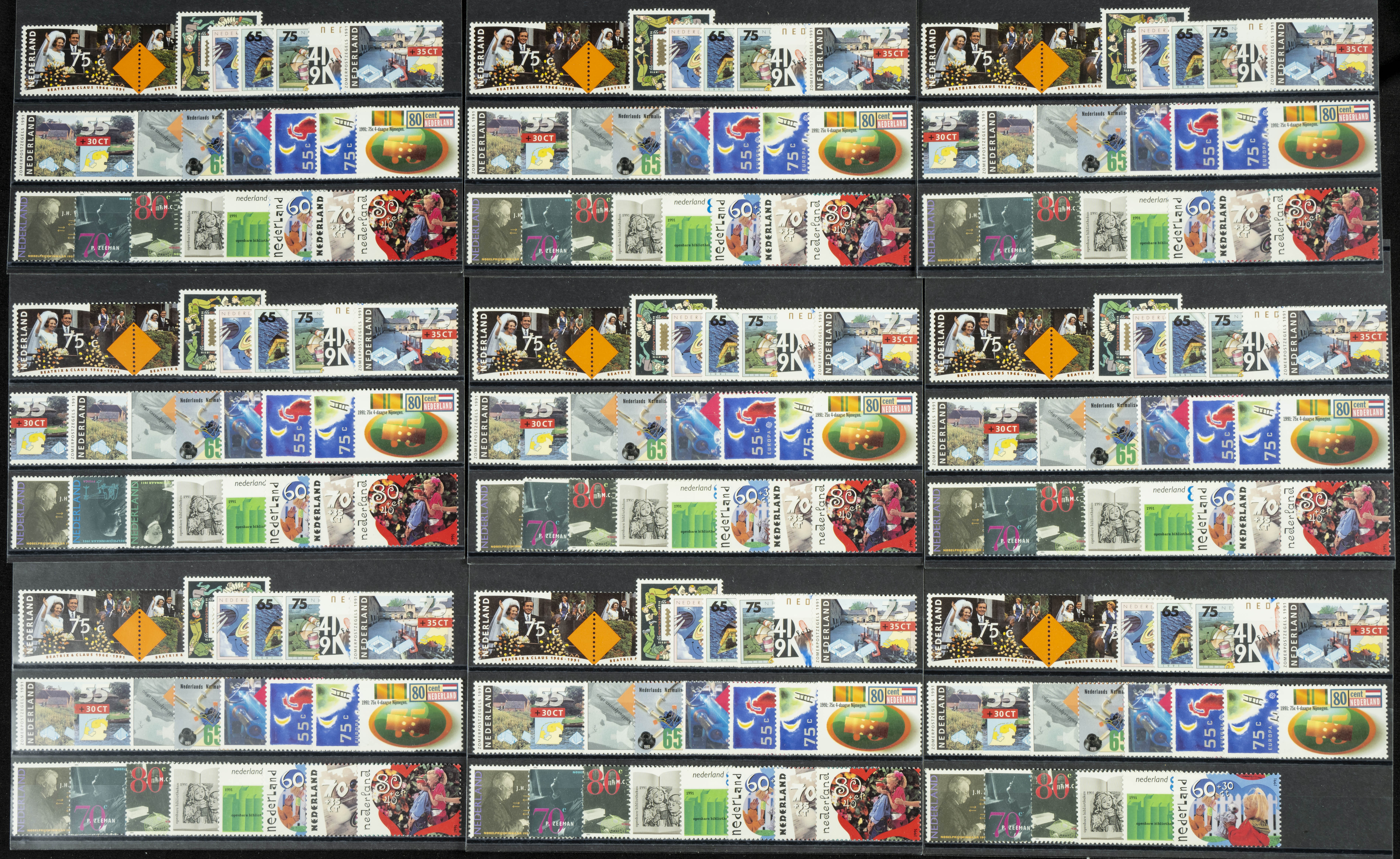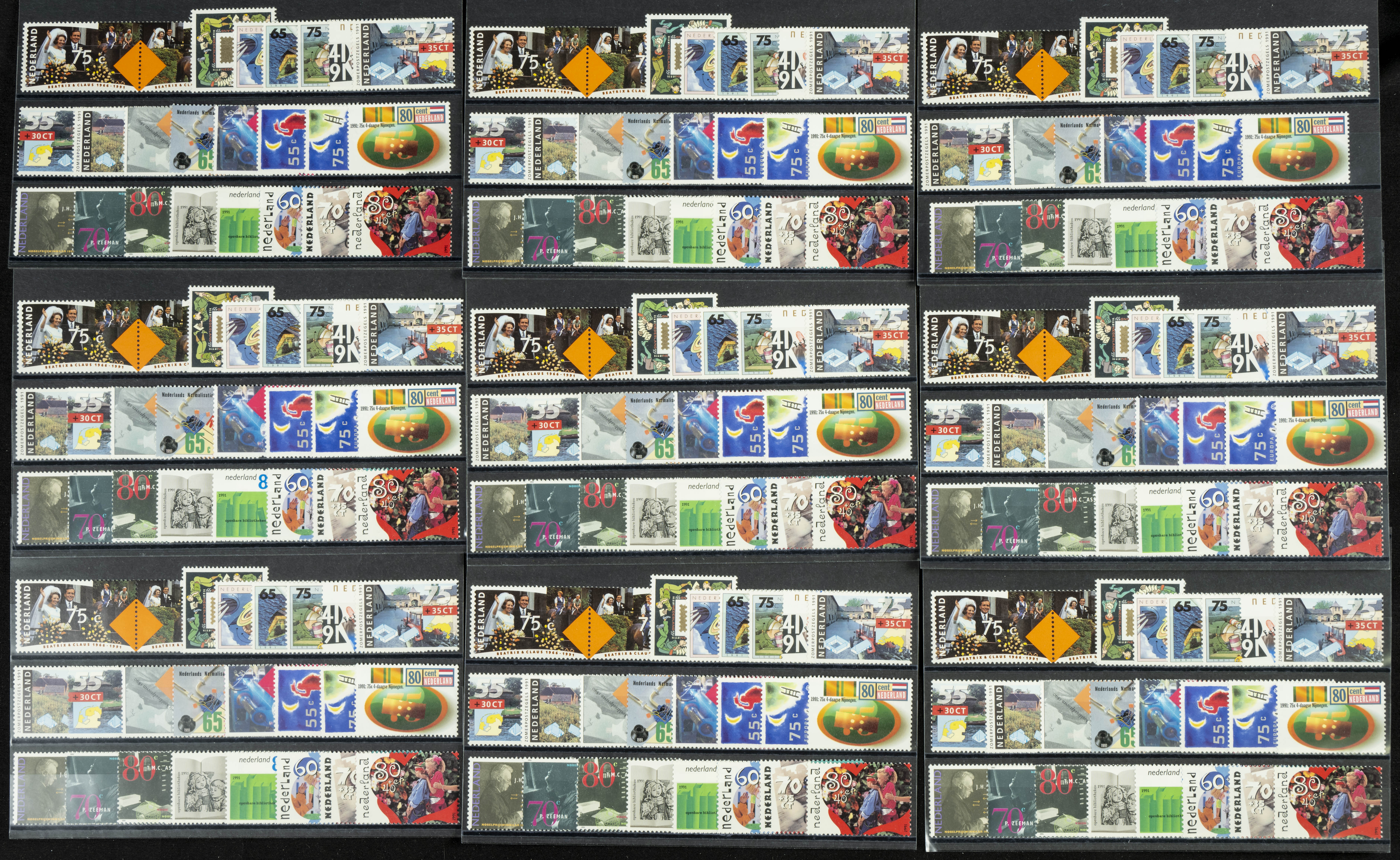 Yvert 1366/90(27). 1991. Set of twenty-seven complete years (without basics or souvenir sheet) of the Netherlands 1991, in mint condition (mounted on index cards). TO BE EXAMINED. Yvert 2024: 720 Euros