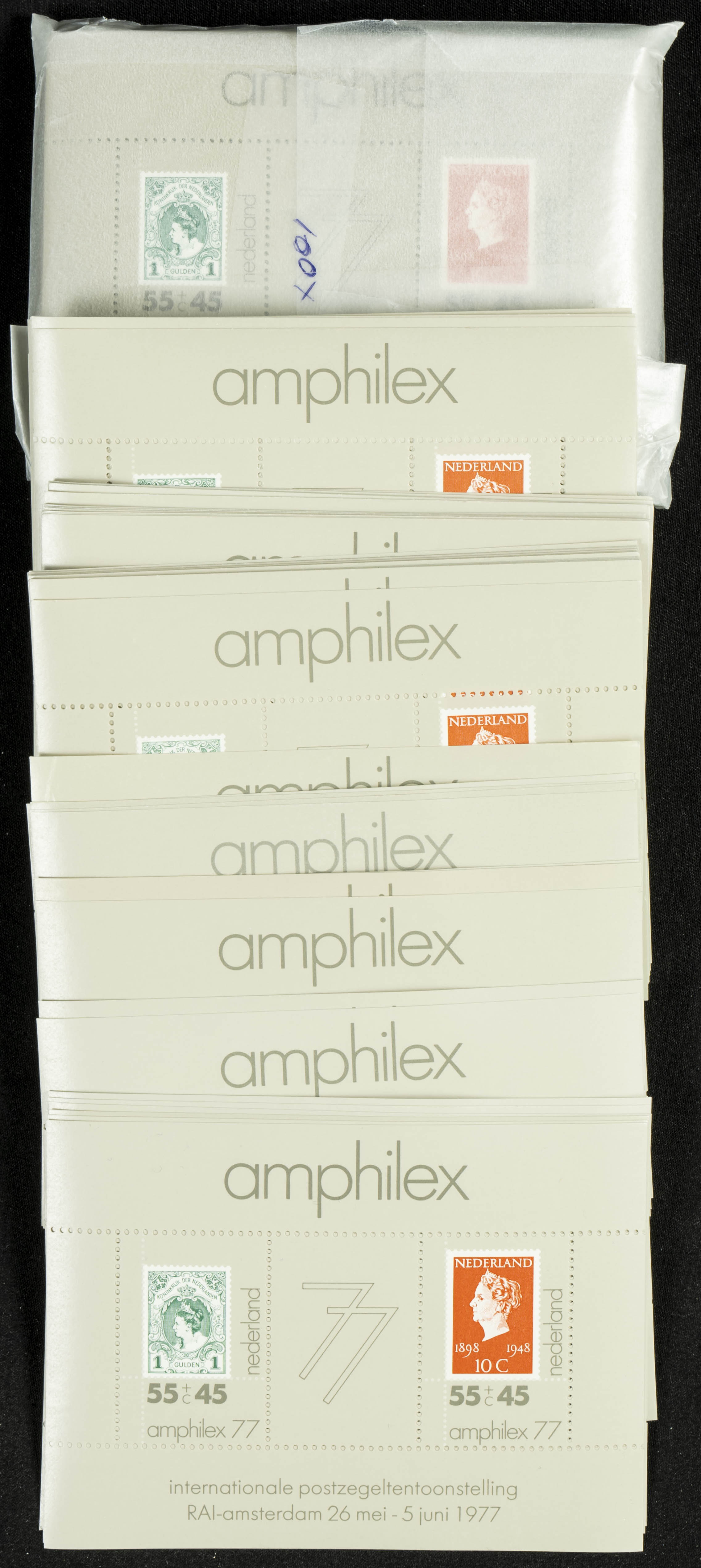 Yvert HB16(200). 1977. Set of two hundred AMPHILEX 77 pad sheets, mint condition, Netherlands 1977. TO BE EXAMINED. Yvert 2024: 500 Euros