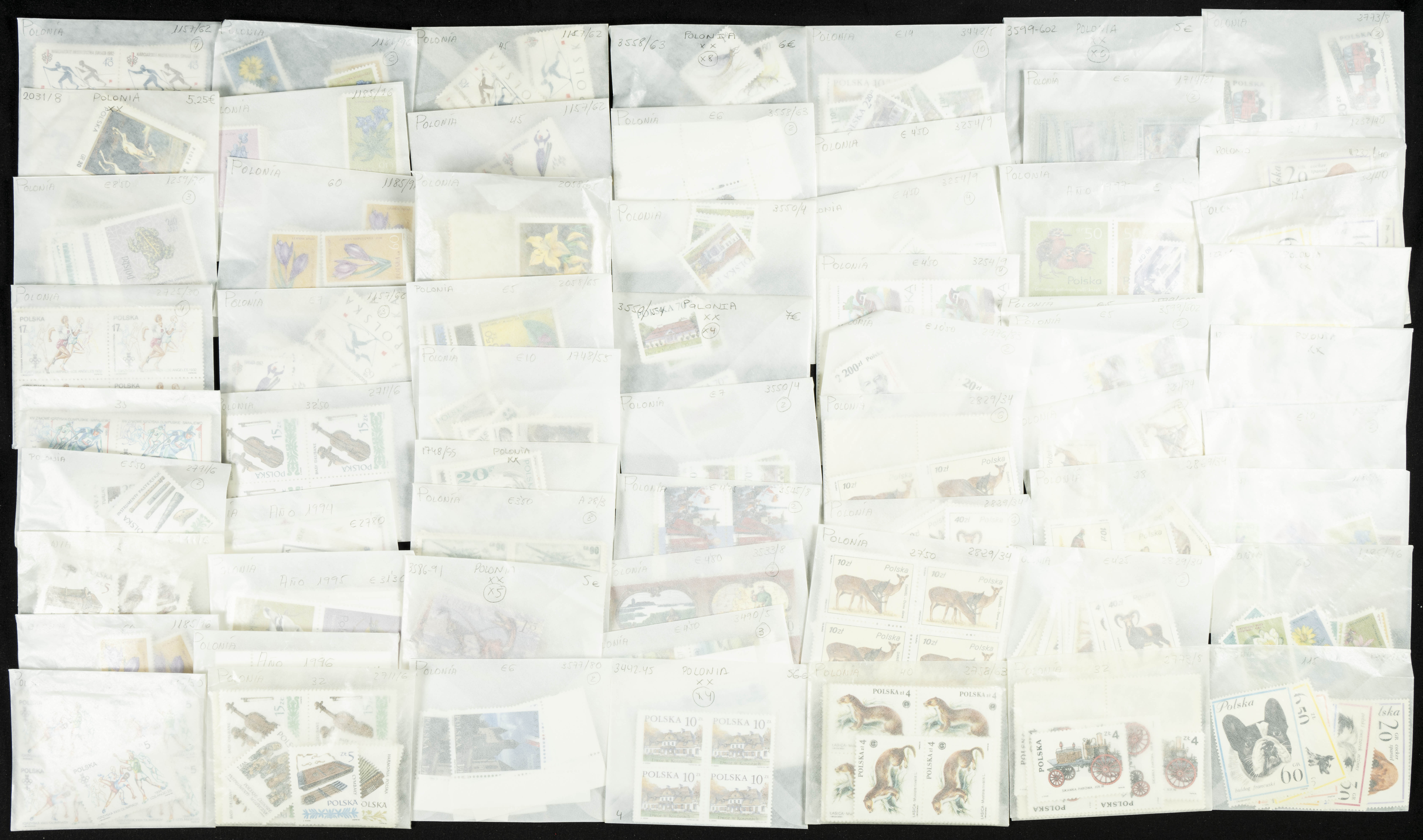 English ★★(1962ca). Complete stock of Polish series from 1962 to 1997, mint condition and arranged in glass envelopes with the Yvert number indicated. HIGH CATALOGUE VALUE. TO BE EXAMINED.