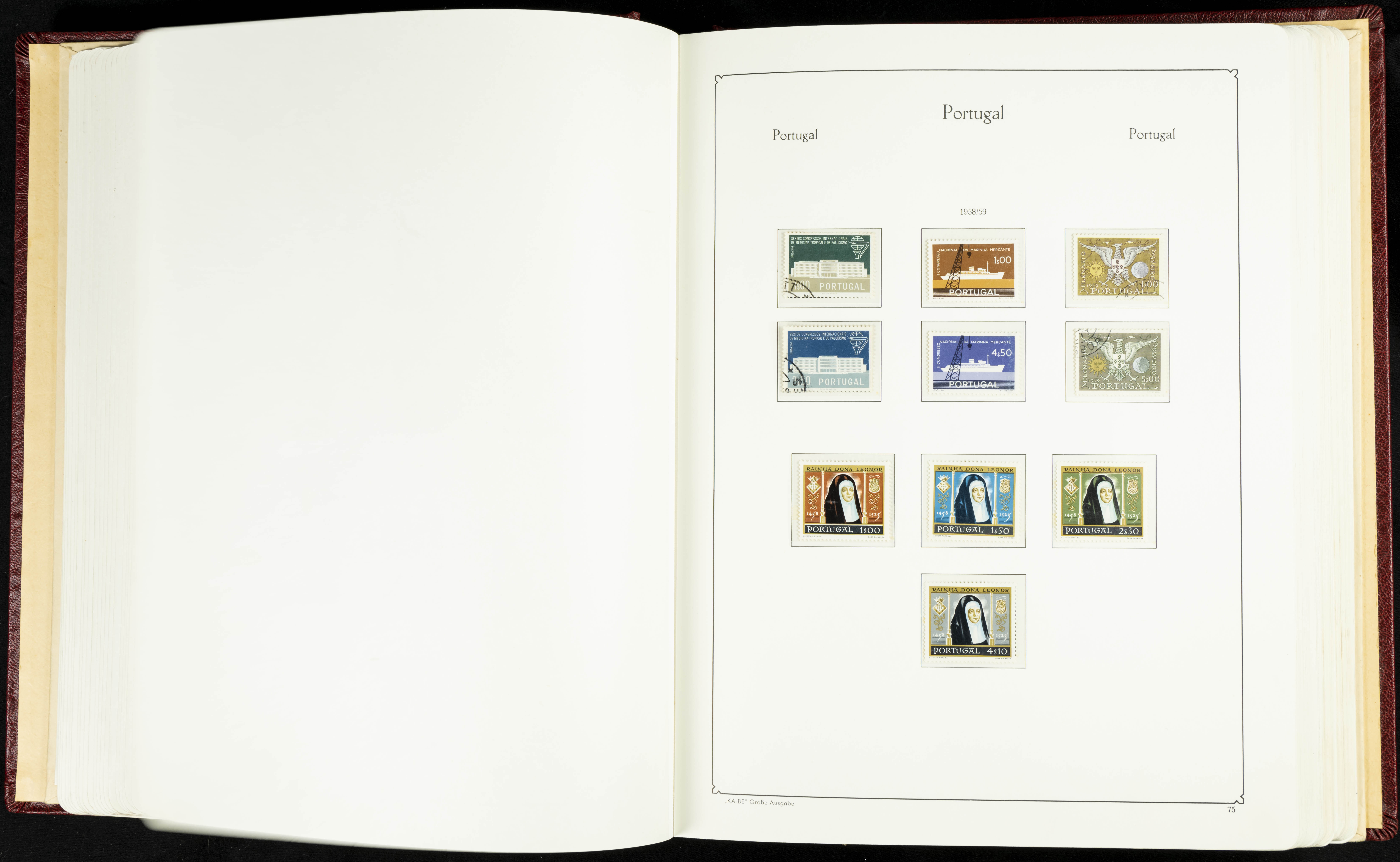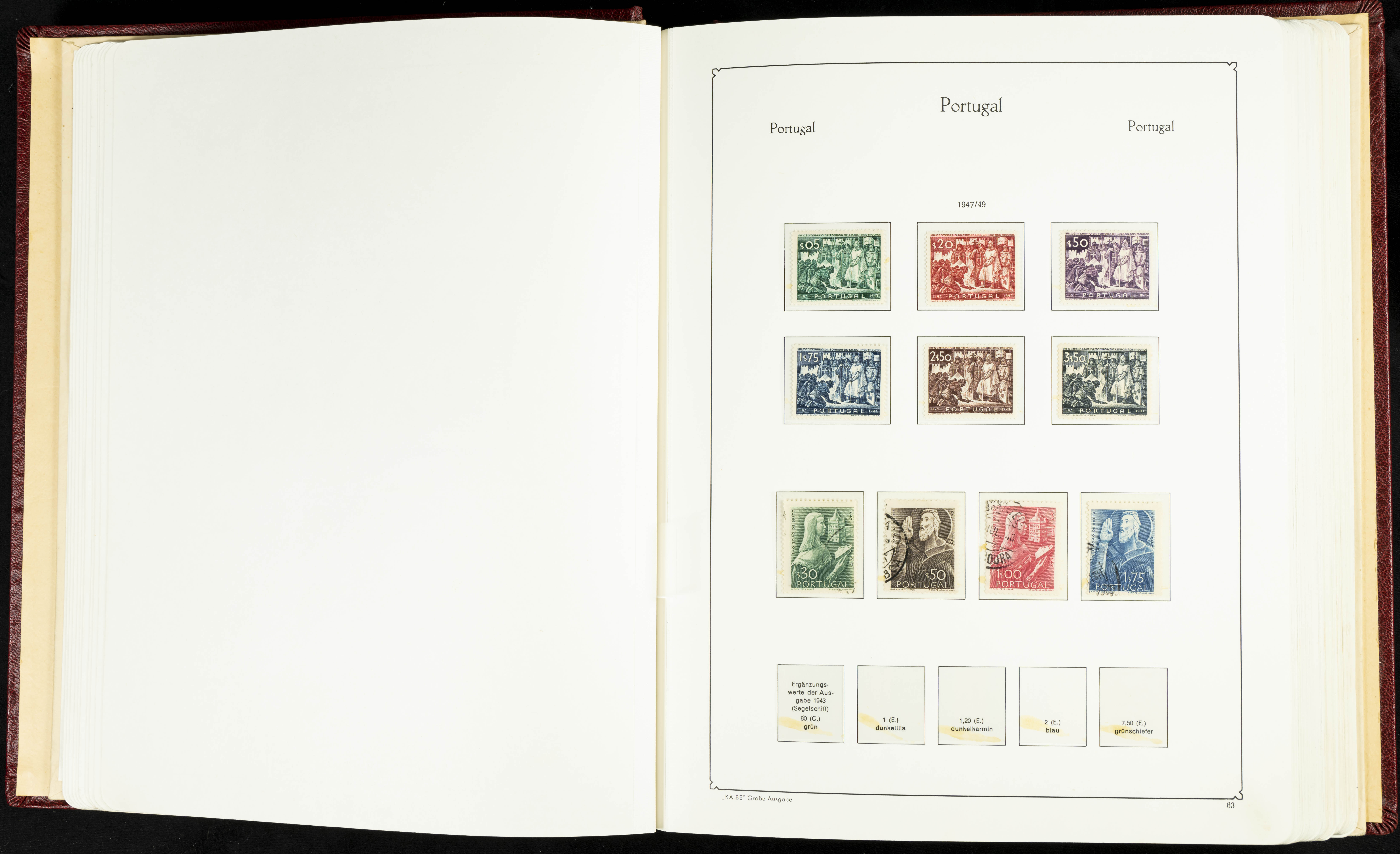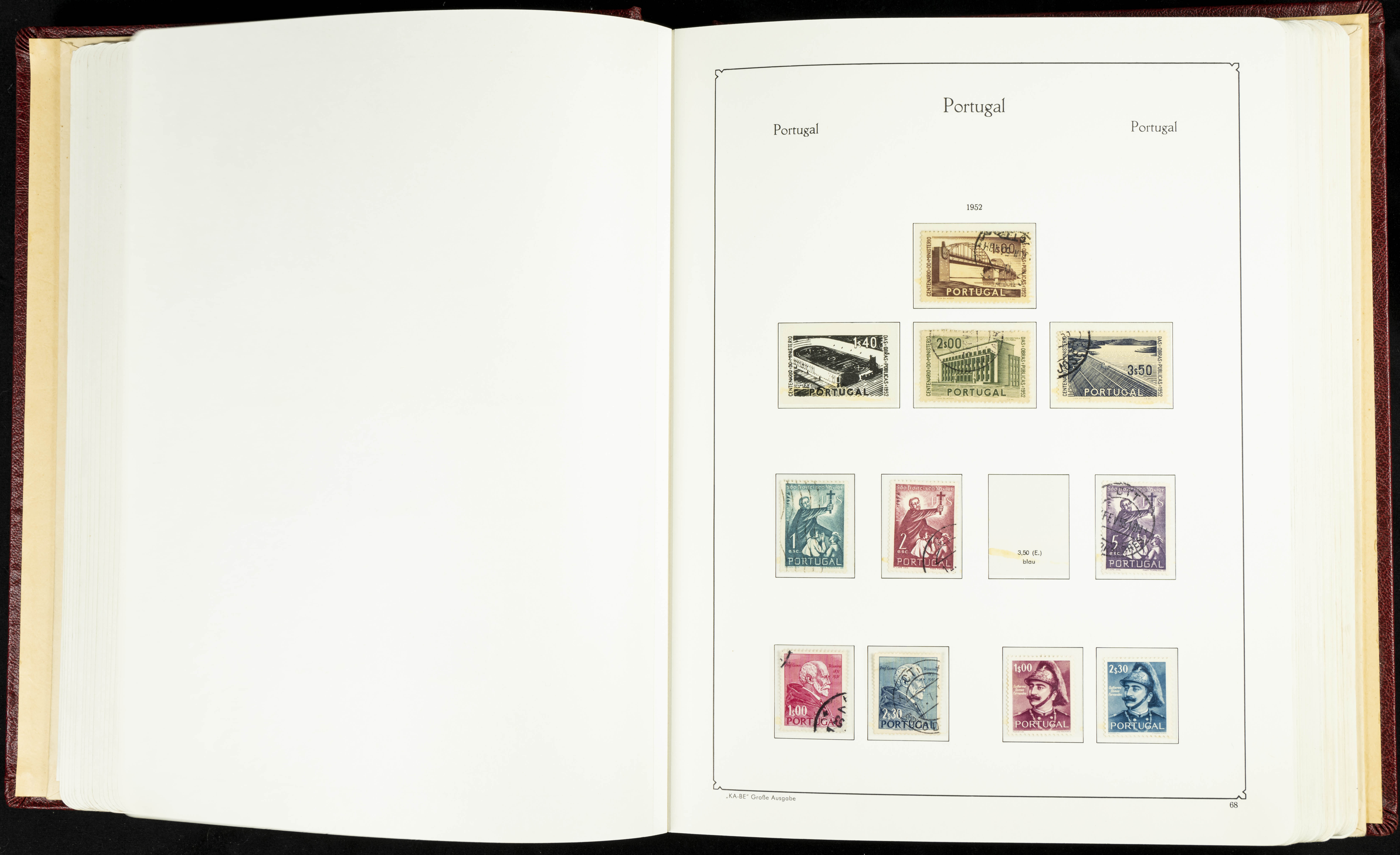 ★/(1853ca). Interesting remainder of a collection from Portugal between 1853 and 1992, in mint and used condition, lacking only most of the important series and souvenir sheets. Includes Red Cross, Rates, Franchises, and Postal Parcels series, as well as Azores and Madeira. HIGH CATALOG VALUE. TO BE EXAMINED.