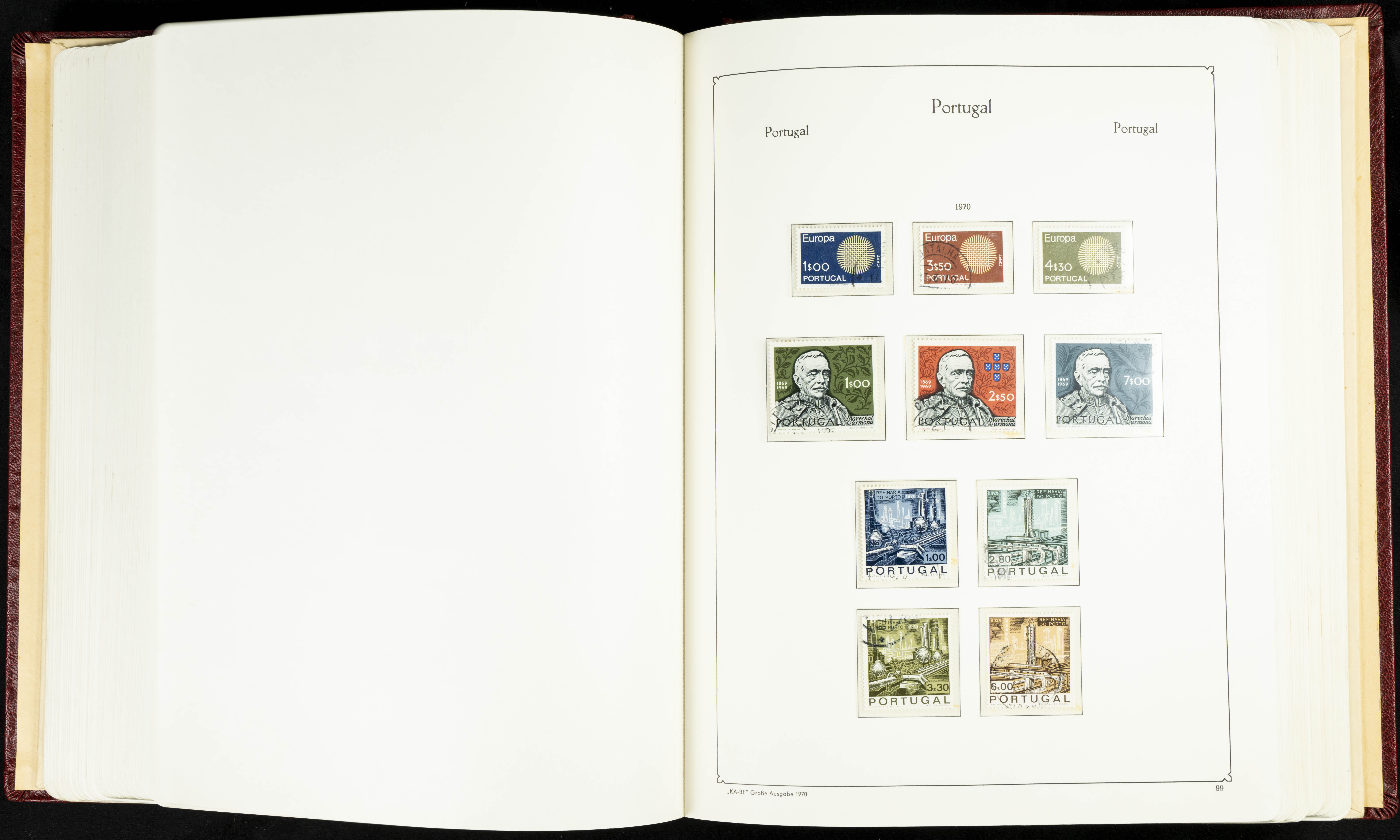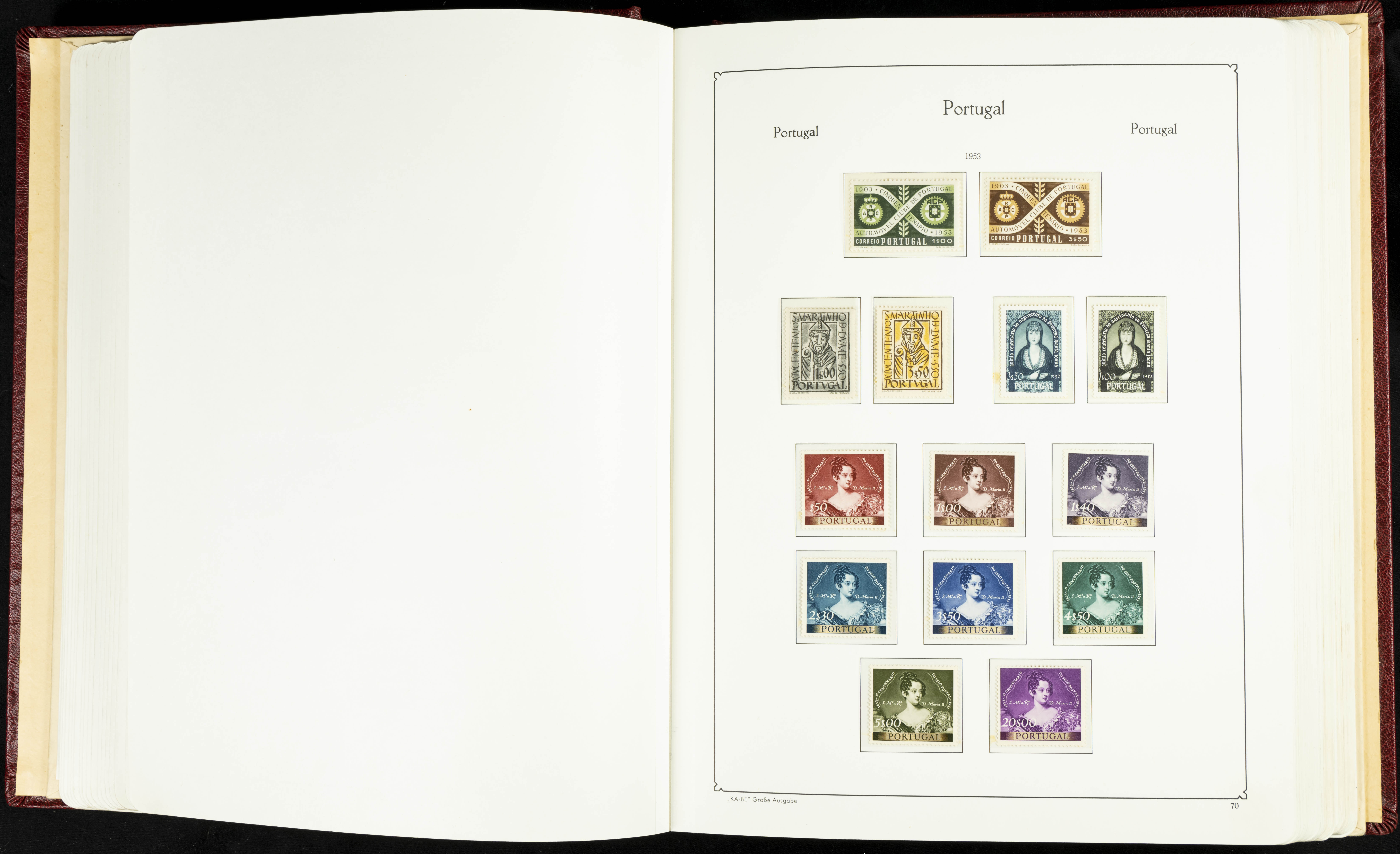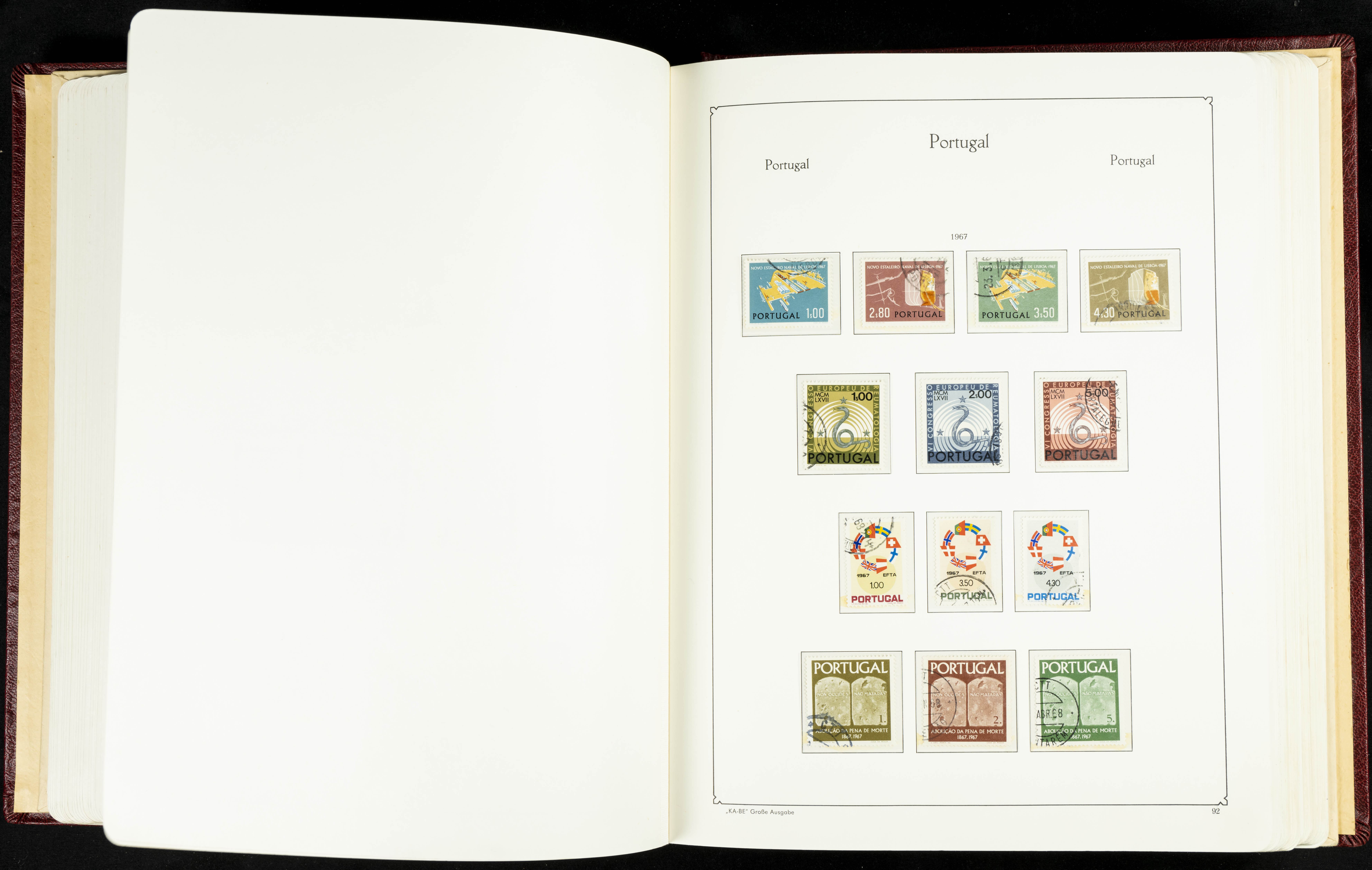 ★/(1853ca). Interesting remainder of a collection from Portugal between 1853 and 1992, in mint and used condition, lacking only most of the important series and souvenir sheets. Includes Red Cross, Rates, Franchises, and Postal Parcels series, as well as Azores and Madeira. HIGH CATALOG VALUE. TO BE EXAMINED.