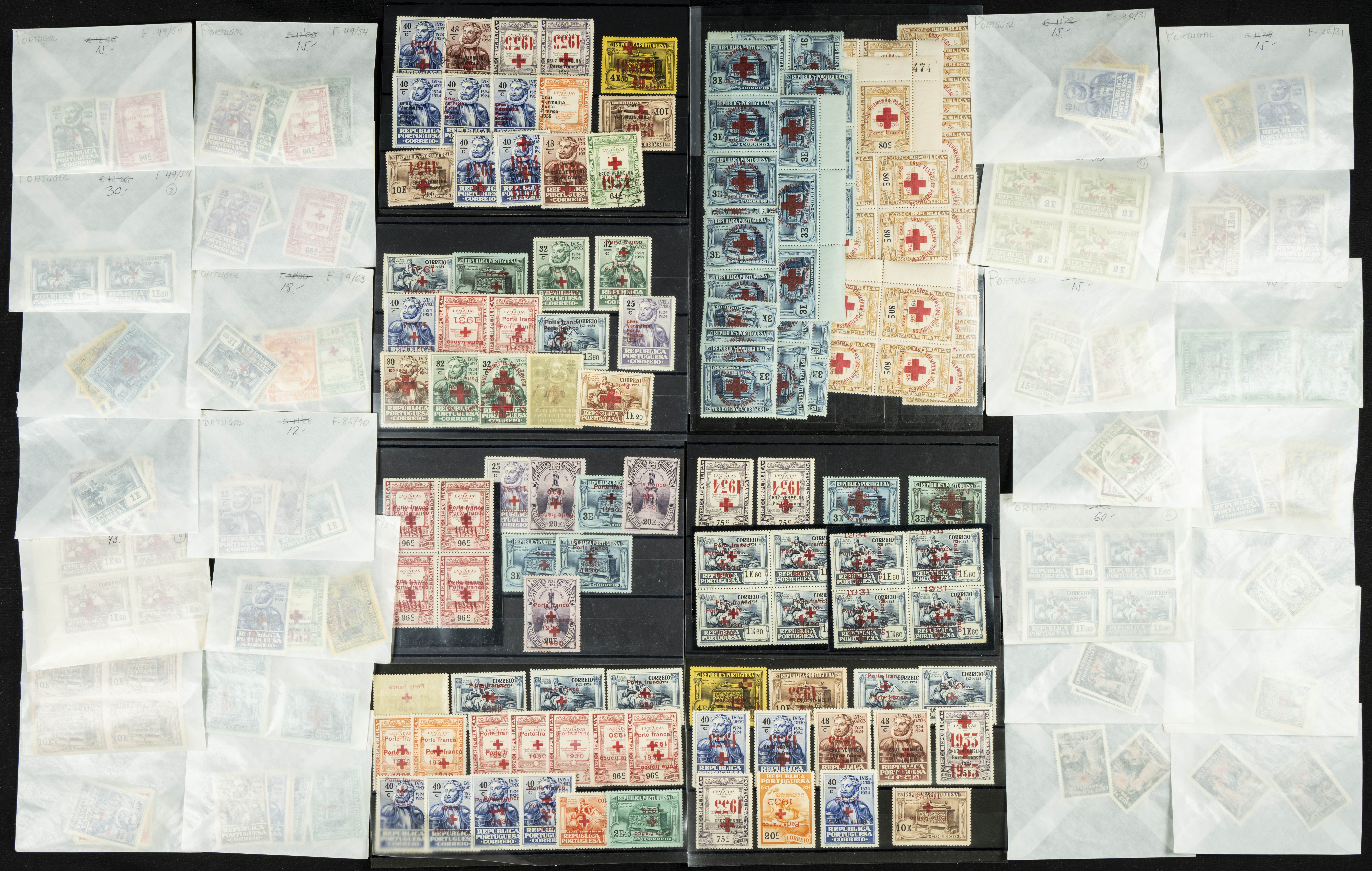 ★★/★(1889ca). Interesting stock of complete series of Portuguese Red Cross stamps between 1889 and 1935, in mint condition and mostly without hinges. Includes numerous overprint varieties (double, inverted, partial, etc.), some not previously recorded. TO BE EXAMINED. Yvert 2023: +1,500 Euros