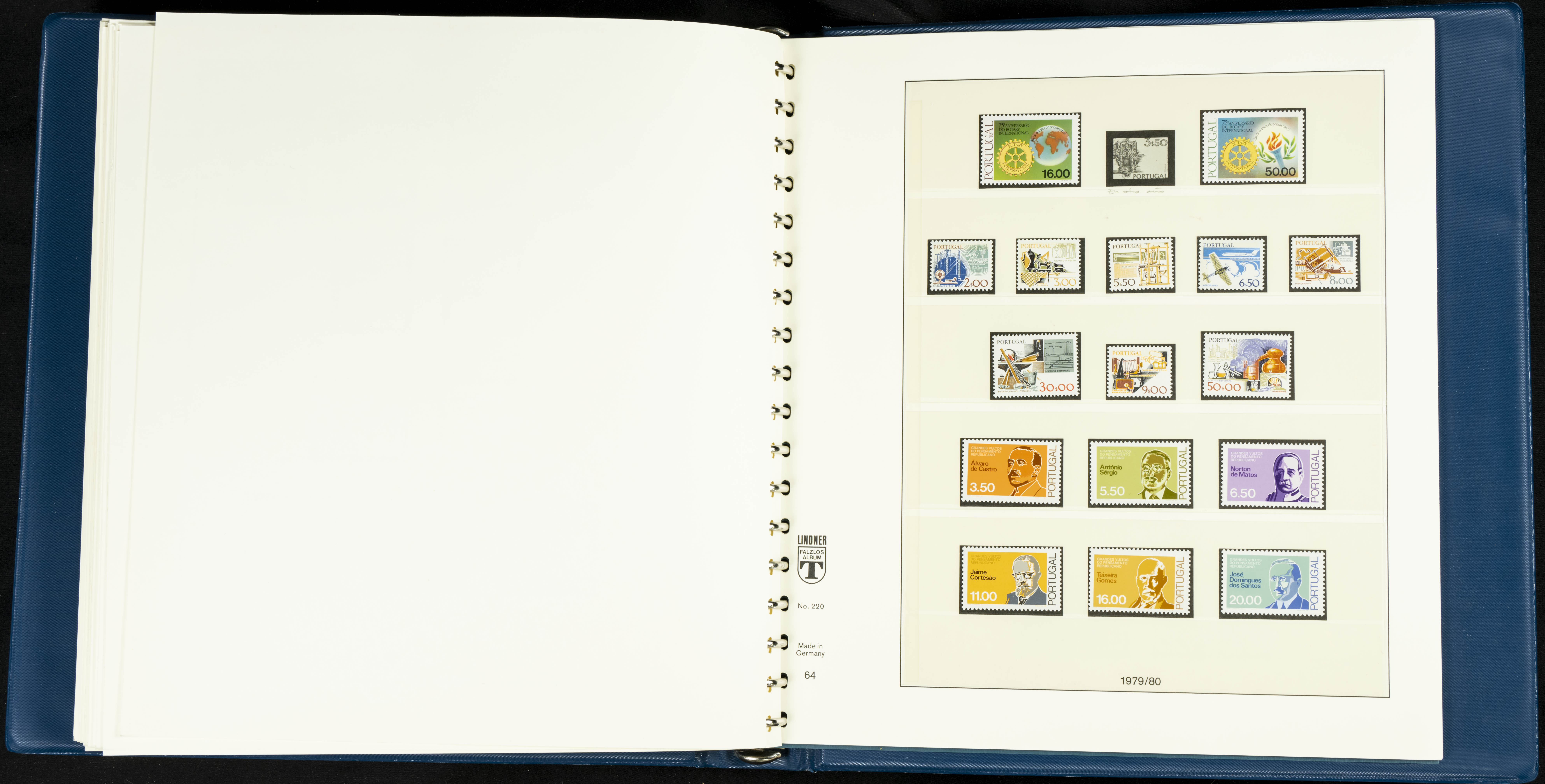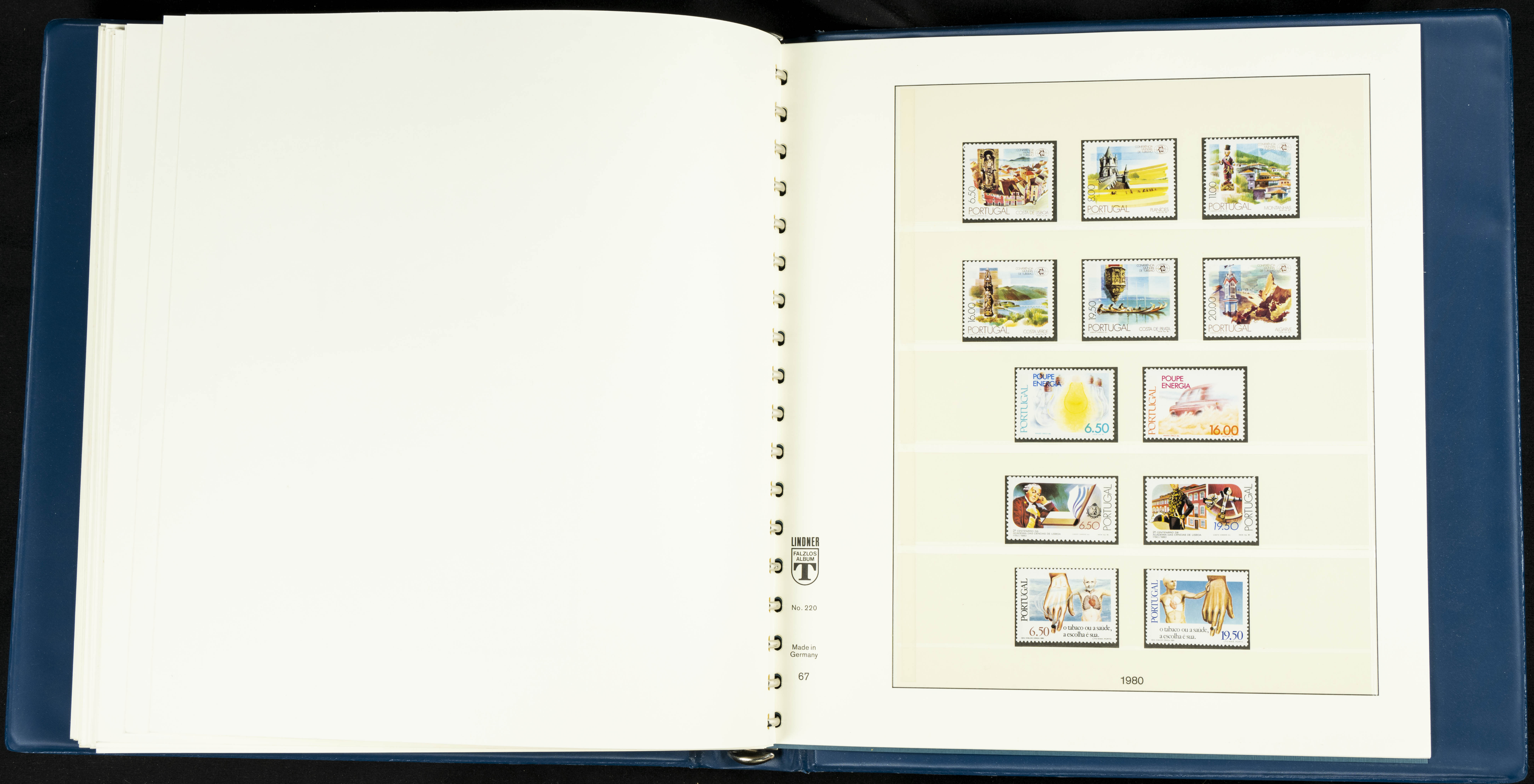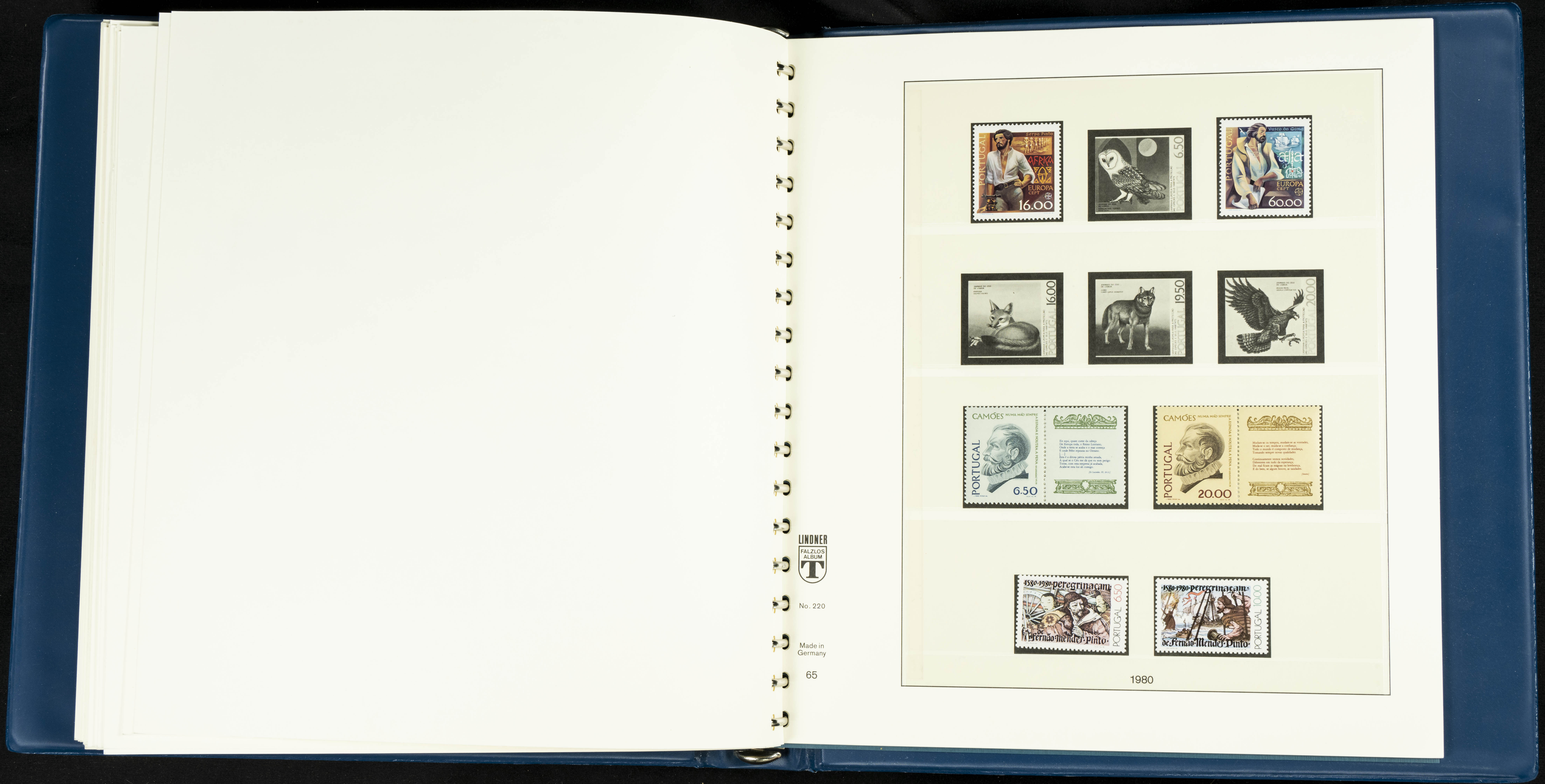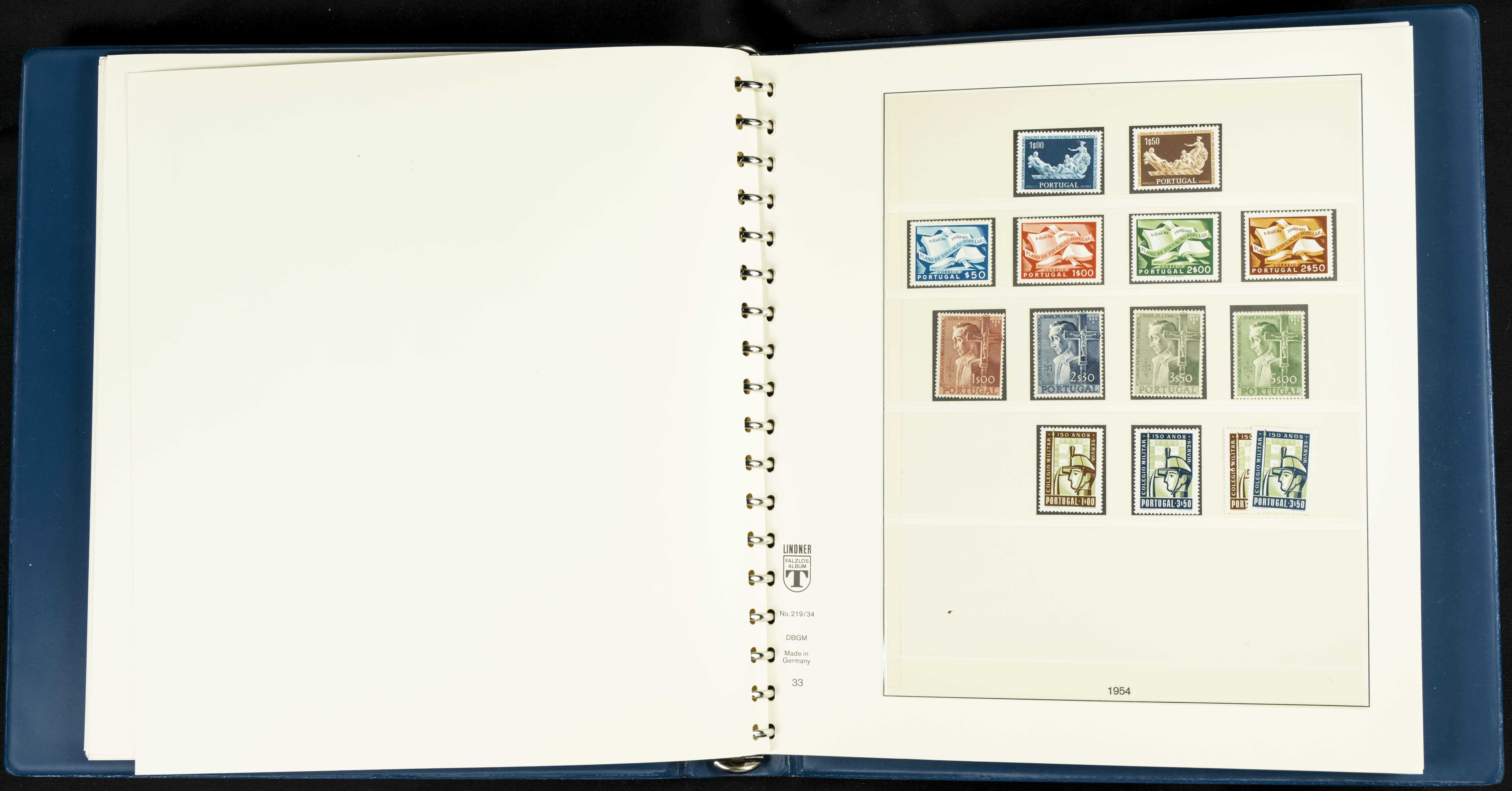 English ★★/★1954. Interesting and practically complete collection of Portuguese stamps from 1954 to 1980, in mint condition and mostly without hinges (mounted in Lindner albums, blank sheets from 1853 onwards are included). HIGH CATALOGUE VALUE. TO BE EXAMINED.