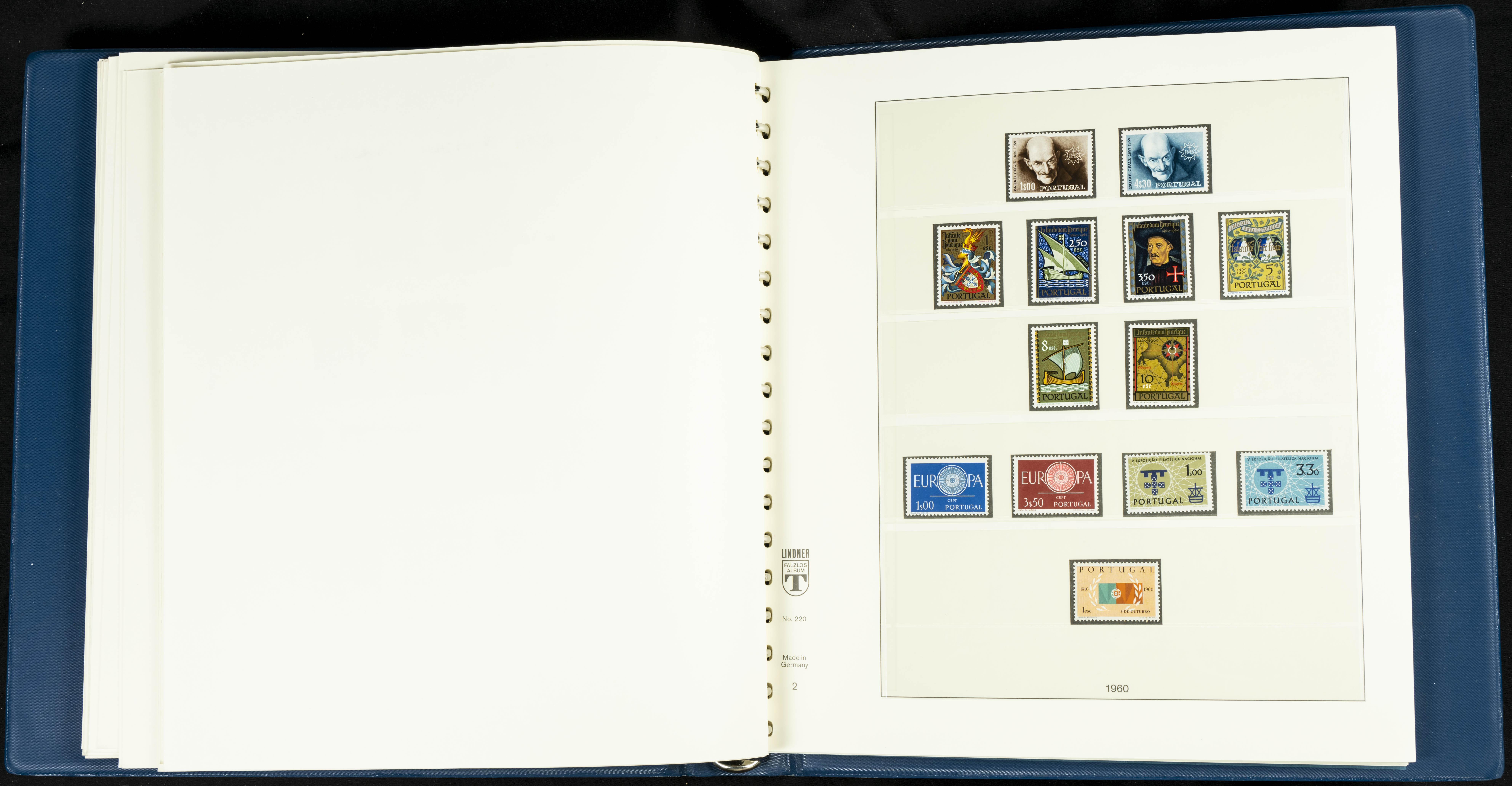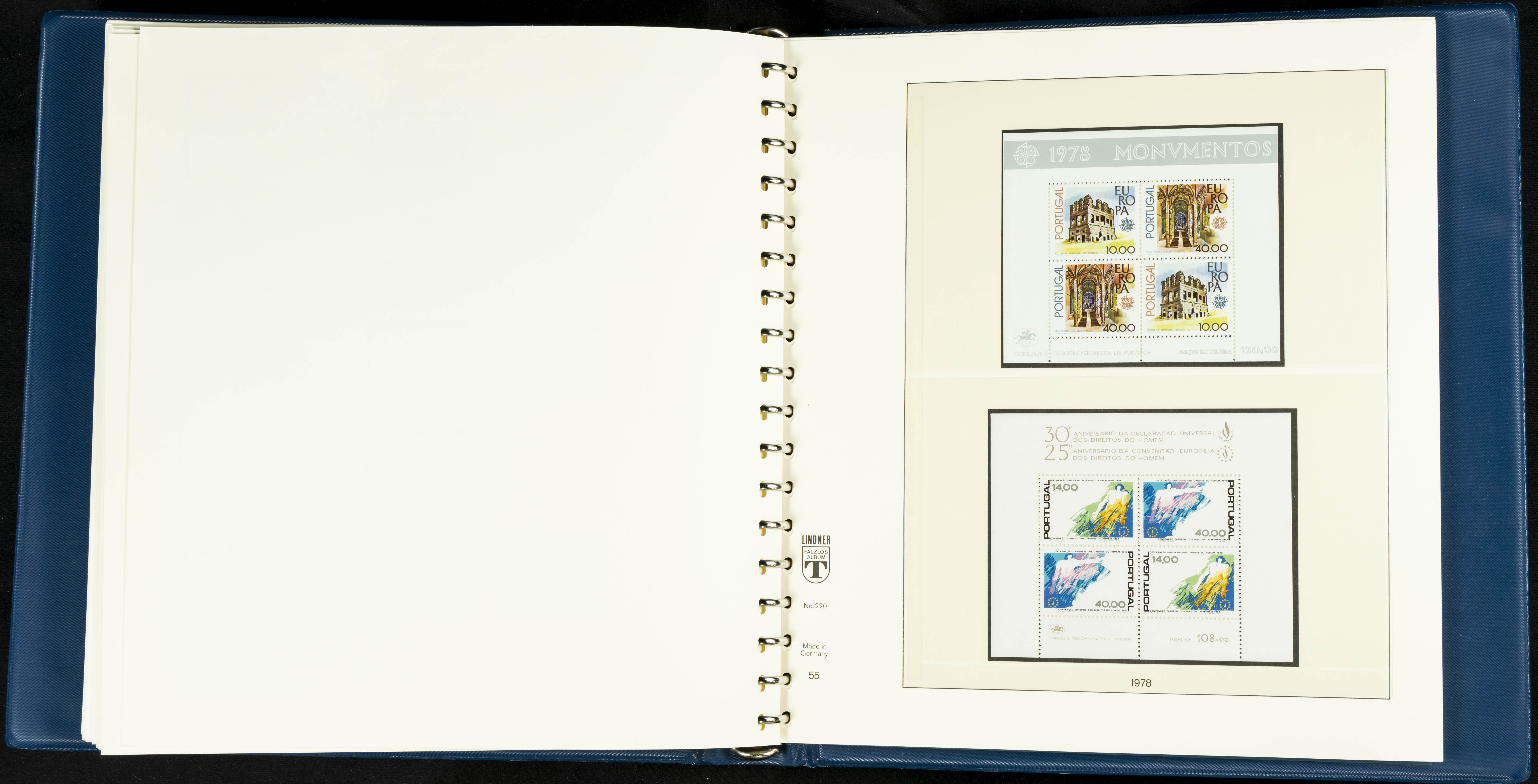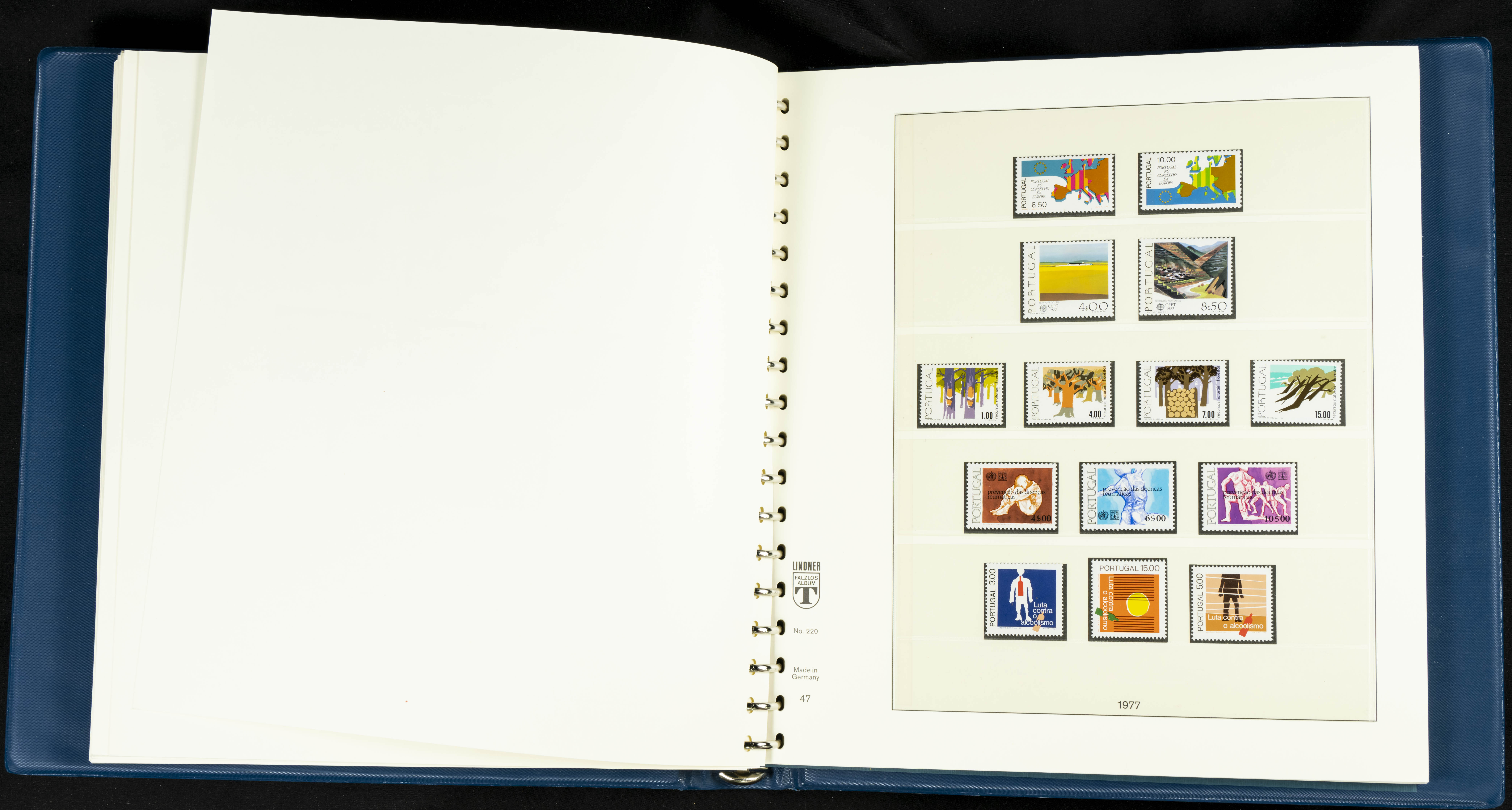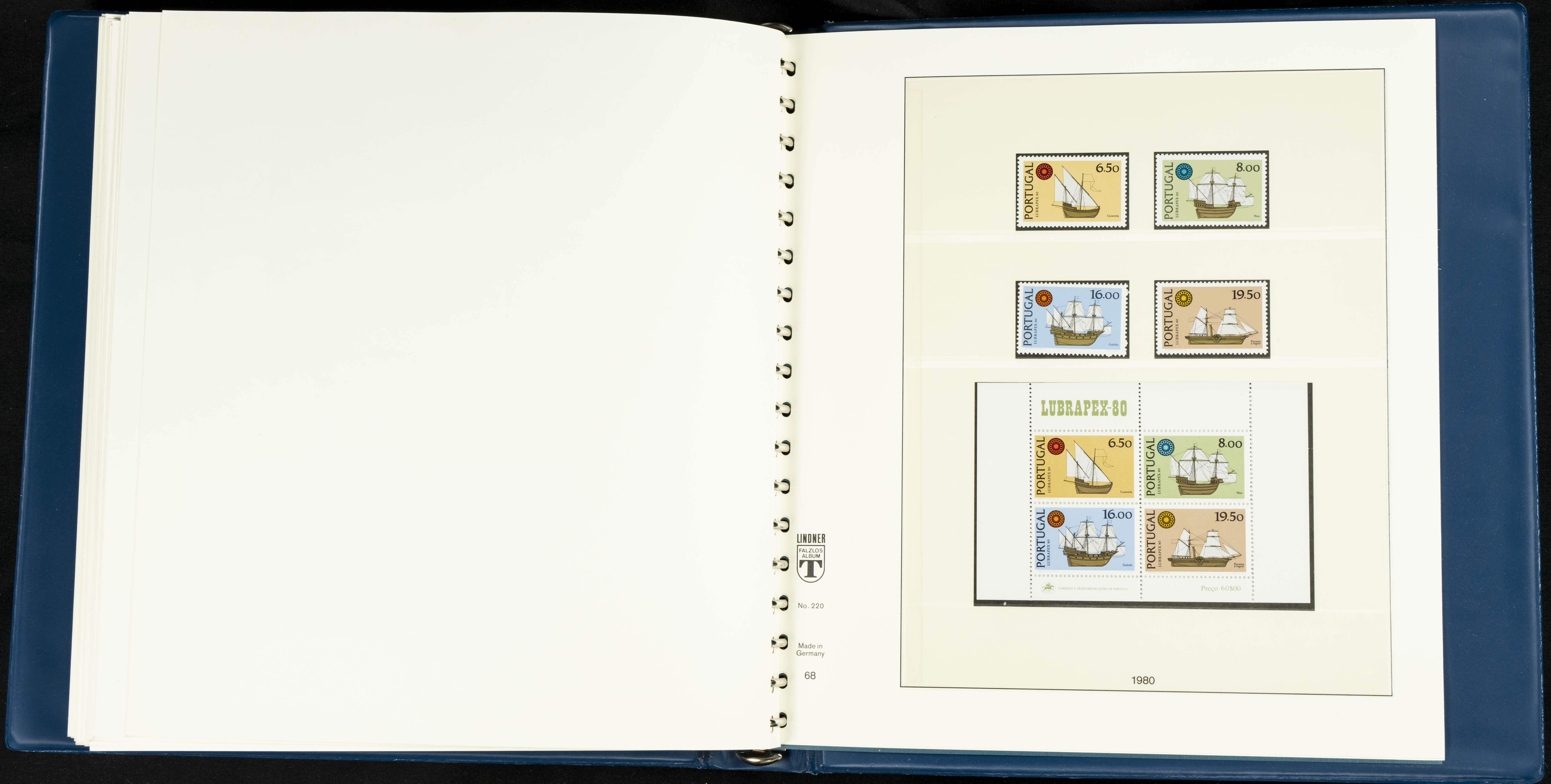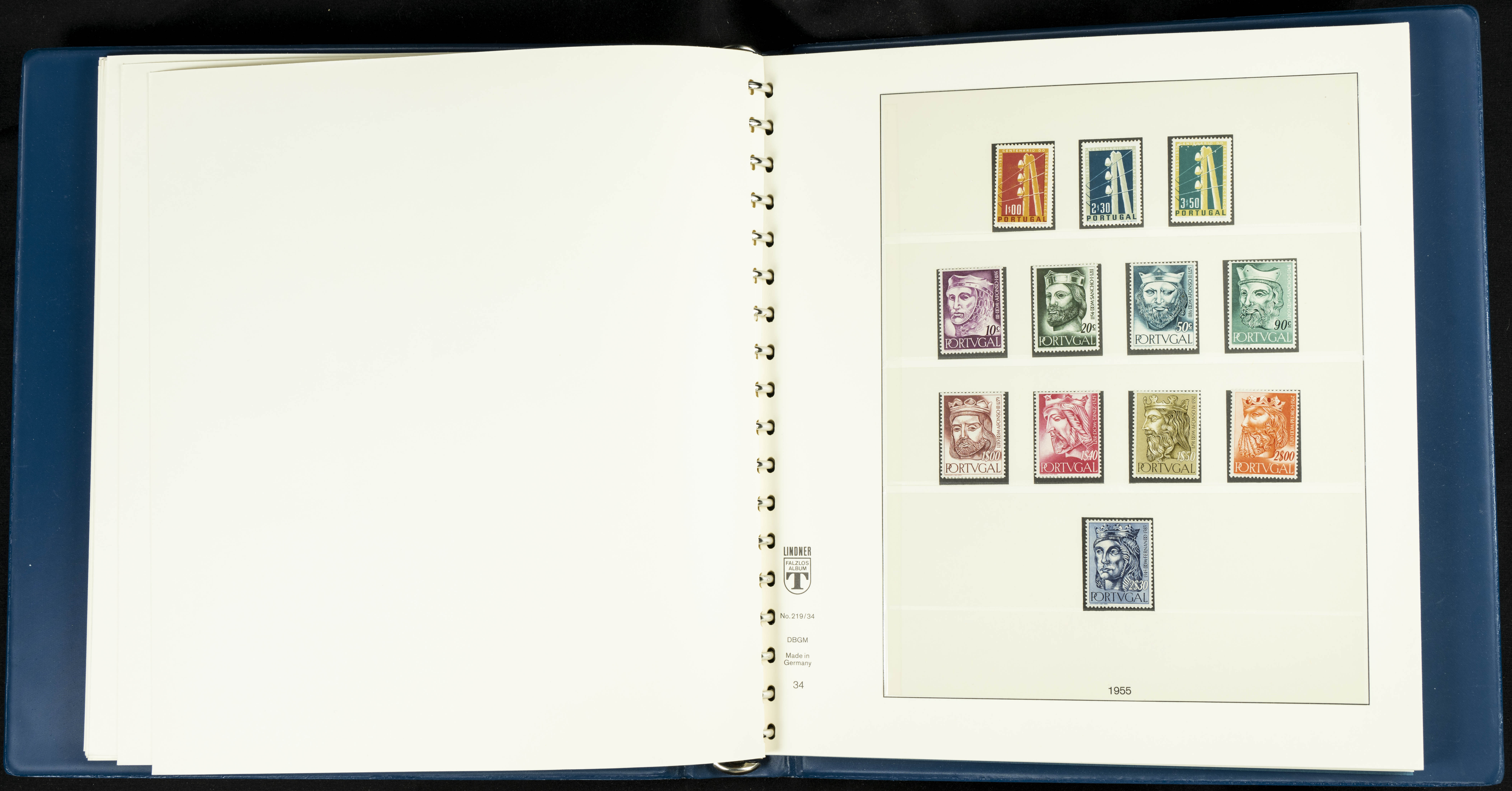 English ★★/★1954. Interesting and practically complete collection of Portuguese stamps from 1954 to 1980, in mint condition and mostly without hinges (mounted in Lindner albums, blank sheets from 1853 onwards are included). HIGH CATALOGUE VALUE. TO BE EXAMINED.