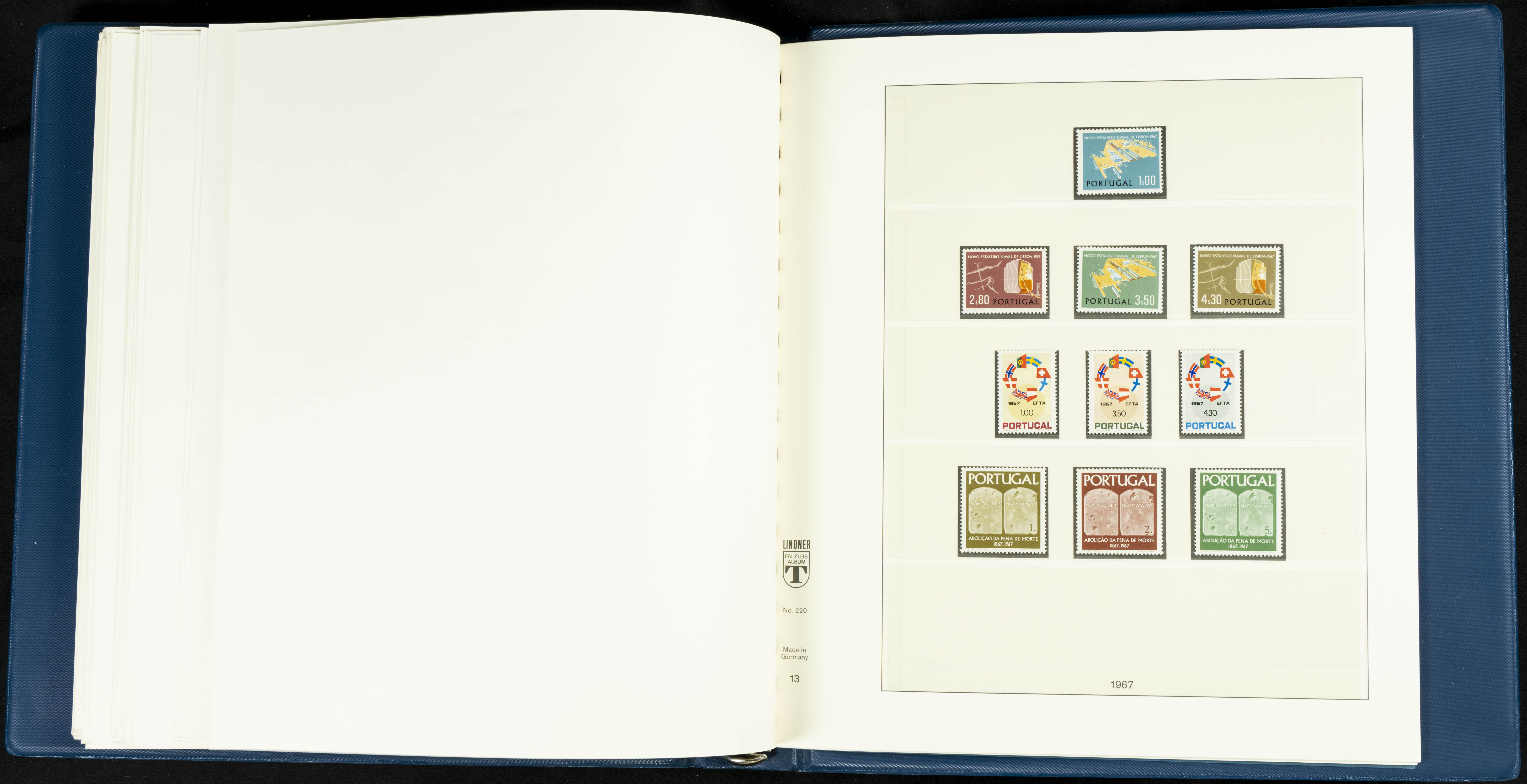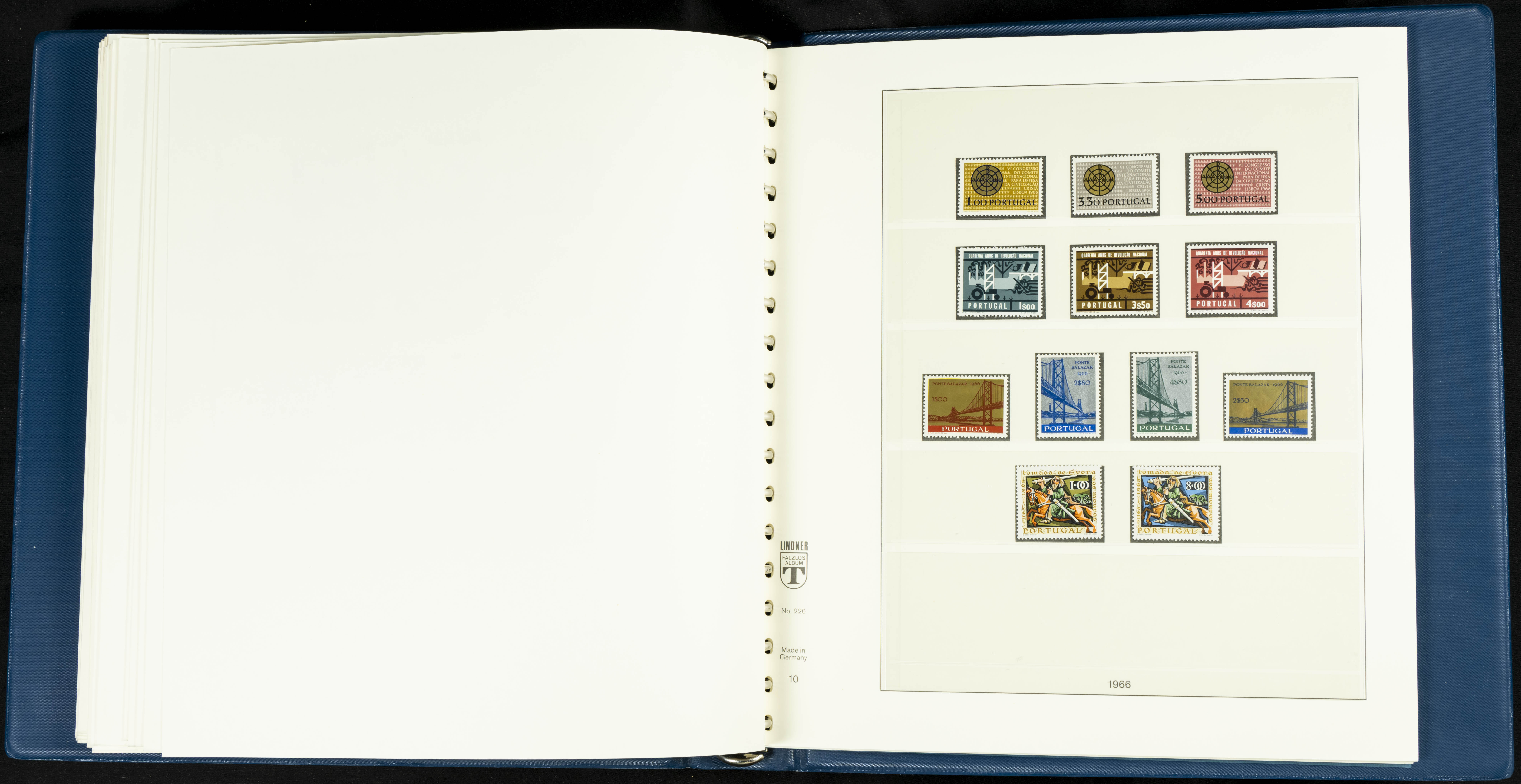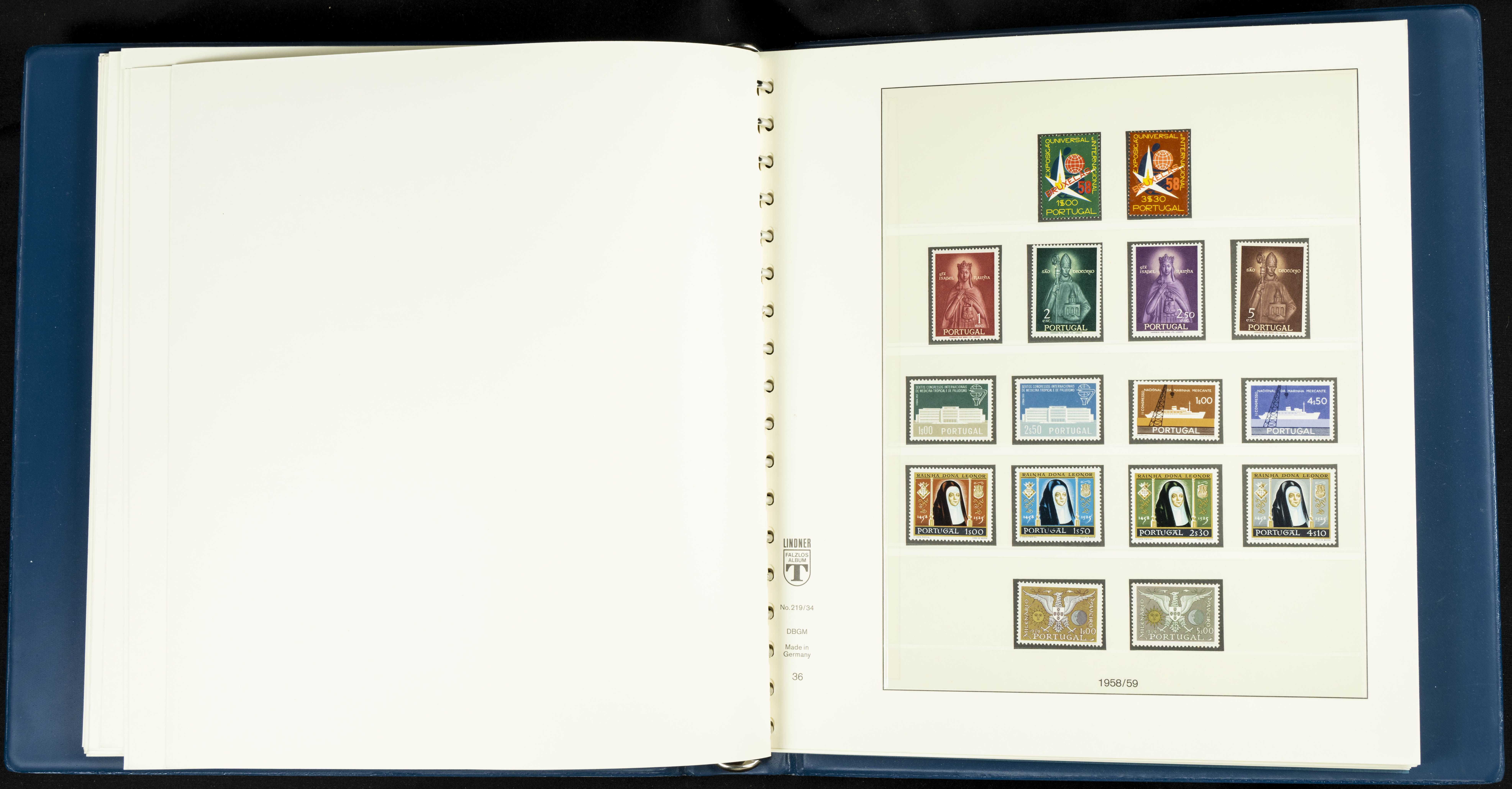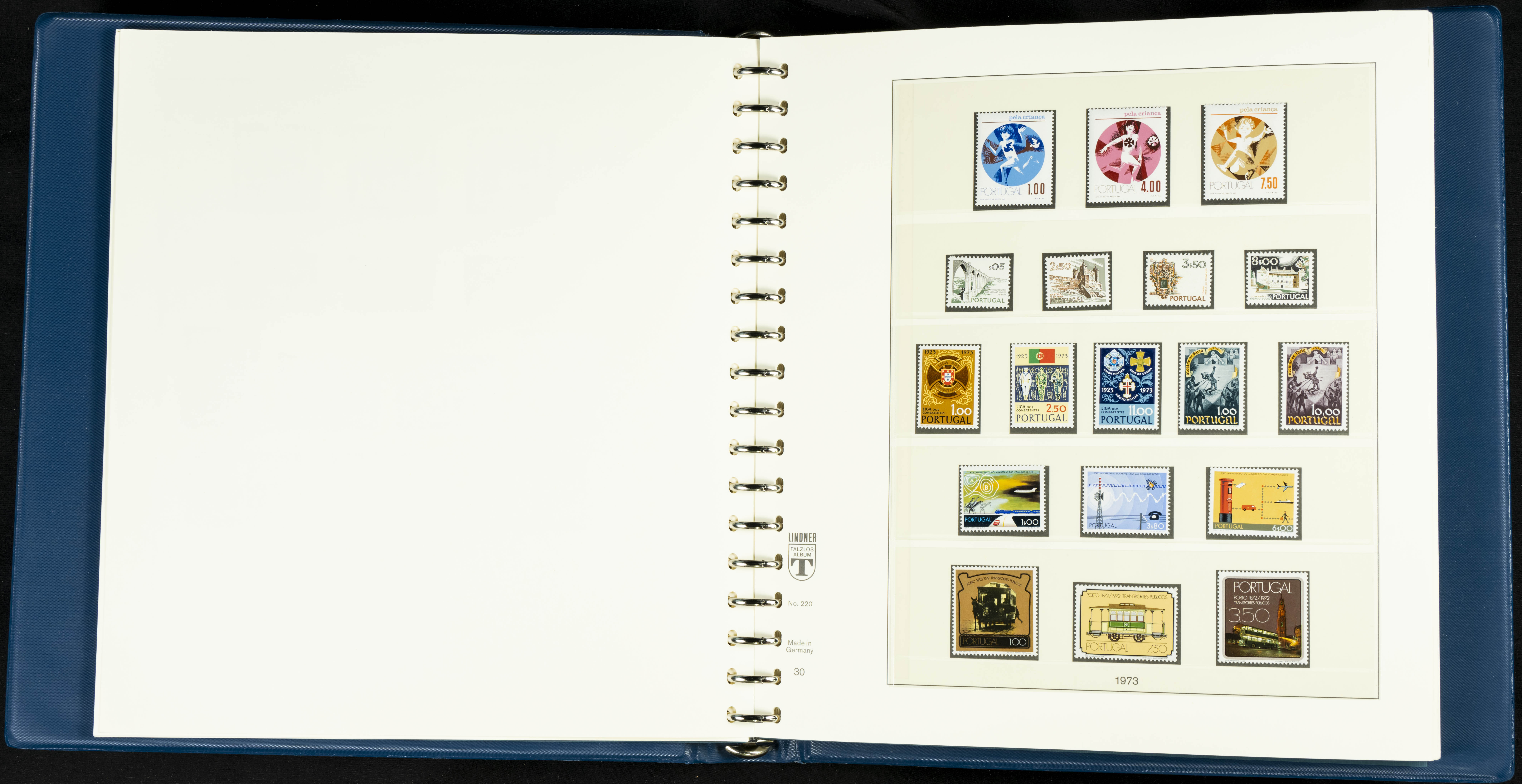 English ★★/★1954. Interesting and practically complete collection of Portuguese stamps from 1954 to 1980, in mint condition and mostly without hinges (mounted in Lindner albums, blank sheets from 1853 onwards are included). HIGH CATALOGUE VALUE. TO BE EXAMINED.