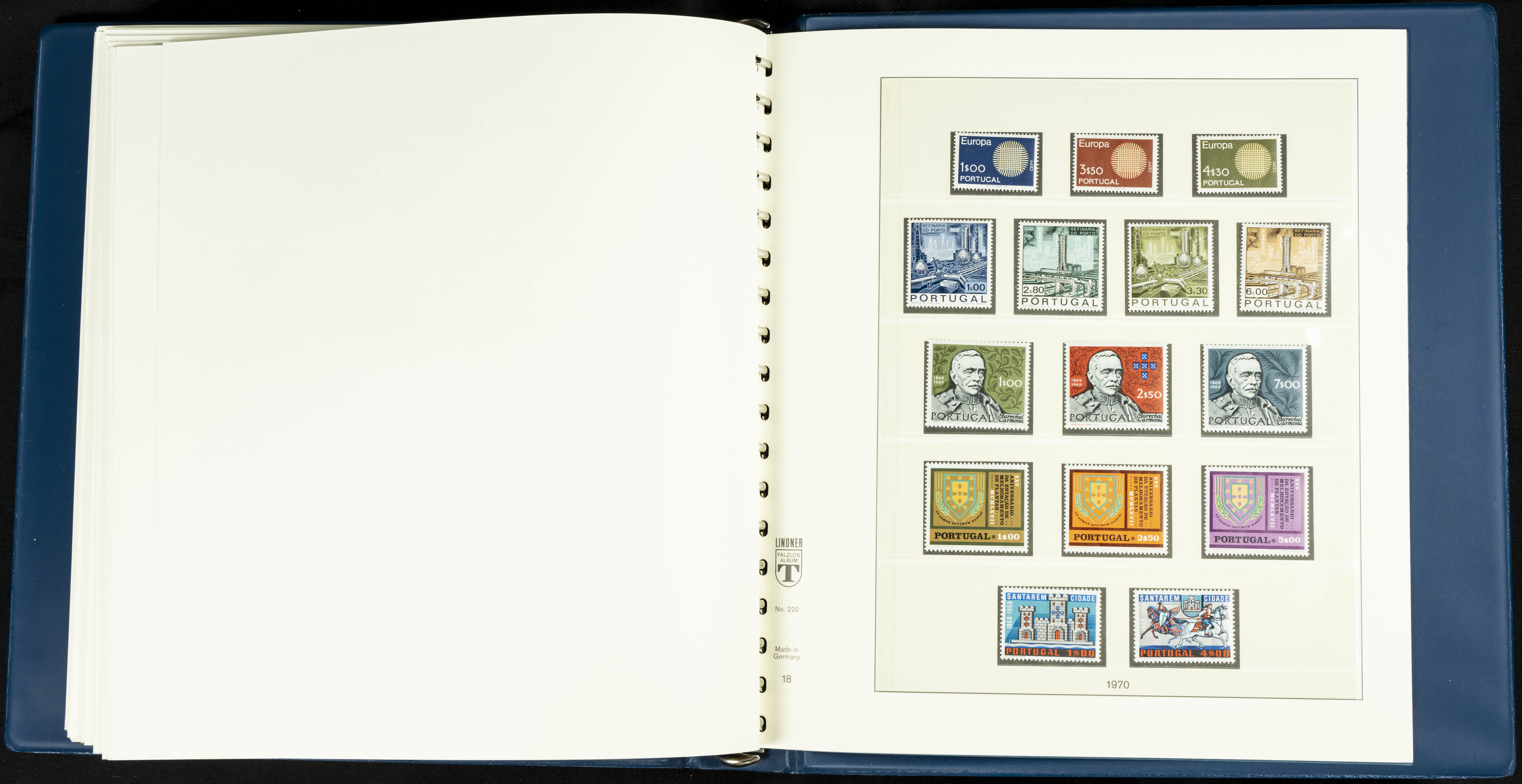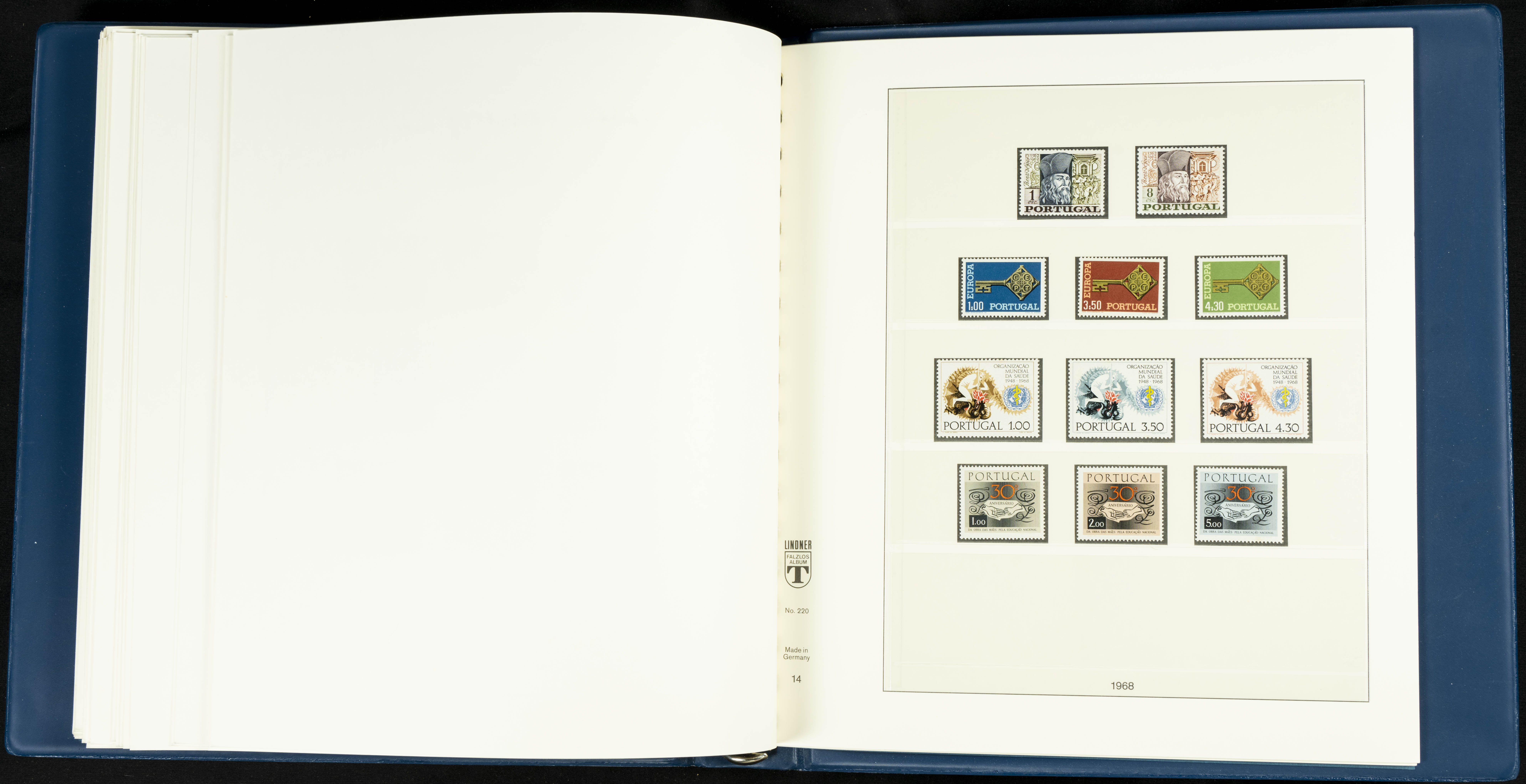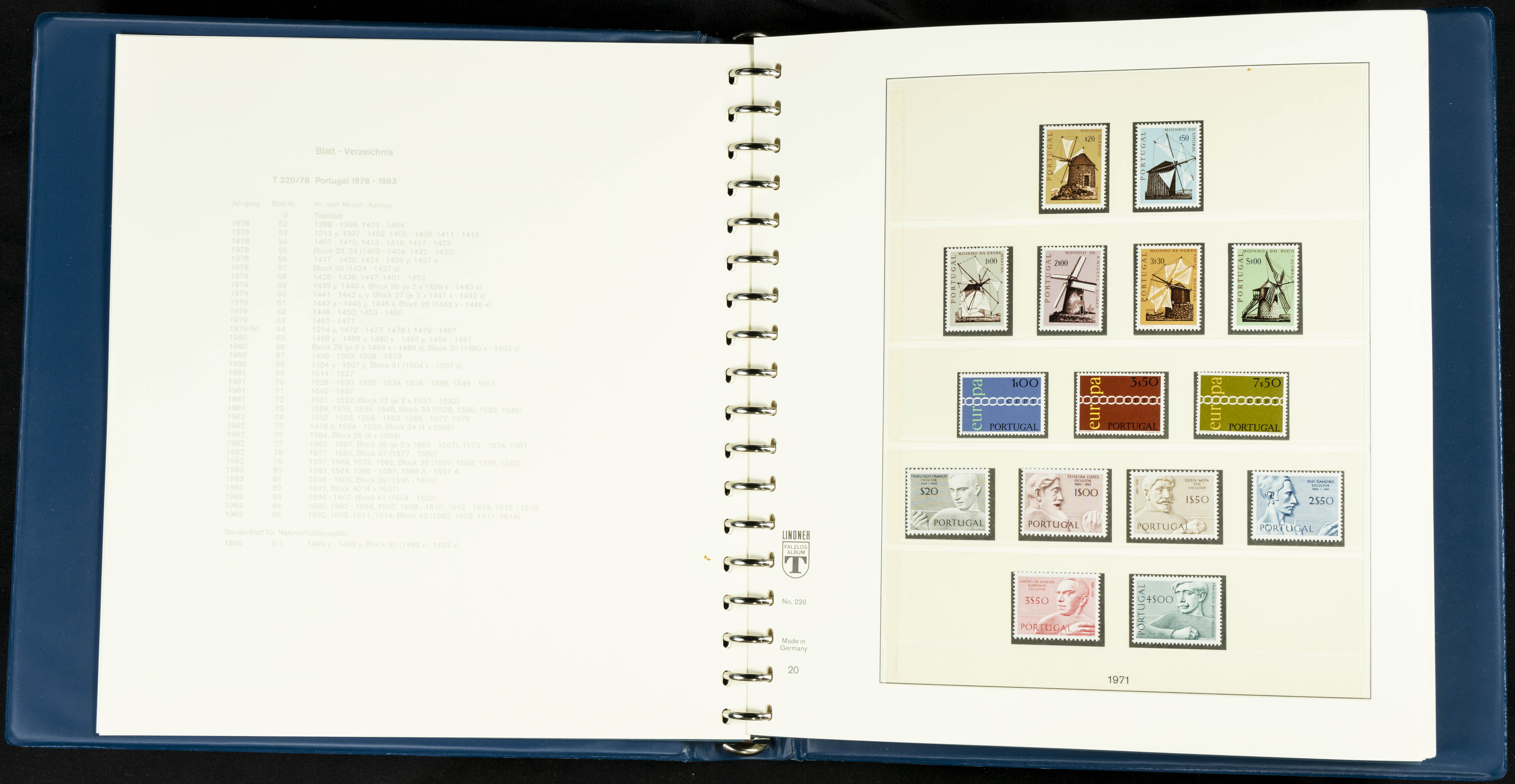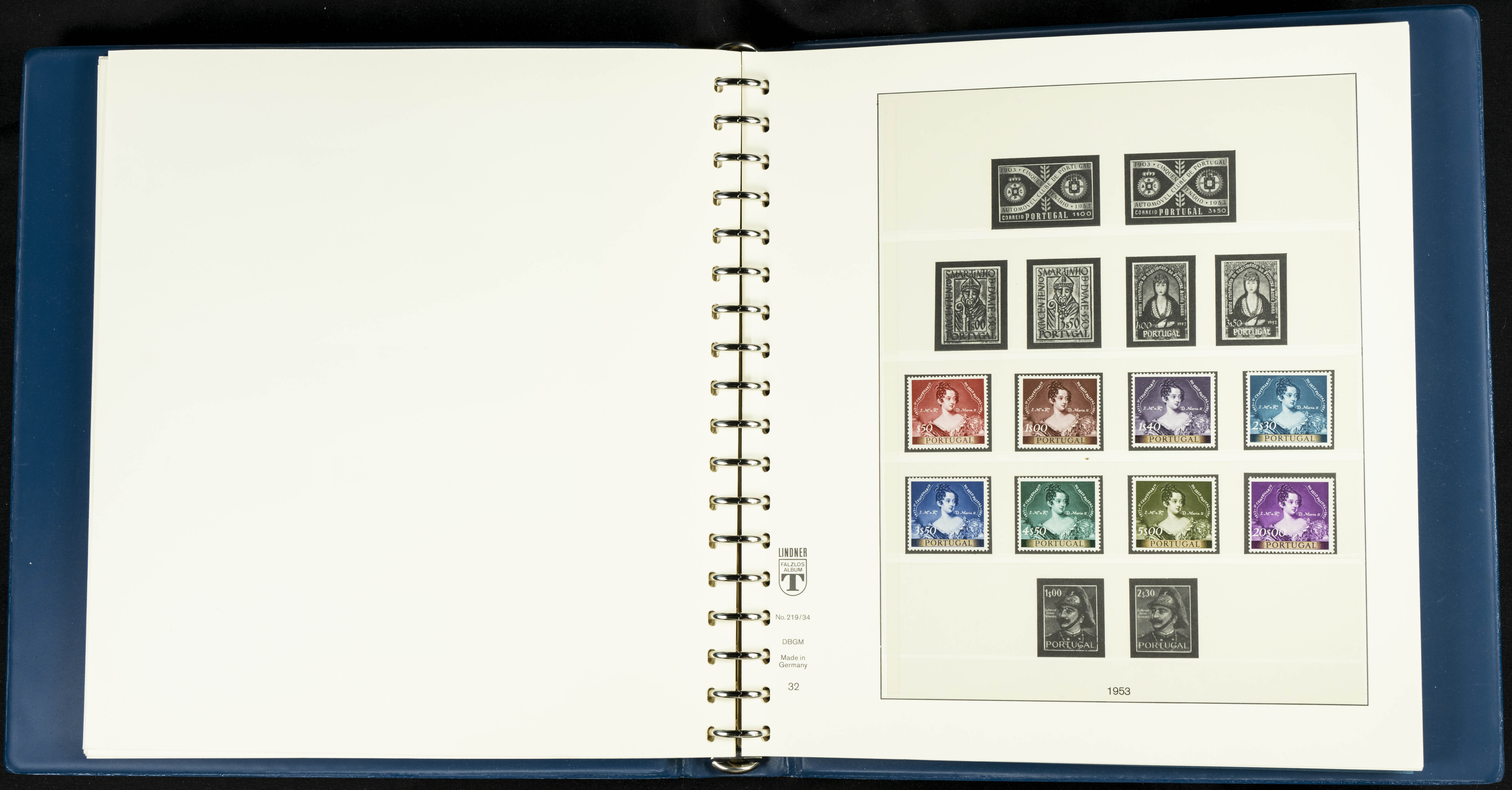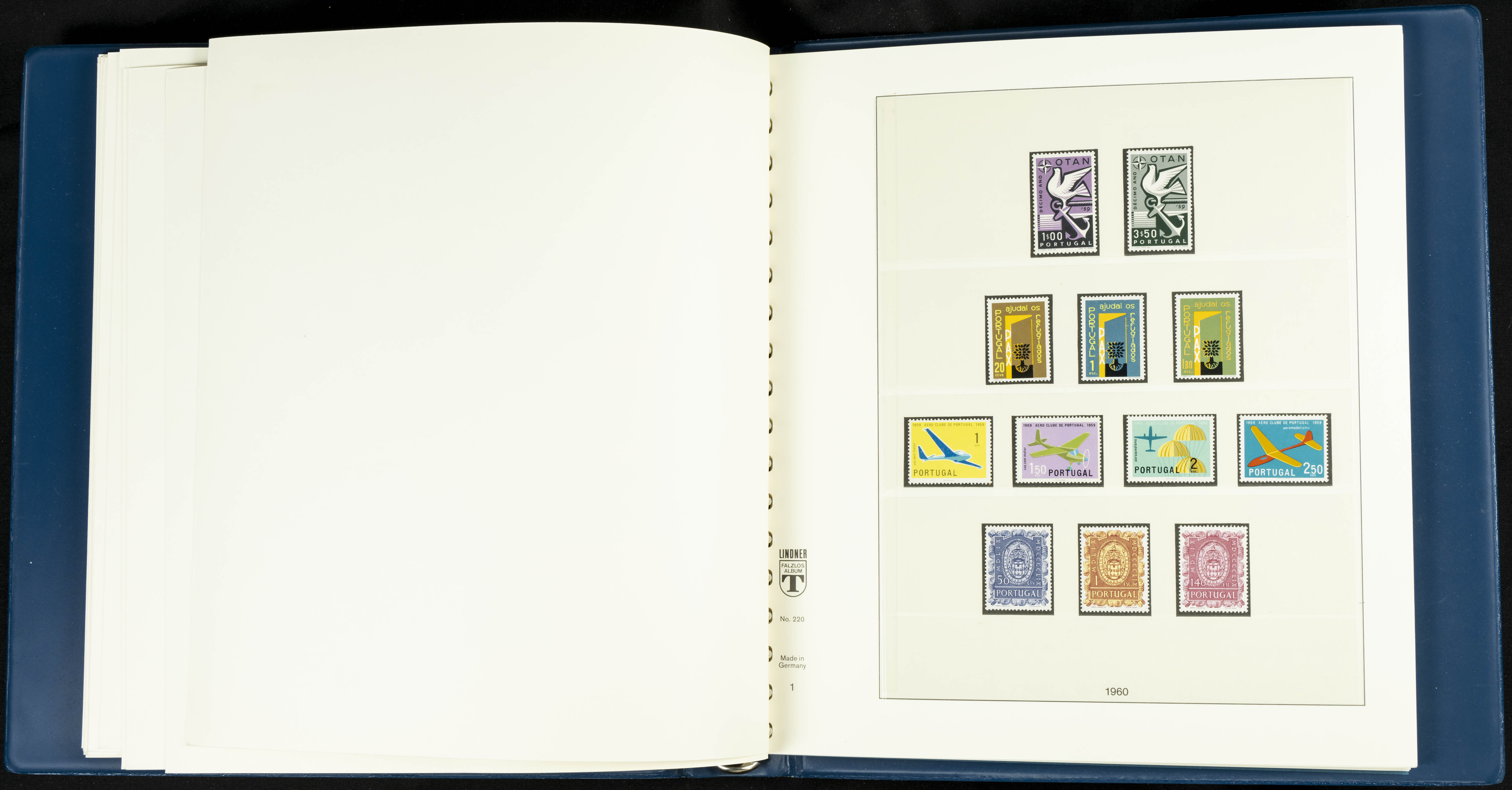 English ★★/★1954. Interesting and practically complete collection of Portuguese stamps from 1954 to 1980, in mint condition and mostly without hinges (mounted in Lindner albums, blank sheets from 1853 onwards are included). HIGH CATALOGUE VALUE. TO BE EXAMINED.