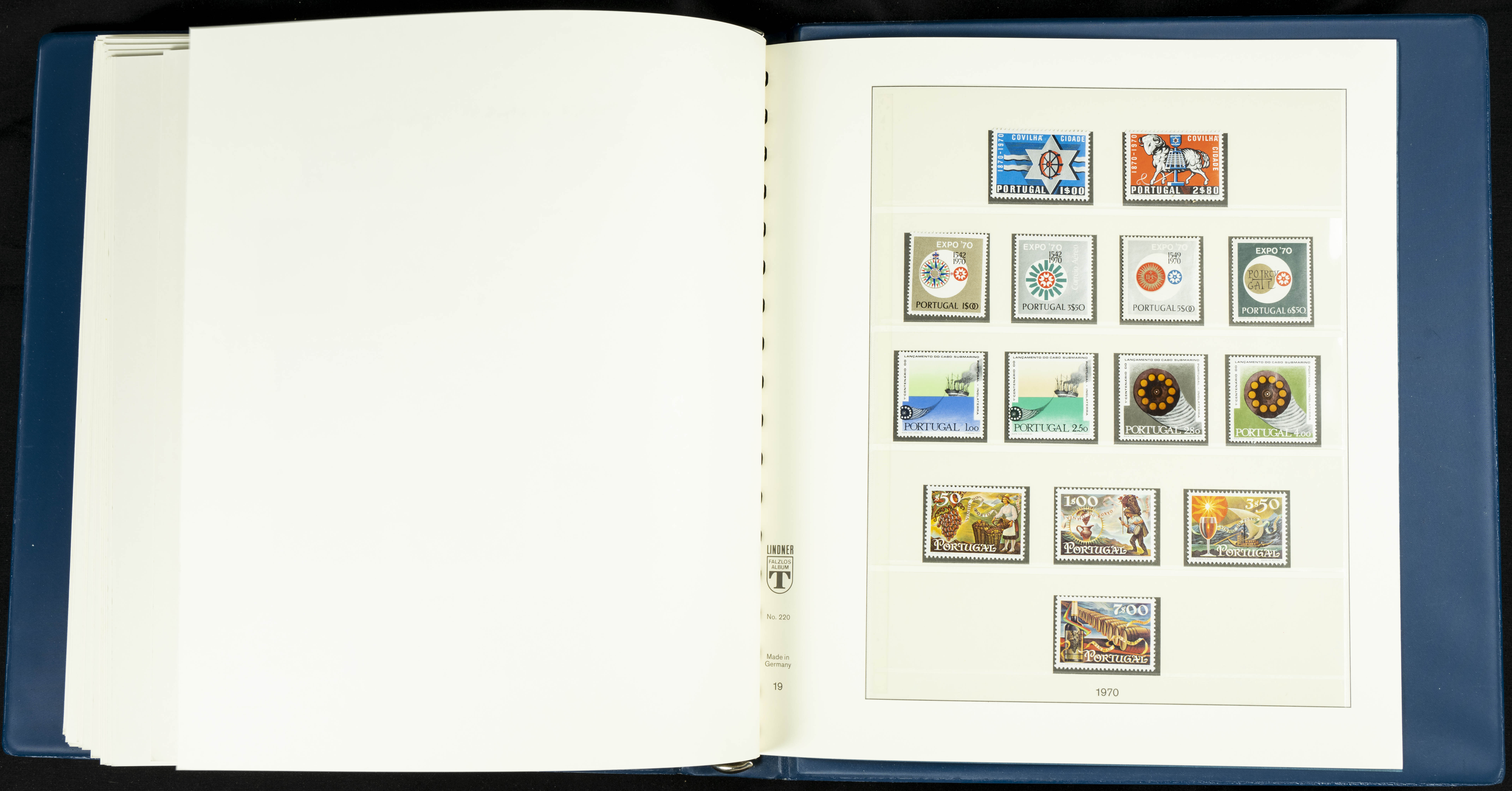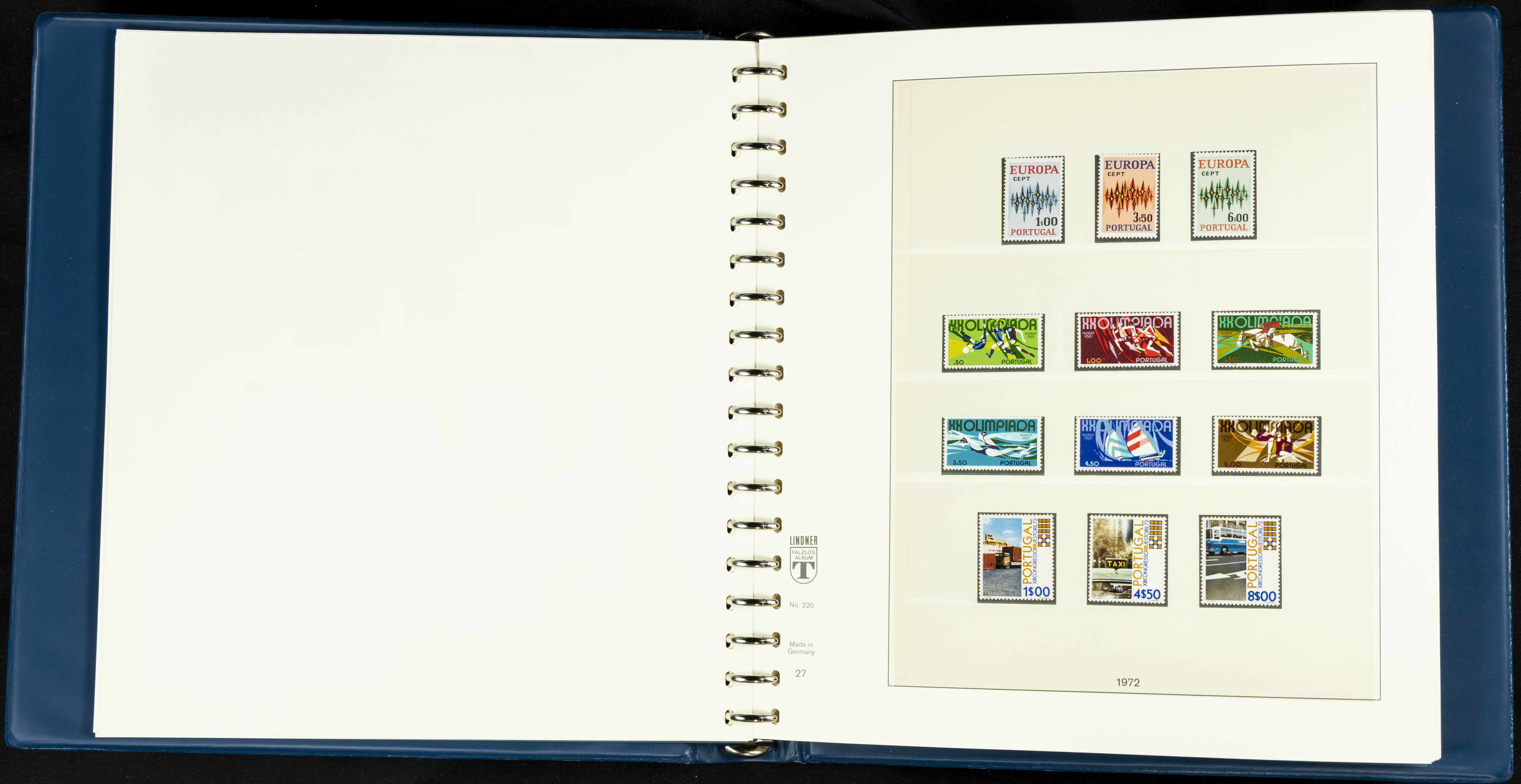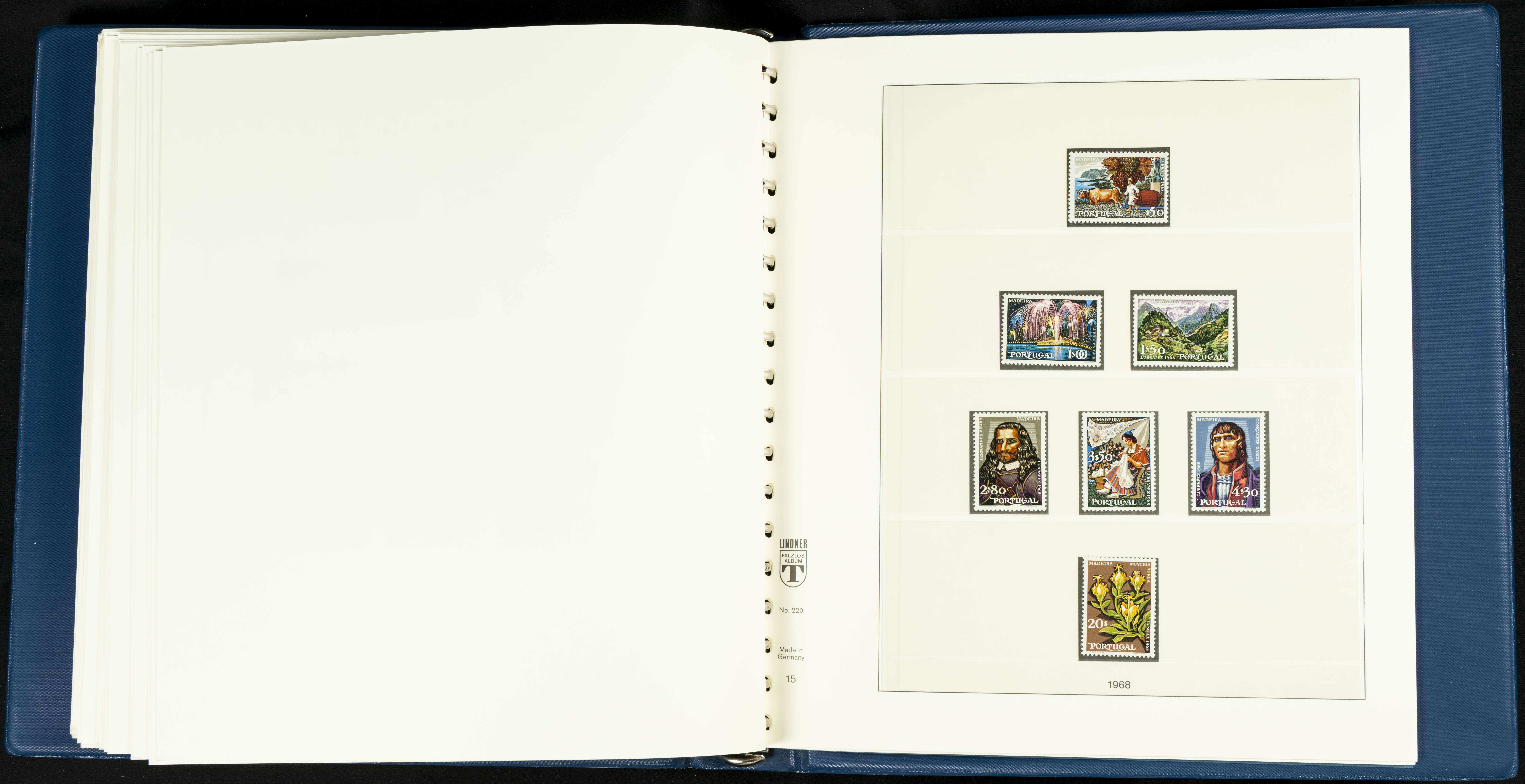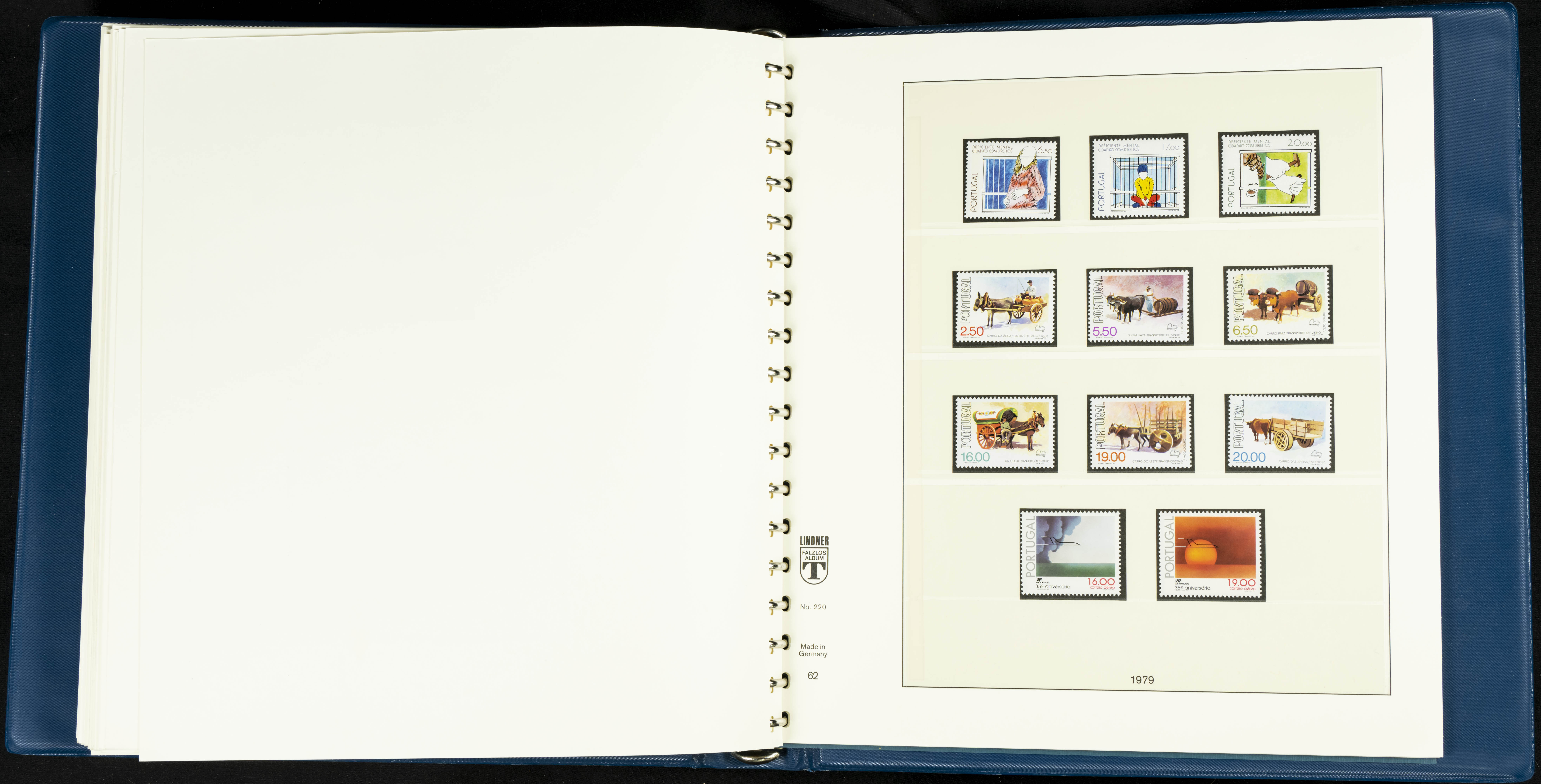 English ★★/★1954. Interesting and practically complete collection of Portuguese stamps from 1954 to 1980, in mint condition and mostly without hinges (mounted in Lindner albums, blank sheets from 1853 onwards are included). HIGH CATALOGUE VALUE. TO BE EXAMINED.