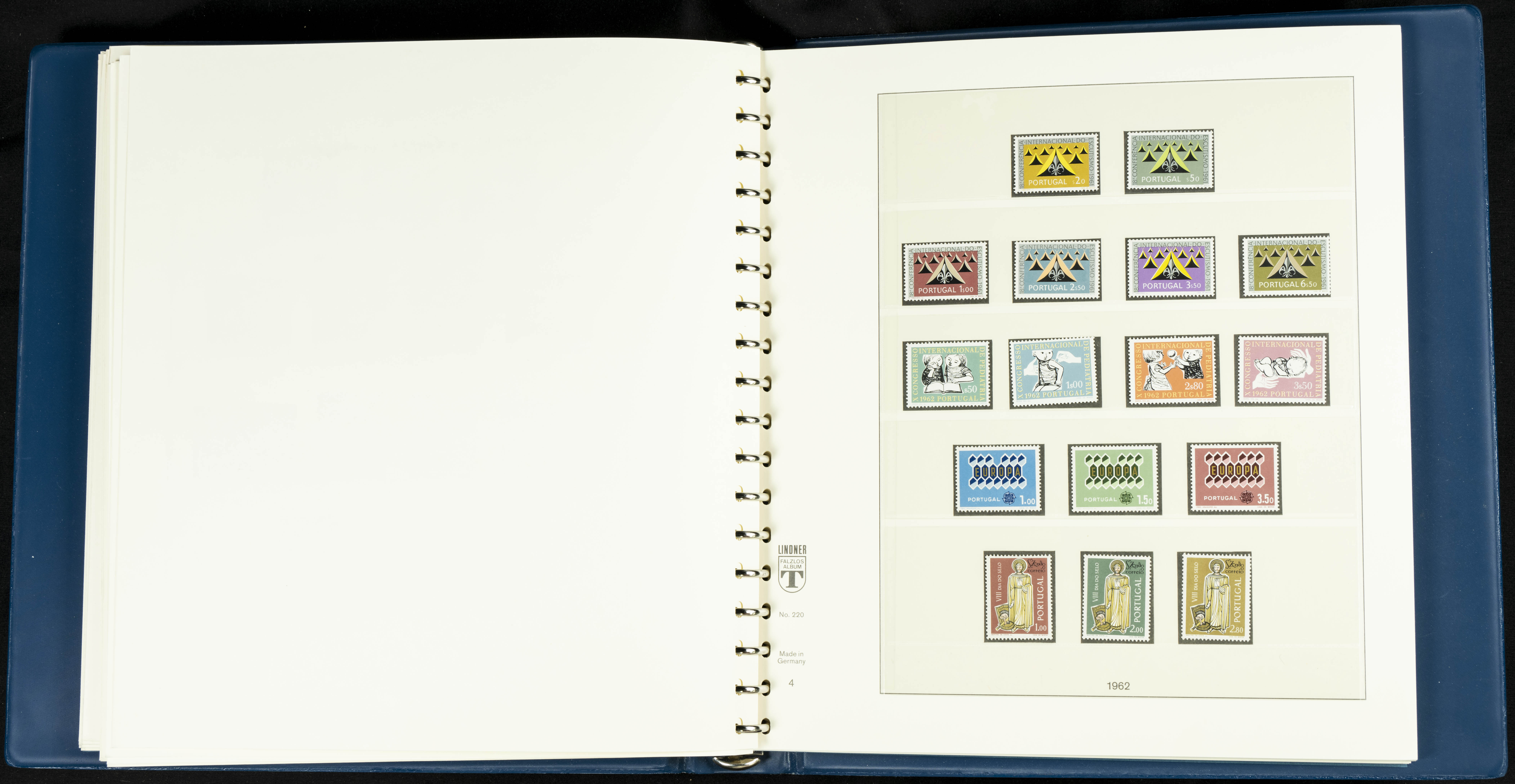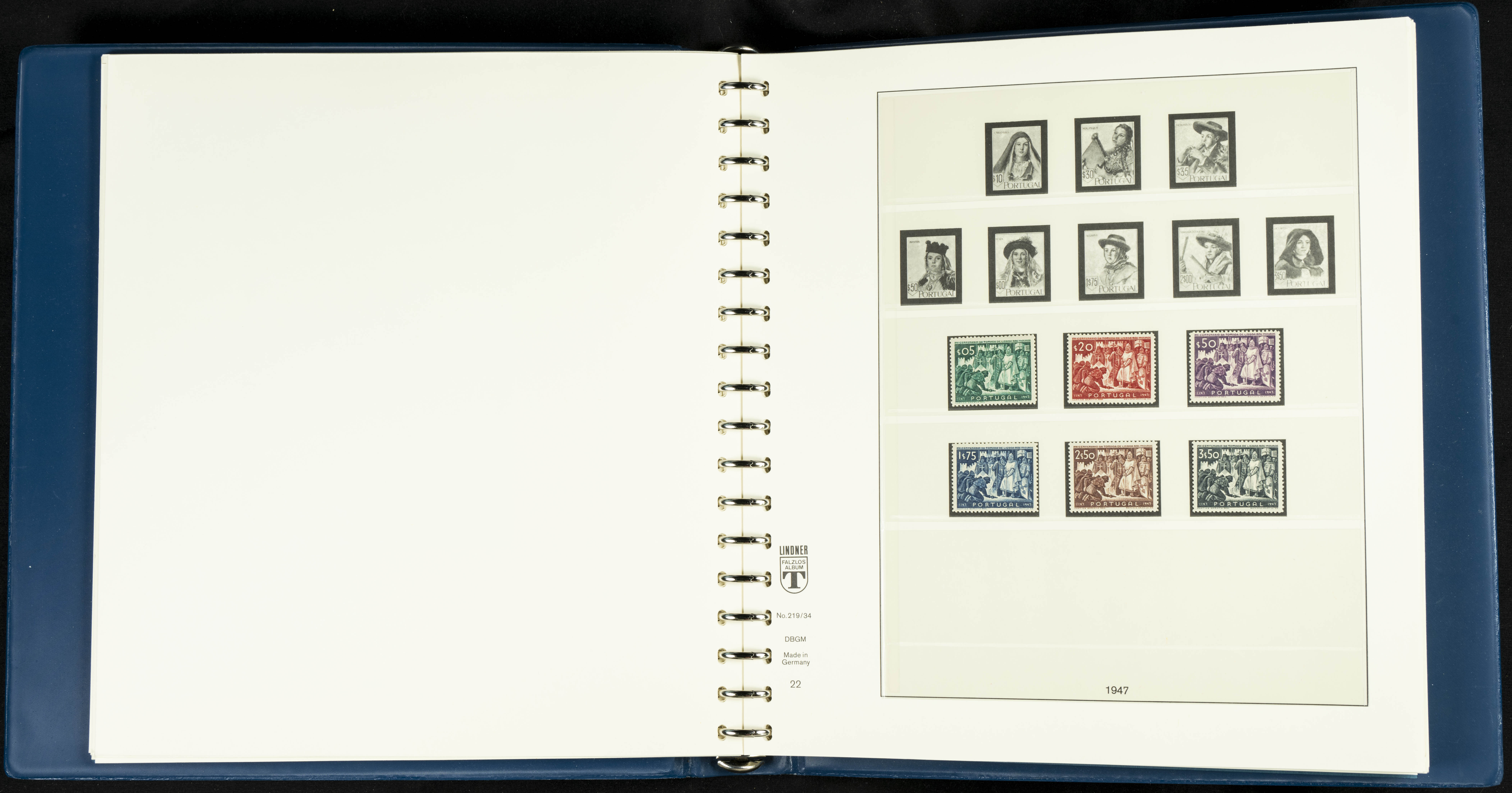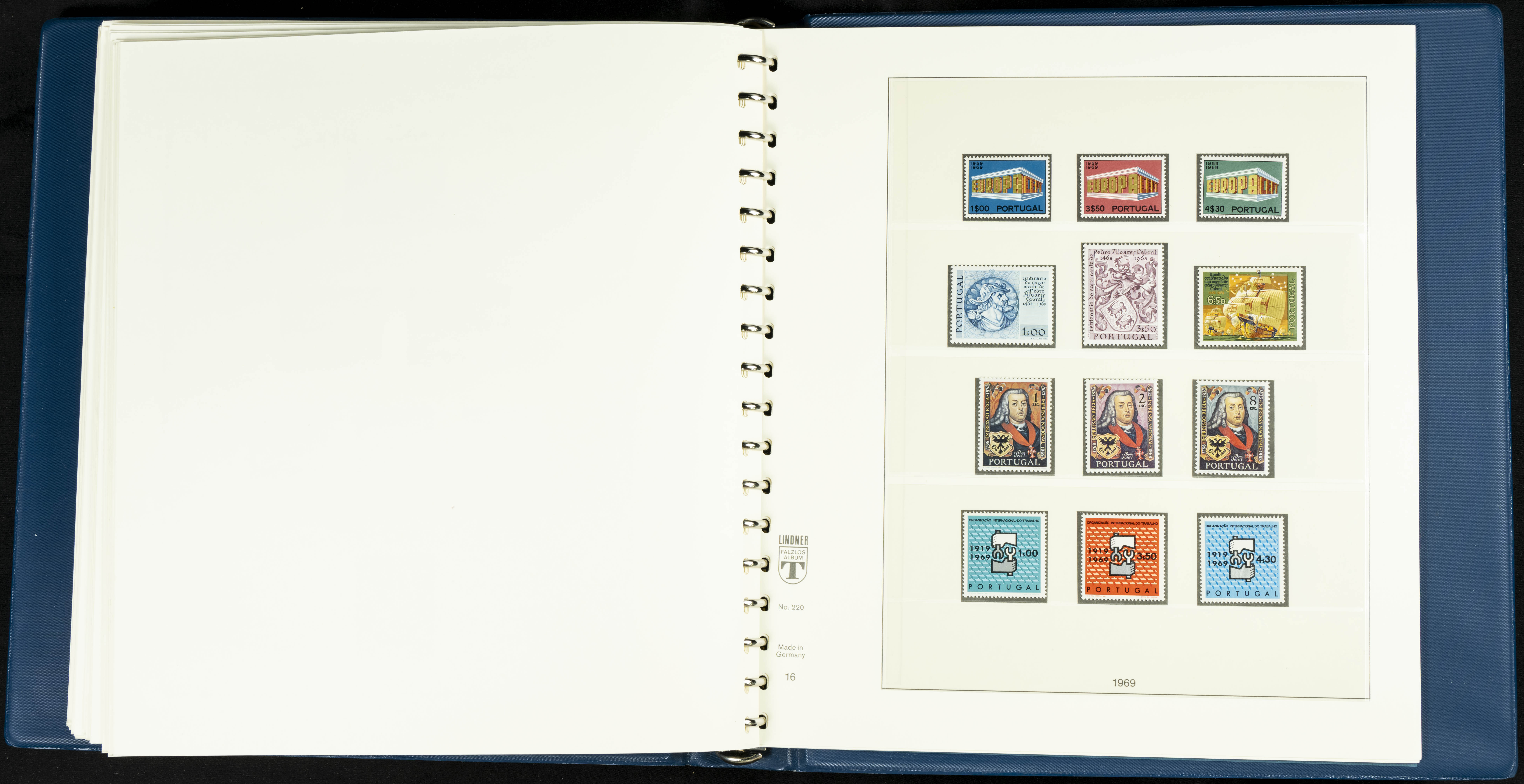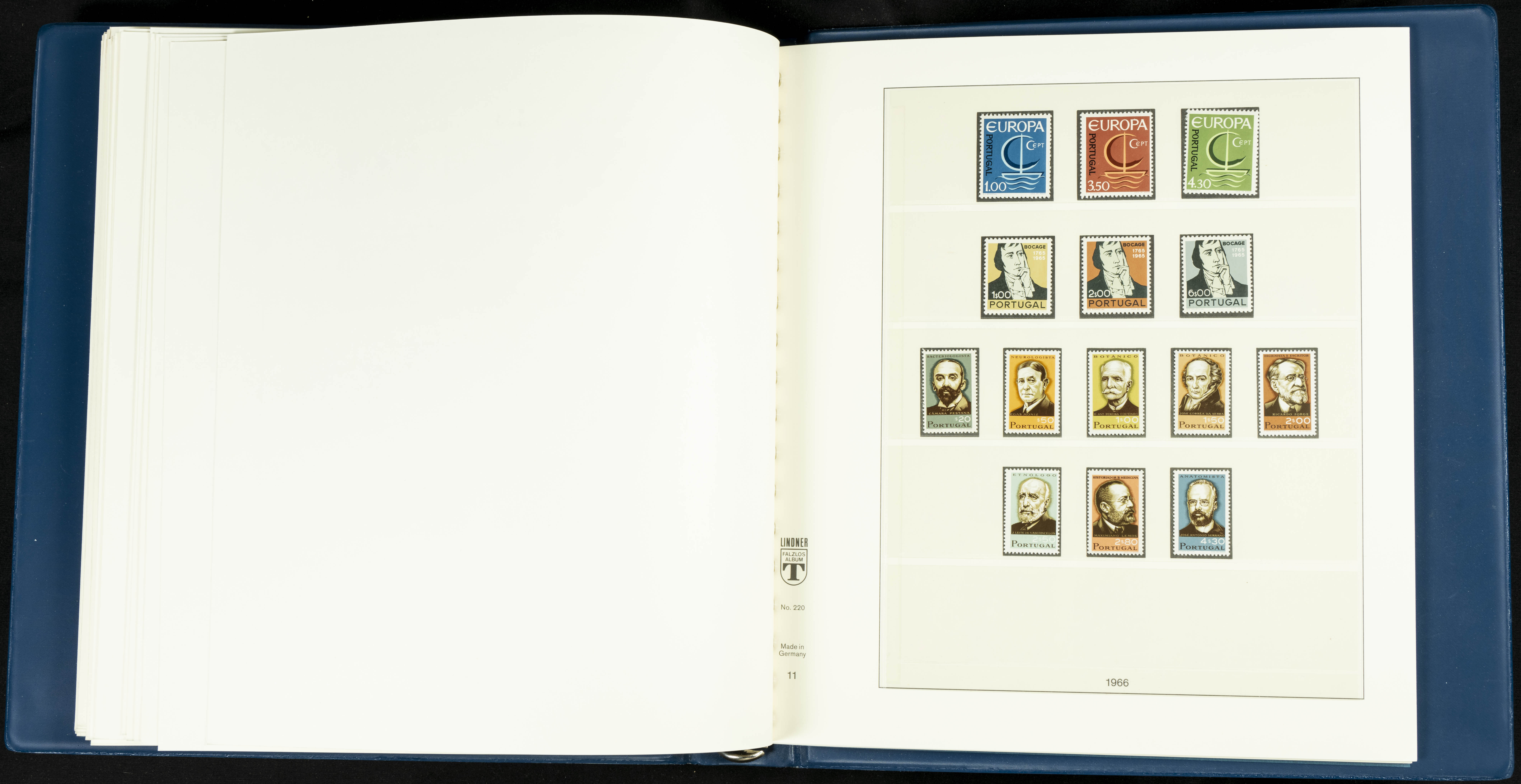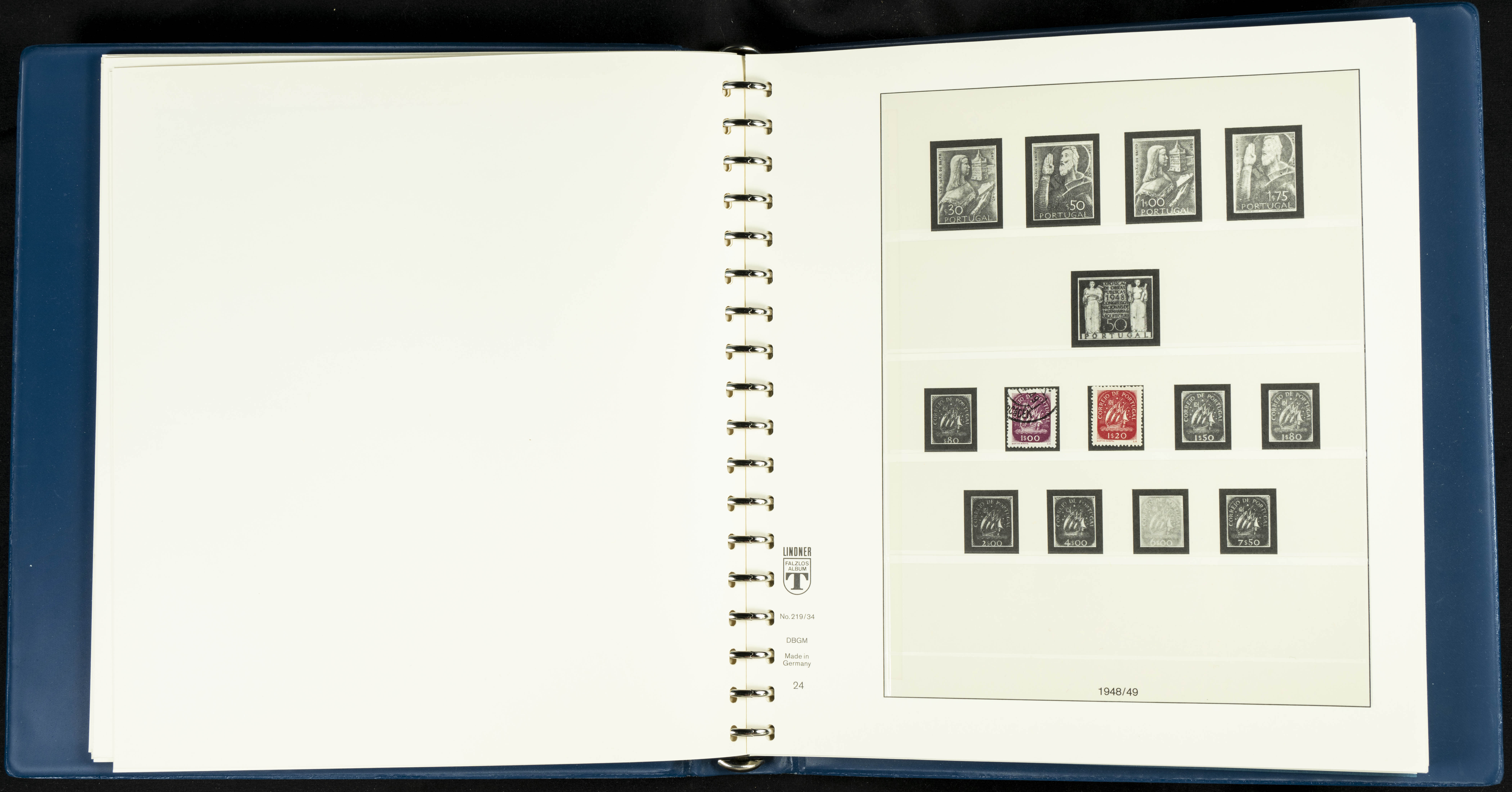 English ★★/★1954. Interesting and practically complete collection of Portuguese stamps from 1954 to 1980, in mint condition and mostly without hinges (mounted in Lindner albums, blank sheets from 1853 onwards are included). HIGH CATALOGUE VALUE. TO BE EXAMINED.