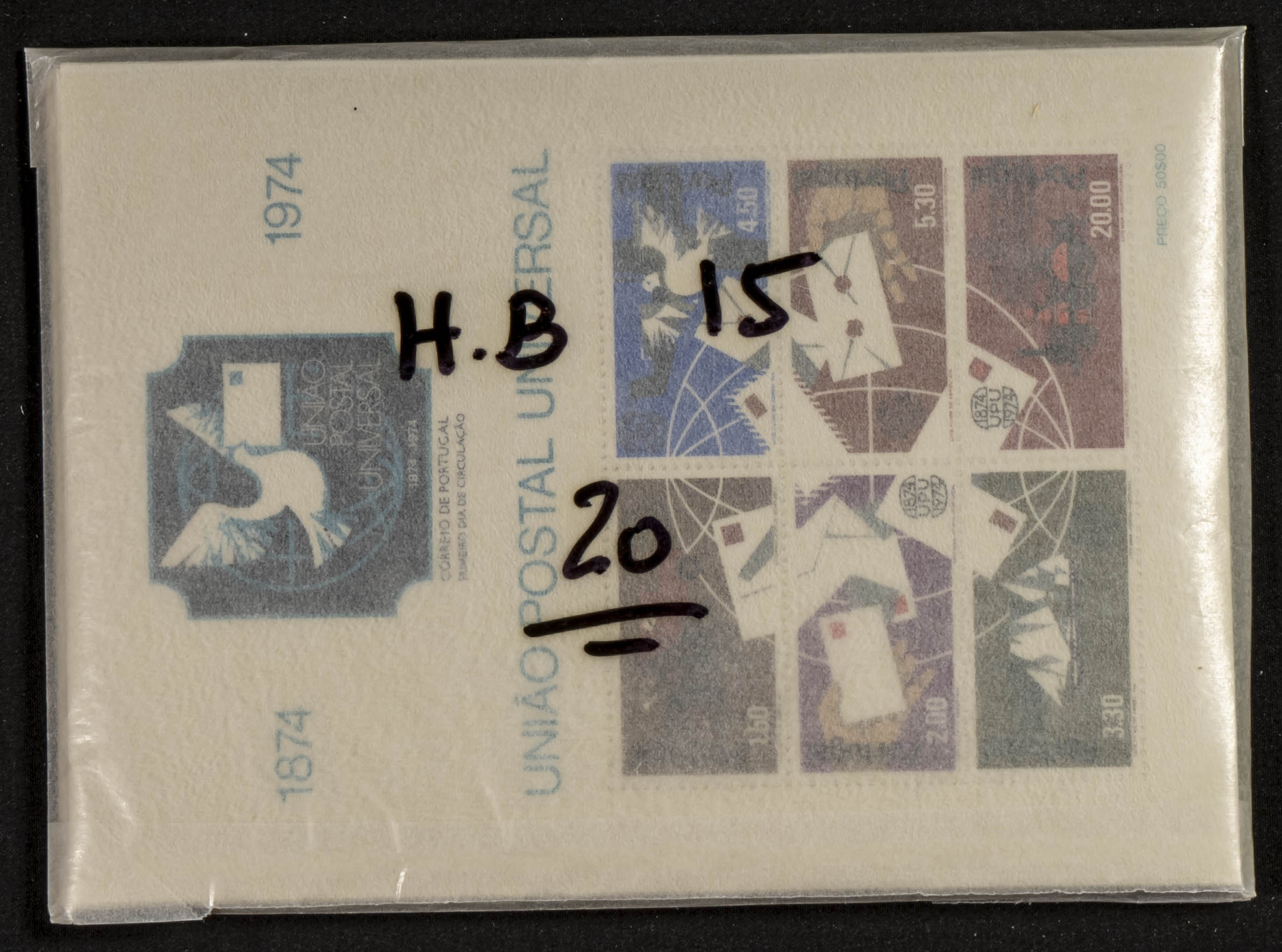 Yvert HB15(50). 1974. Set of fifty sheets of UPU notepads from Portugal, mint condition. TO BE EXAMINED. Yvert 2020: 500 Euros