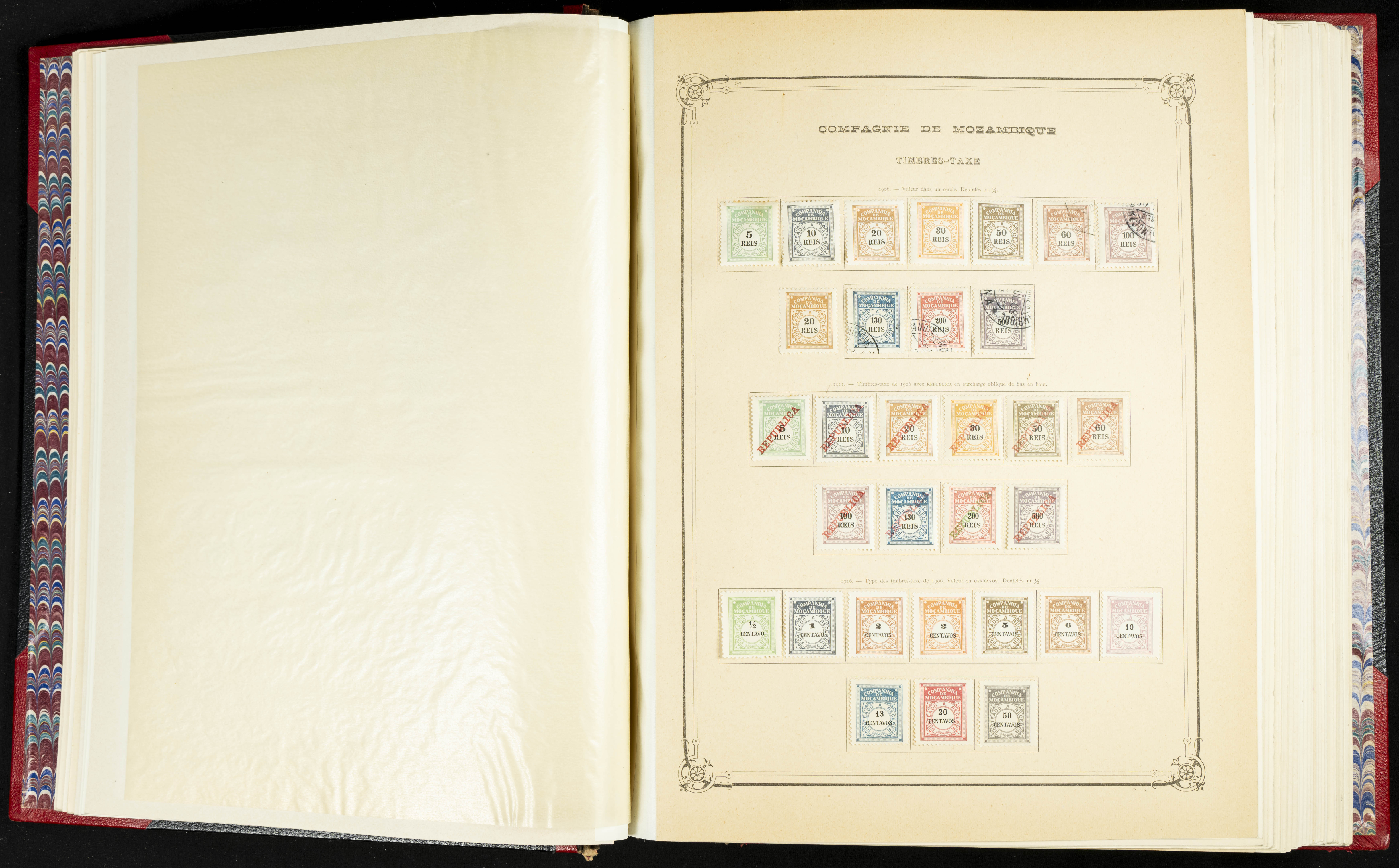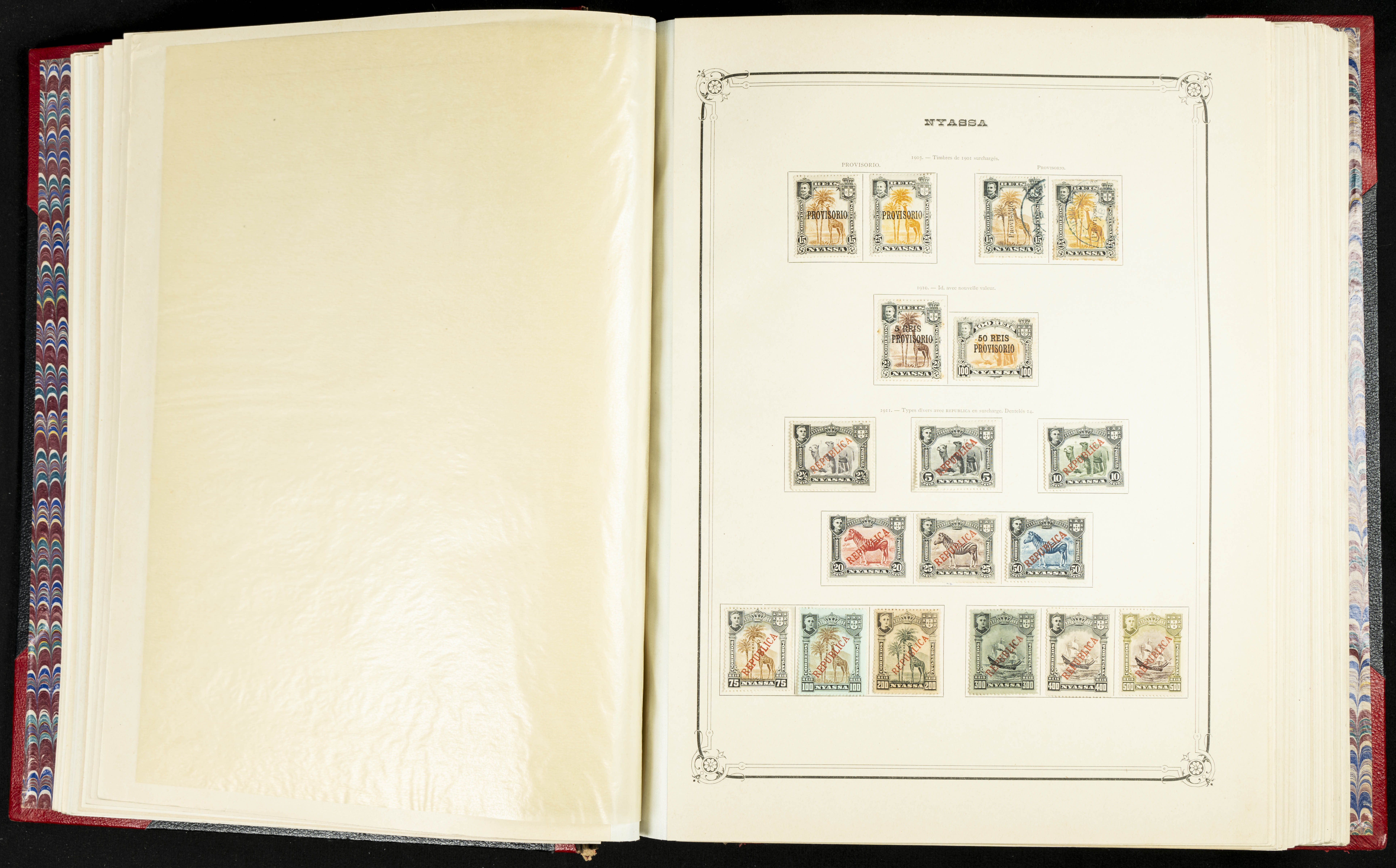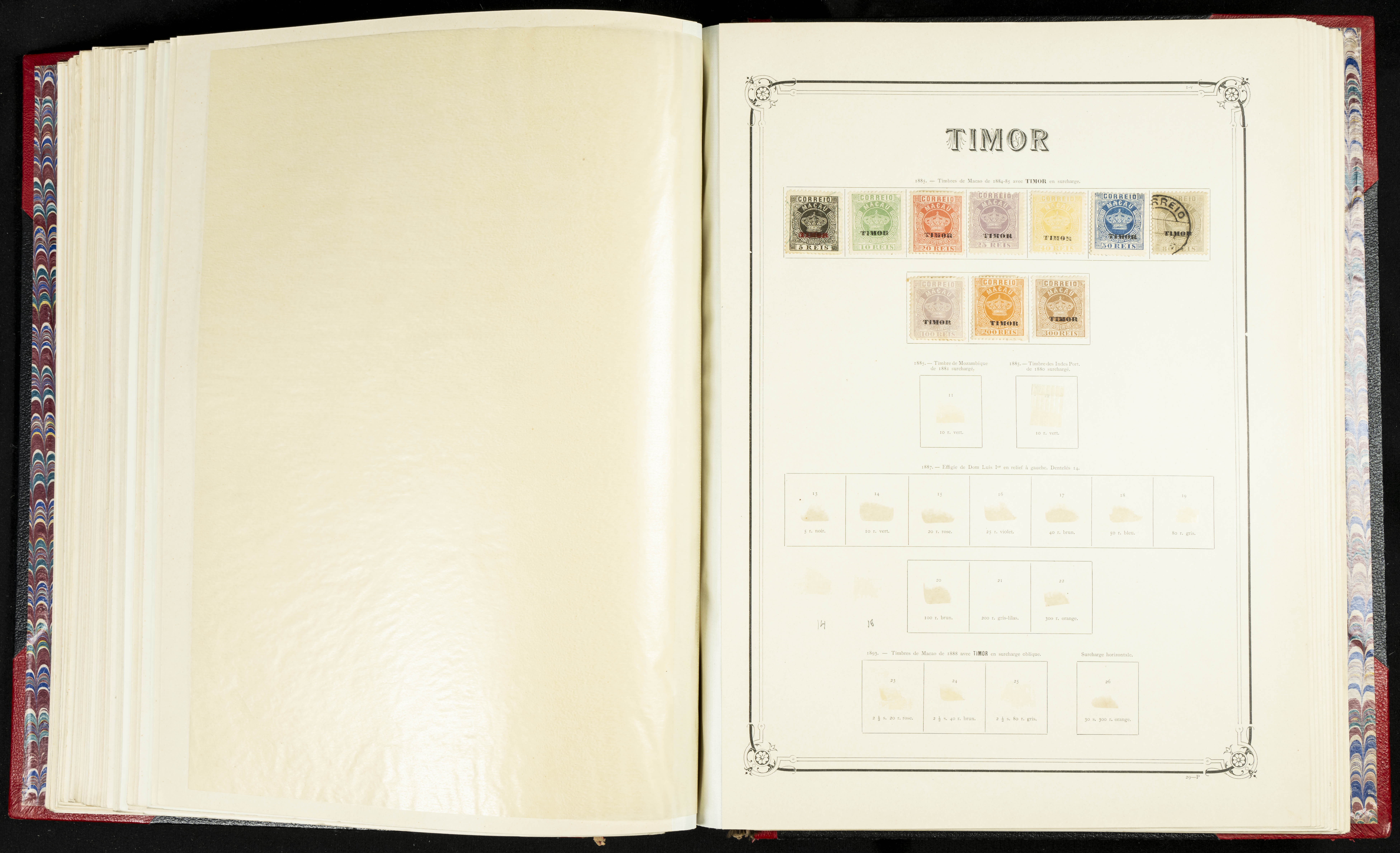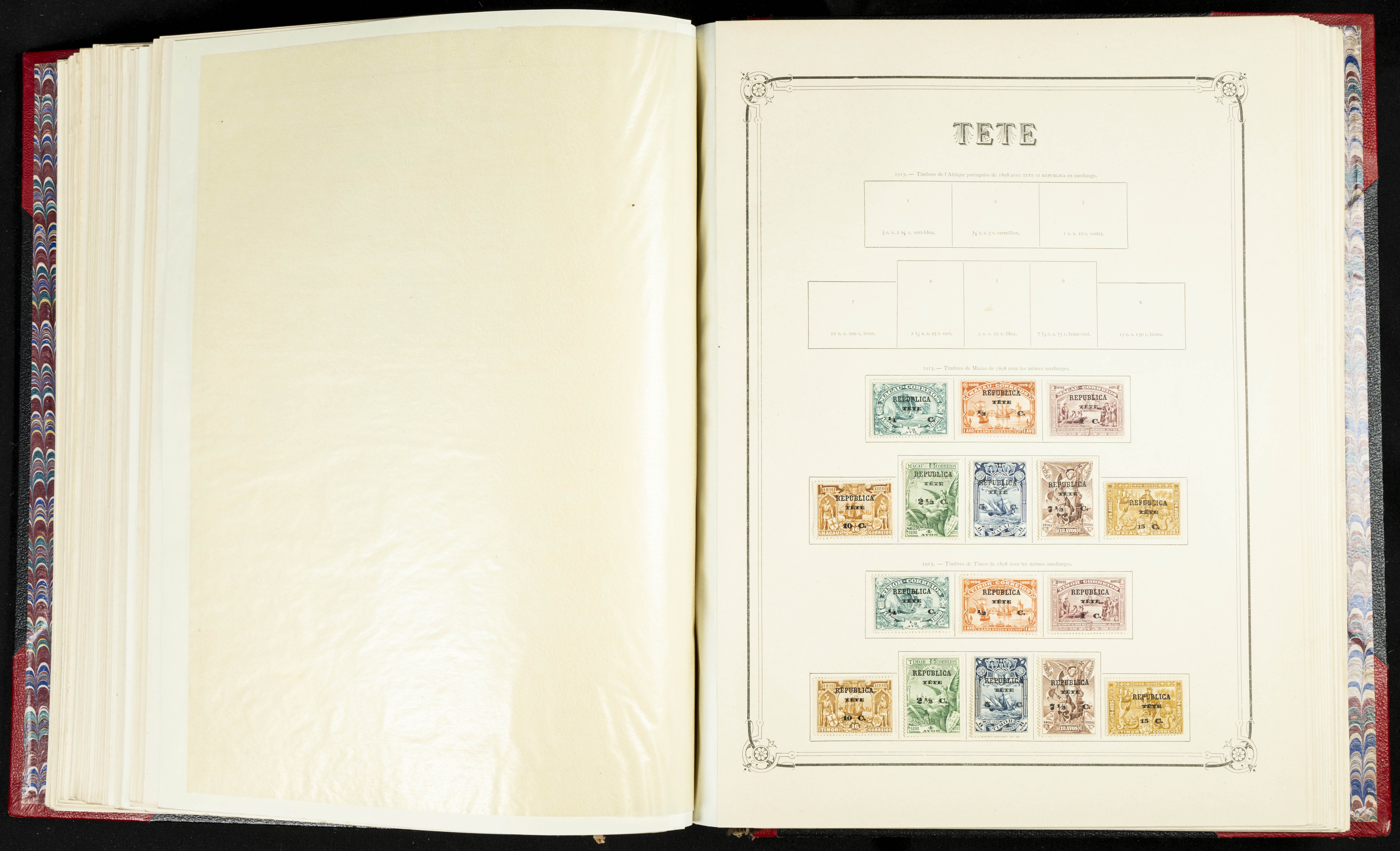 ★/(circa 1870). An interesting and very complete collection of Portuguese Colonies stamps (Mozambique Company, Nynea, Quelimane, São Tomé and Príncipe, Teté, and Zambezia), both mint and used, including numerous classic stamps, local overprints, and many key stamps, as well as a remainder of the Timor collection and a sheet with all the stamps of Ponta Delgada. Extremely high catalog value. Examiner is a must.