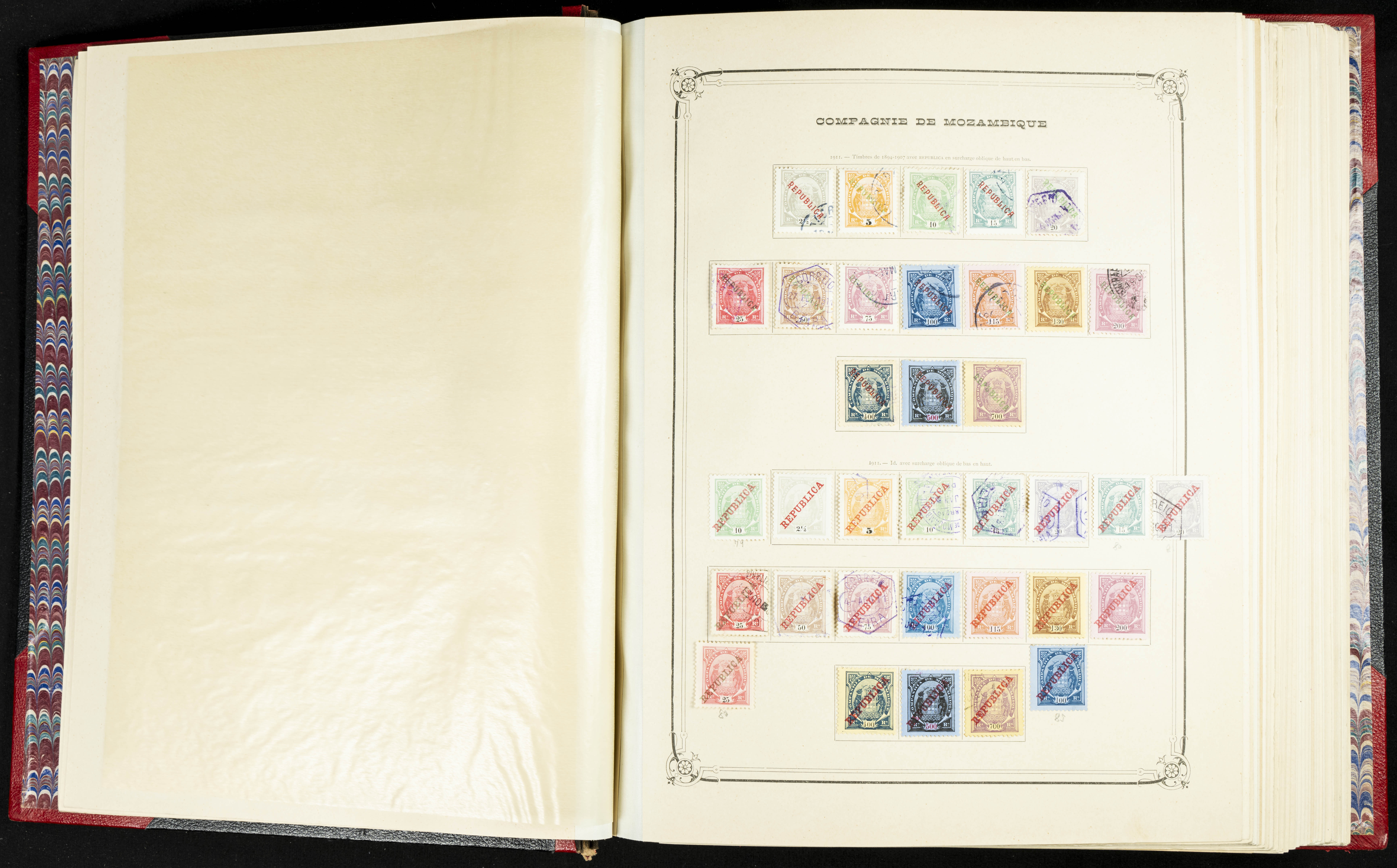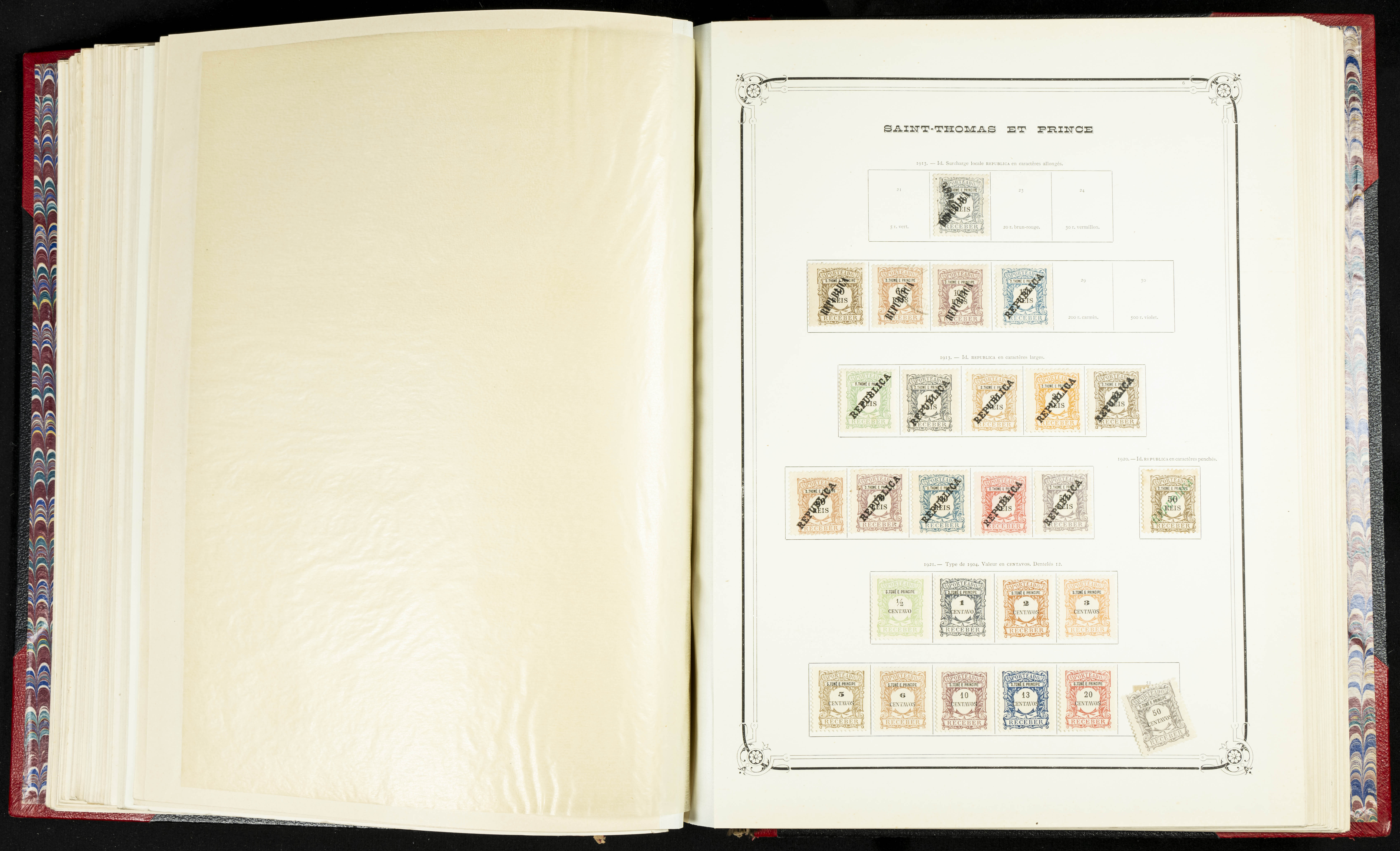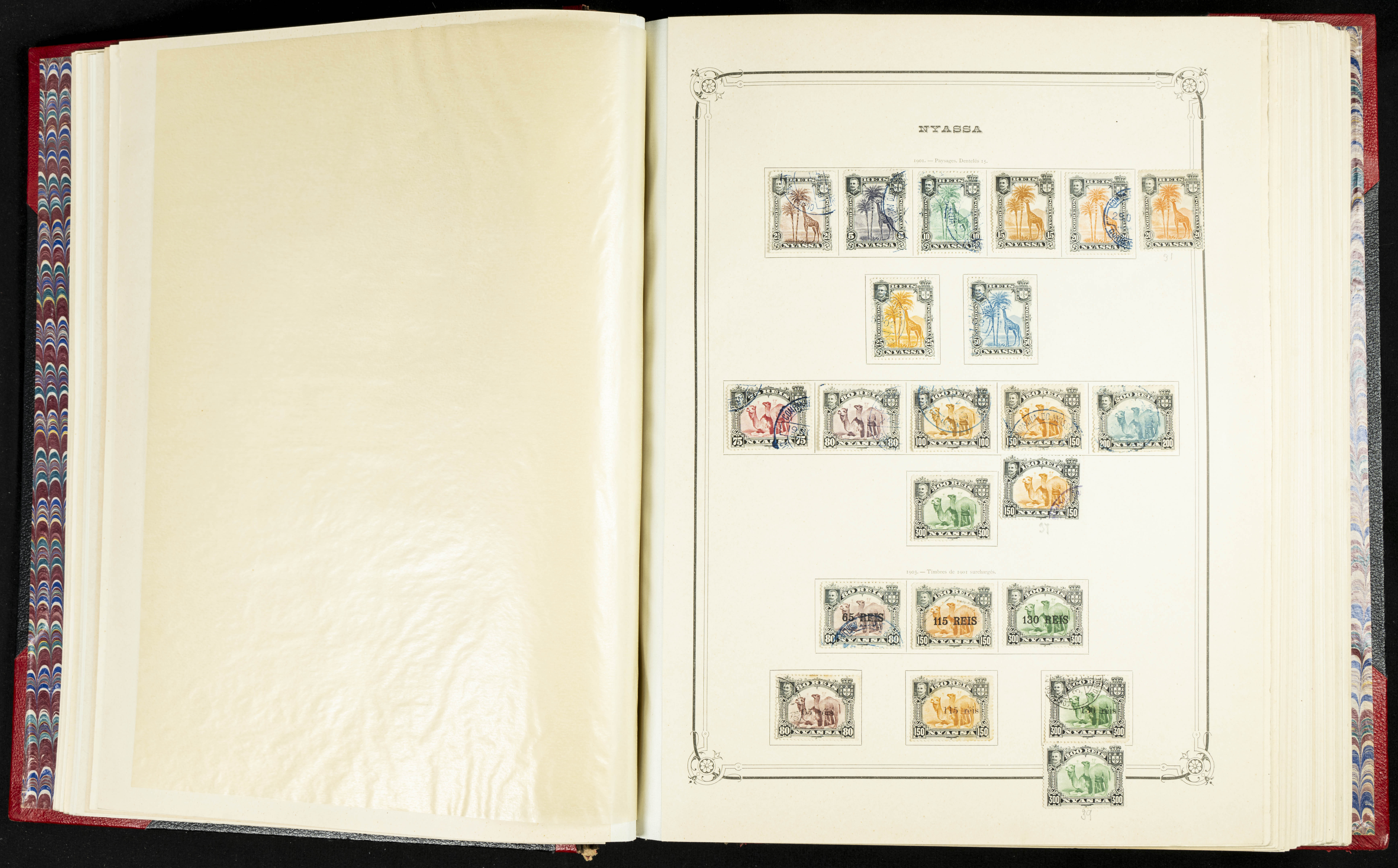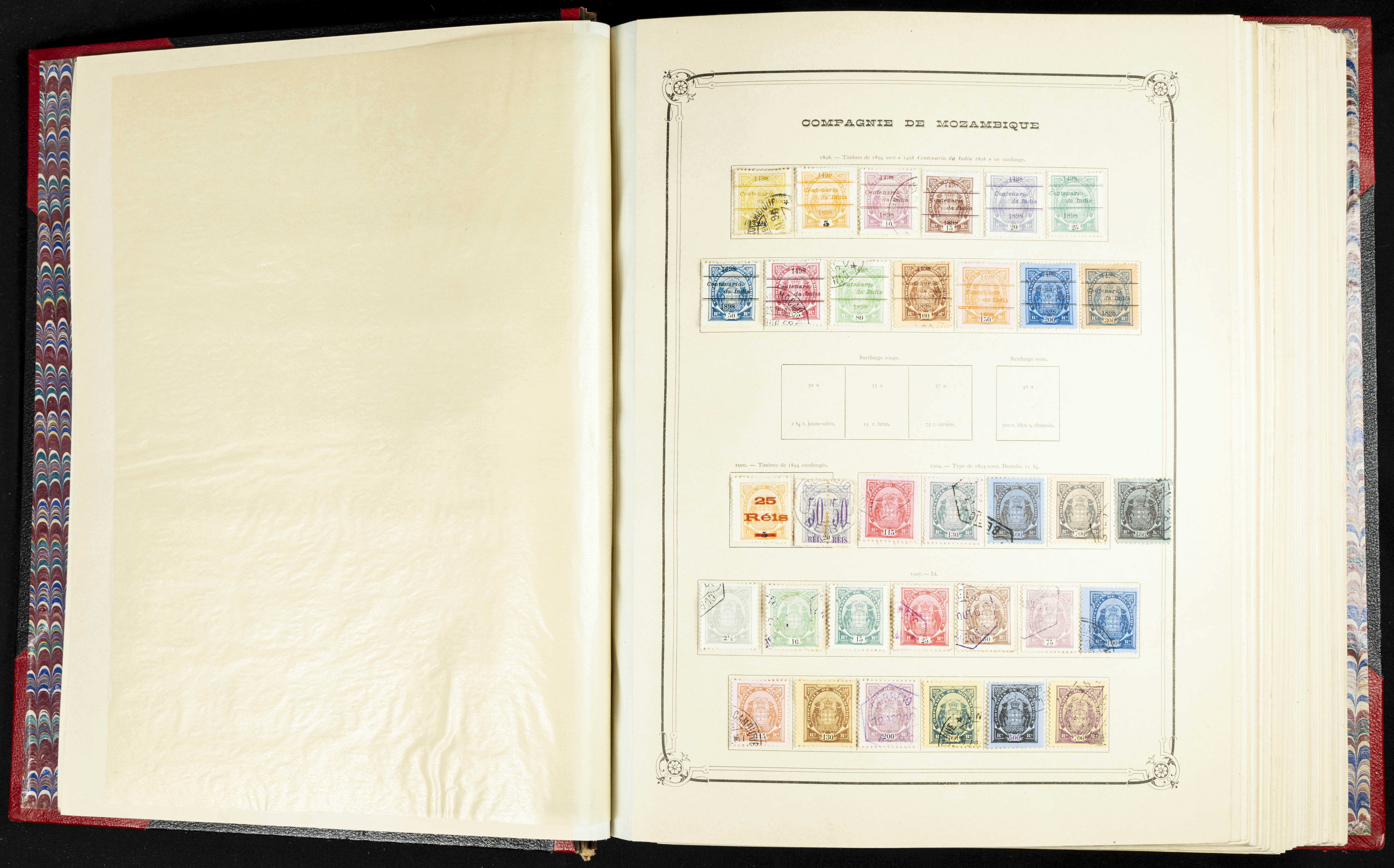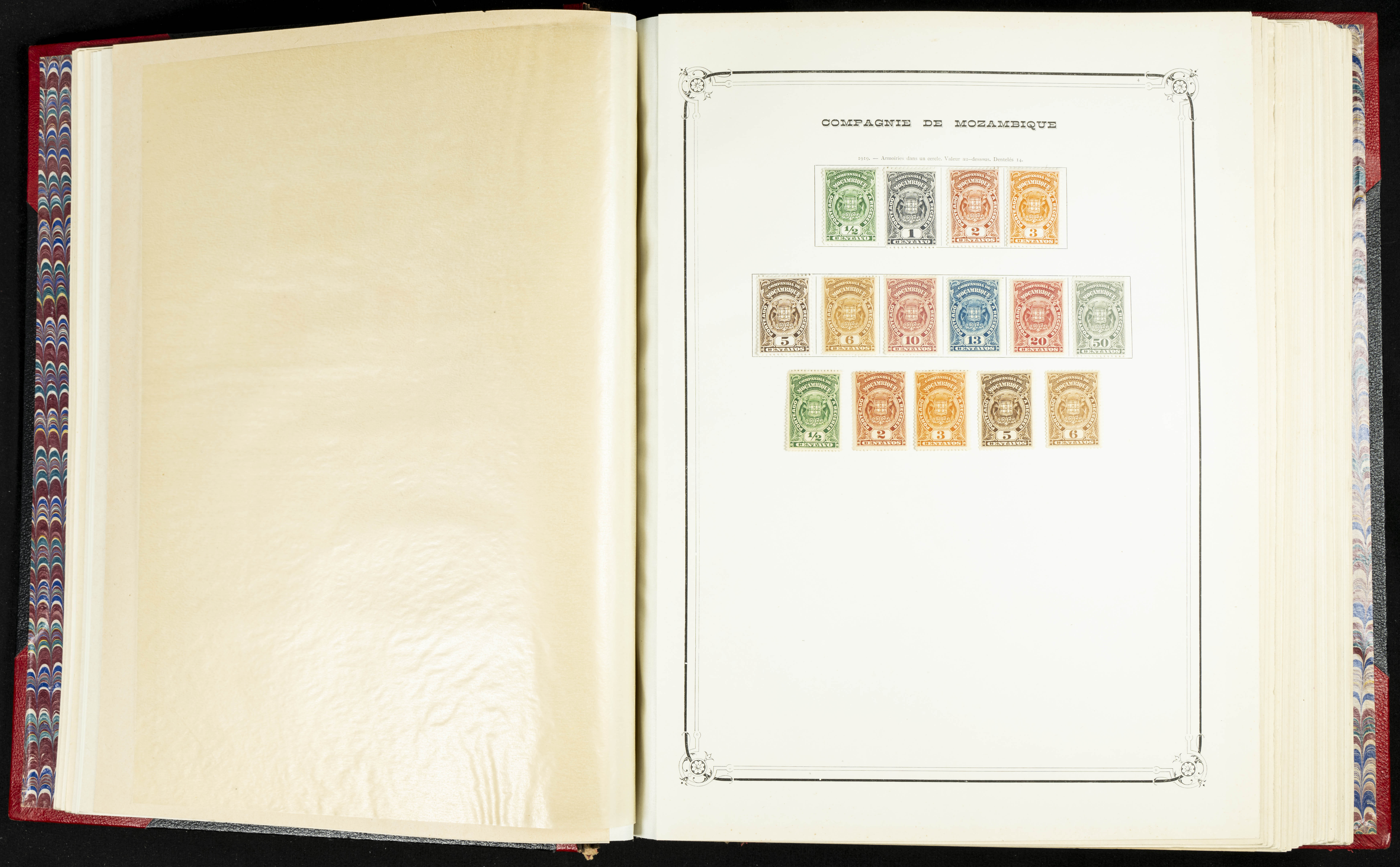 ★/(circa 1870). An interesting and very complete collection of Portuguese Colonies stamps (Mozambique Company, Nynea, Quelimane, São Tomé and Príncipe, Teté, and Zambezia), both mint and used, including numerous classic stamps, local overprints, and many key stamps, as well as a remainder of the Timor collection and a sheet with all the stamps of Ponta Delgada. Extremely high catalog value. Examiner is a must.