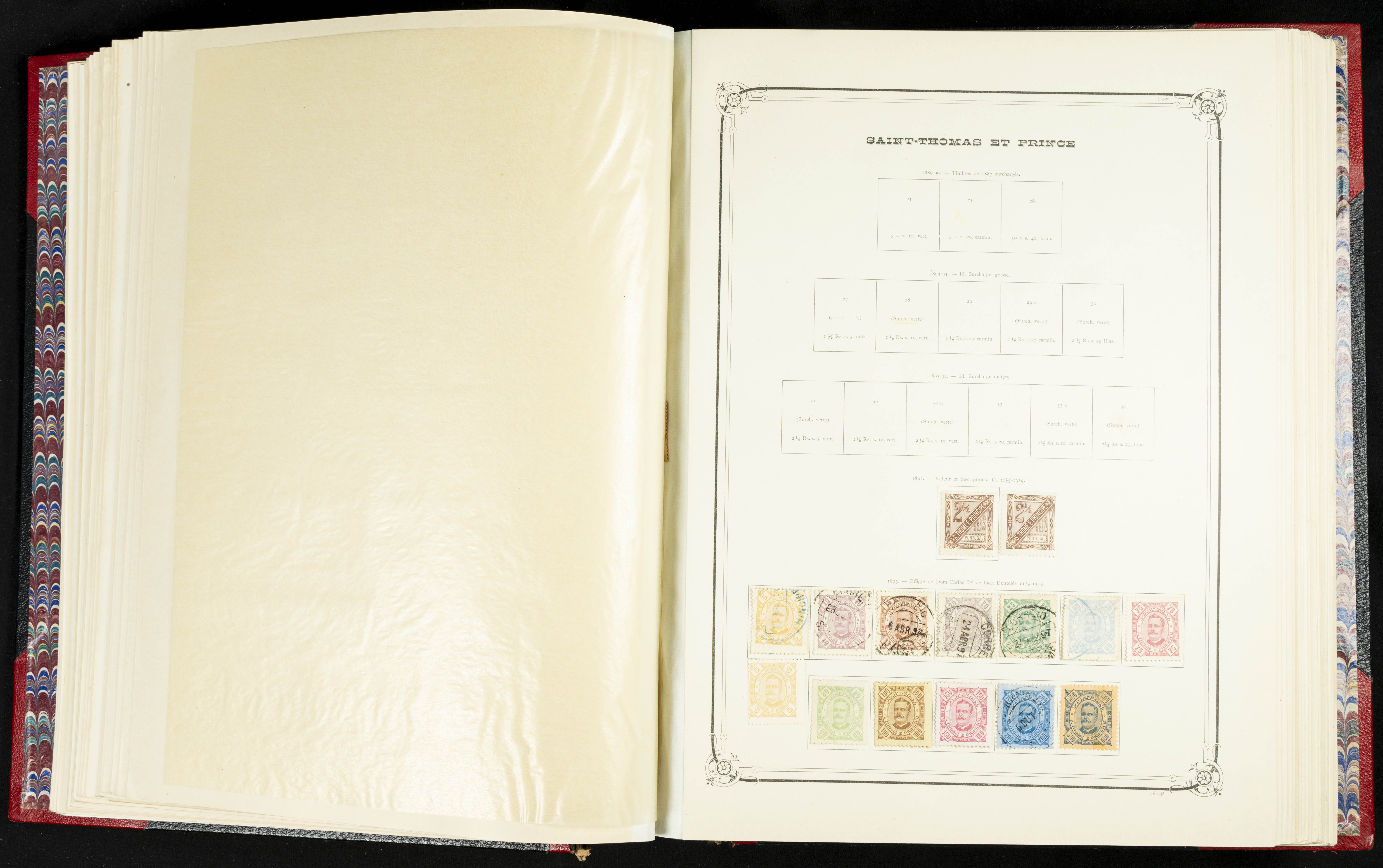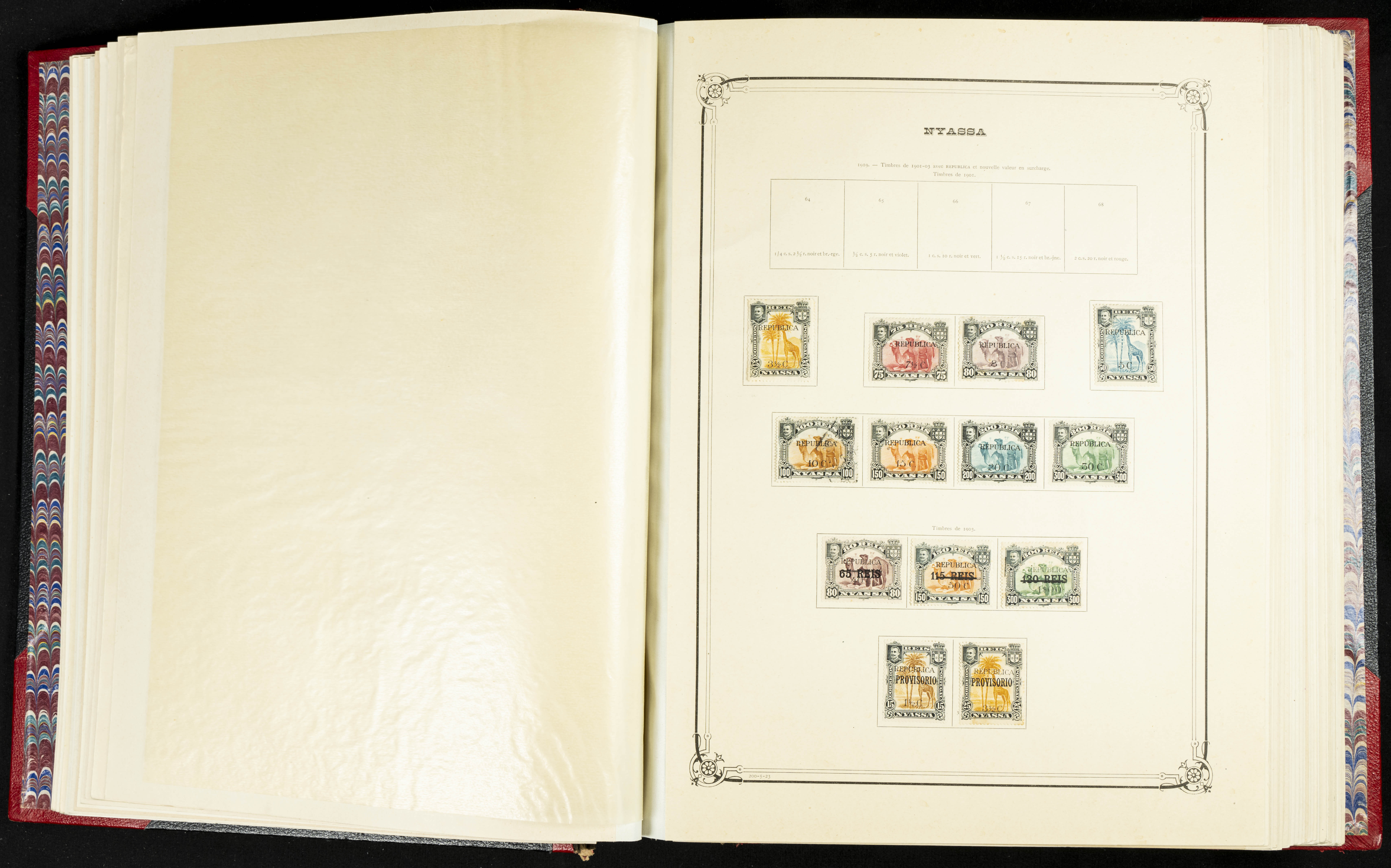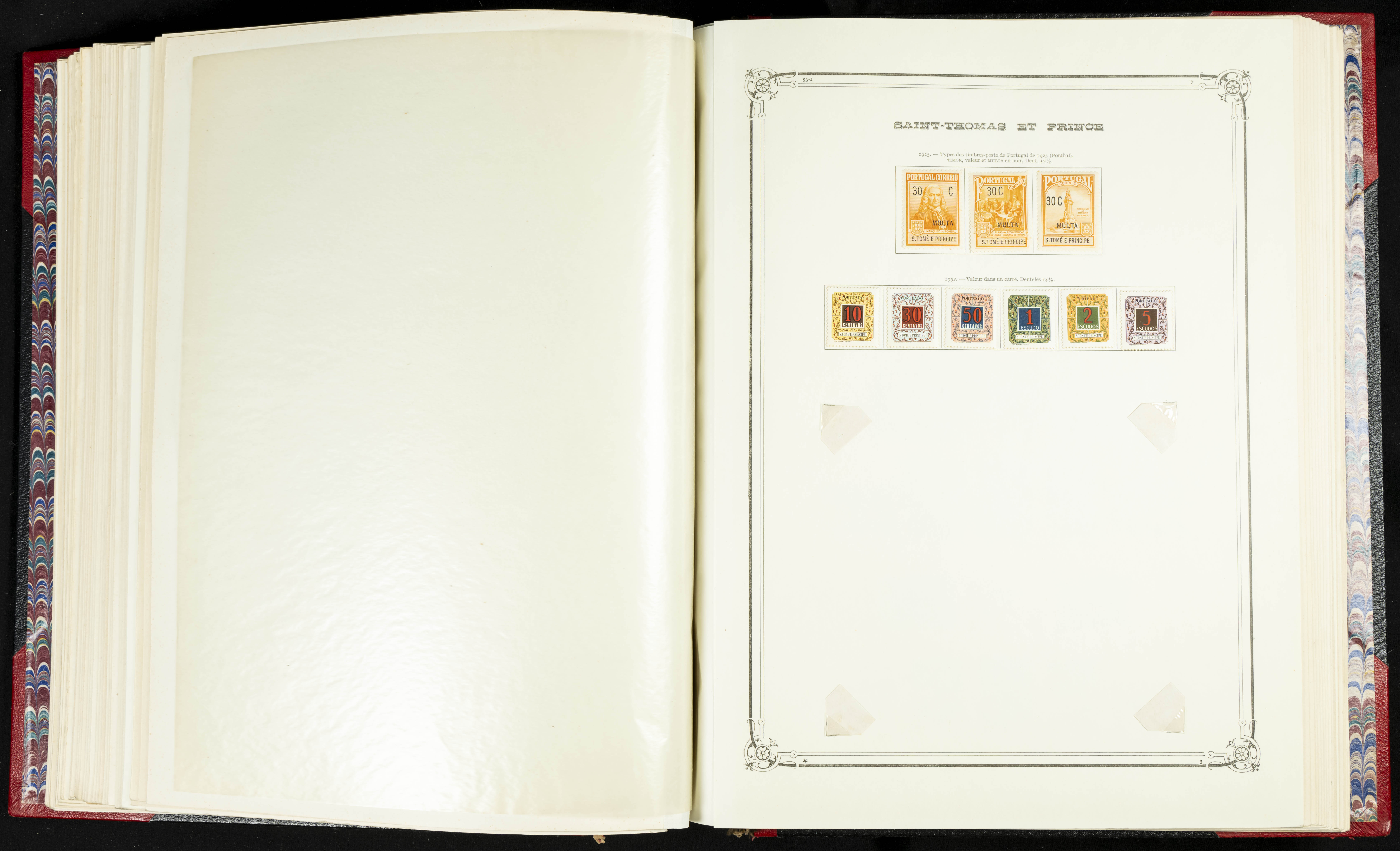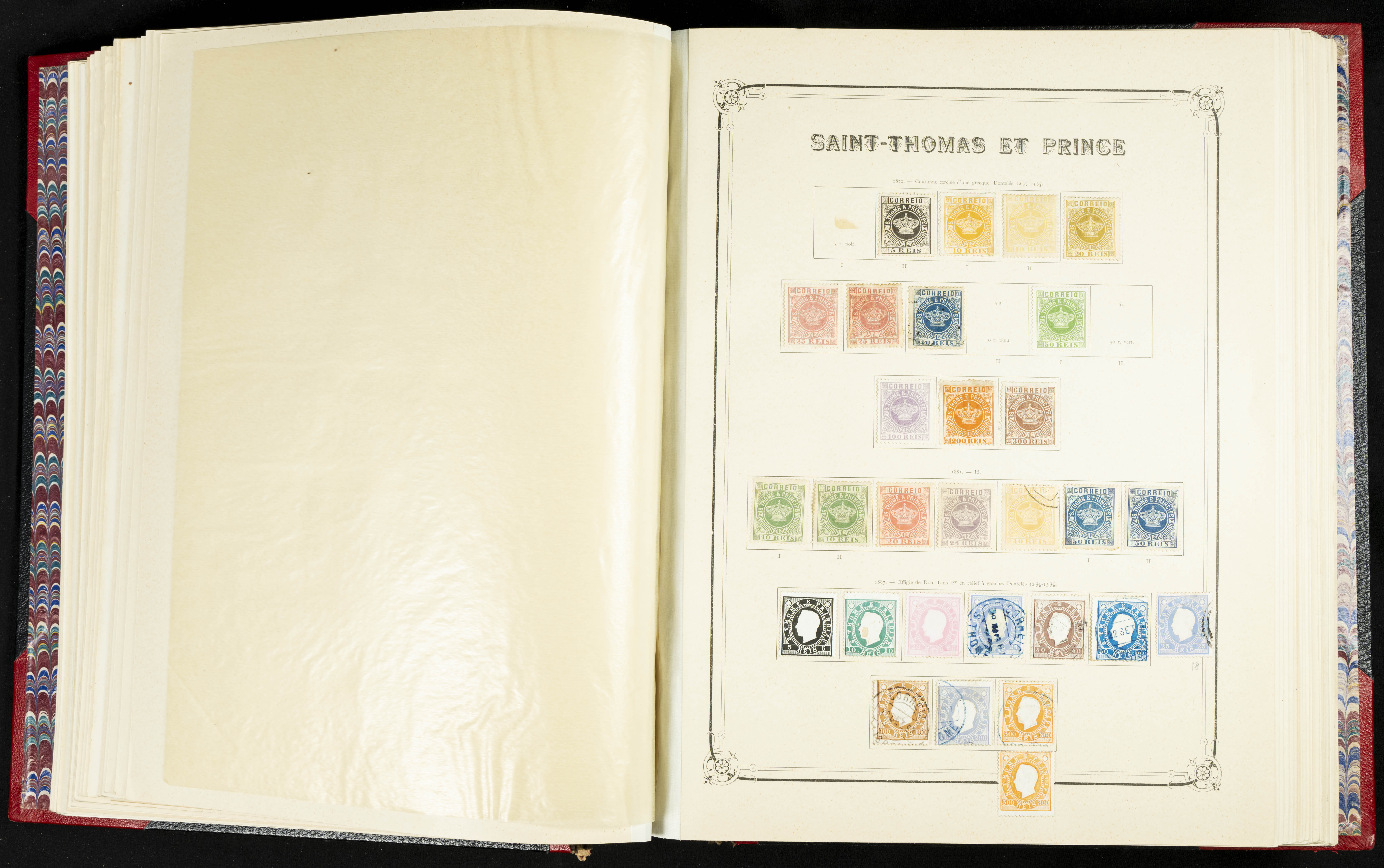 ★/(circa 1870). An interesting and very complete collection of Portuguese Colonies stamps (Mozambique Company, Nynea, Quelimane, São Tomé and Príncipe, Teté, and Zambezia), both mint and used, including numerous classic stamps, local overprints, and many key stamps, as well as a remainder of the Timor collection and a sheet with all the stamps of Ponta Delgada. Extremely high catalog value. Examiner is a must.