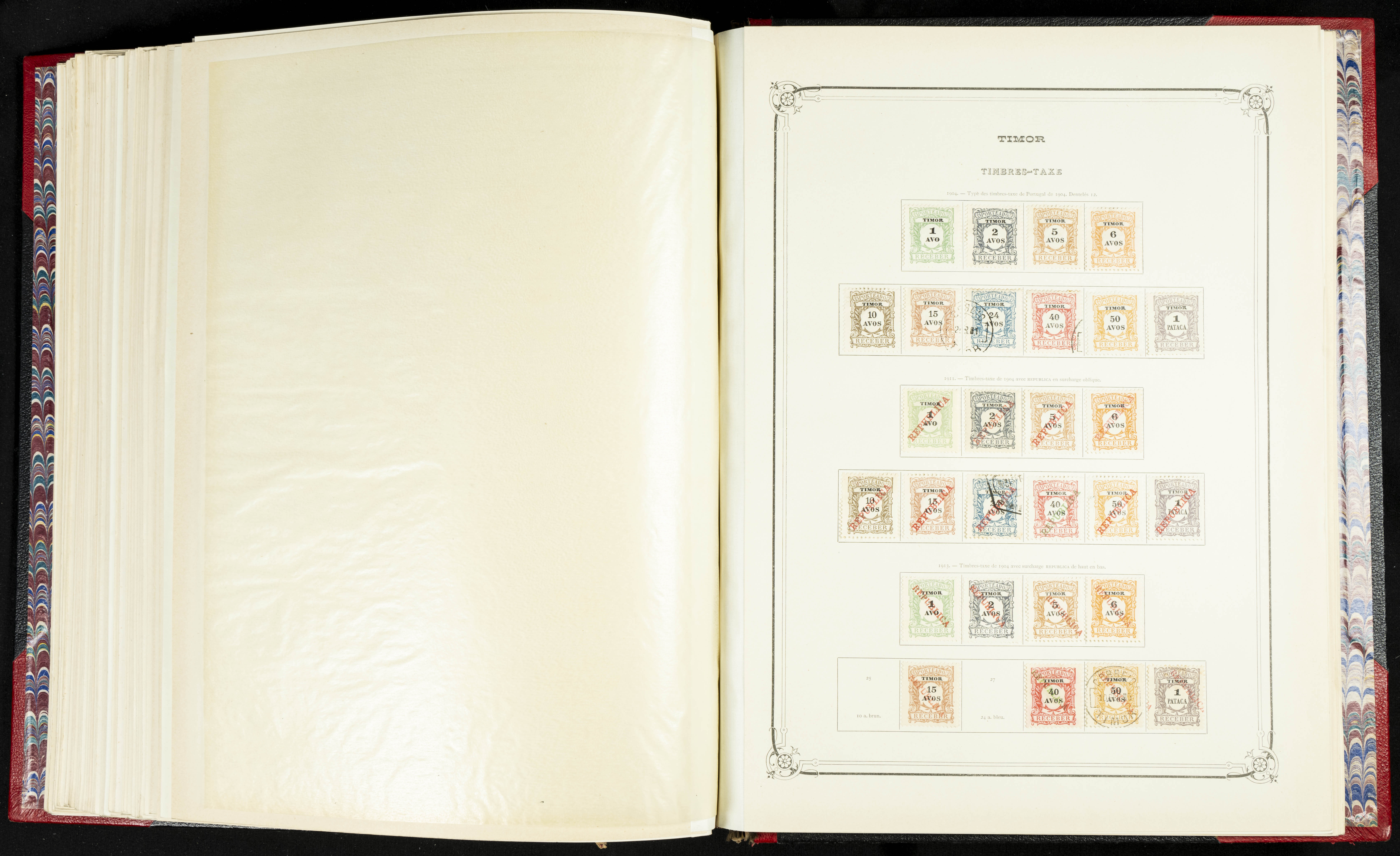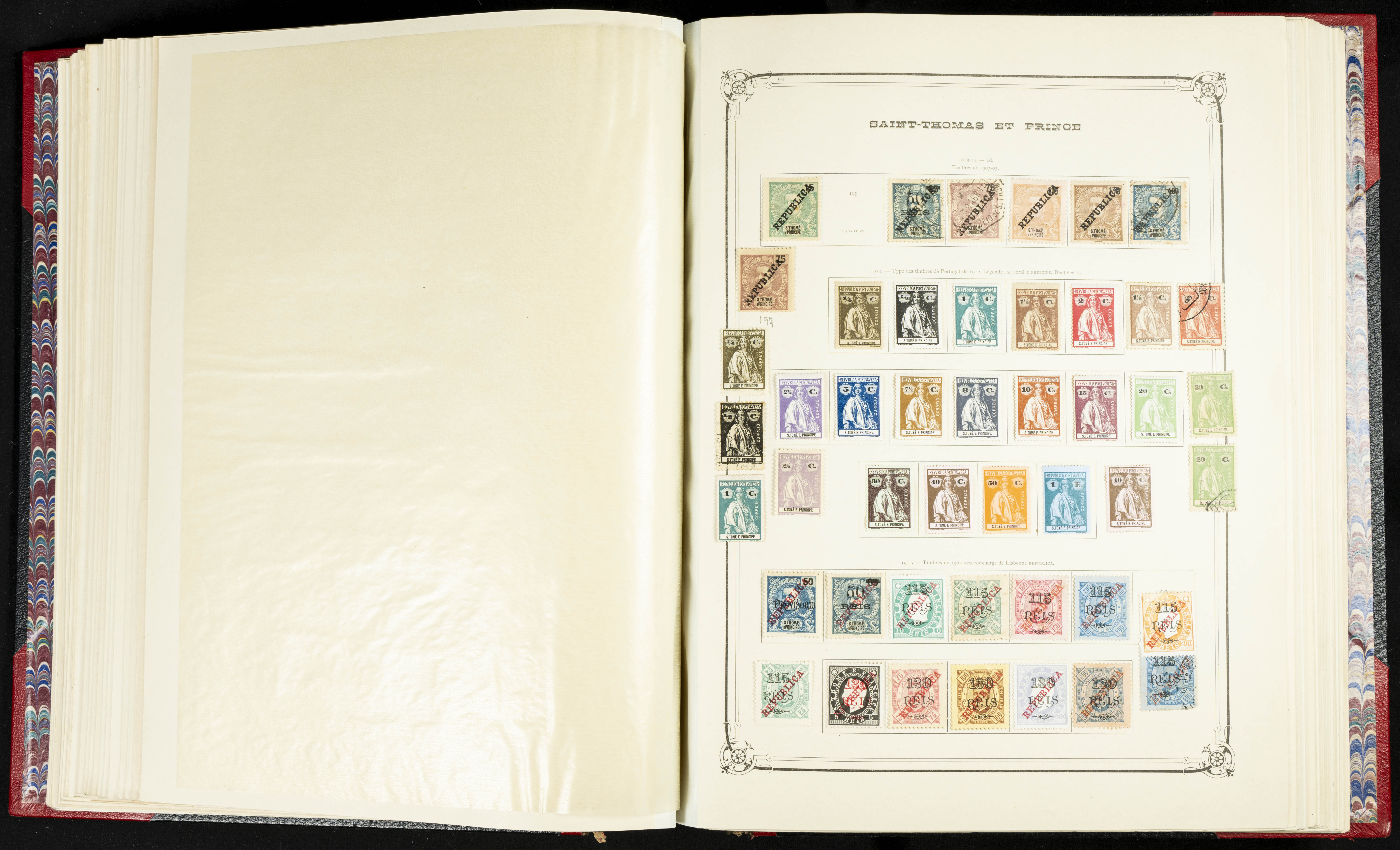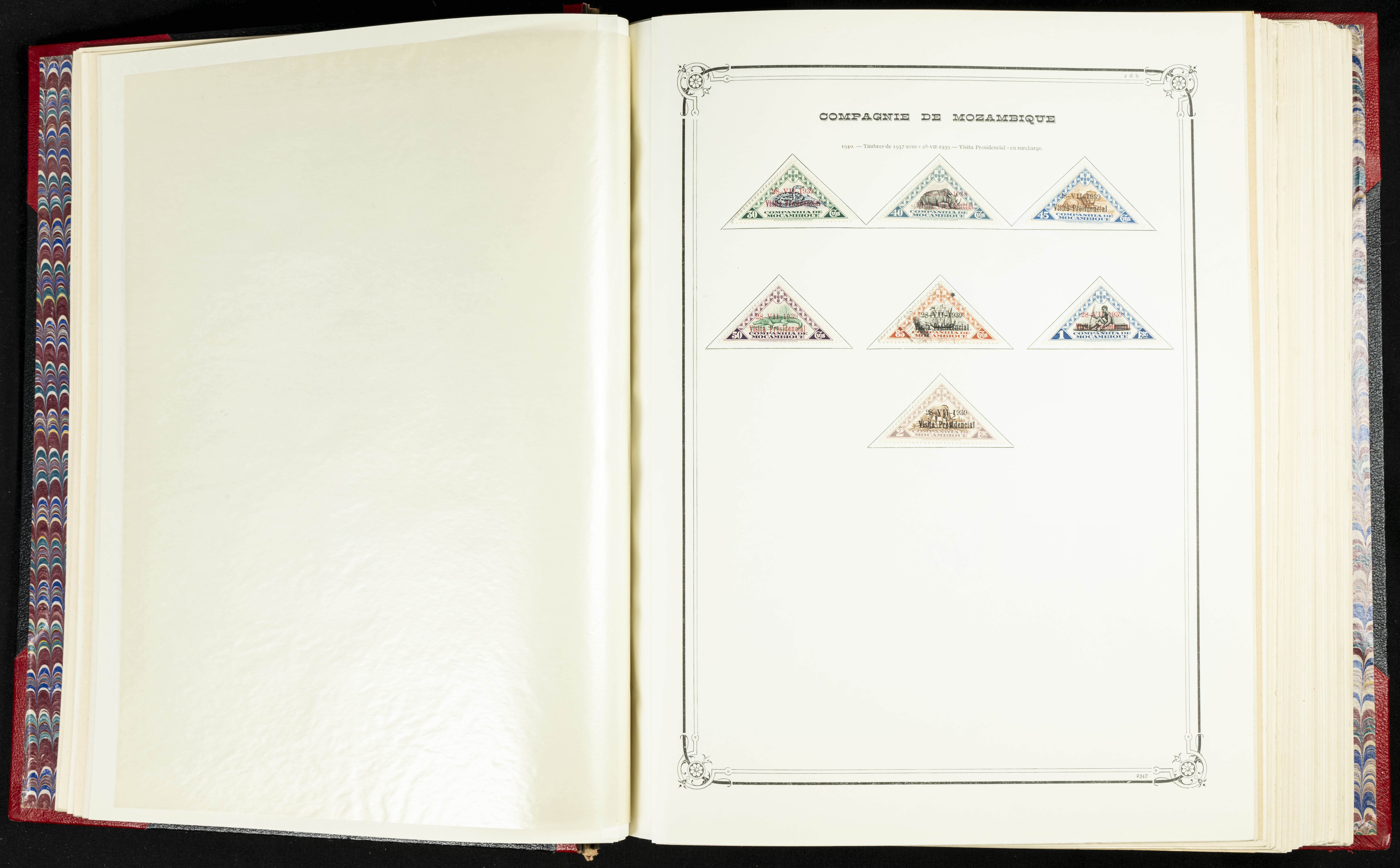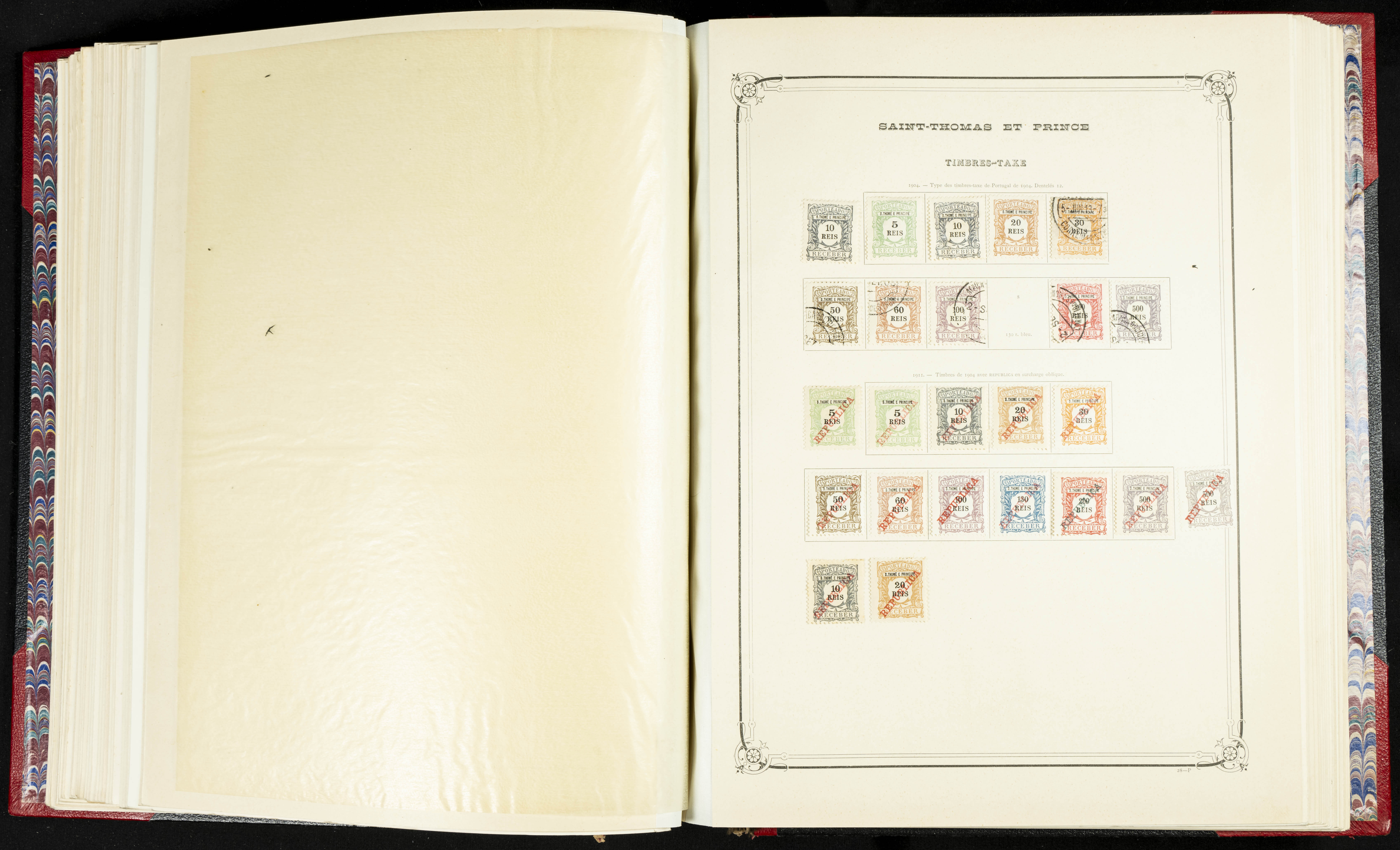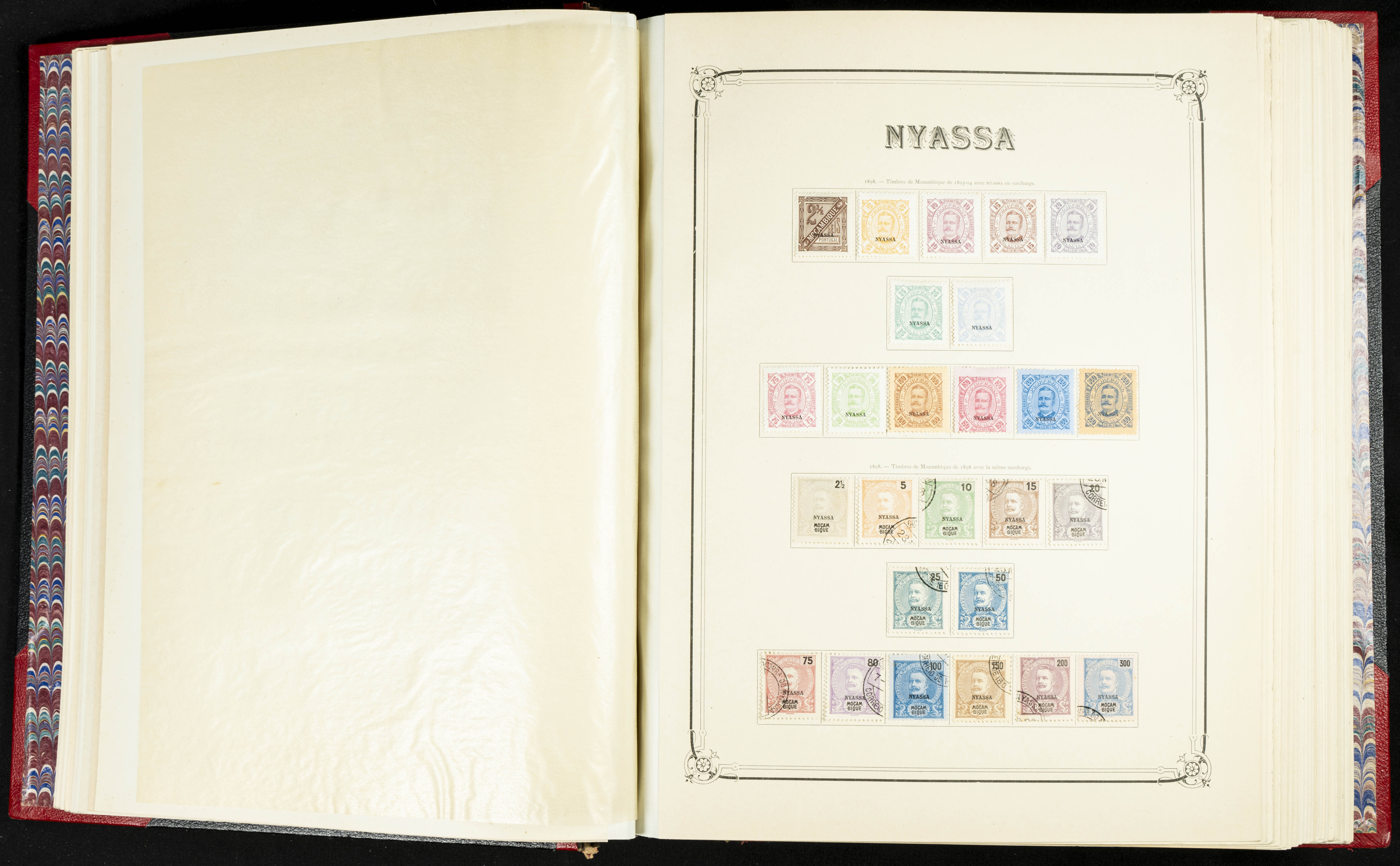 ★/(circa 1870). An interesting and very complete collection of Portuguese Colonies stamps (Mozambique Company, Nynea, Quelimane, São Tomé and Príncipe, Teté, and Zambezia), both mint and used, including numerous classic stamps, local overprints, and many key stamps, as well as a remainder of the Timor collection and a sheet with all the stamps of Ponta Delgada. Extremely high catalog value. Examiner is a must.
