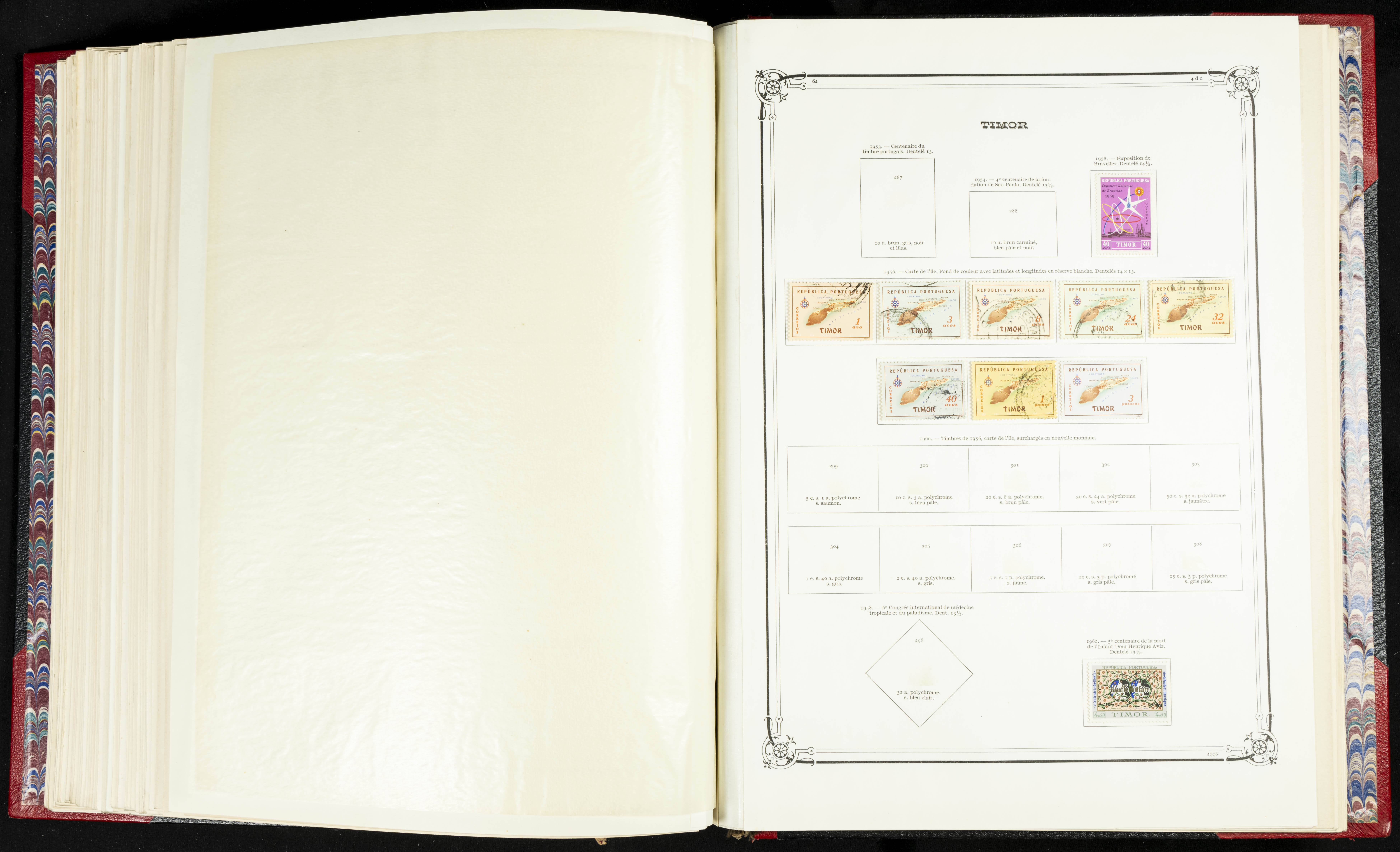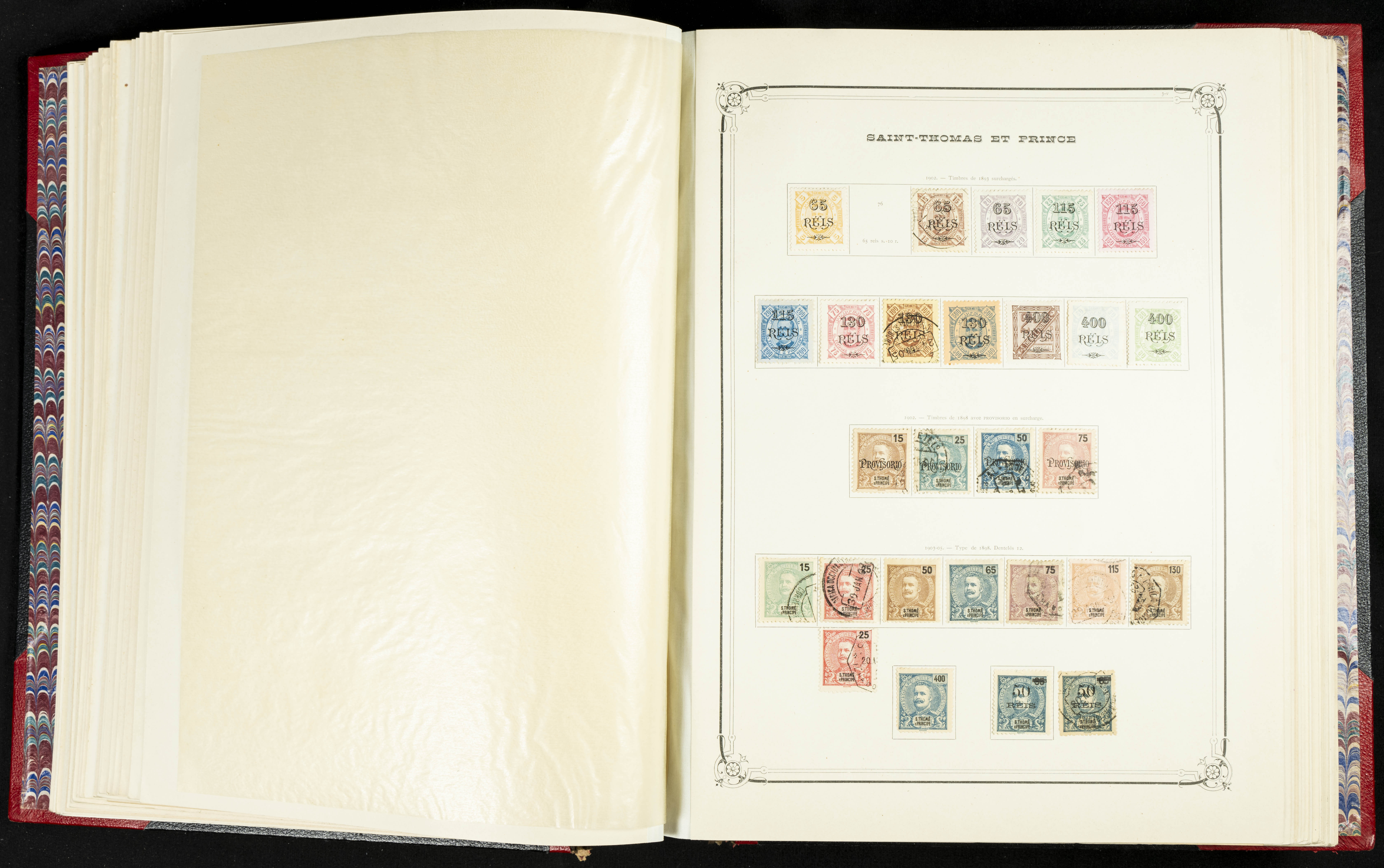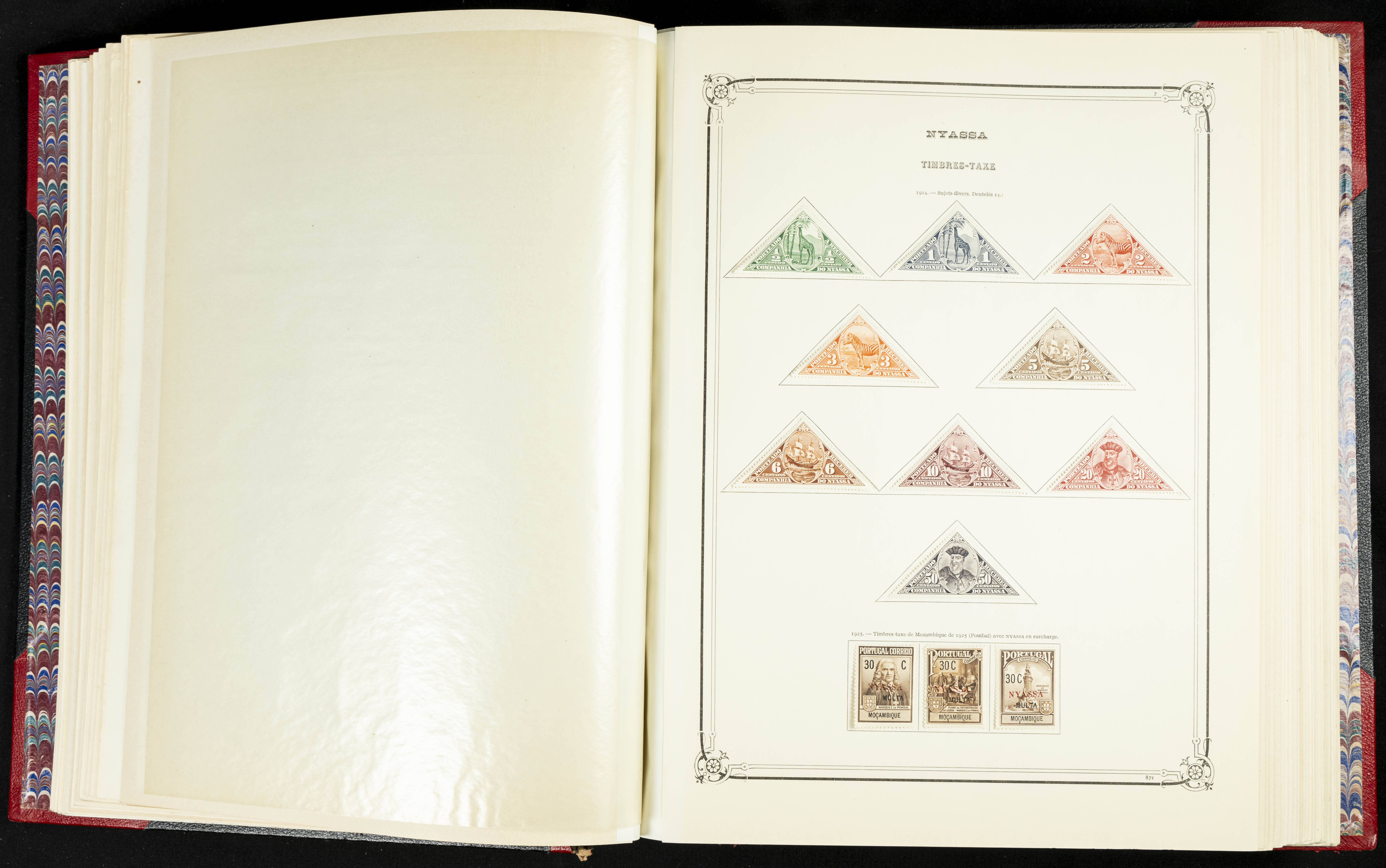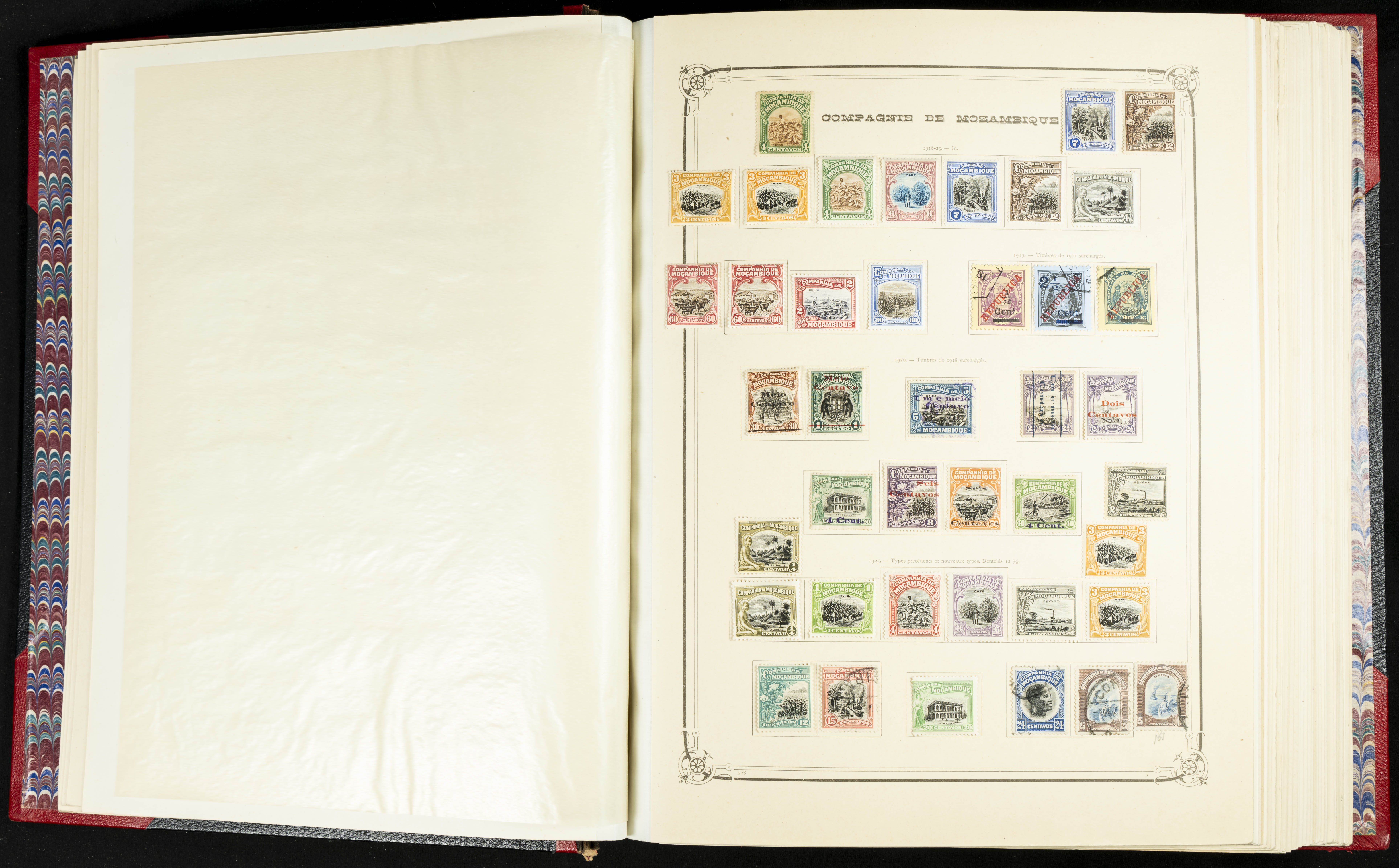 ★/(circa 1870). An interesting and very complete collection of Portuguese Colonies stamps (Mozambique Company, Nynea, Quelimane, São Tomé and Príncipe, Teté, and Zambezia), both mint and used, including numerous classic stamps, local overprints, and many key stamps, as well as a remainder of the Timor collection and a sheet with all the stamps of Ponta Delgada. Extremely high catalog value. Examiner is a must.