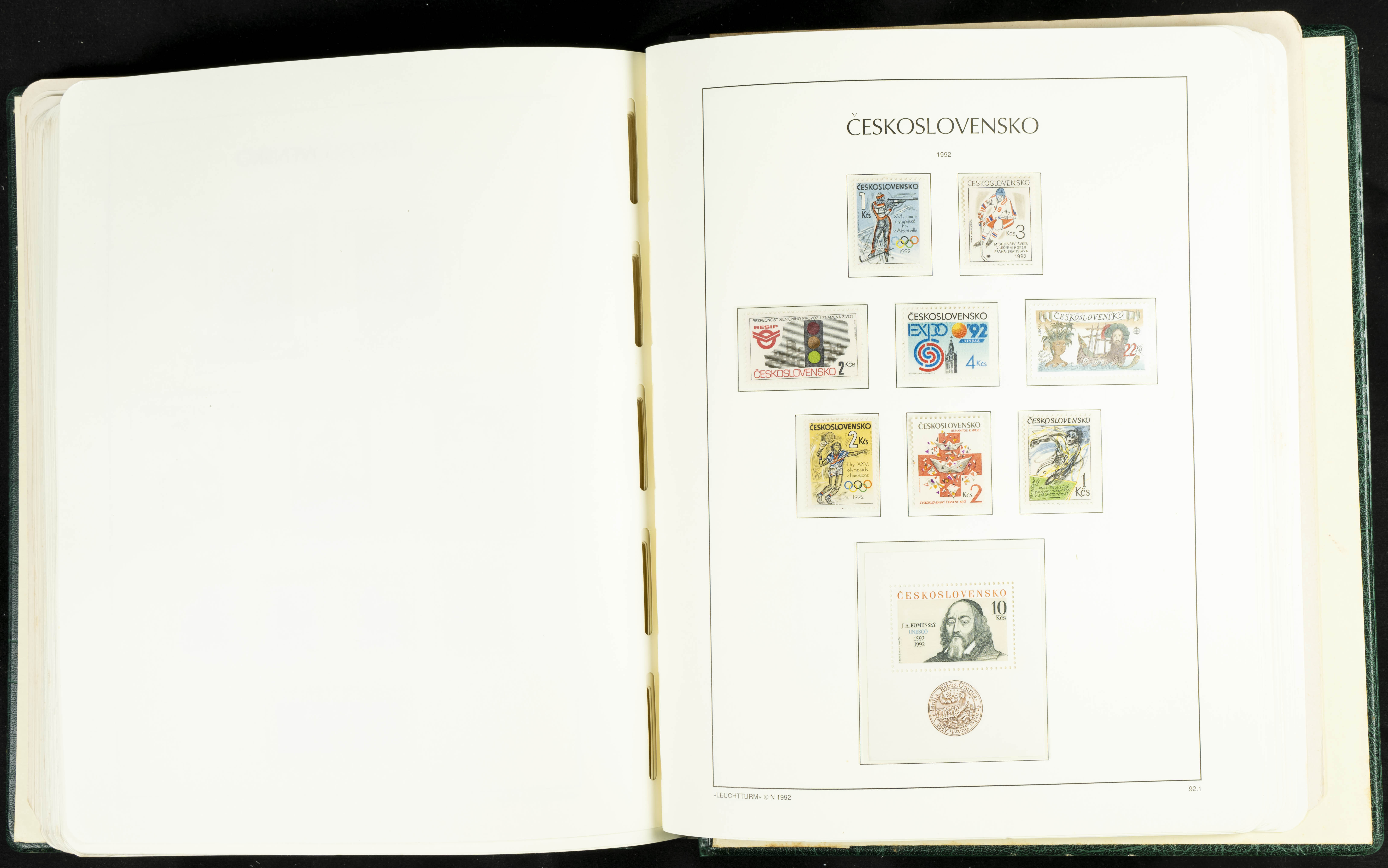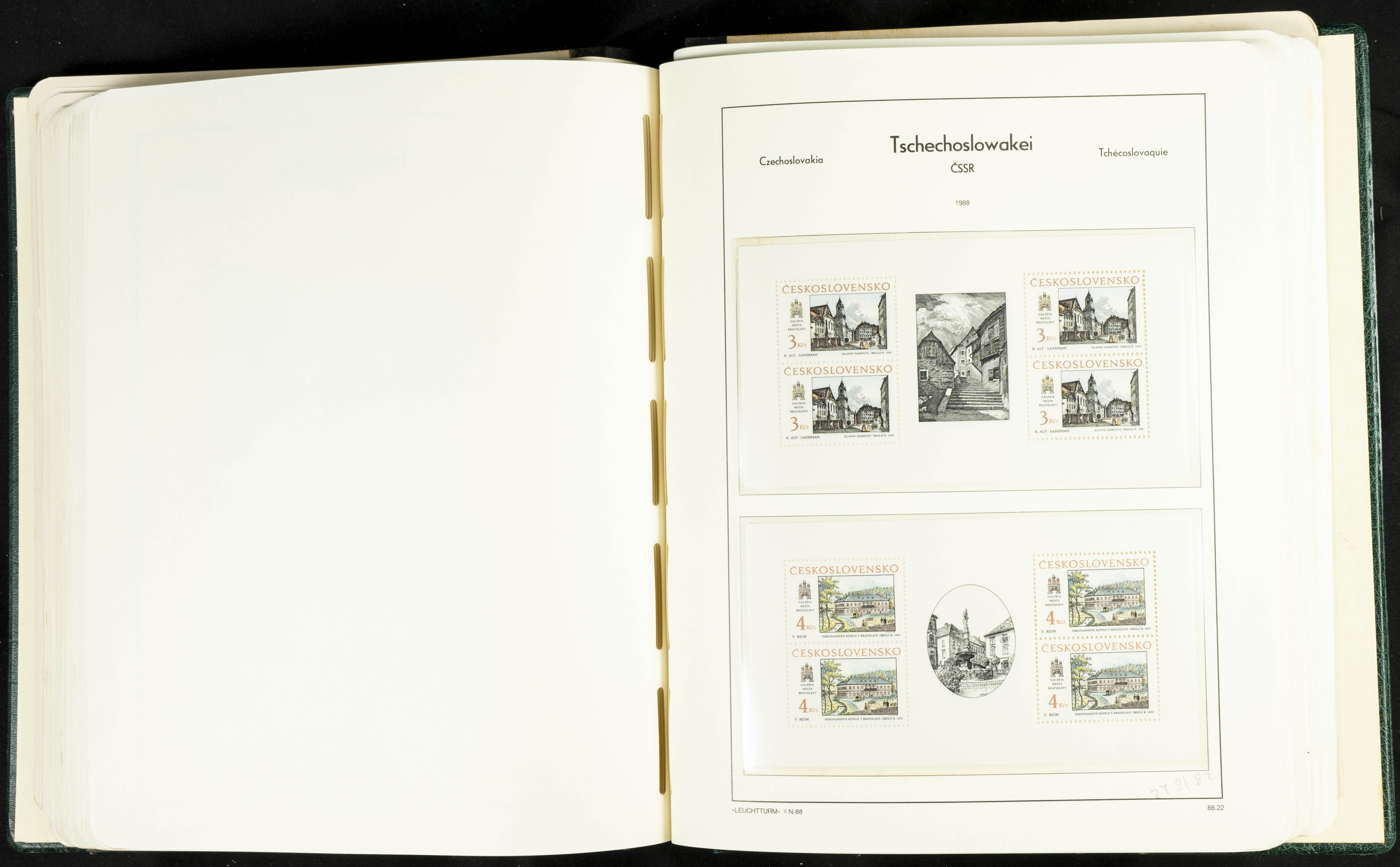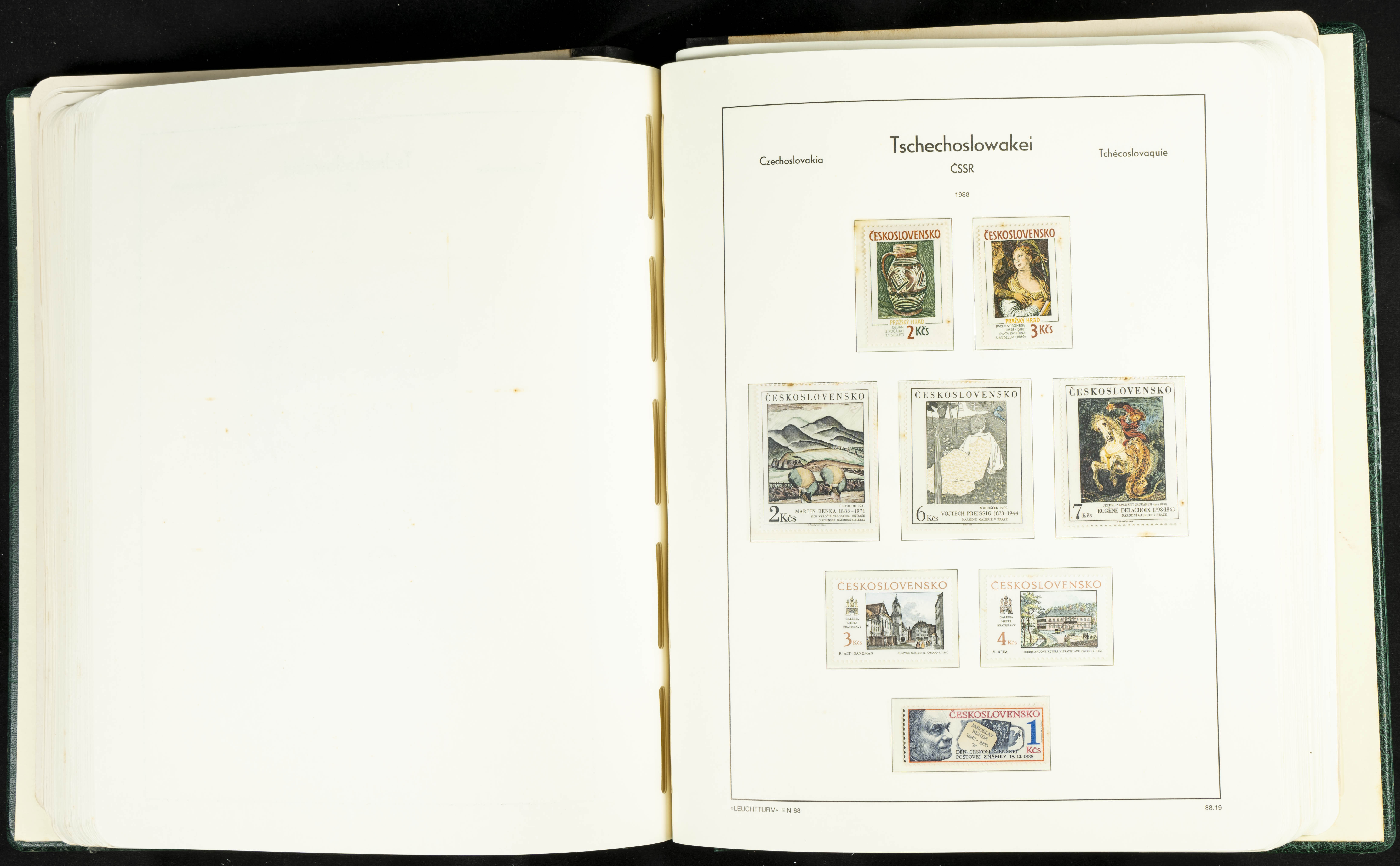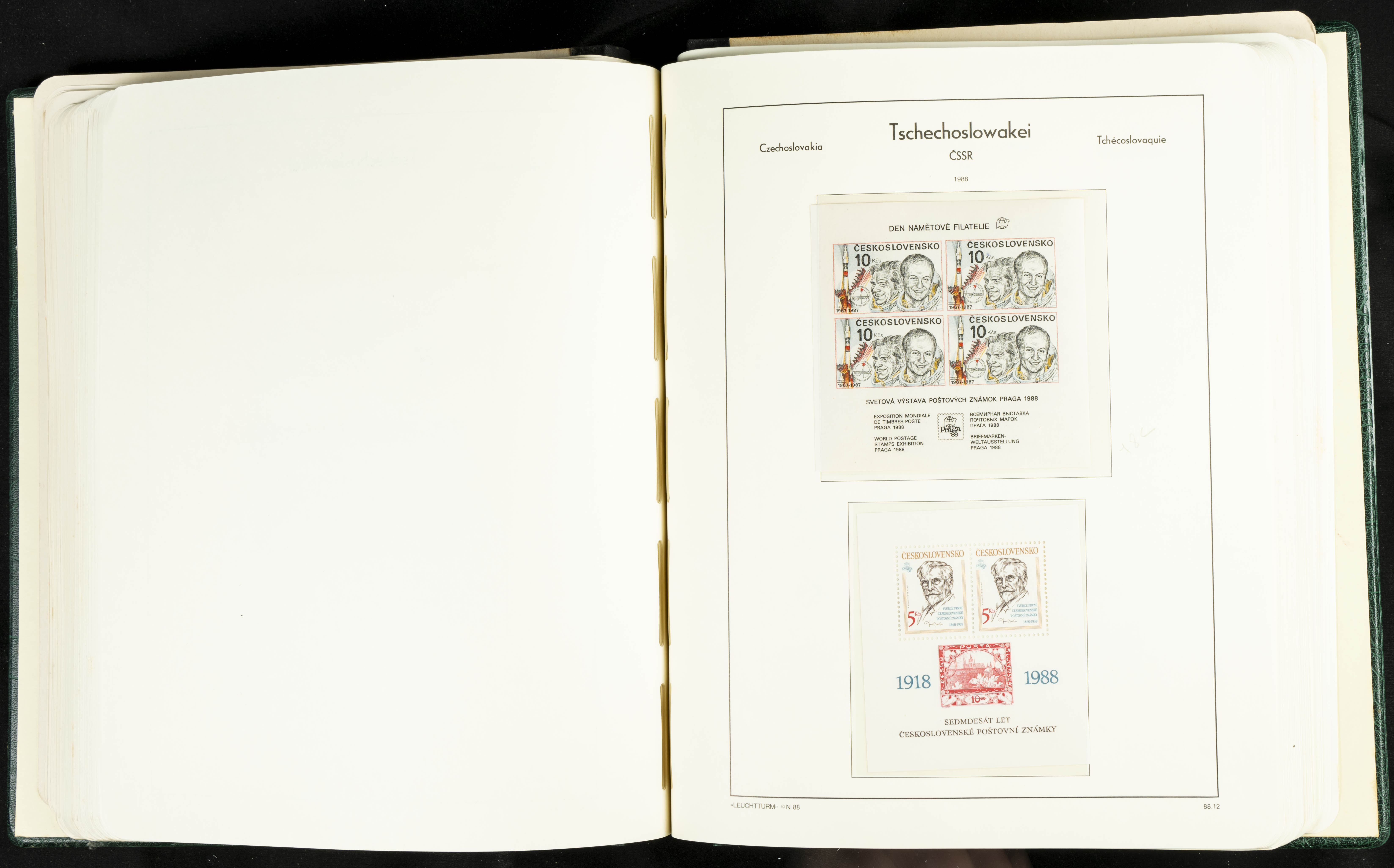 ★★/(1918ca). Interesting collection of Czechoslovakian stamps from 1918 to 1992. The older part, up to 1939, is mostly used, while the rest is practically complete, without hinges, including souvenir sheets (minor age spots mainly affecting the album pages). VERY HIGH CATALOG VALUE. TO BE EXAMINED.
