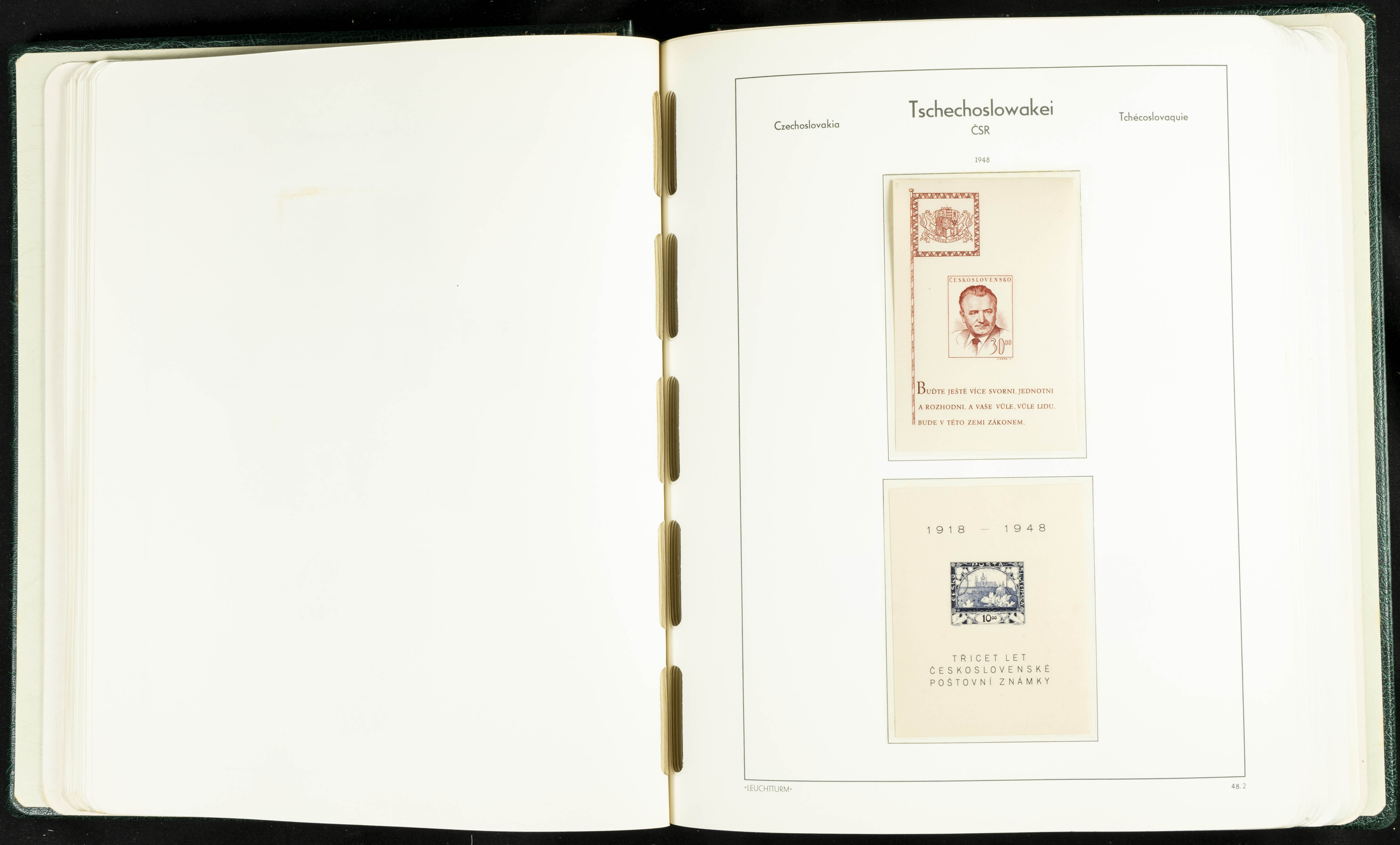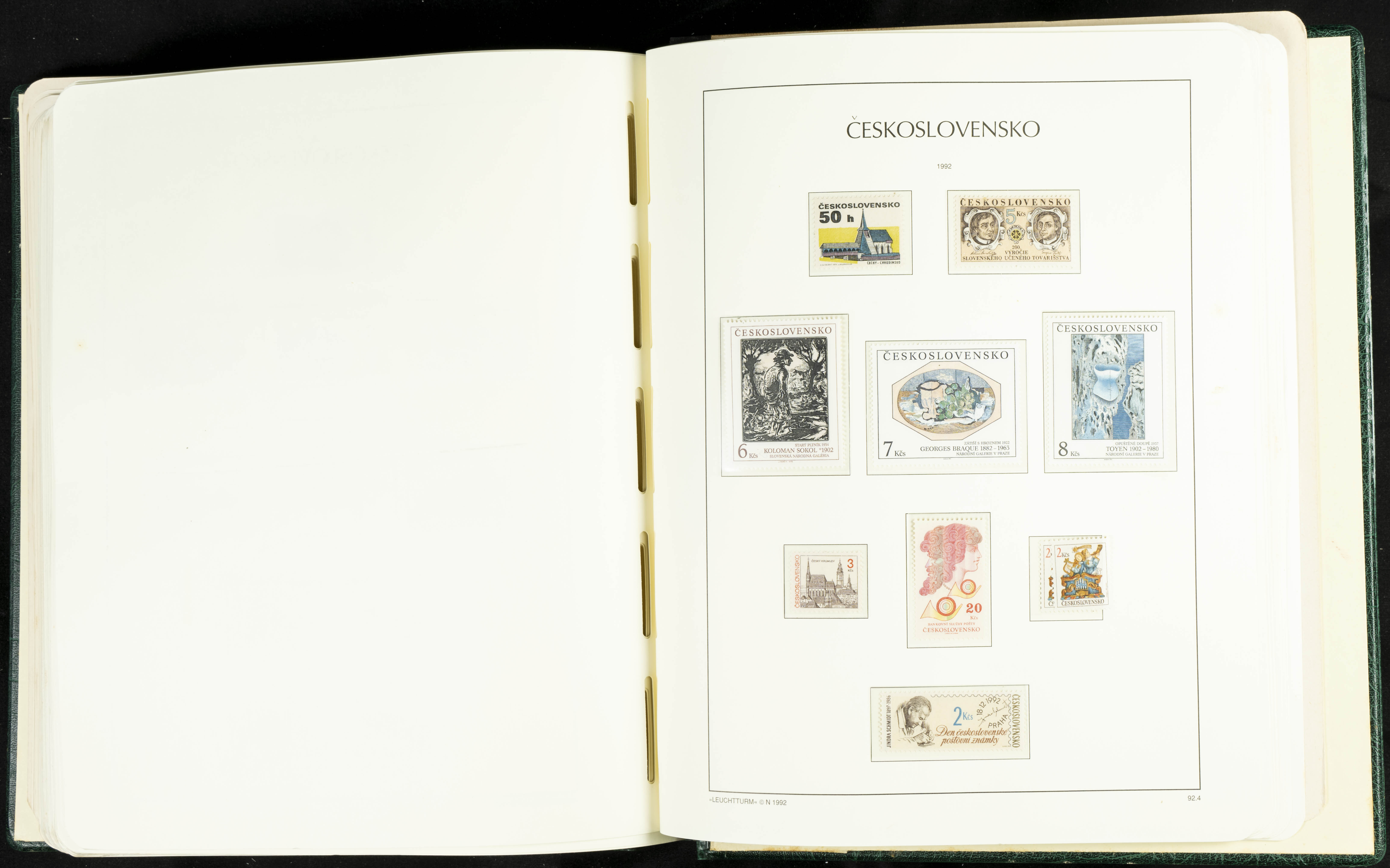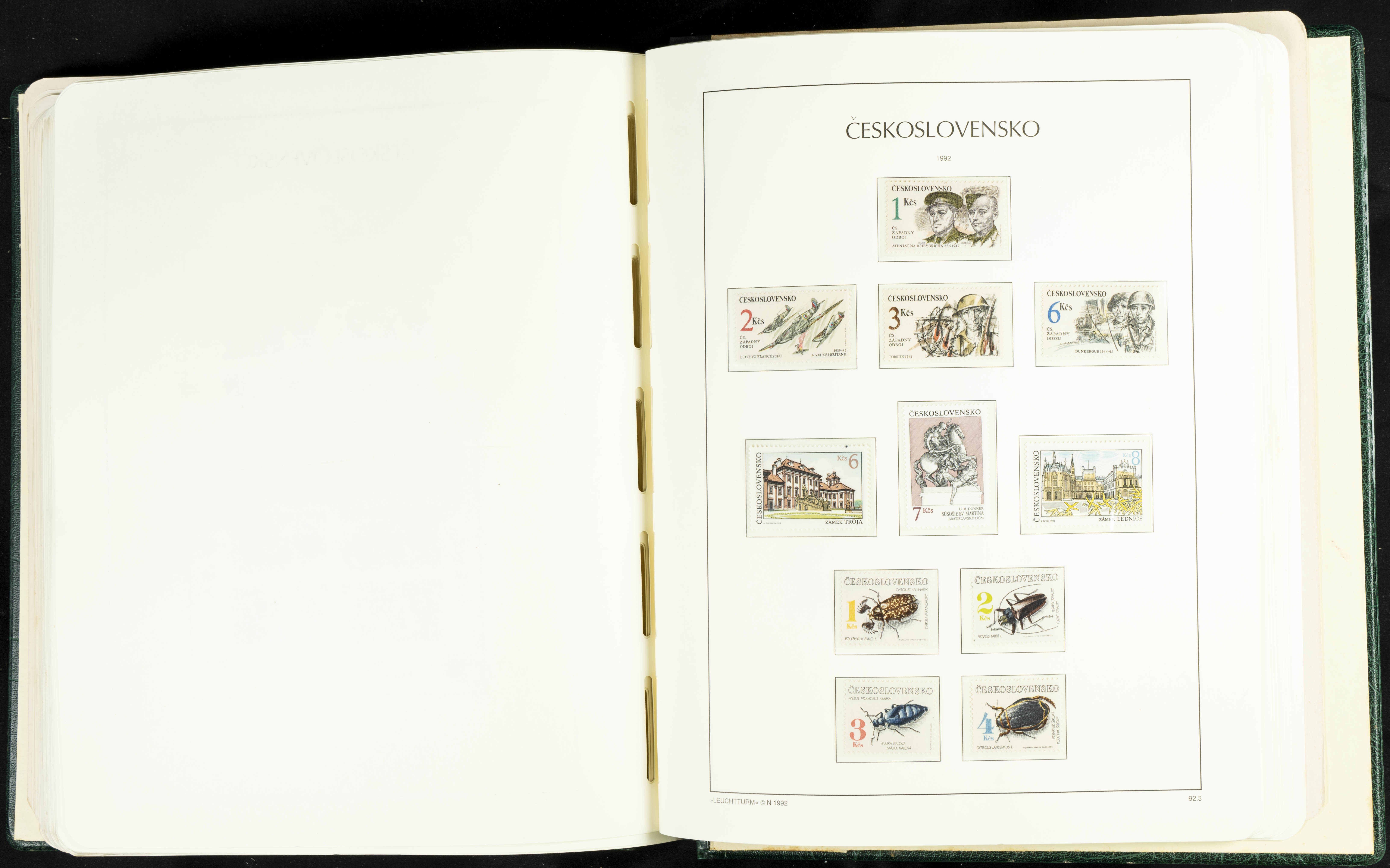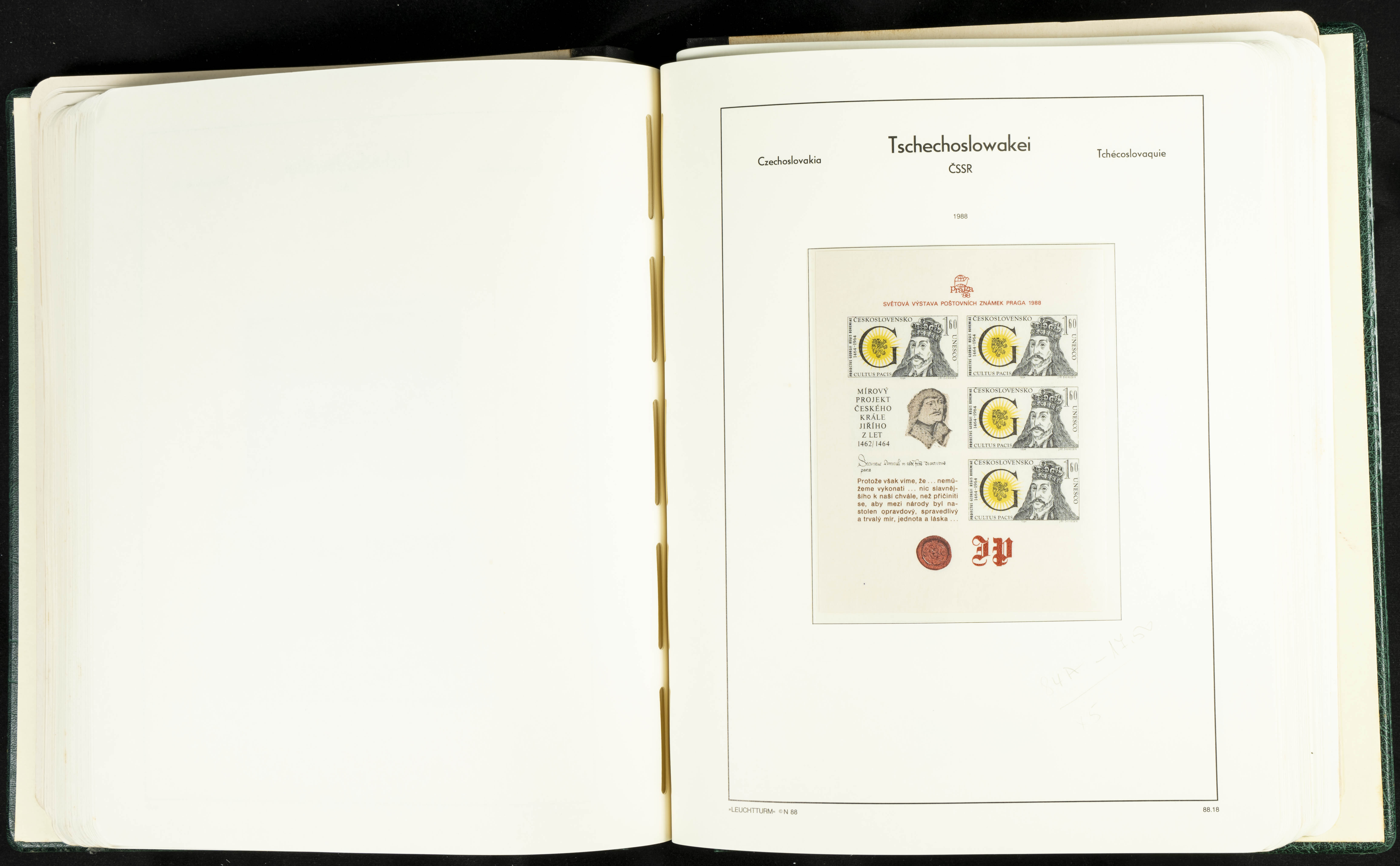 ★★/(1918ca). Interesting collection of Czechoslovakian stamps from 1918 to 1992. The older part, up to 1939, is mostly used, while the rest is practically complete, without hinges, including souvenir sheets (minor age spots mainly affecting the album pages). VERY HIGH CATALOG VALUE. TO BE EXAMINED.