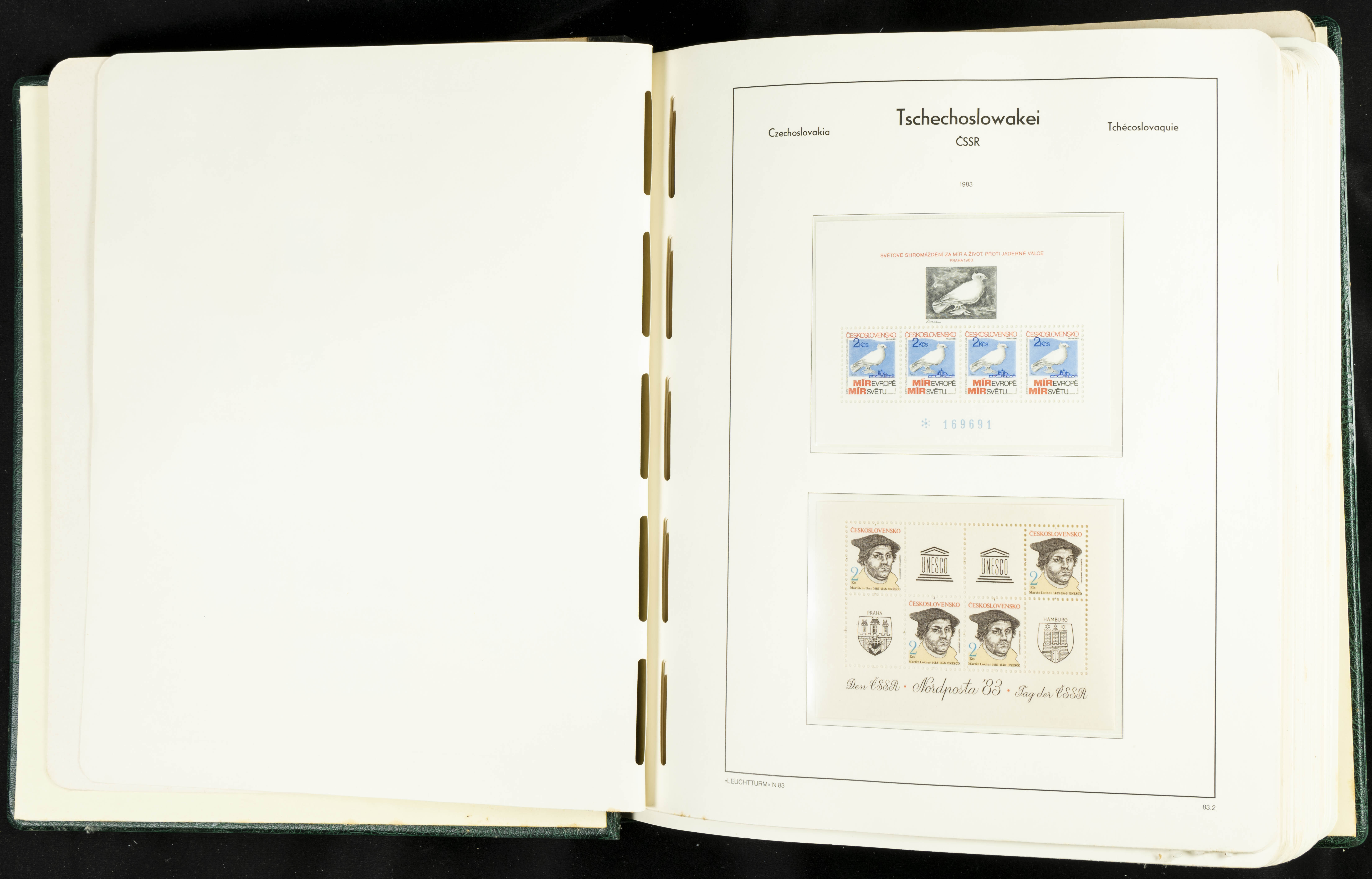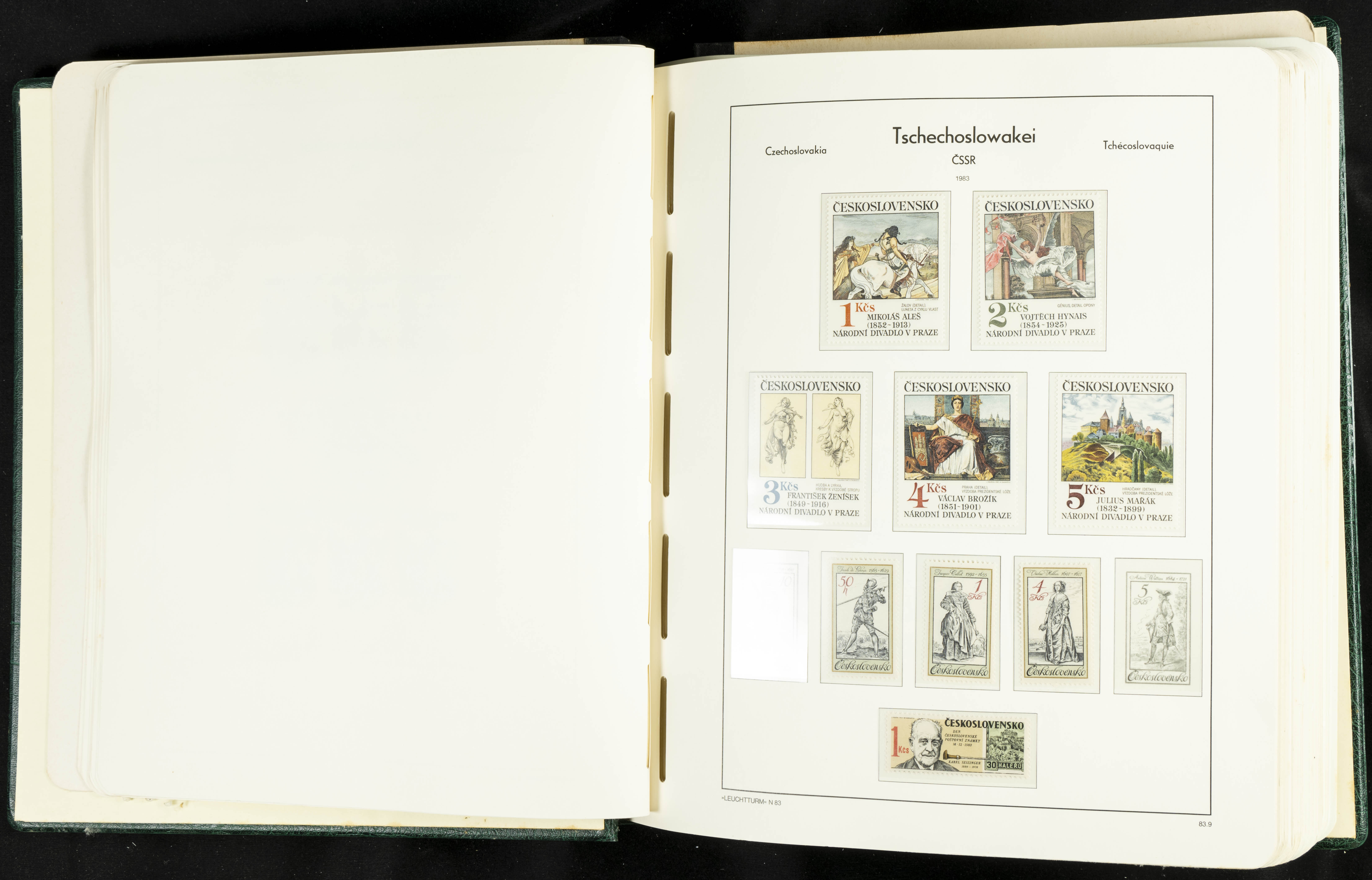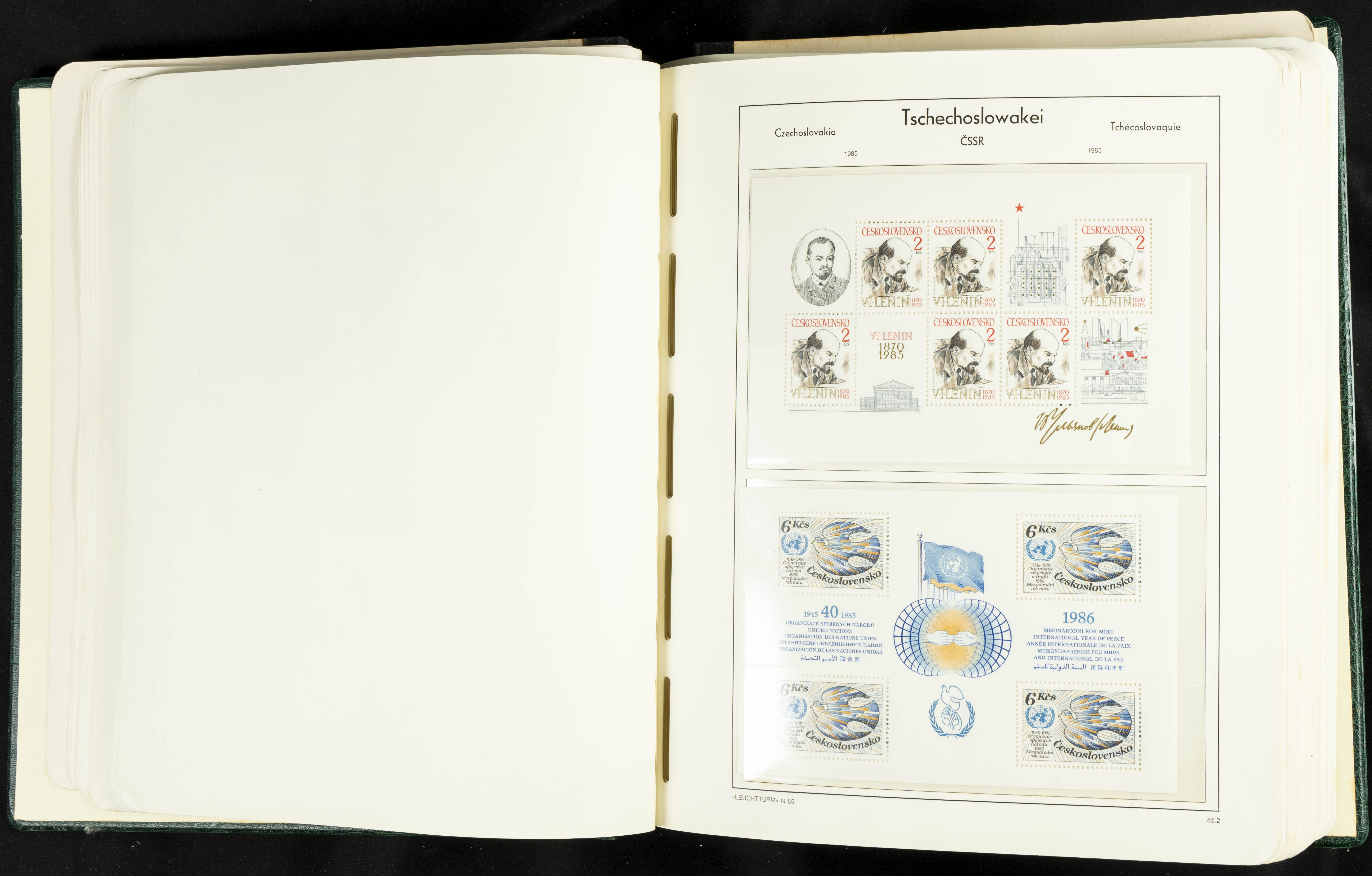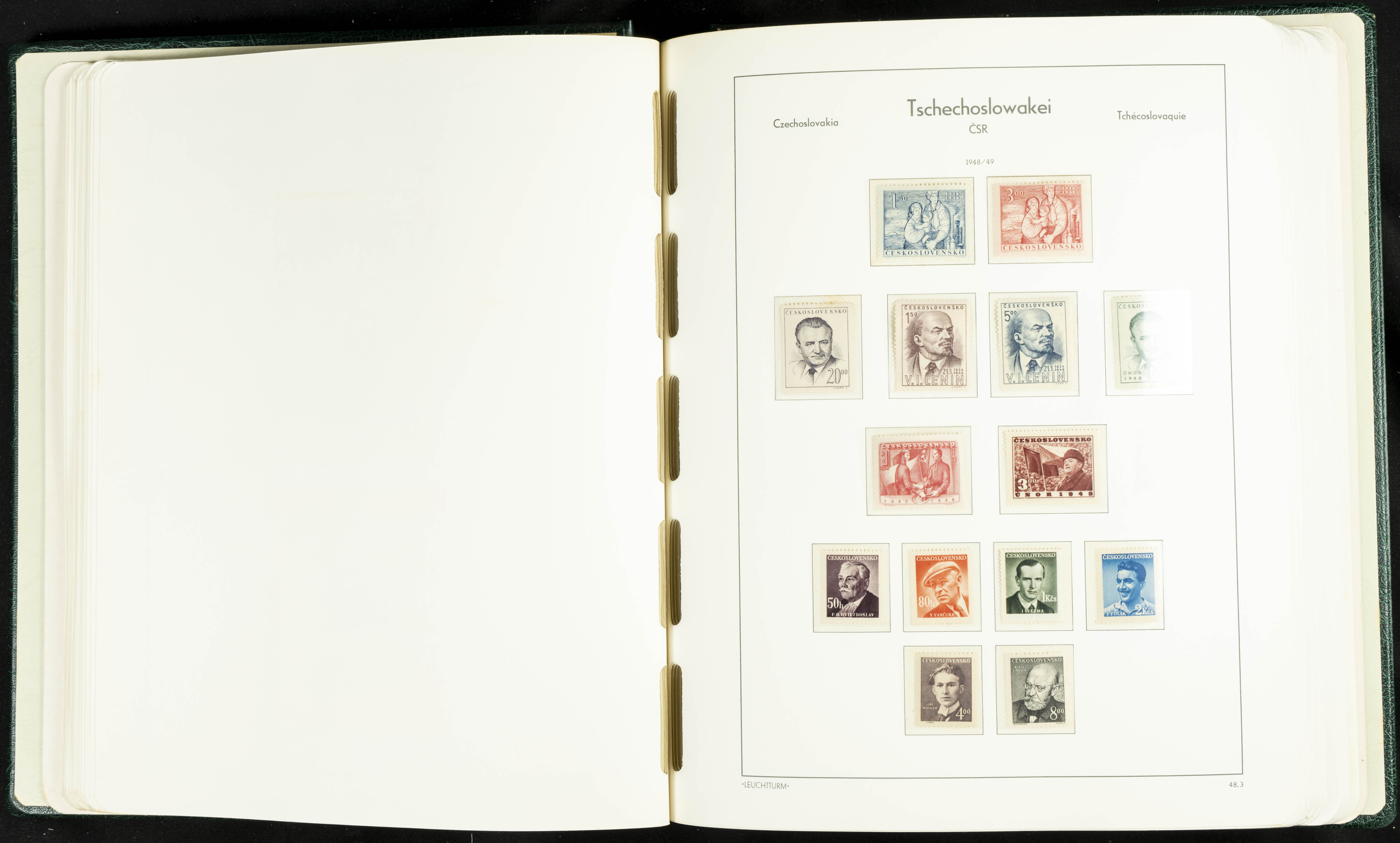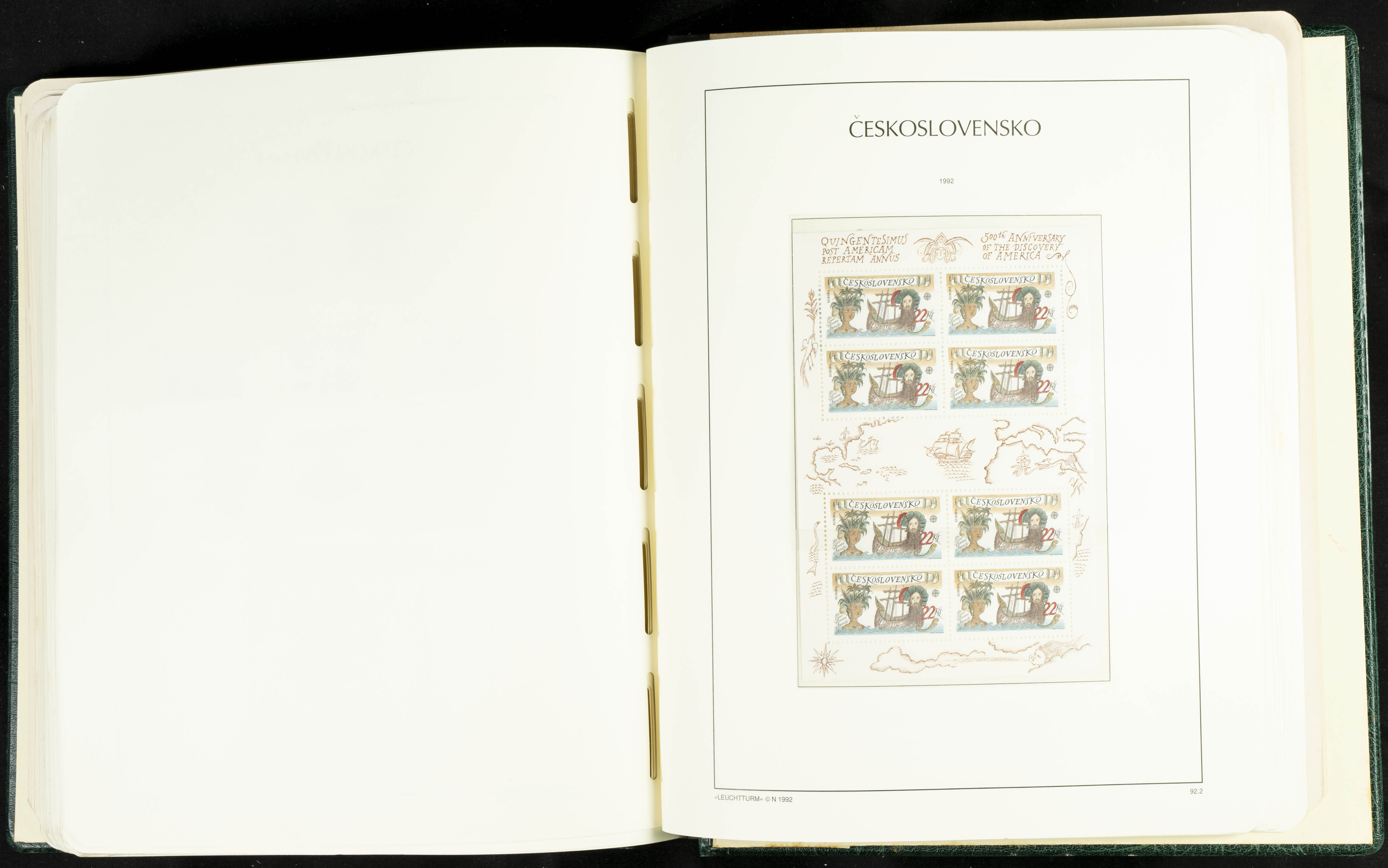 ★★/(1918ca). Interesting collection of Czechoslovakian stamps from 1918 to 1992. The older part, up to 1939, is mostly used, while the rest is practically complete, without hinges, including souvenir sheets (minor age spots mainly affecting the album pages). VERY HIGH CATALOG VALUE. TO BE EXAMINED.