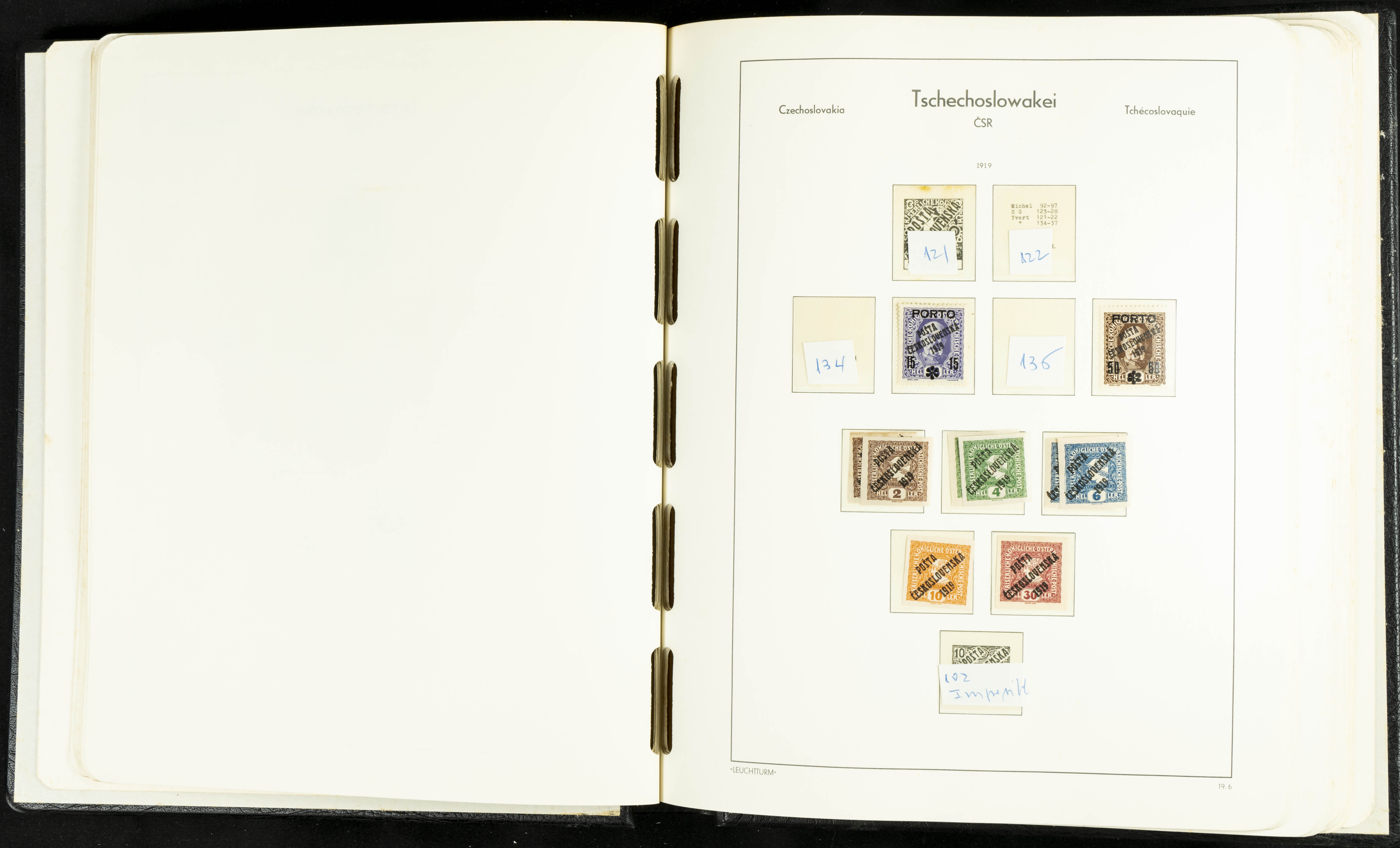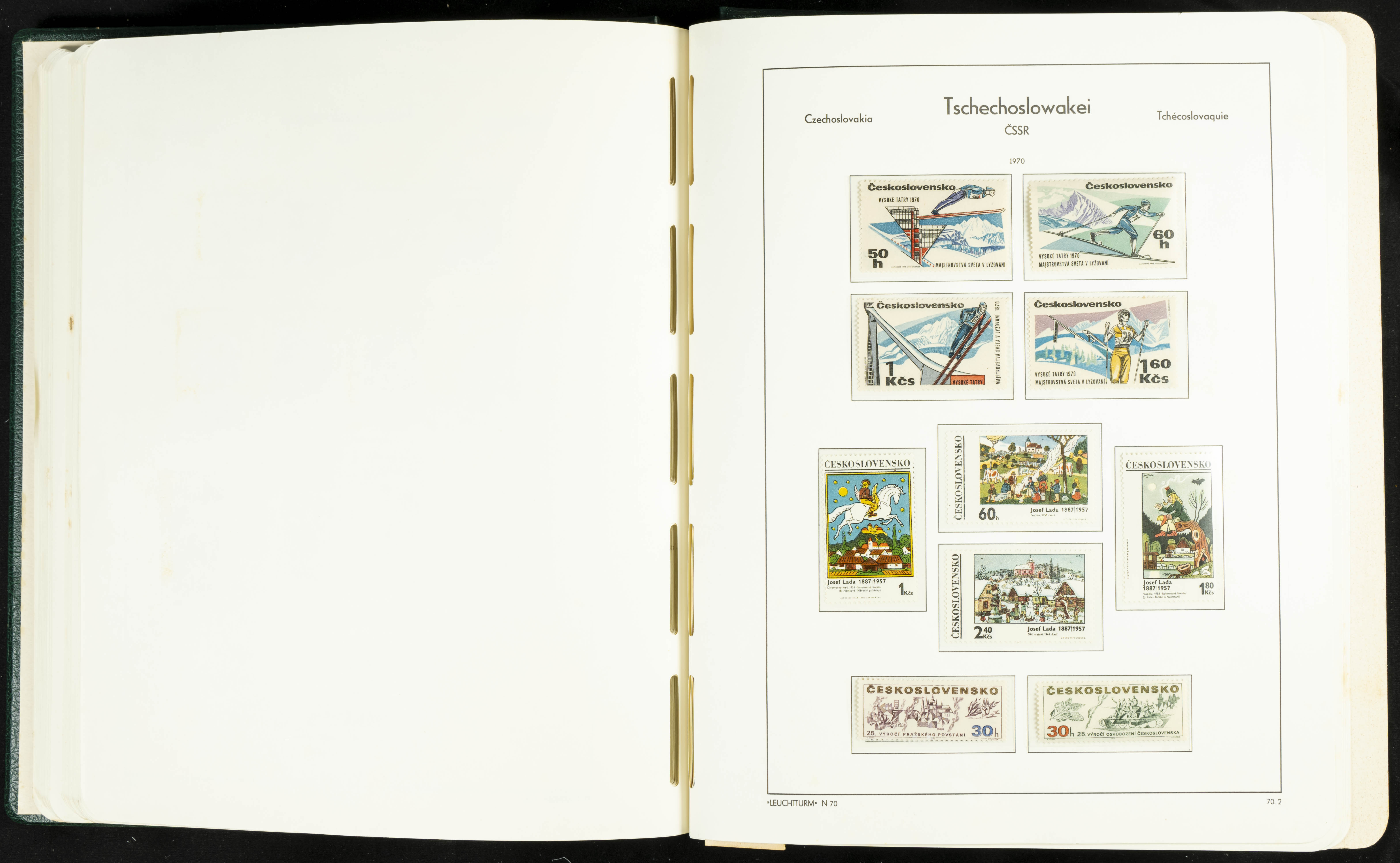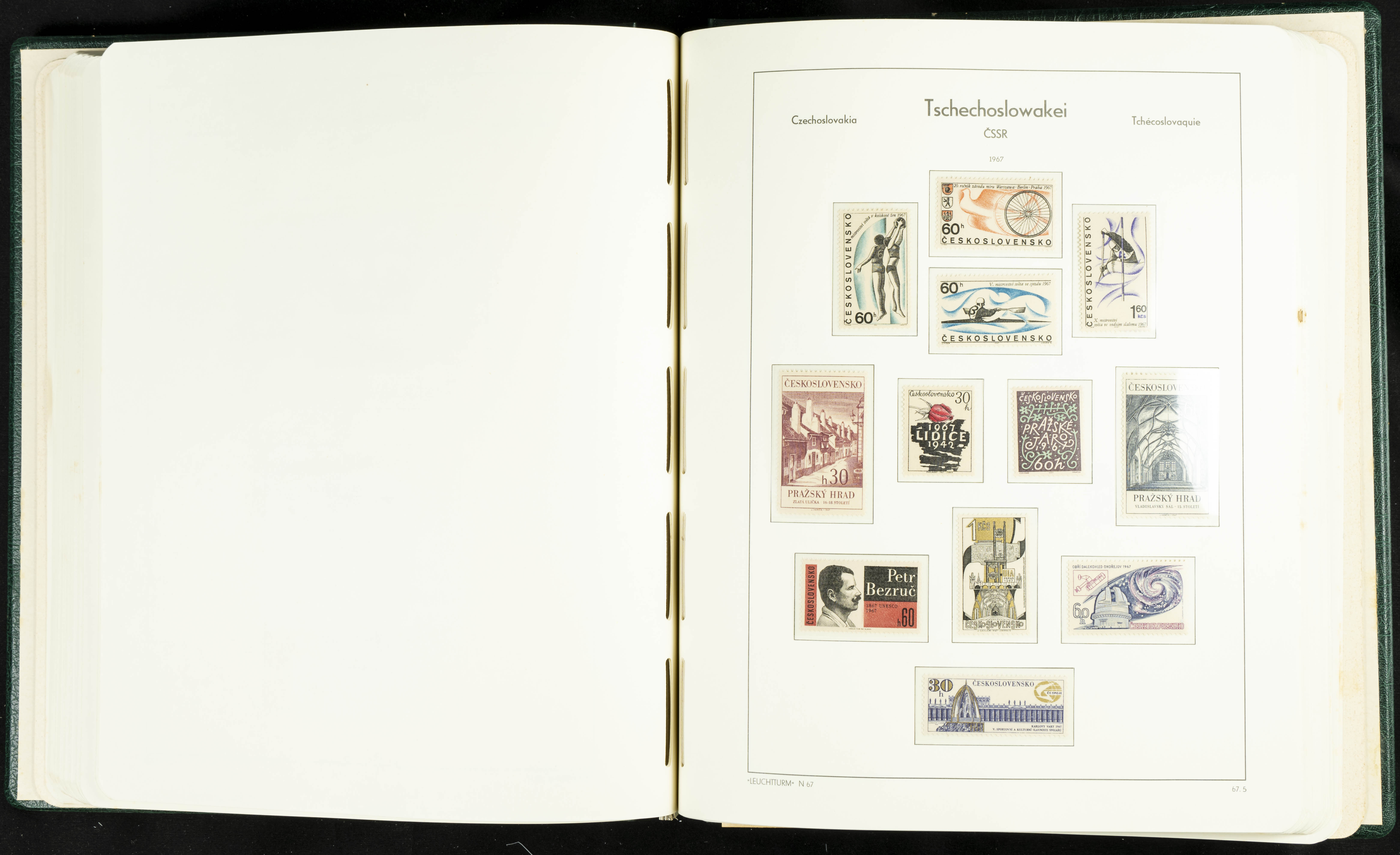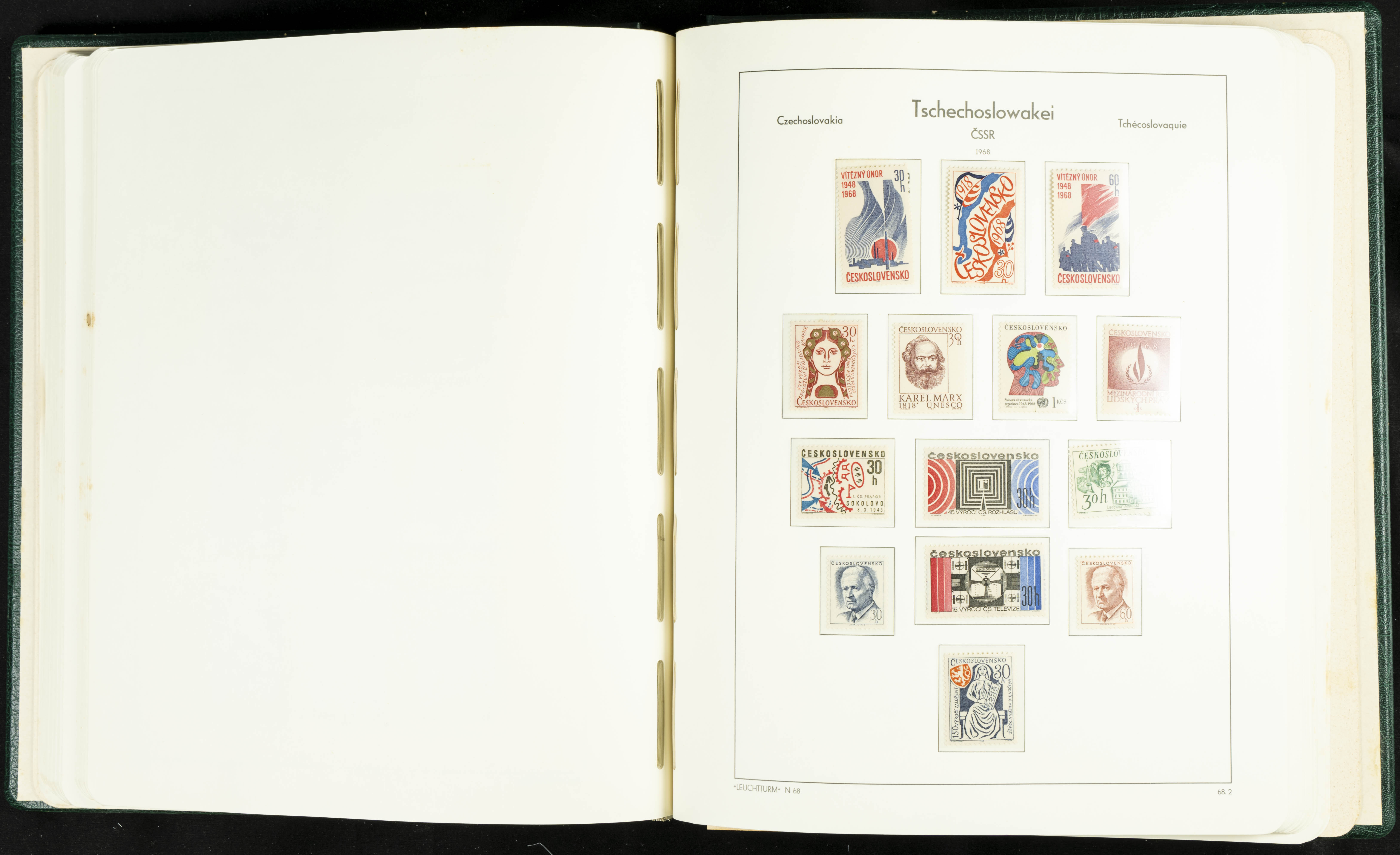★★/(1918ca). Interesting collection of Czechoslovakian stamps from 1918 to 1992. The older part, up to 1939, is mostly used, while the rest is practically complete, without hinges, including souvenir sheets (minor age spots mainly affecting the album pages). VERY HIGH CATALOG VALUE. TO BE EXAMINED.